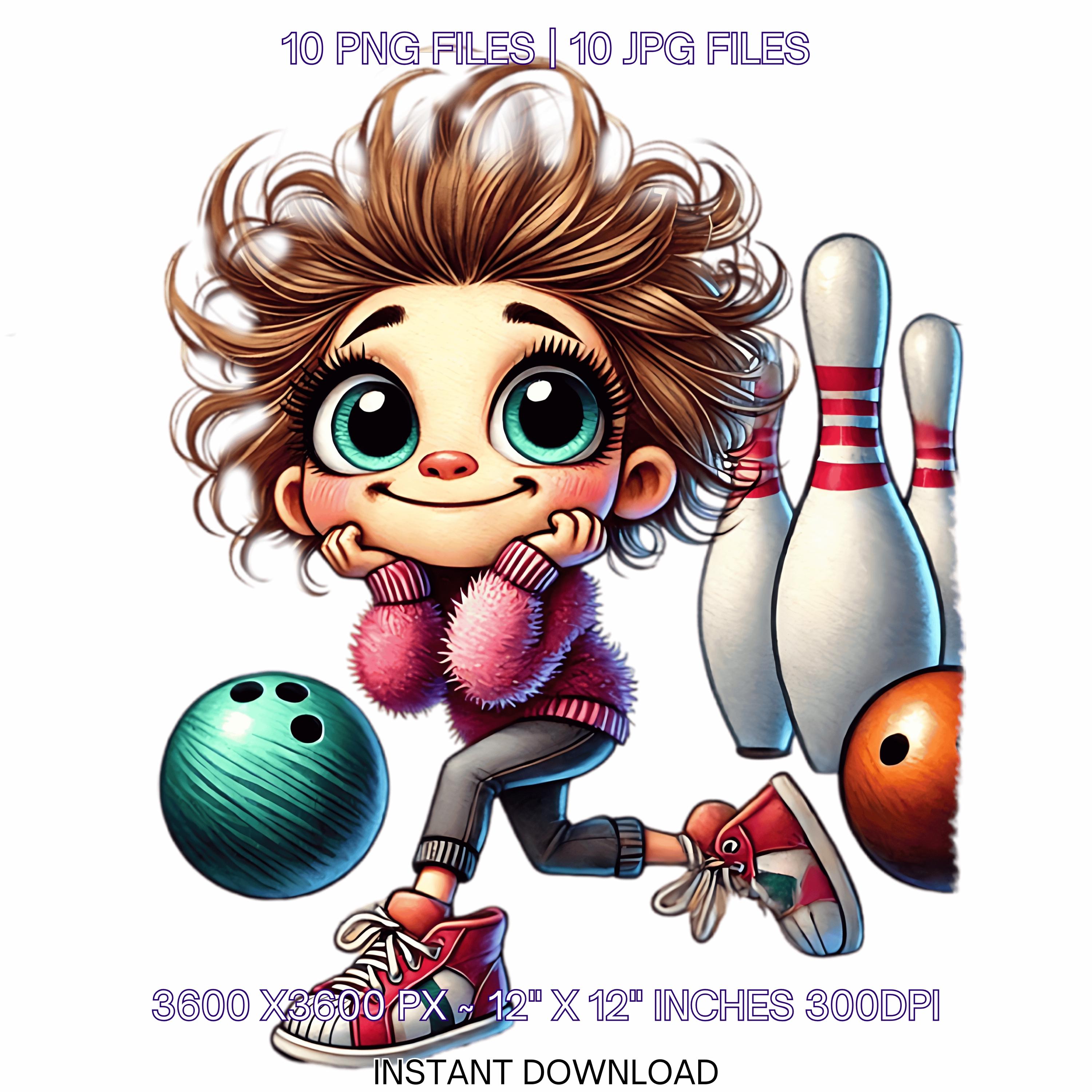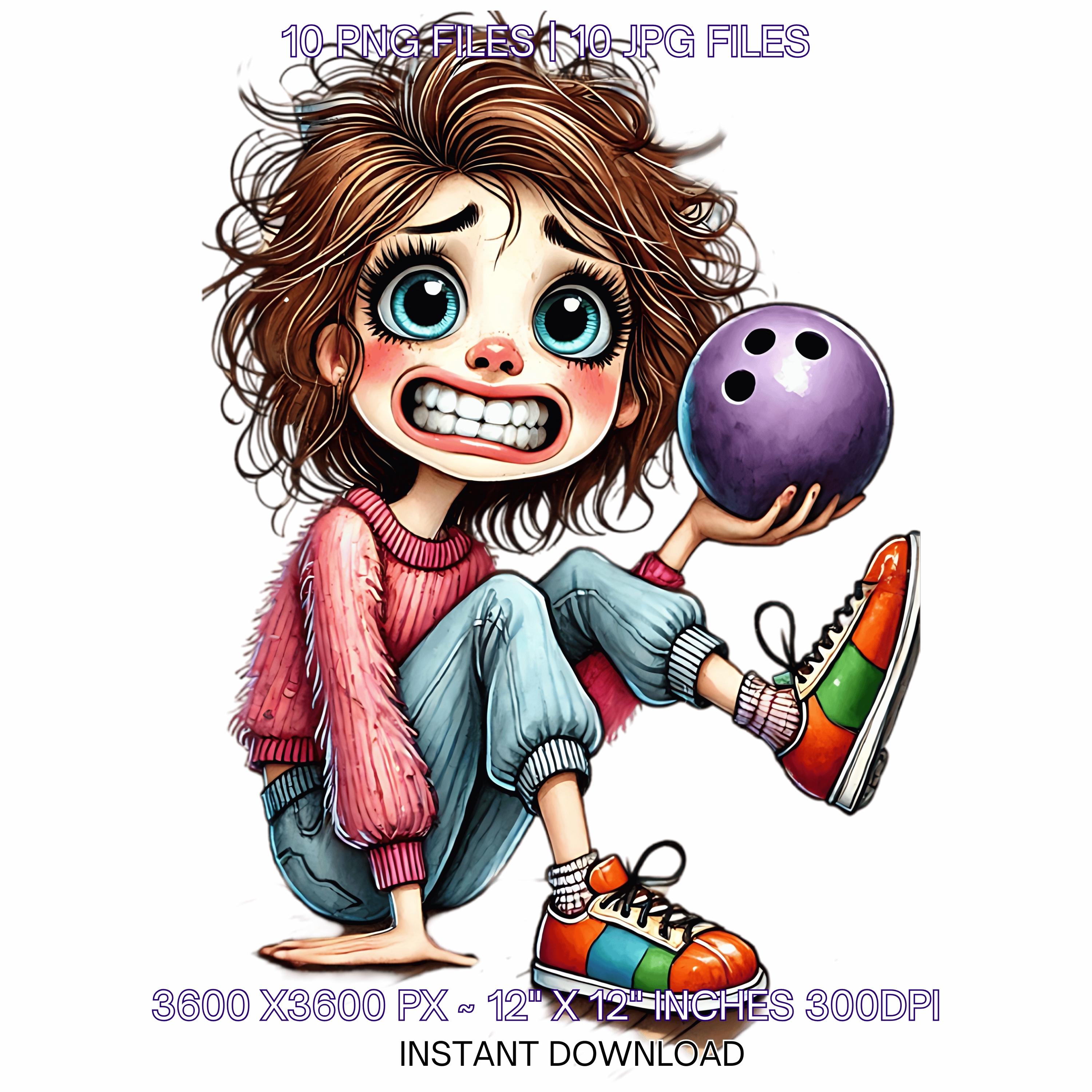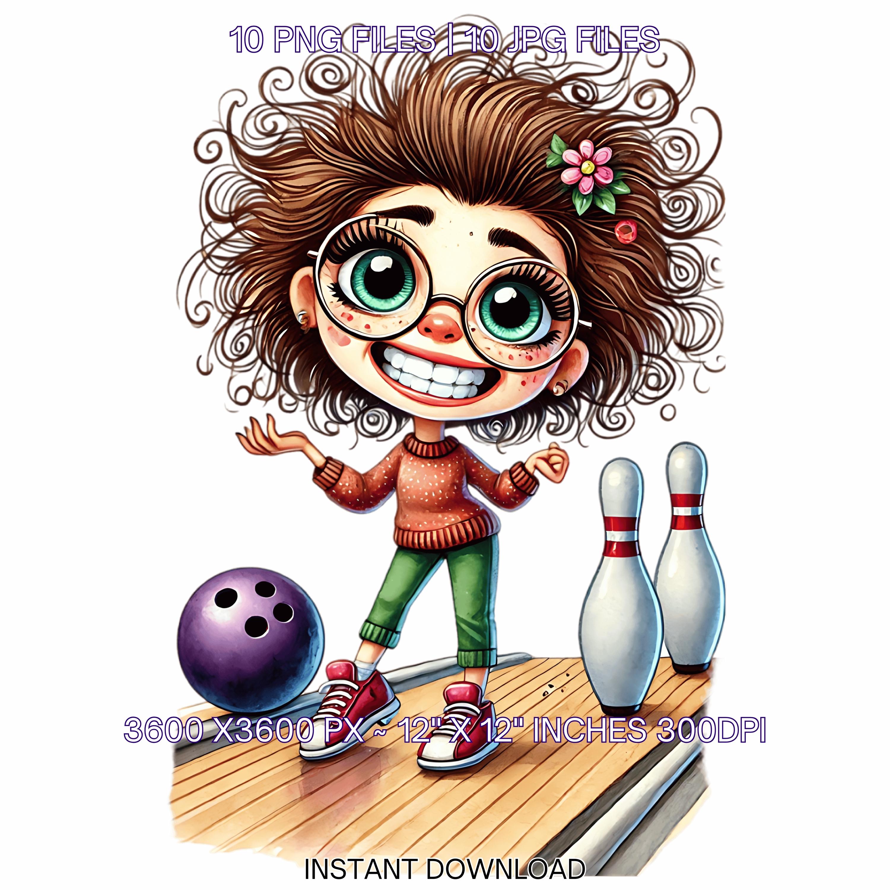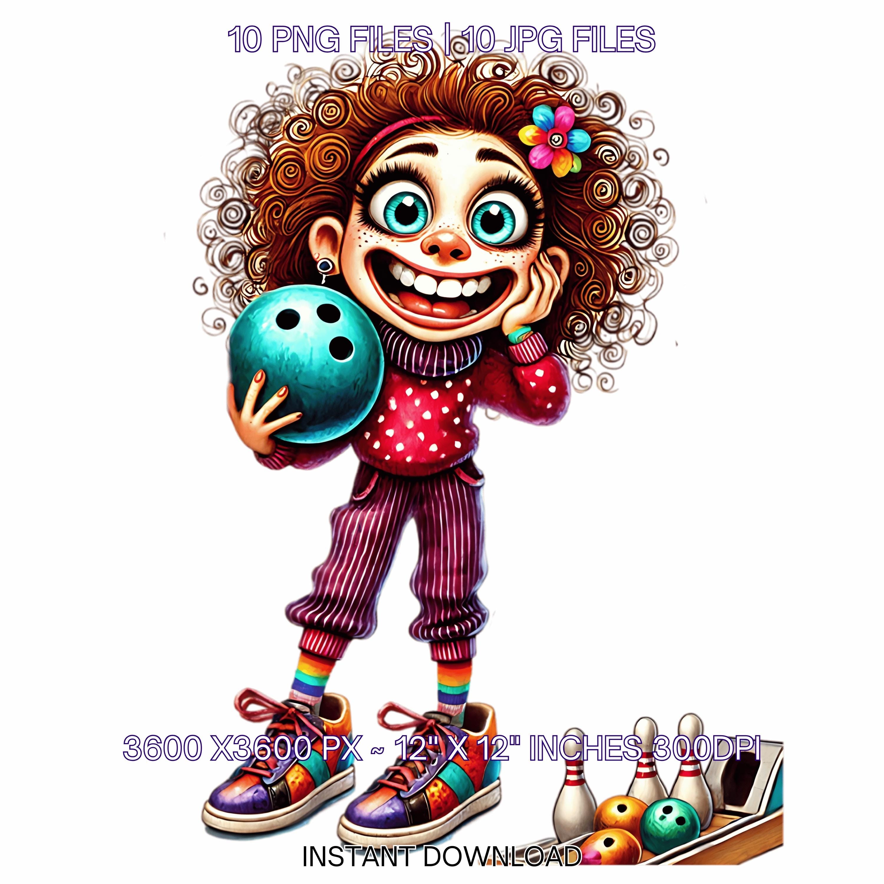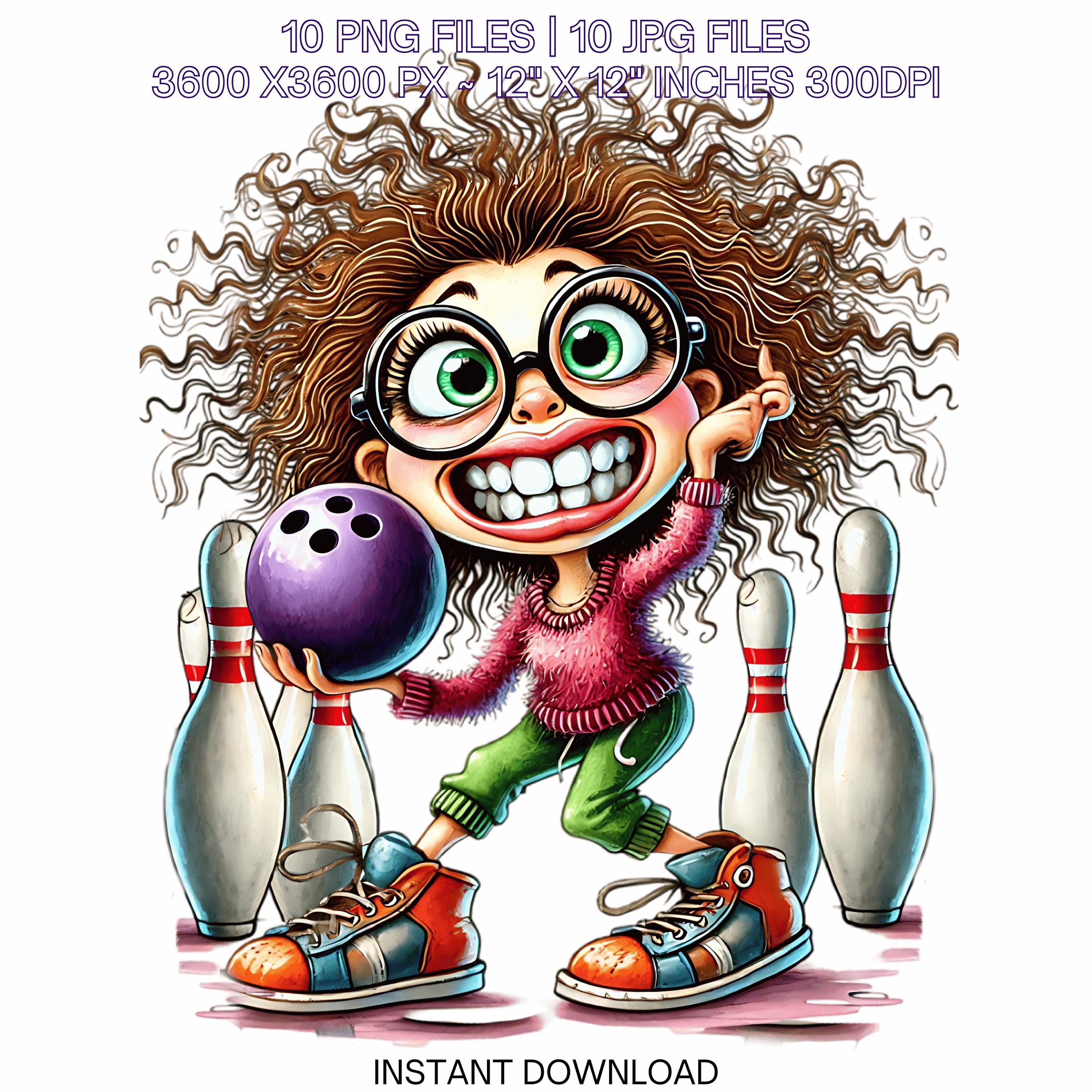 10 Crazy Quirky Lady Bowling Day PNG Clipart | Funny Bowling Girl Cartoon | Bowling Ball, Happy White Woman Art Sublimation Commercial Use