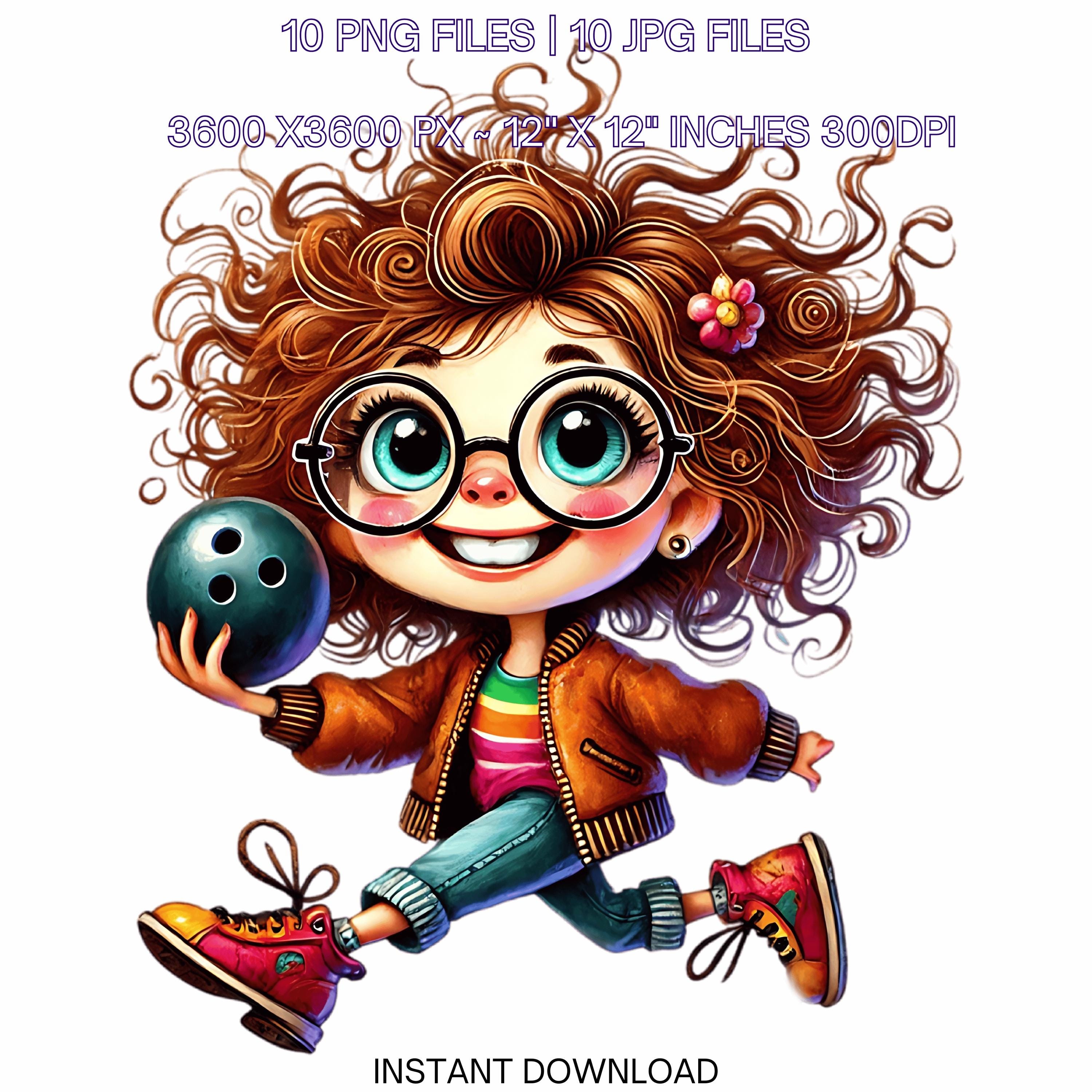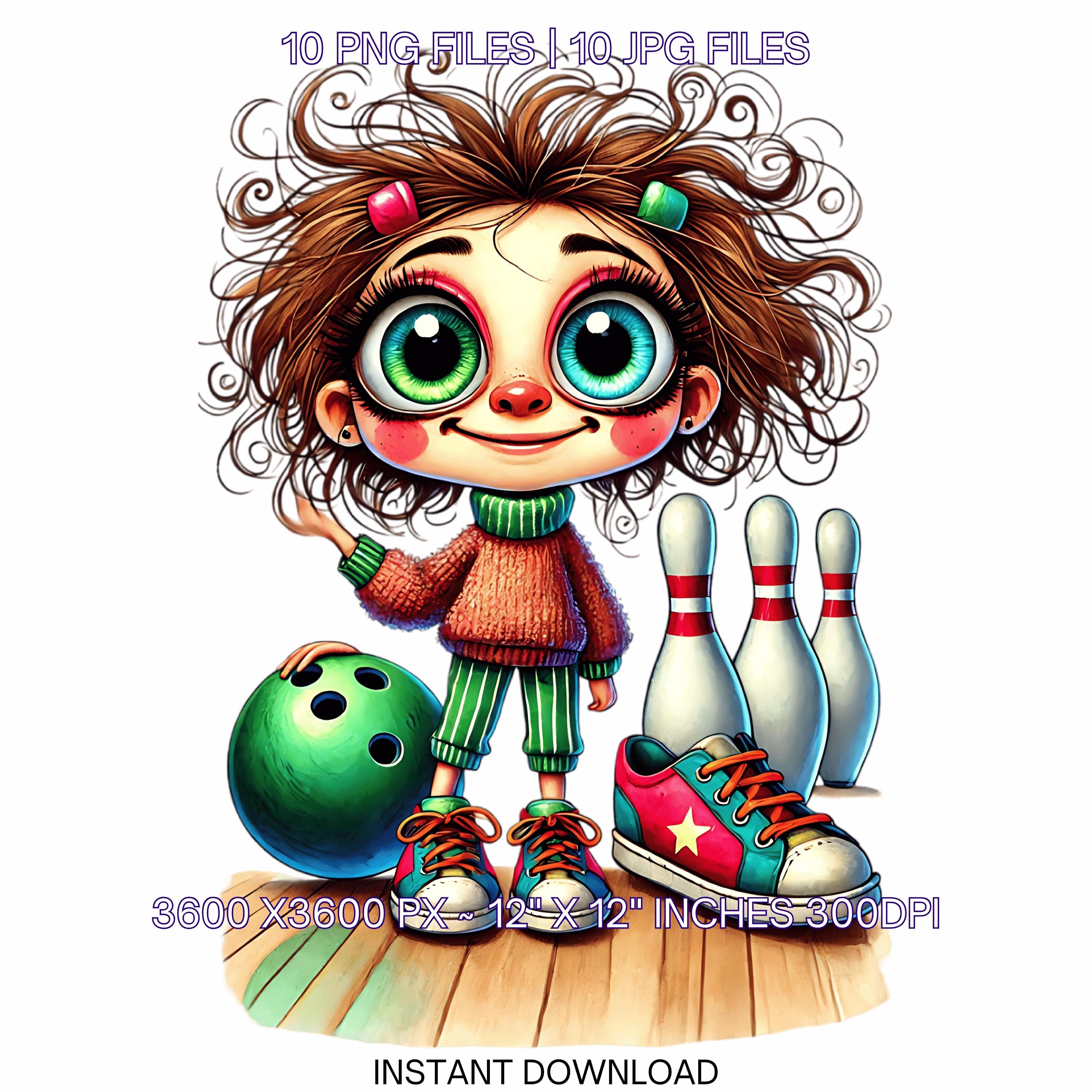 10 Crazy Quirky Girl Bowling Day PNG Clipart | Funny Bowling Lady Cartoon | Bowling Ball, Happy White Woman Art Sublimation Commercial Use is an eye-catching, high-resolution digital asset designed for creators, crafters, teachers, and small business owners looking to elevate their visuals.