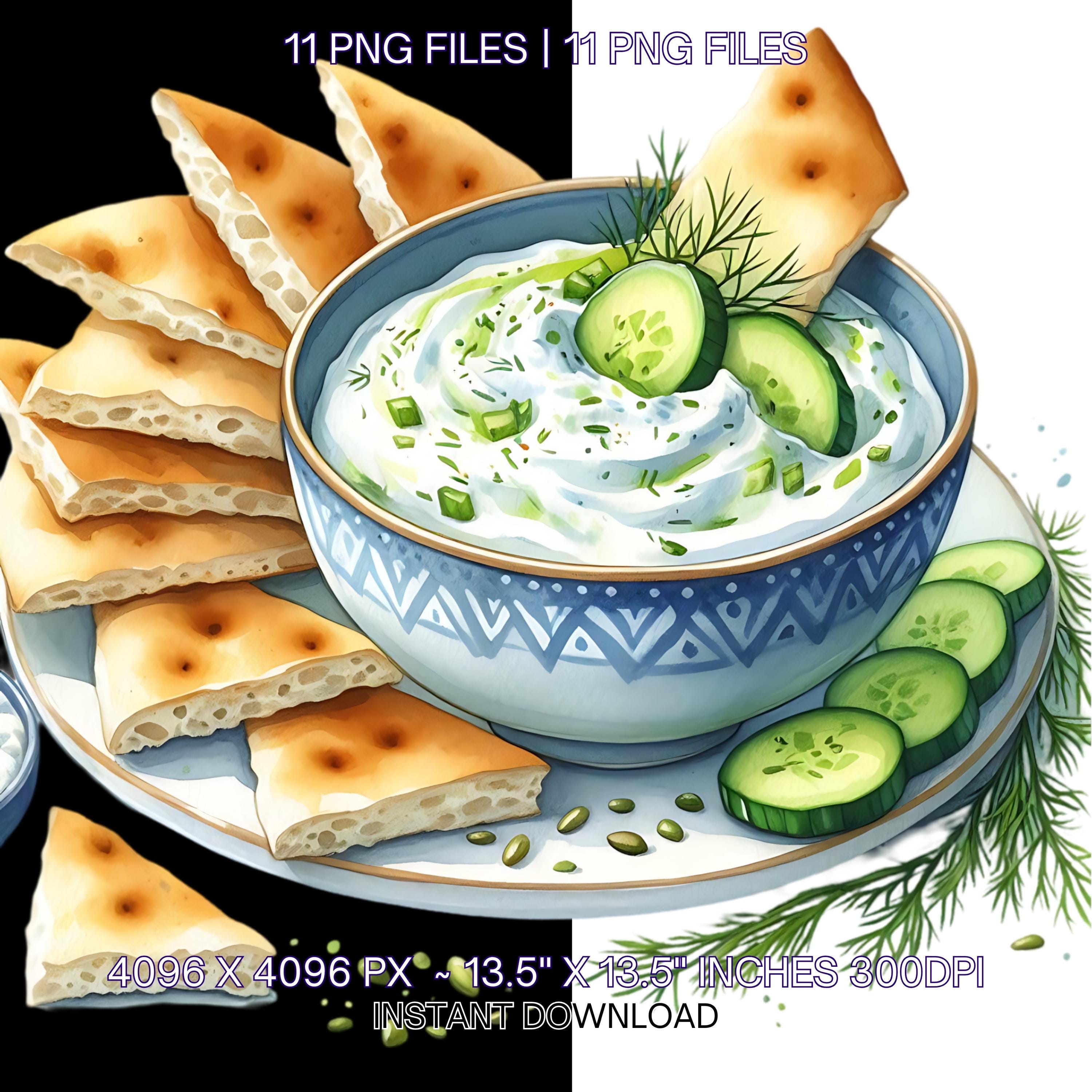 11 Greek Food Illustration PNG | Watercolour Food Transparent Clipart | Greek Salad Souvlaki Gyro Tzatziki Food Stickers JPGs PNGs Commercial Use