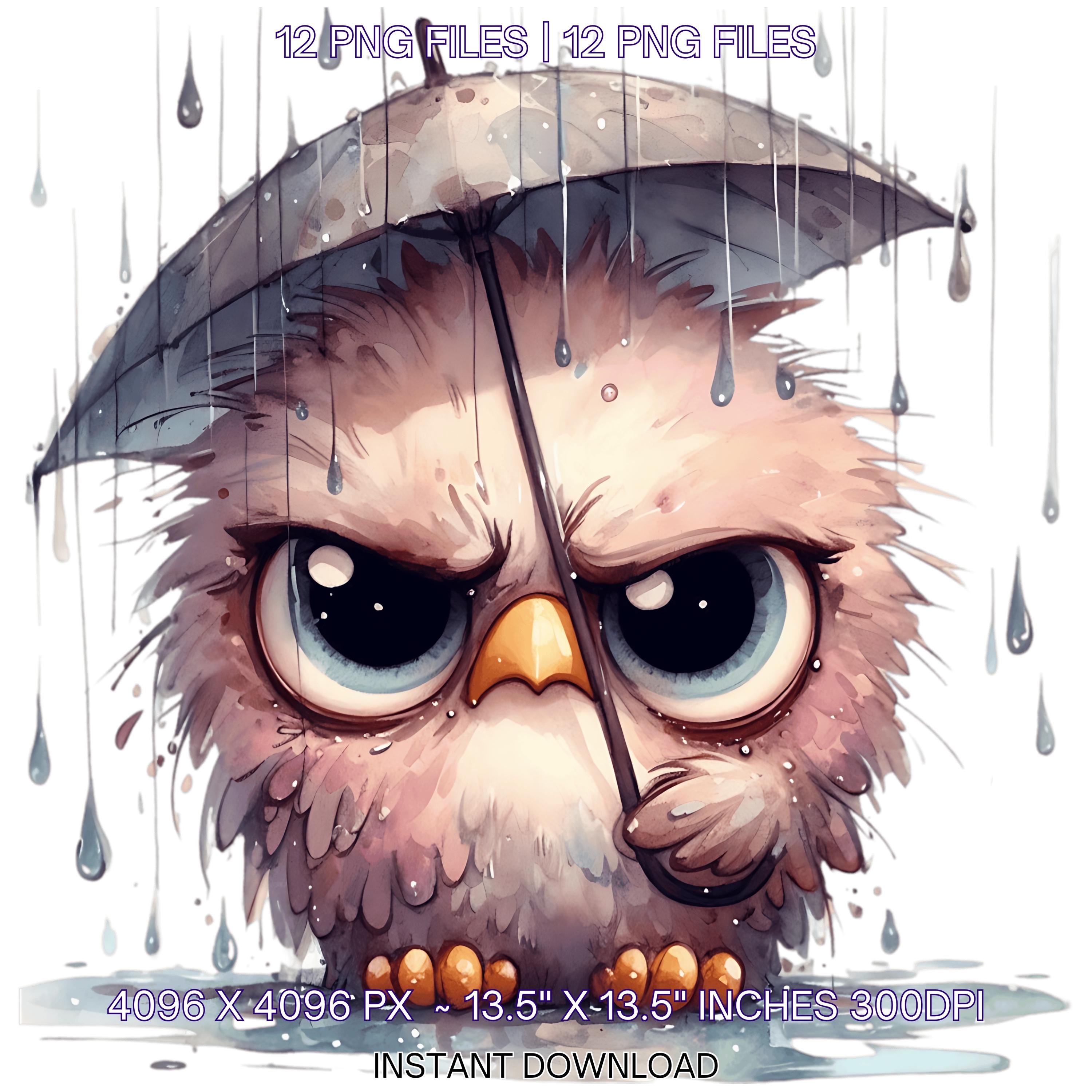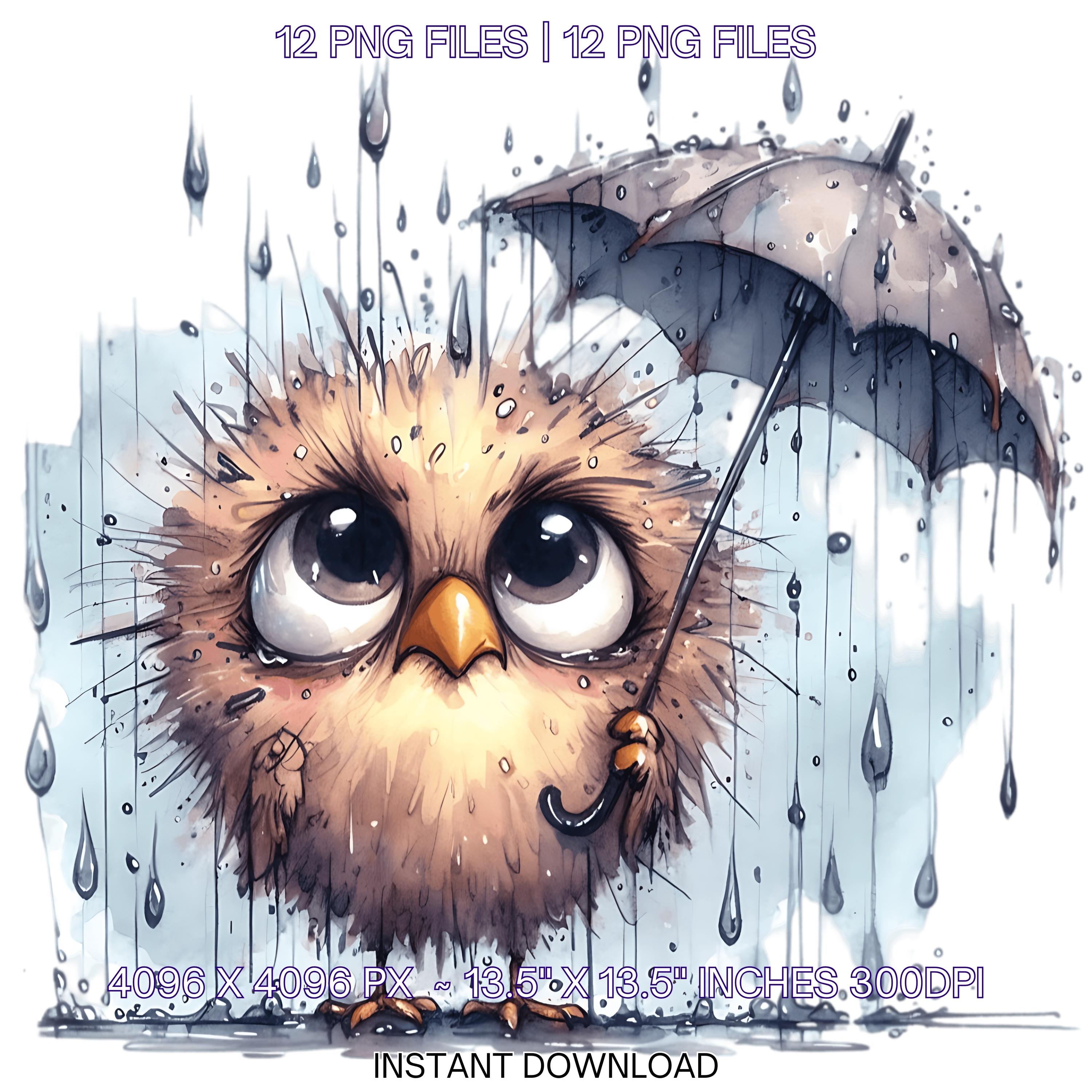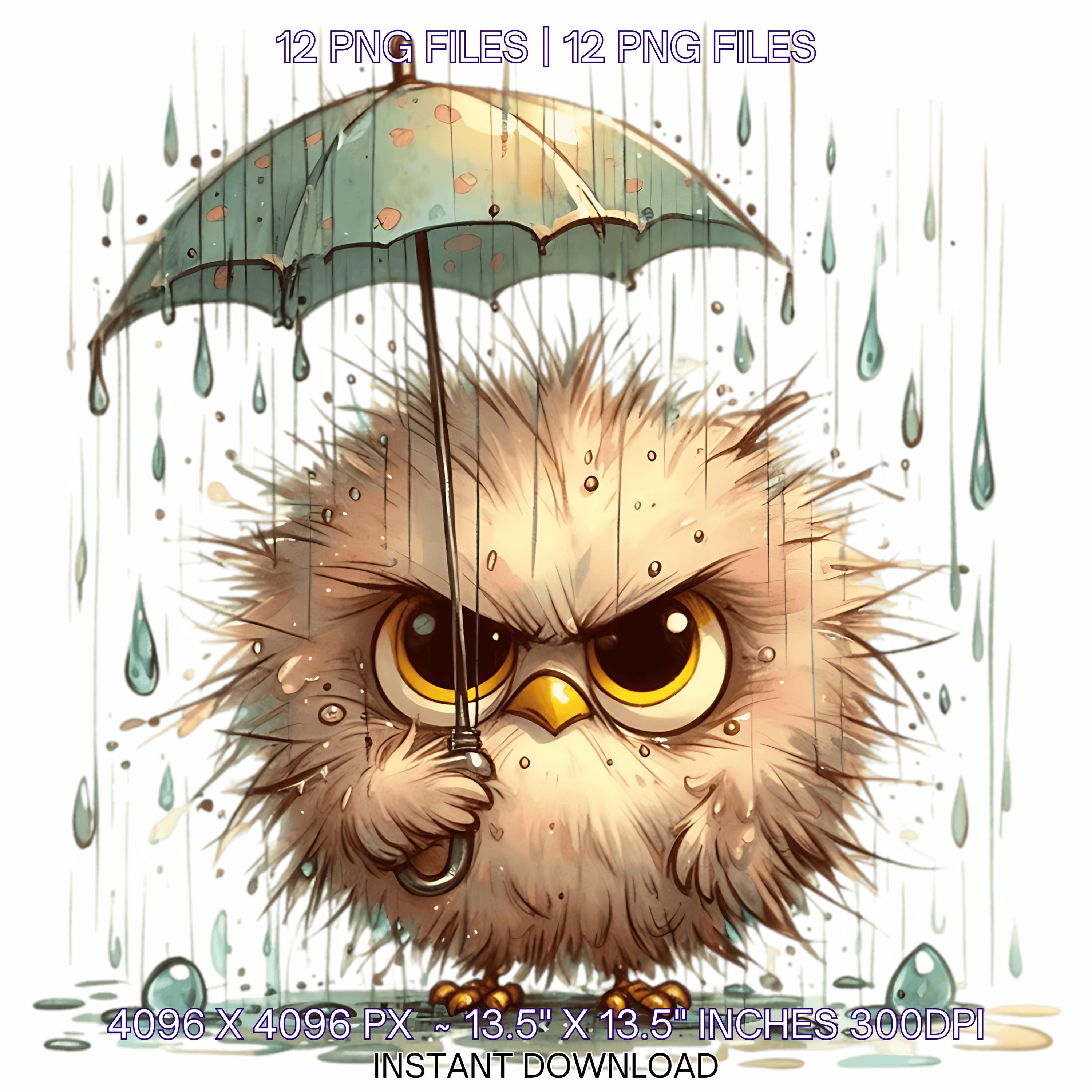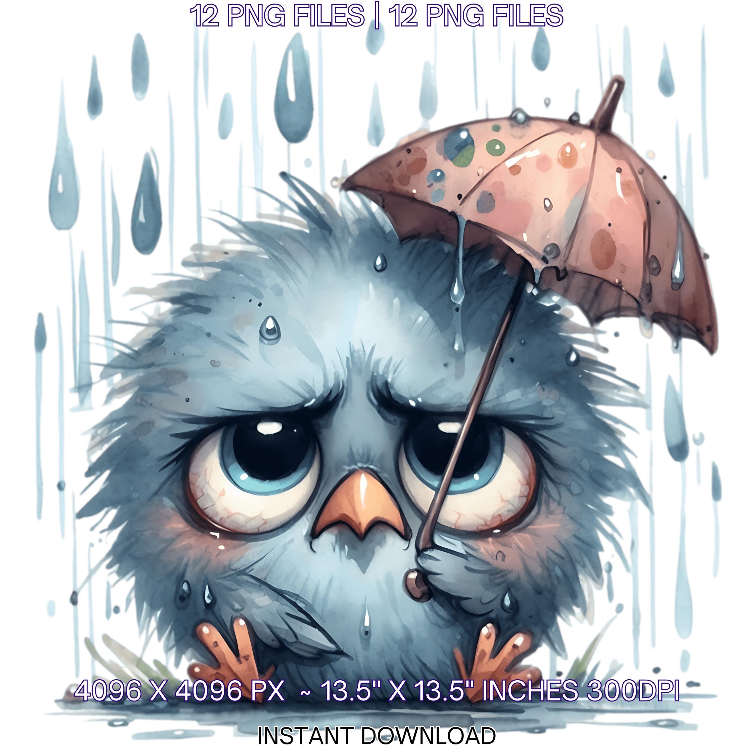 12 Frazzled Bird with a Tiny Umbrella in the Rain PNG | Quirky Grumpy Bird Clip Art Whimsical Junk Journal Scrapbooking Card Commercial Use is an eye-catching, high-resolution digital asset designed for creators, crafters, teachers, and small business owners looking to elevate their visuals.
