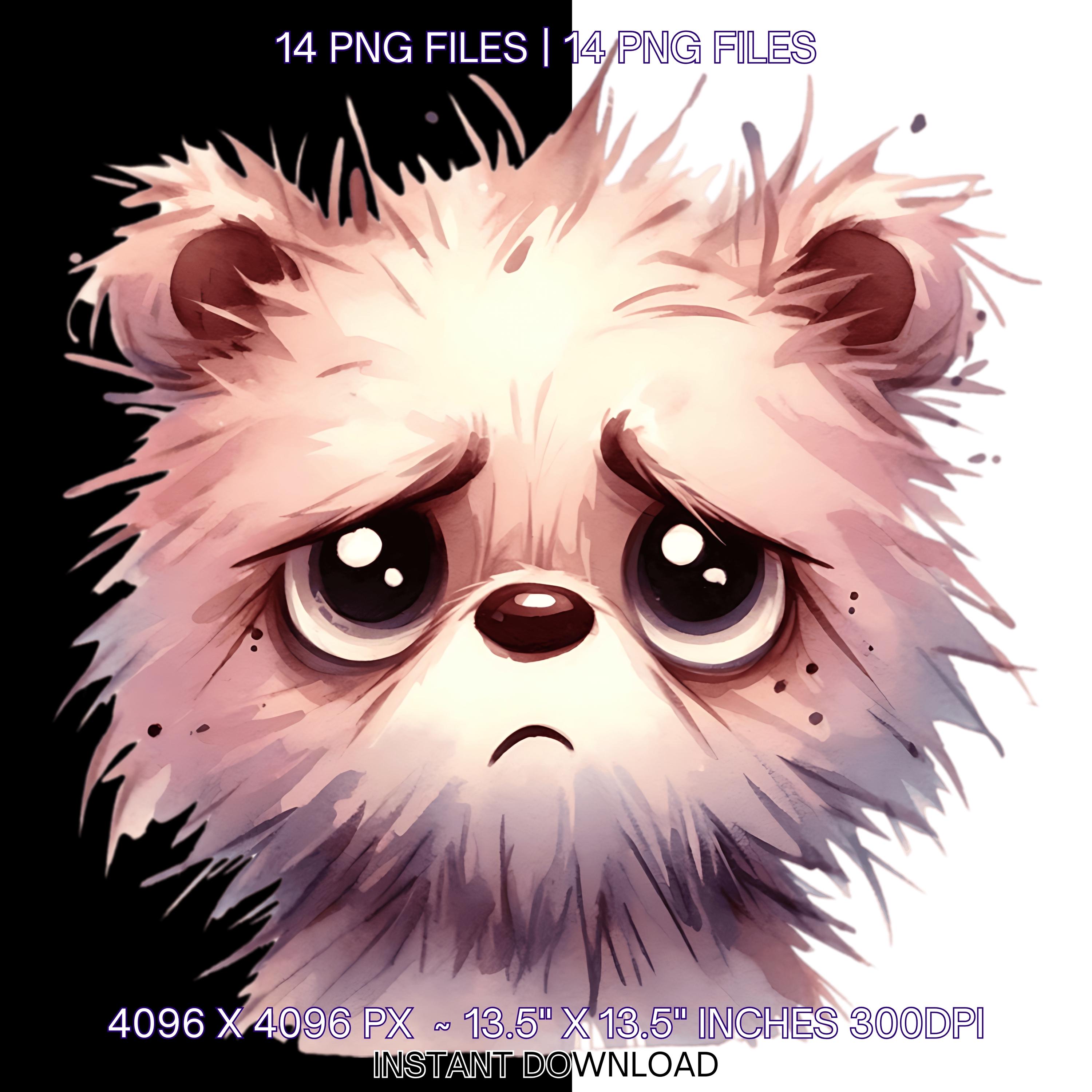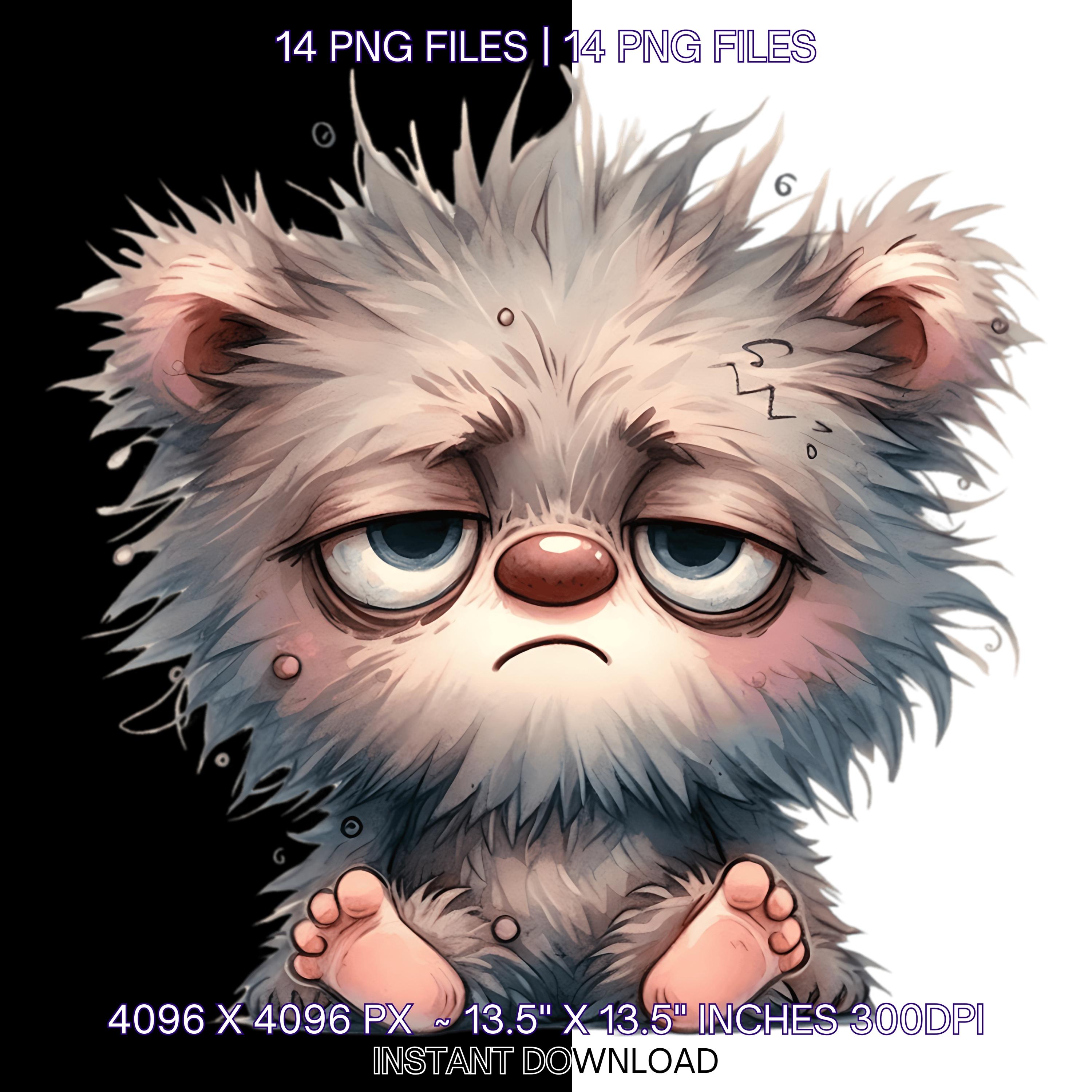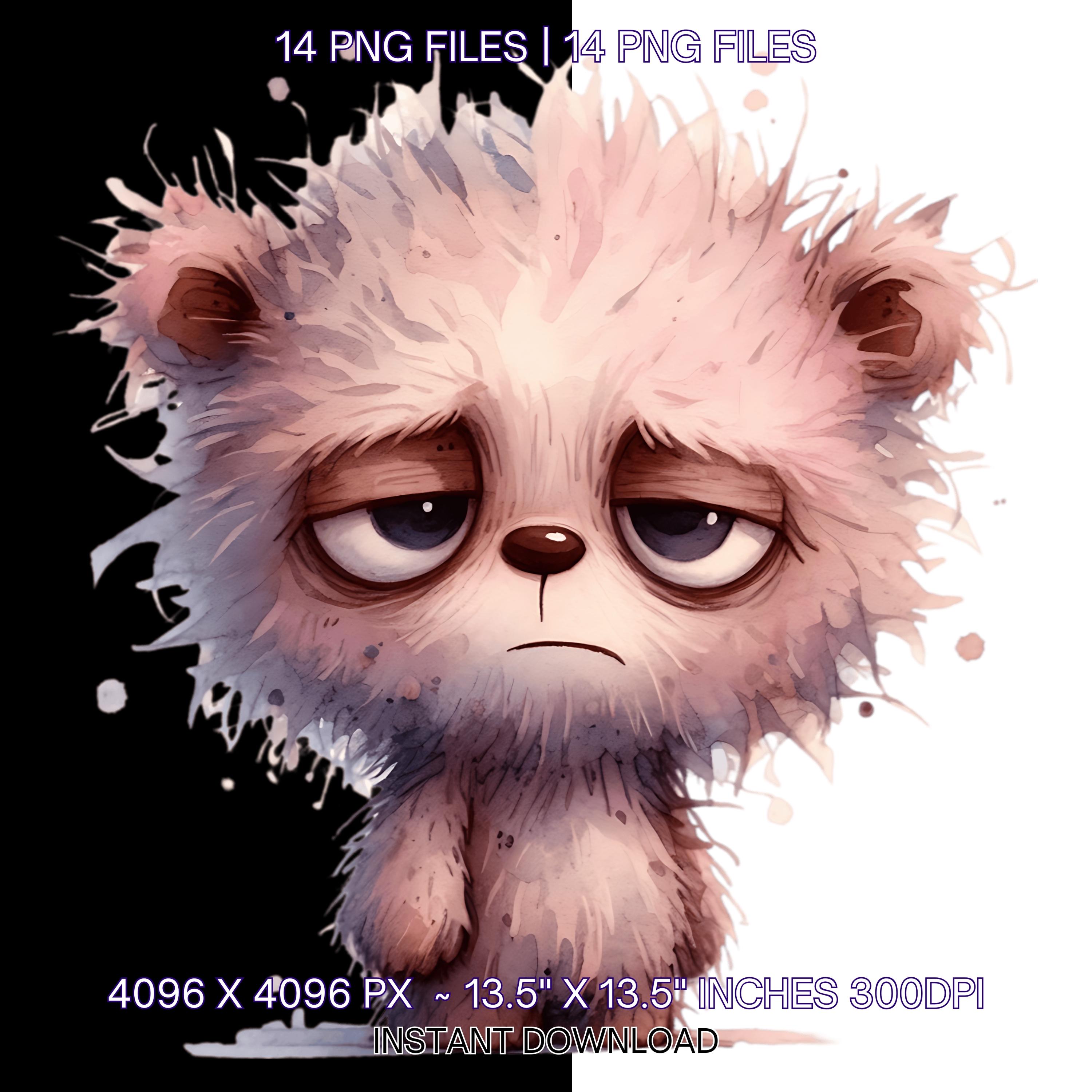 14 Quirky Grumpy Bear Clip Art PNG | Frazzled Bear Clipart High-Resolution Whimsical Scrapbooking Junk Journaling Card Making Commercial Use is an eye-catching, high-resolution digital asset designed for creators, crafters, teachers, and small business owners looking to elevate their visuals.