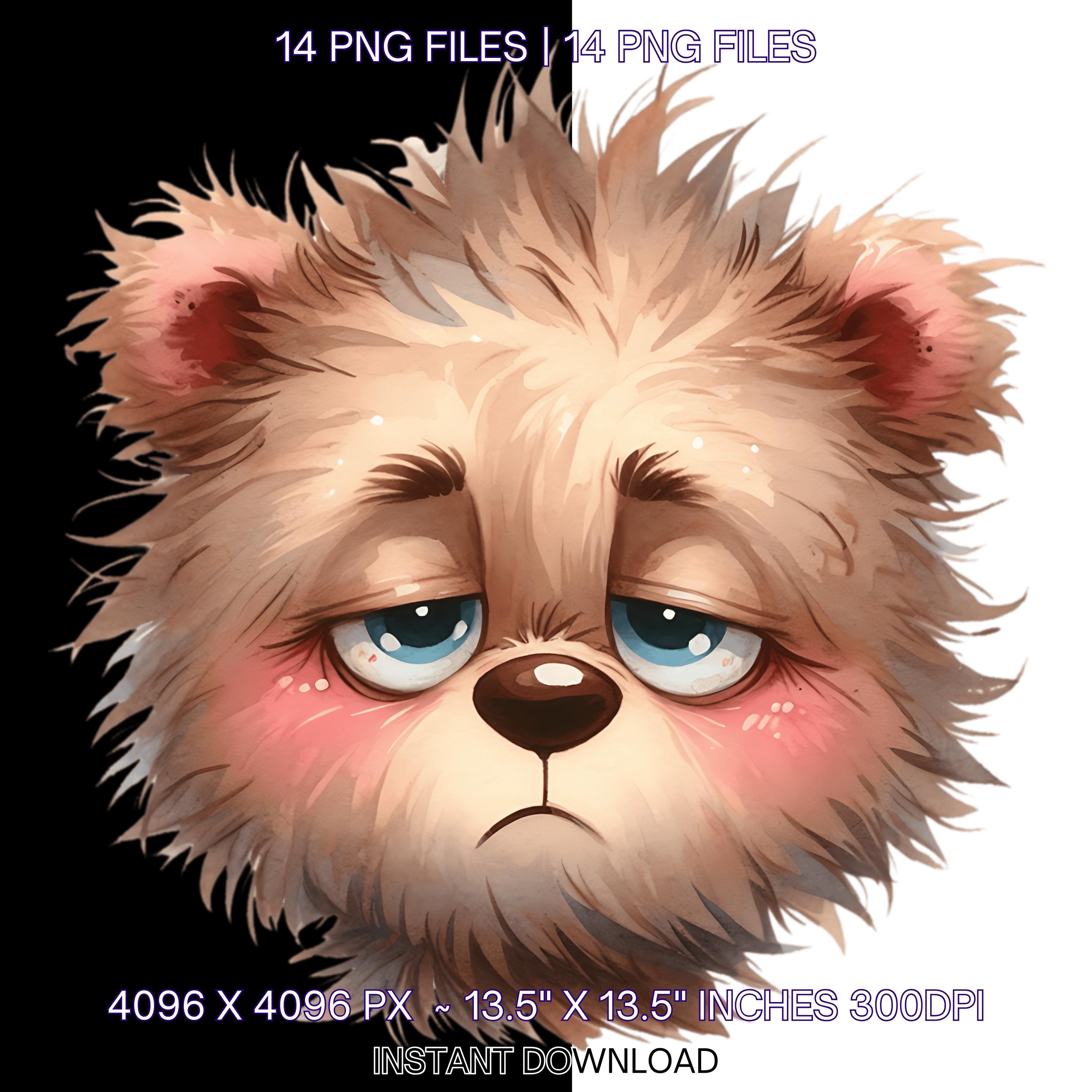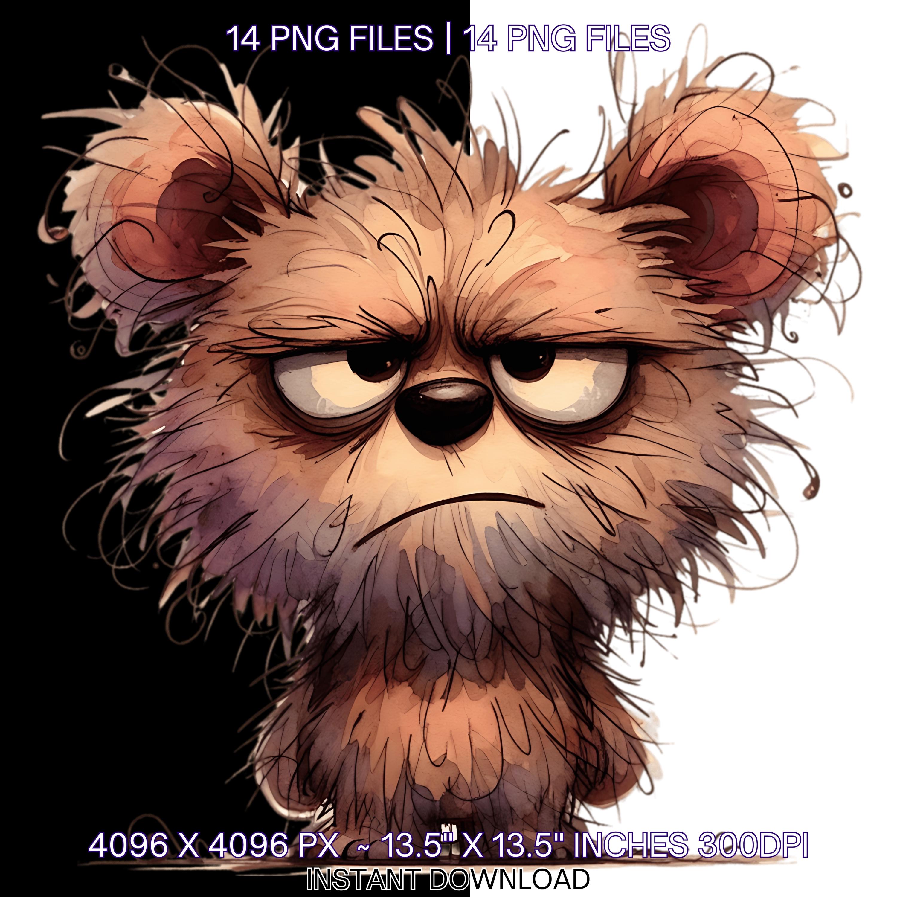 14 Quirky Grumpy Bear Clip Art PNG | Frazzled Bear Clipart High-Resolution Whimsical Scrapbooking Junk Journaling Card Making Commercial Use