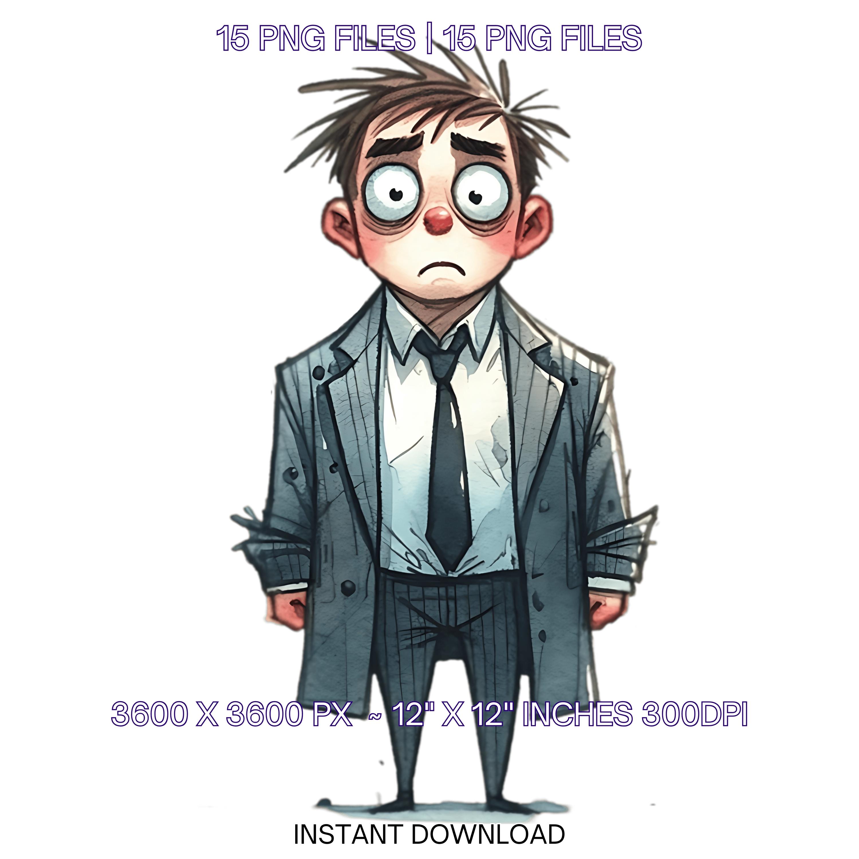 15 Angry Man PNG | Frazzled Quirky Depressed Man Clipart | Grumpy Man Whimsical Junk Journaling Scrapbooking Sublimation Art Commercial Use is an eye-catching, high-resolution digital asset designed for creators, crafters, teachers, and small business owners looking to elevate their visuals.