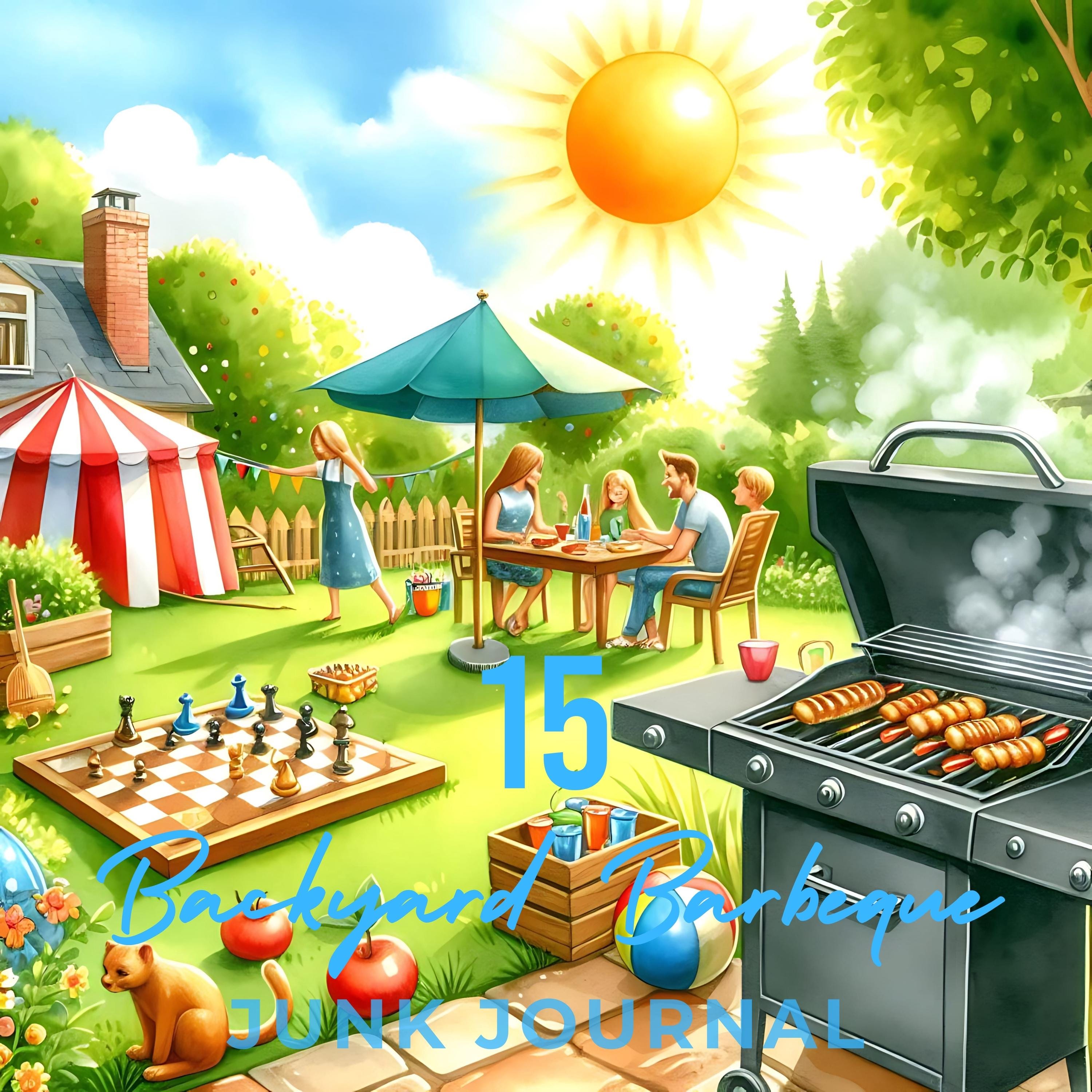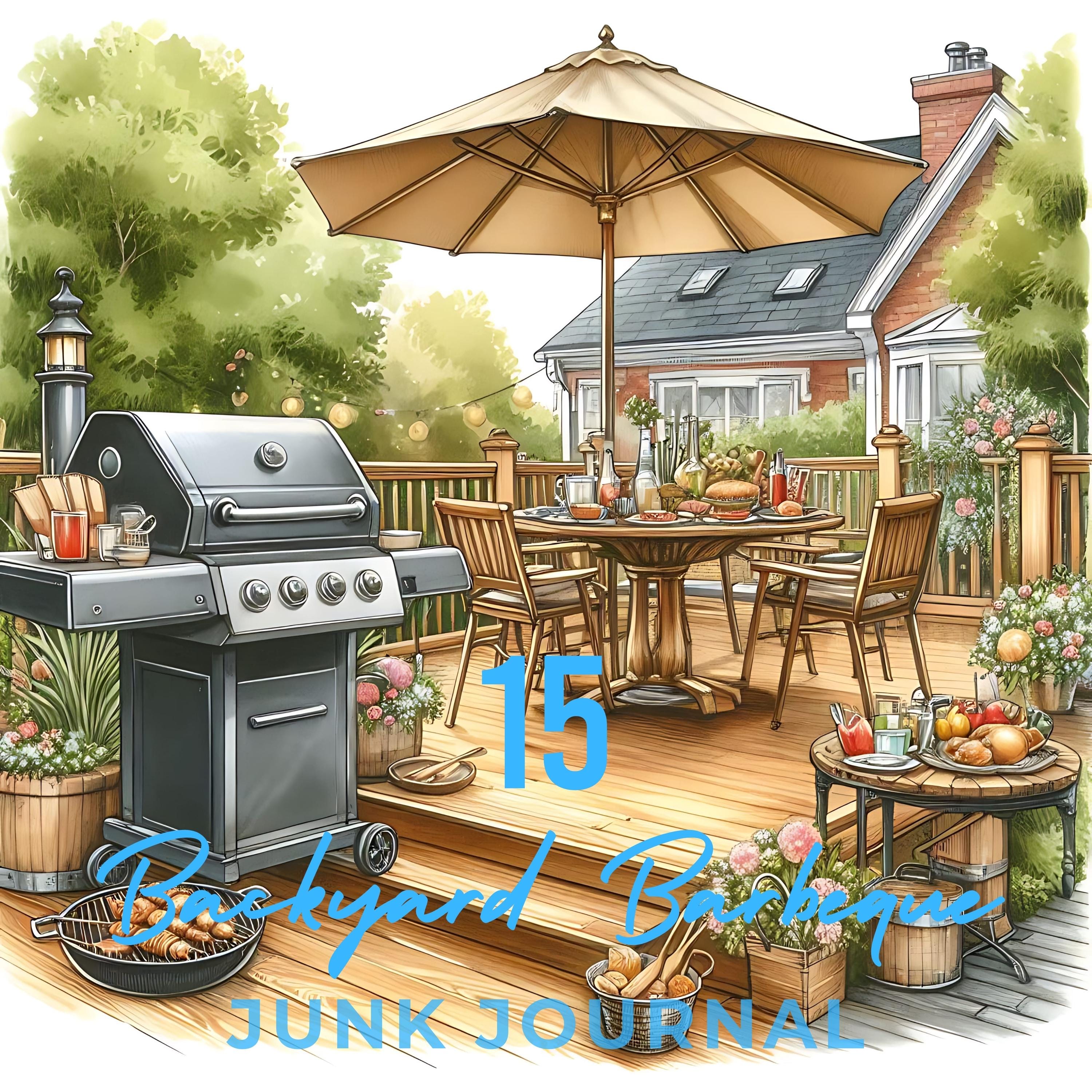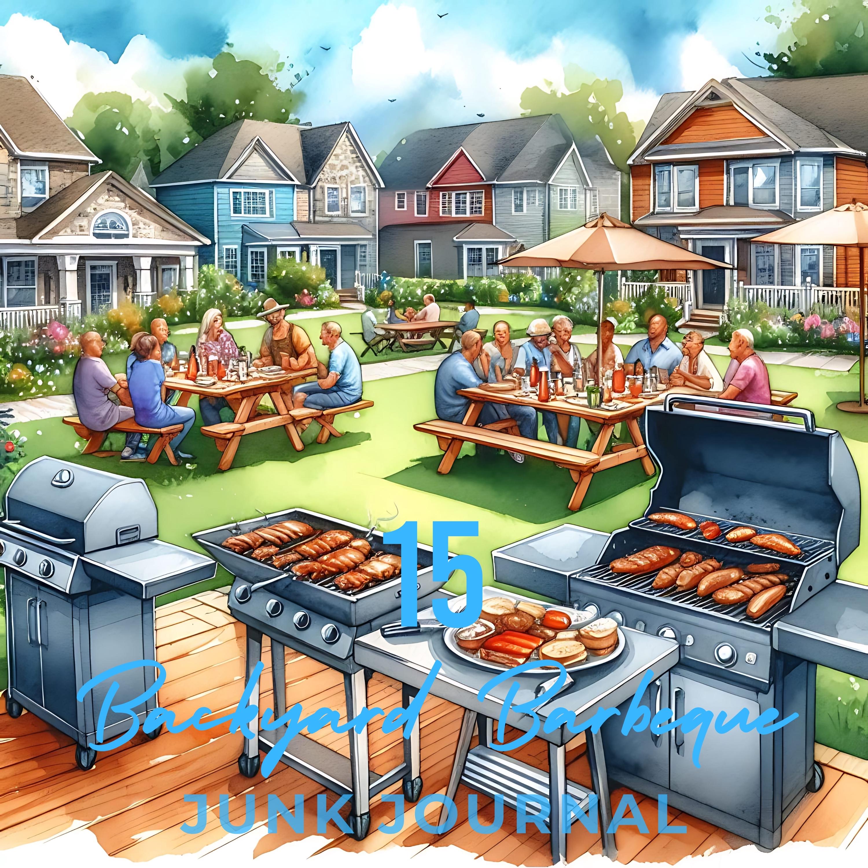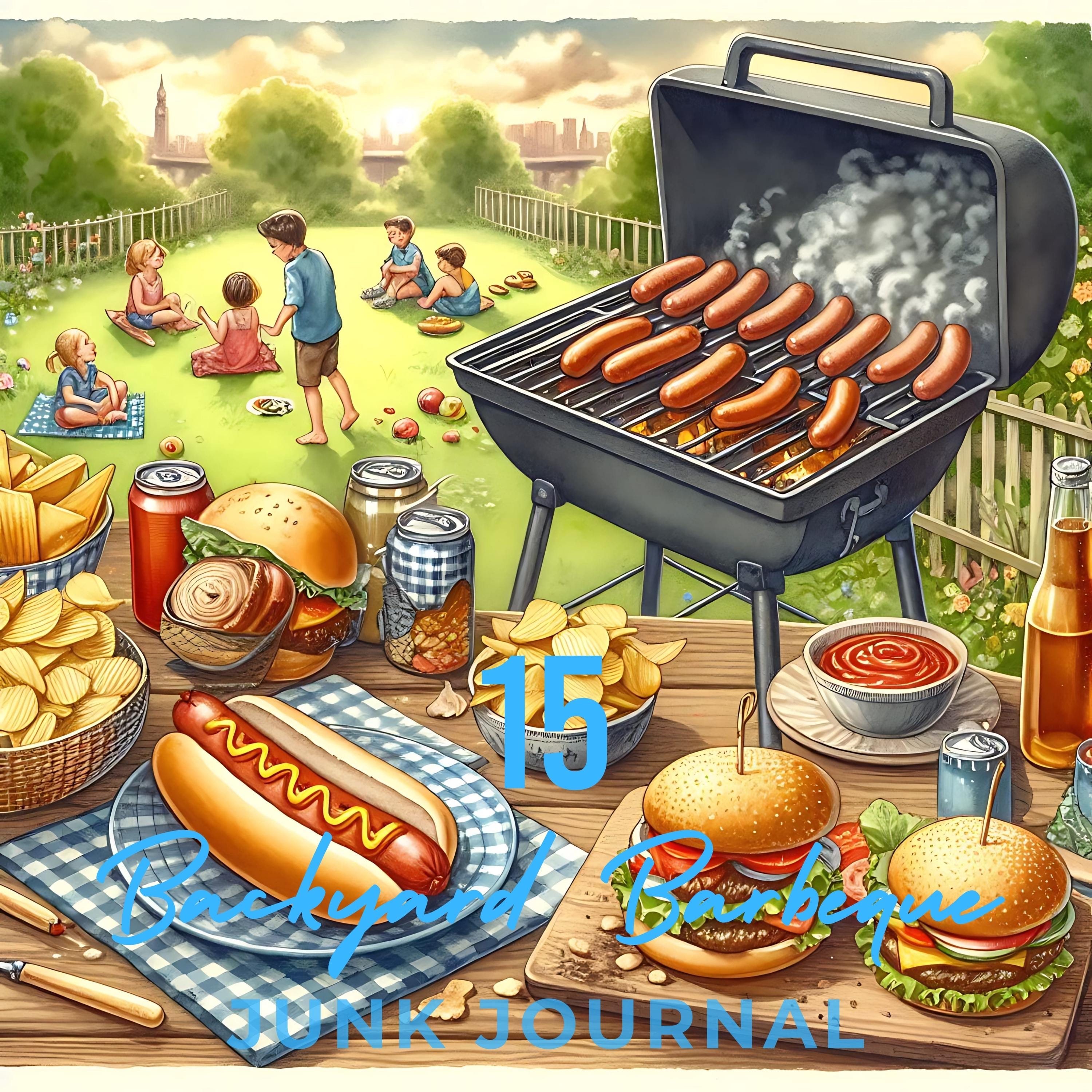 15 Backyard Barbeque Scrapbooking Paper Pack | Watercolor Summer-Themed Digital Paper JPG | BBQ Background Picnic Junk Journal Illustrations is an eye-catching, high-resolution digital asset designed for creators, crafters, teachers, and small business owners looking to elevate their visuals.