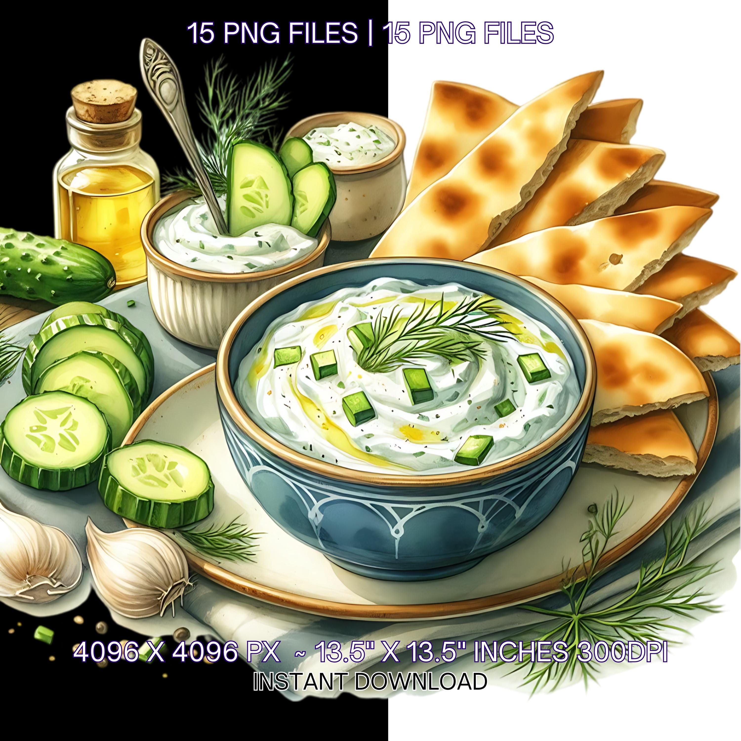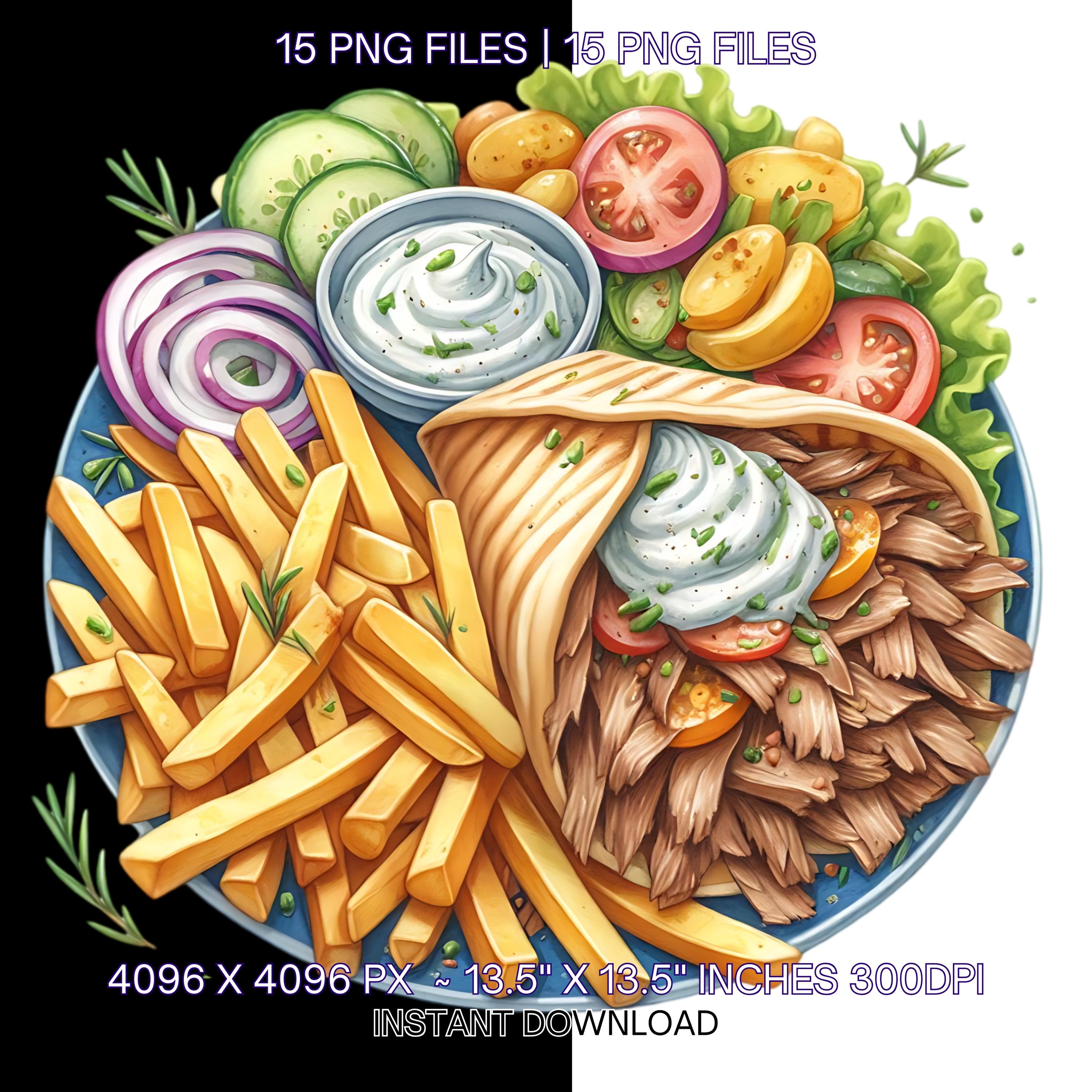 15 Greek Food Illustration PNG | Watercolour Food Transparent Clipart | Greek Salad, Souvlaki, Gyro, Tzatziki Food JPGs PNGs Commercial Use is an eye-catching, high-resolution digital asset designed for creators, crafters, teachers, and small business owners looking to elevate their visuals.