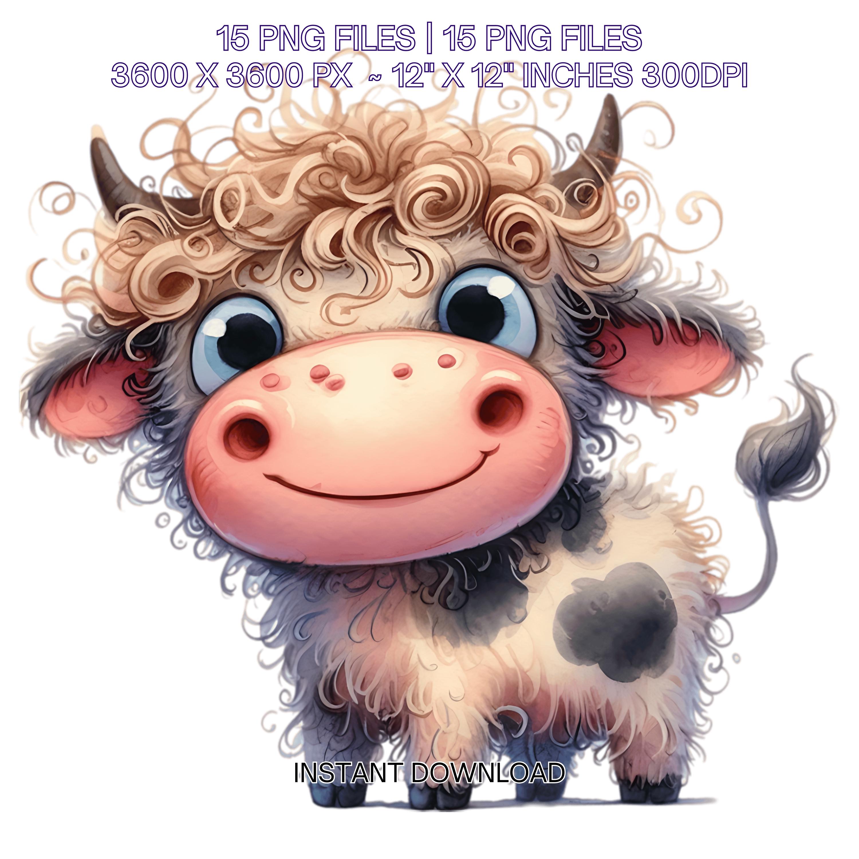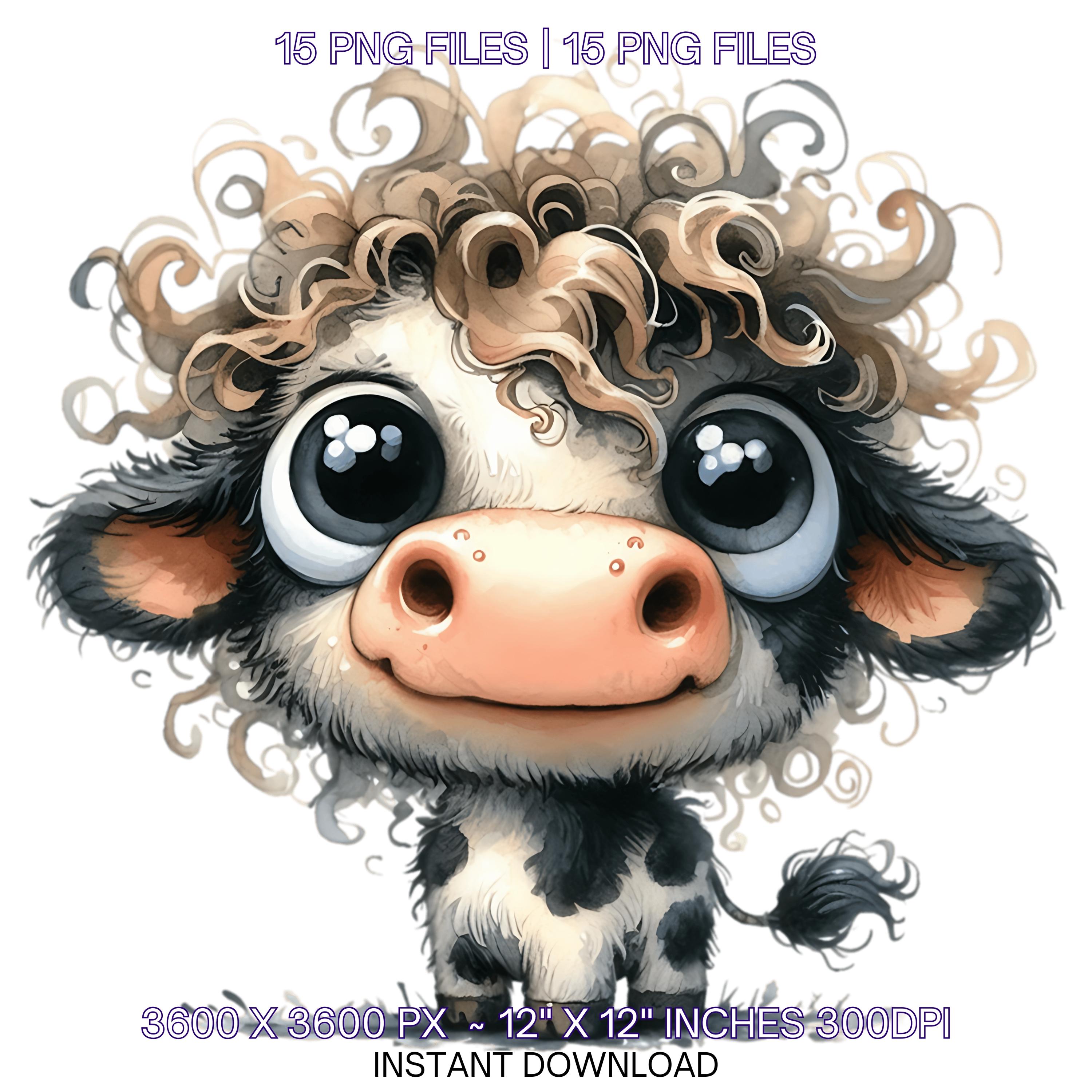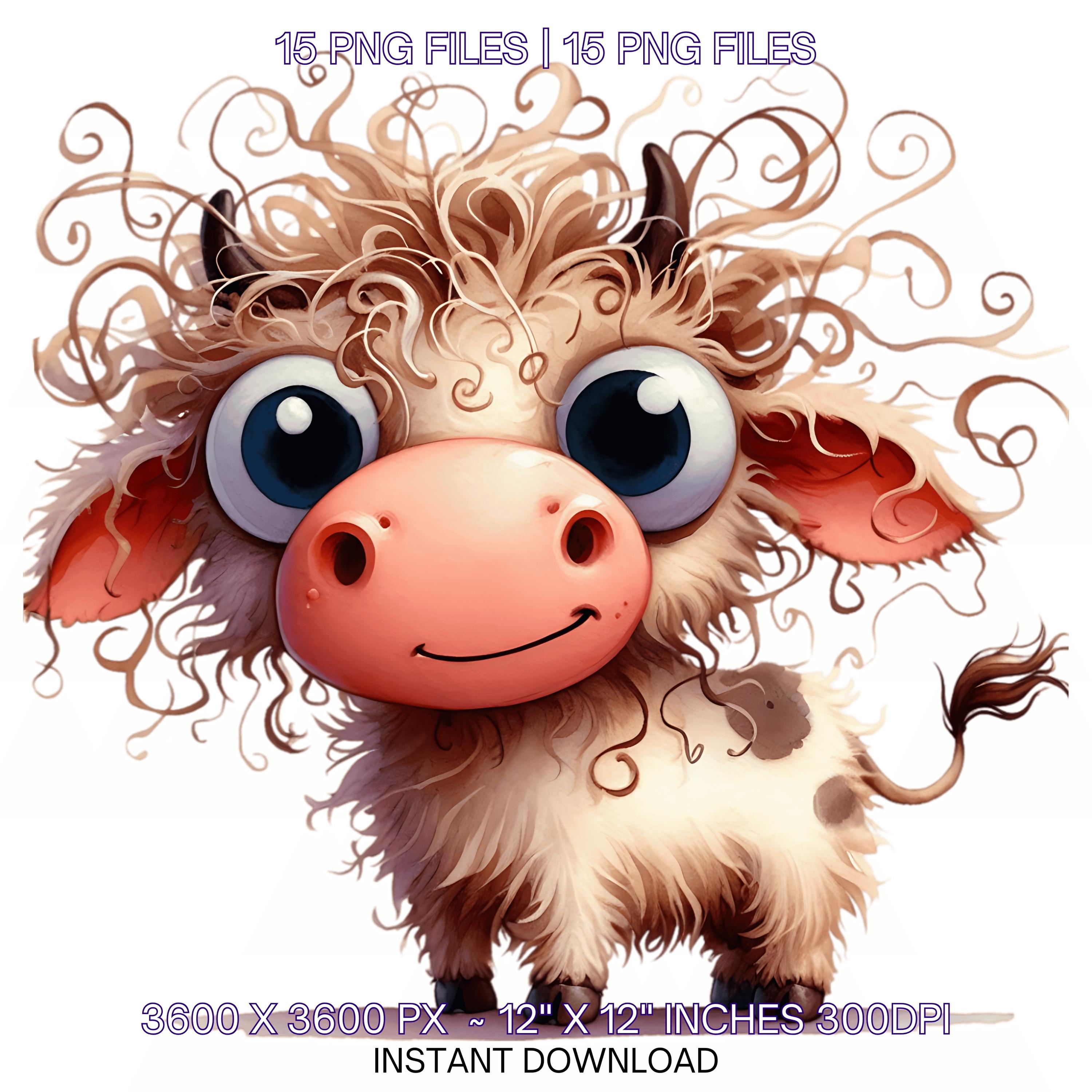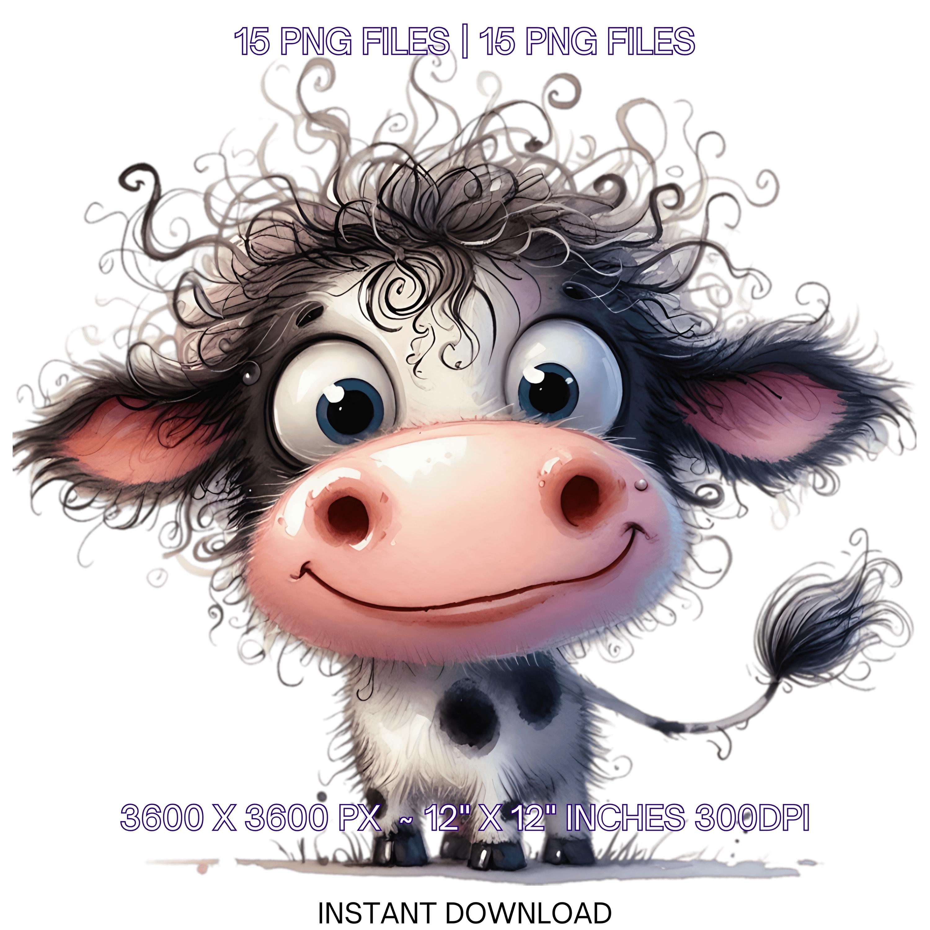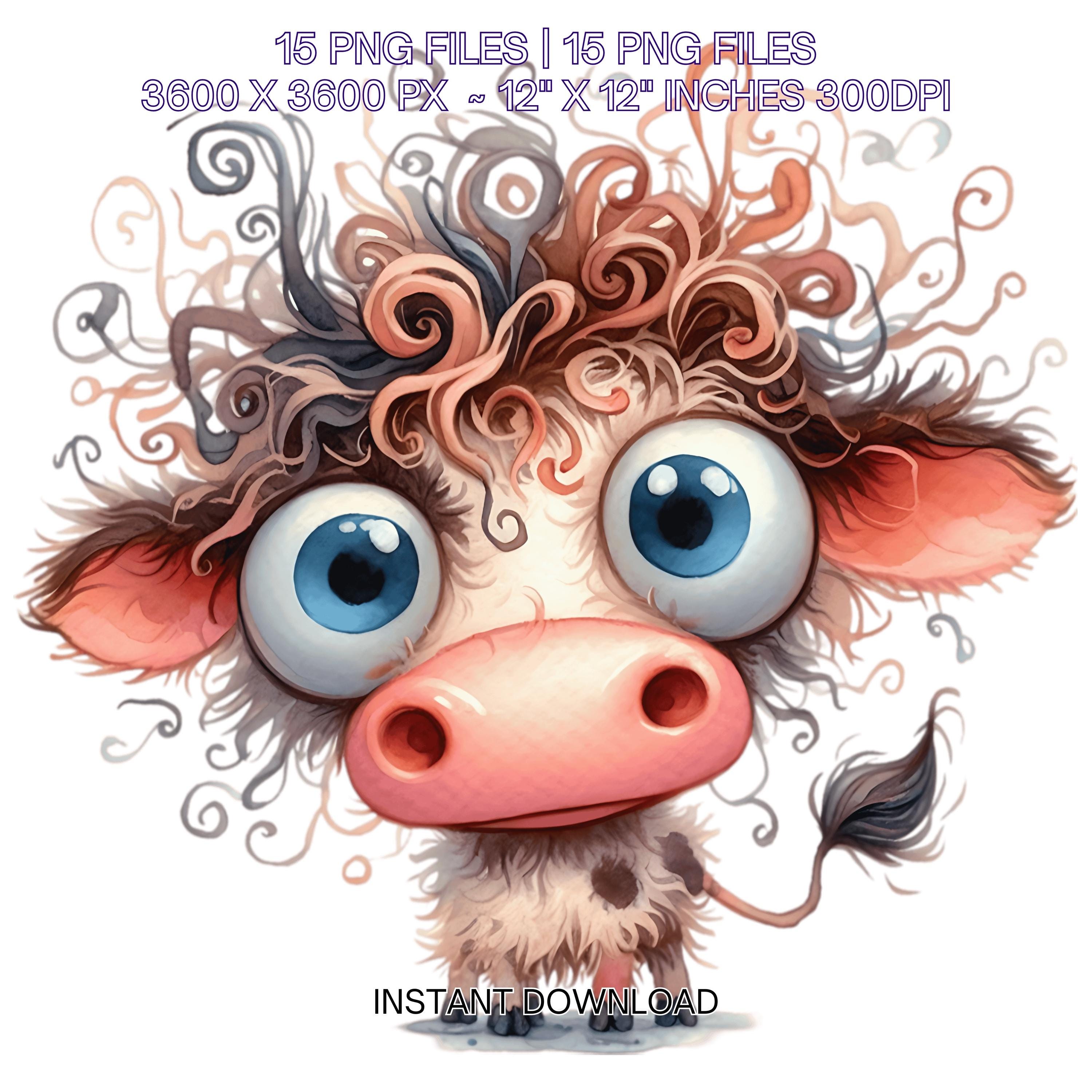 16 Cute Frazzled Quirky Cow with Messy Hair and a Big Smile Clip Art | Quirky Frazzled Cattle Whimsical Scrapbooking Commercial Use is an eye-catching, high-resolution digital asset designed for creators, crafters, teachers, and small business owners looking to elevate their visuals.