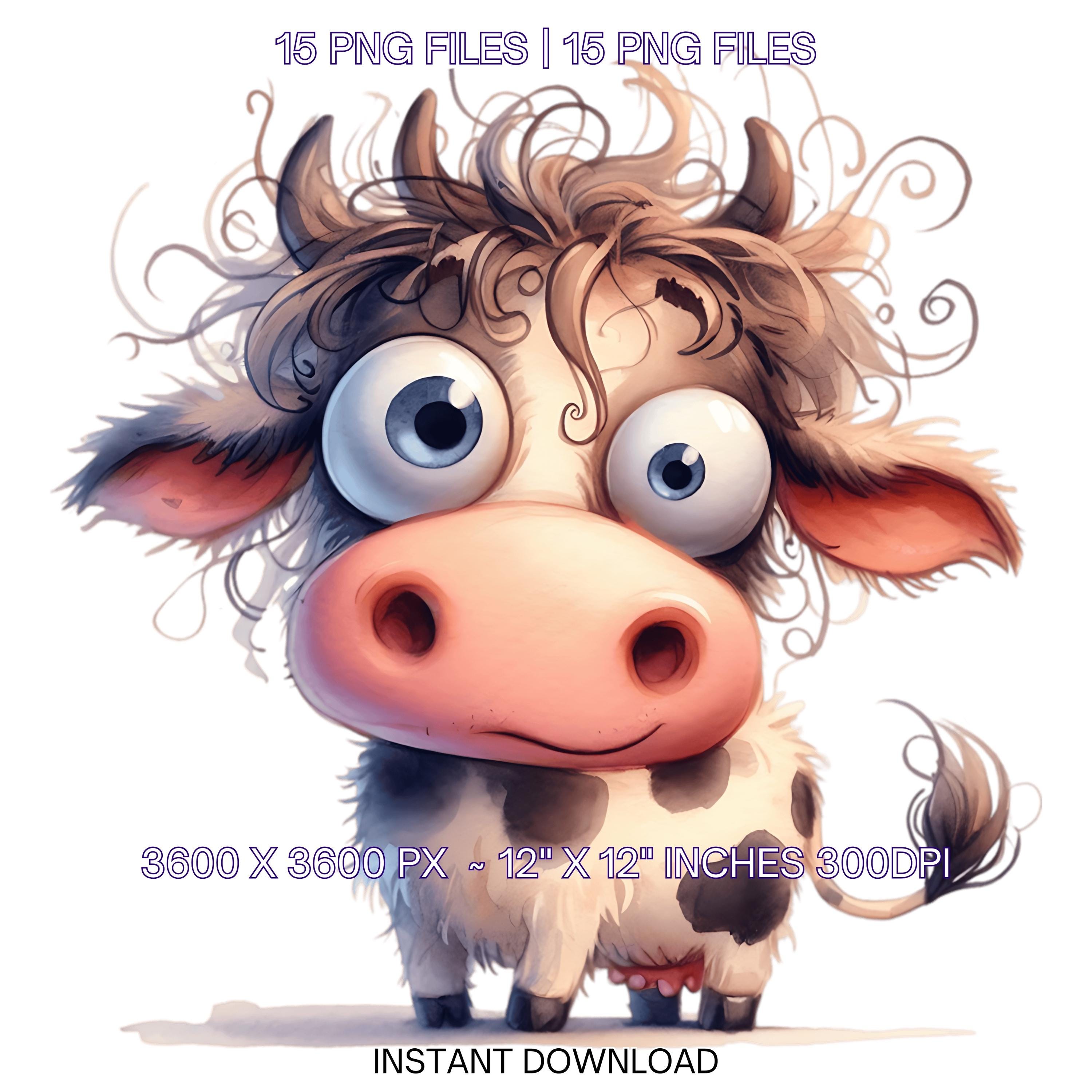 16 Cute Frazzled Quirky Cow with Messy Hair and a Big Smile Clip Art | Quirky Frazzled Cattle Whimsical Scrapbooking Junk Journaling Card Making Commercial Use