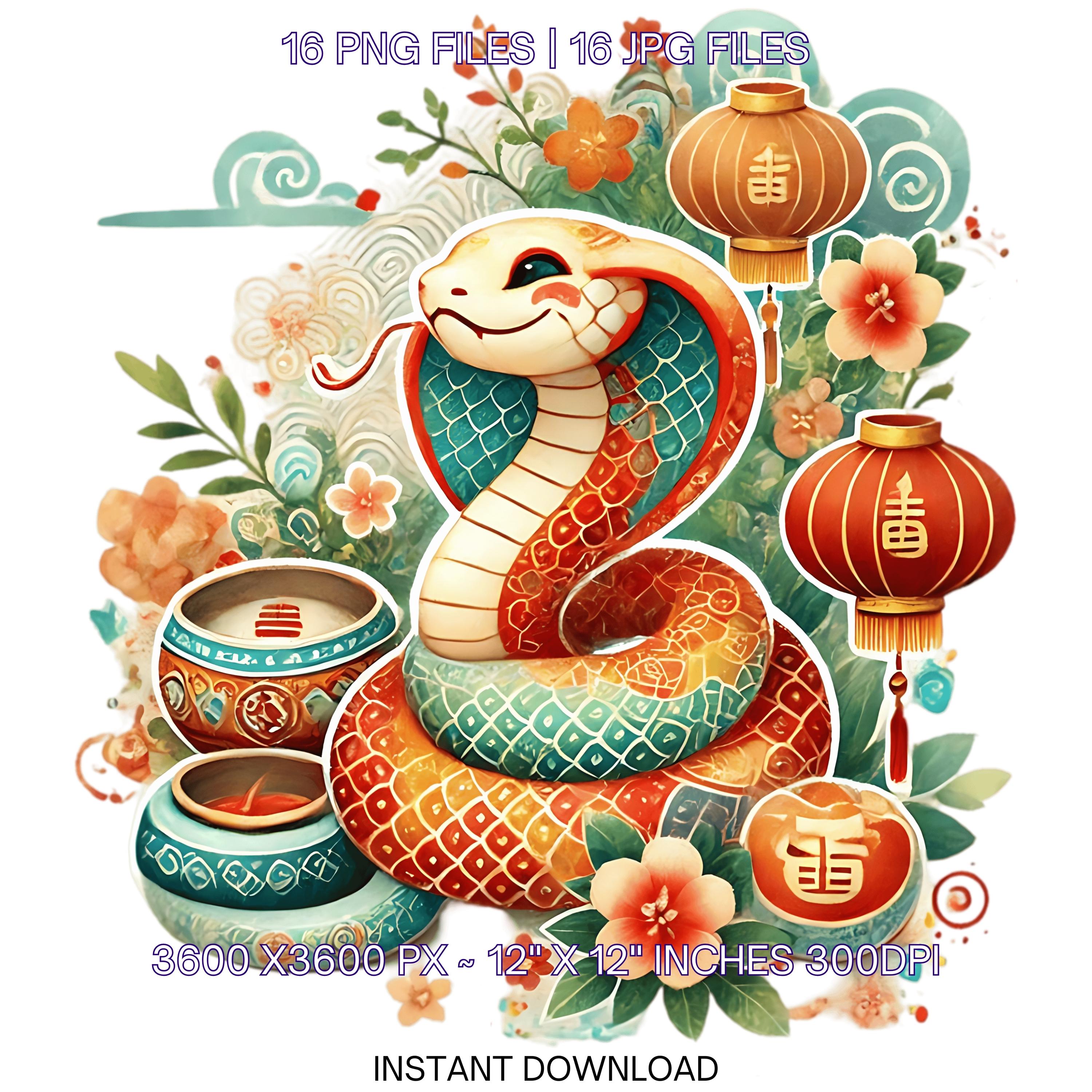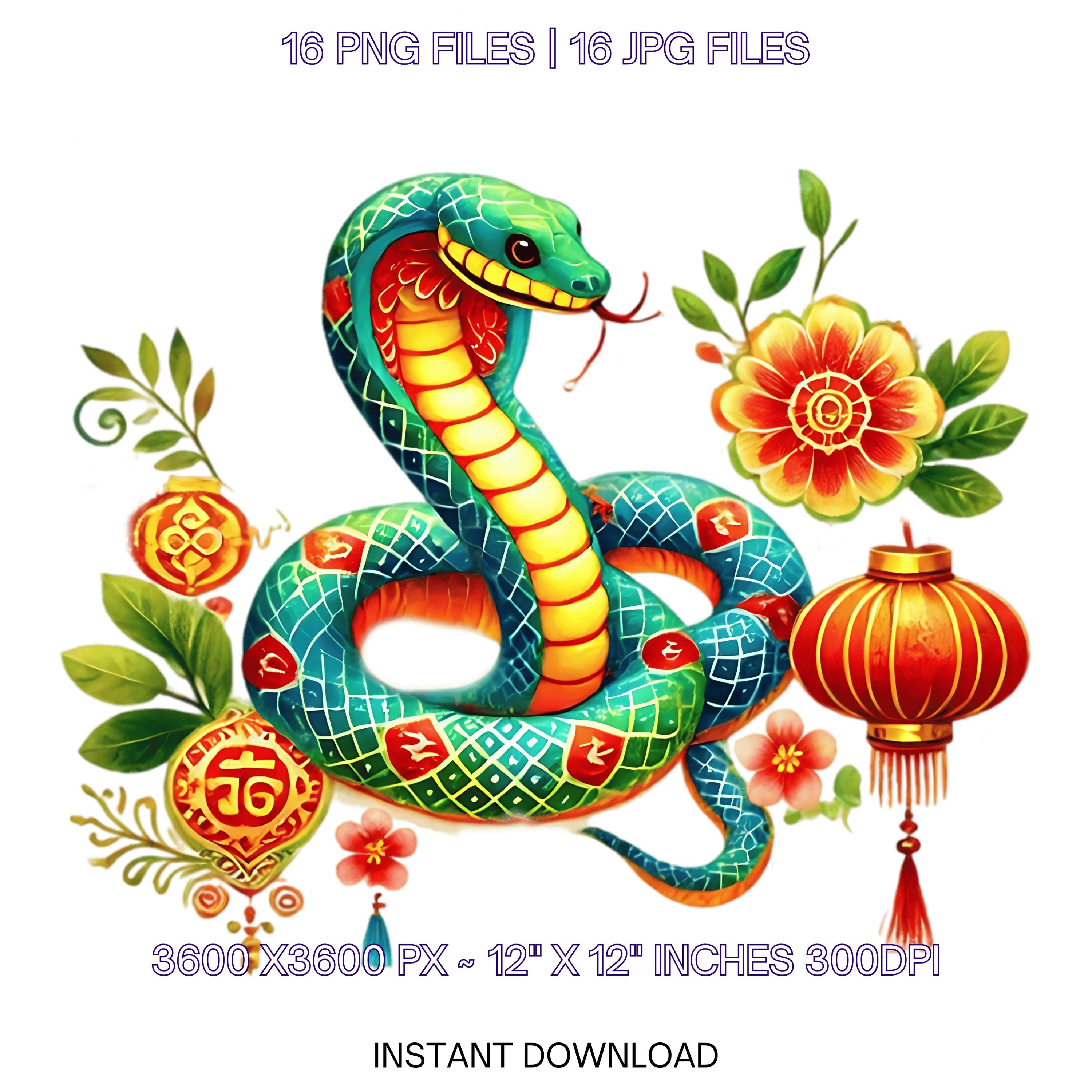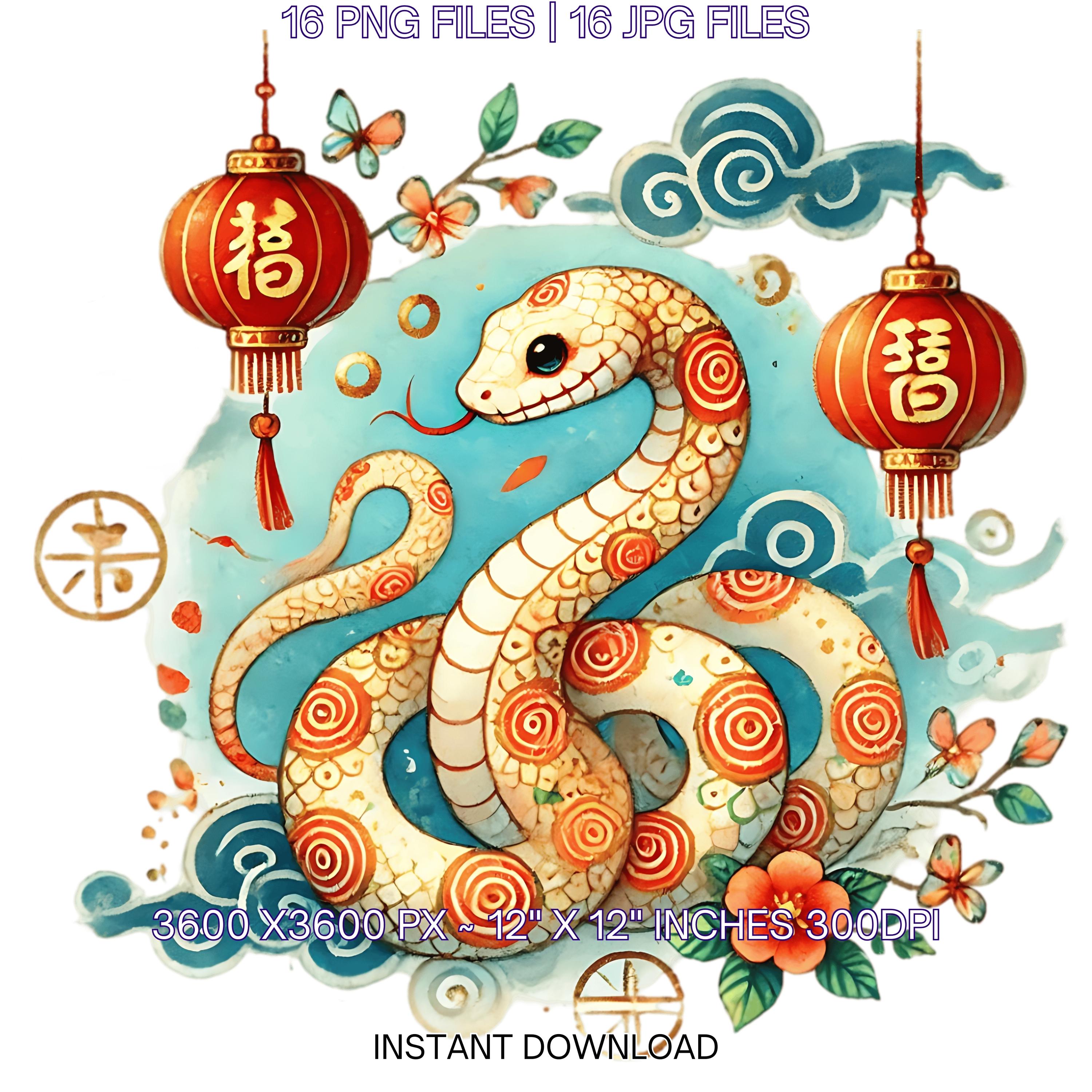 16 Snake PNG Clipart Sublimation | Year of the Snake | Watercolor Chinese New Year Party | Dragon and Snake PNG Transparent Commercial Use is an eye-catching, high-resolution digital asset designed for creators, crafters, teachers, and small business owners looking to elevate their visuals.