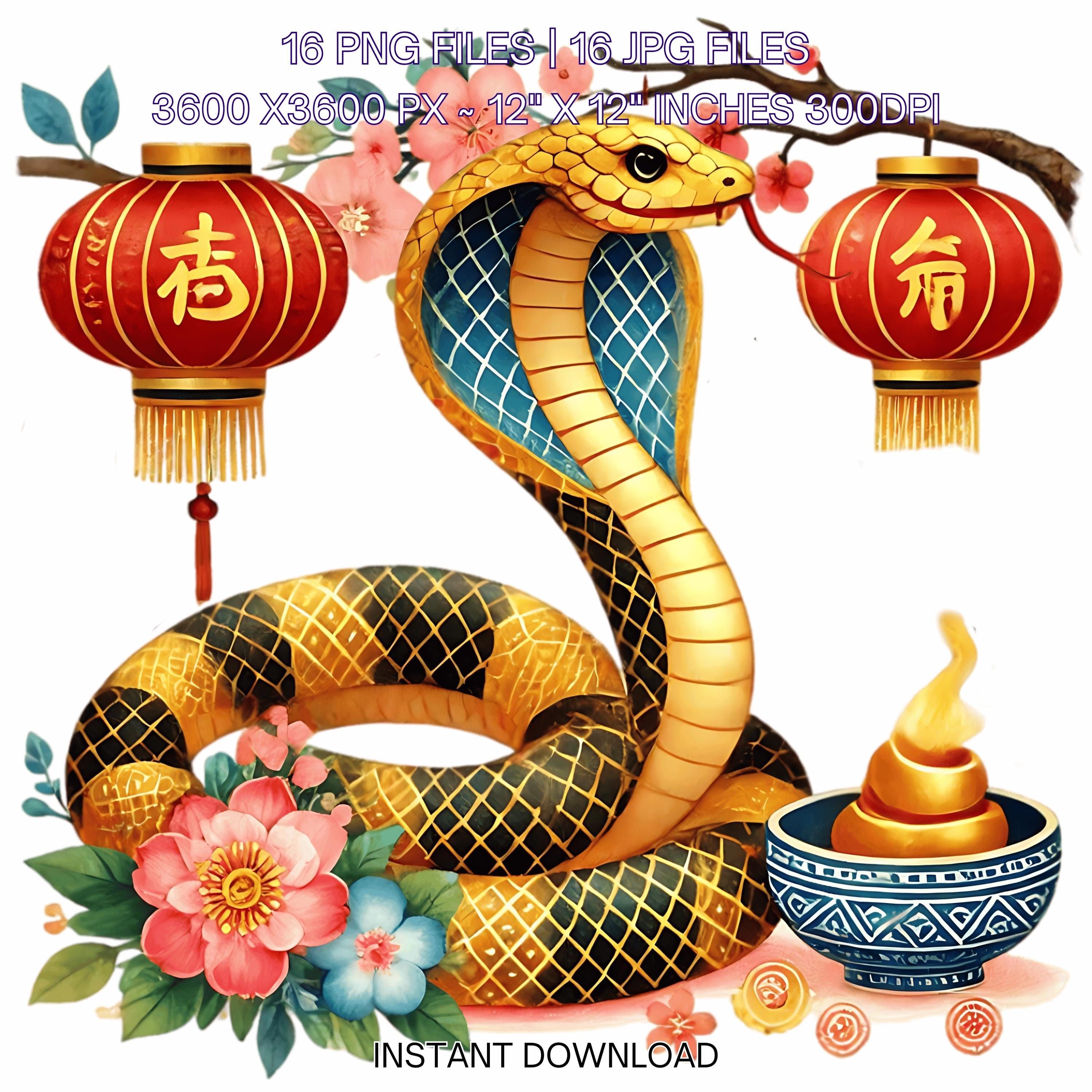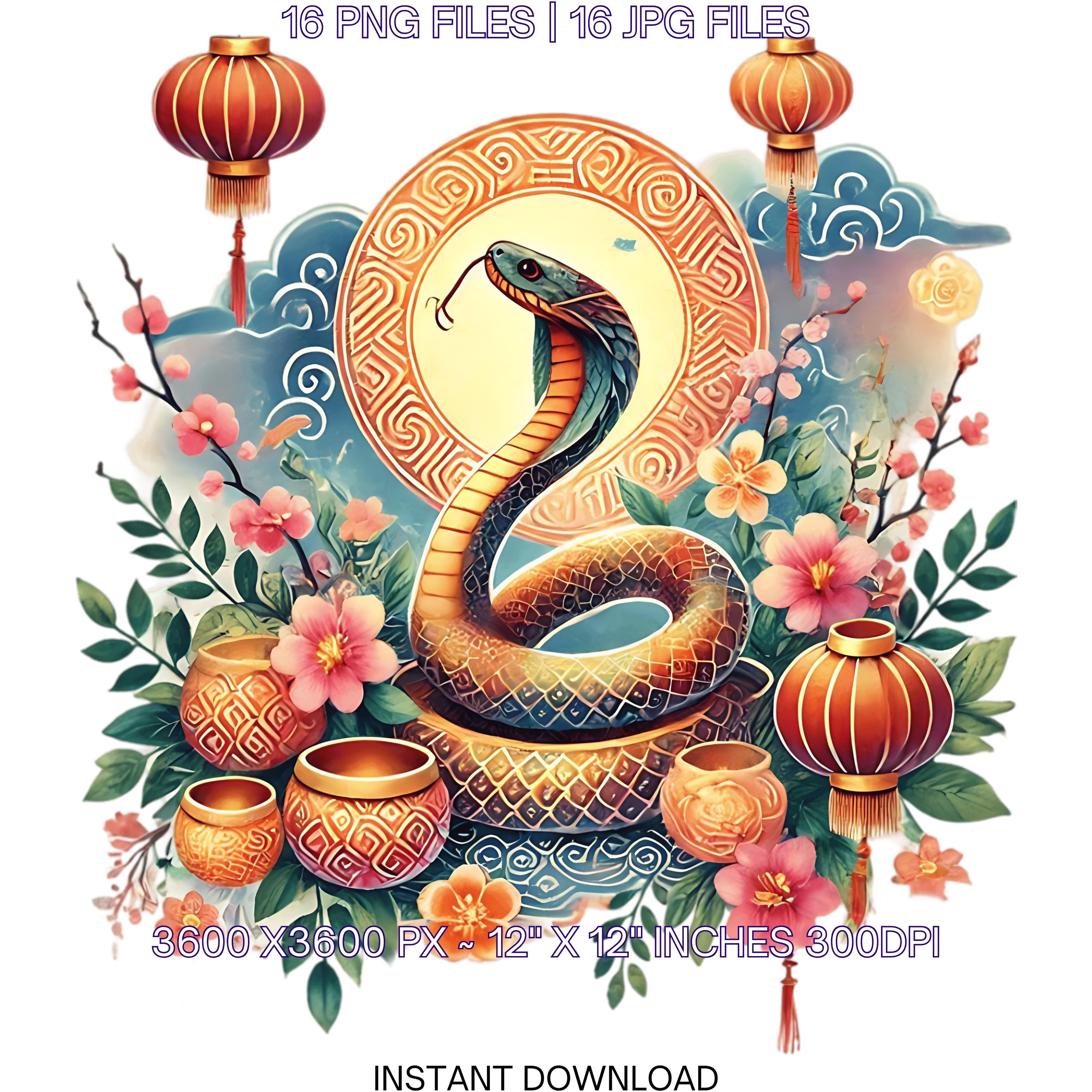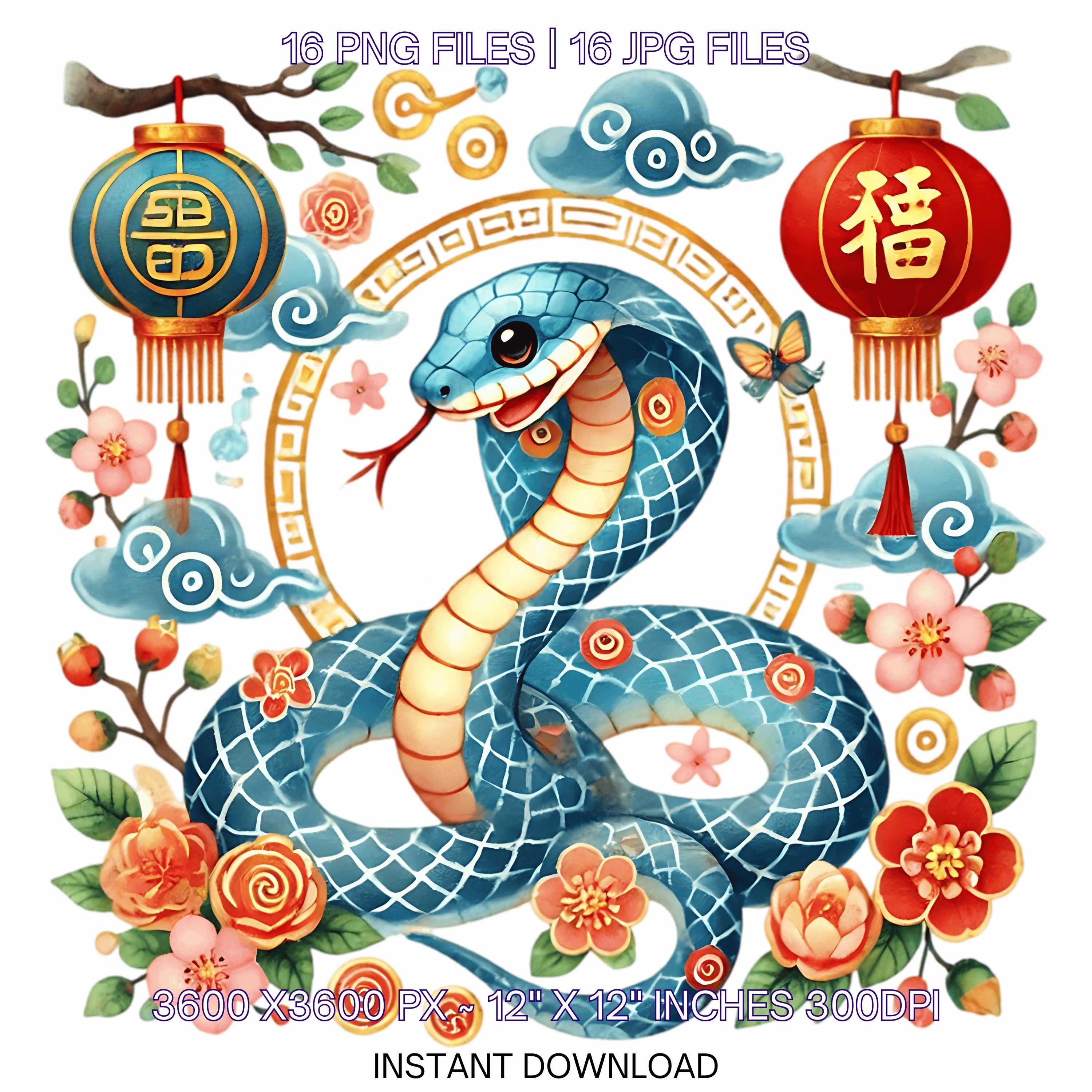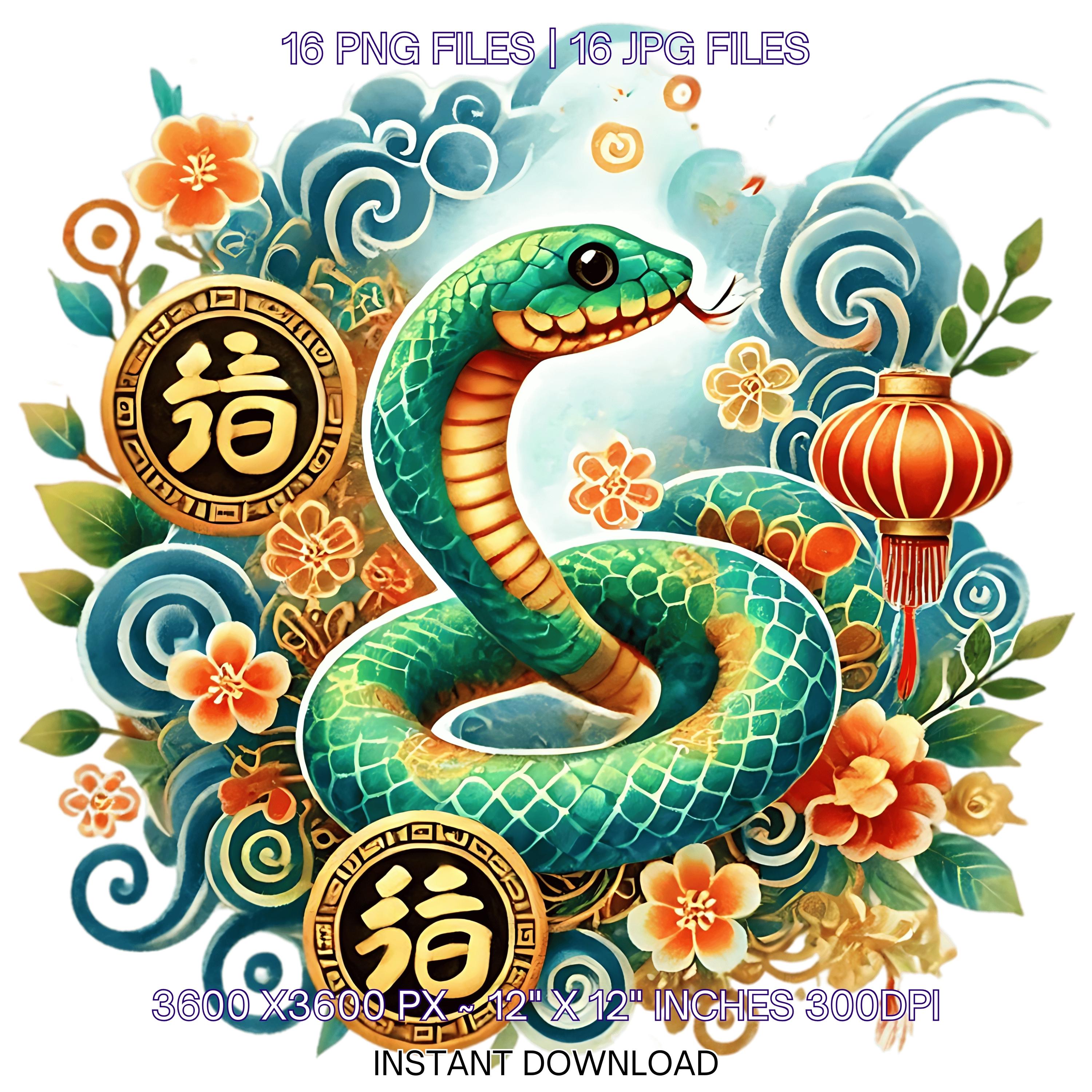 16 Snake PNG Clipart Sublimation | Year of the Snake | Watercolor Chinese New Year Party | Dragon and Snake PNG Transparent Commercial Use is an eye-catching, high-resolution digital asset designed for creators, crafters, teachers, and small business owners looking to elevate their visuals.