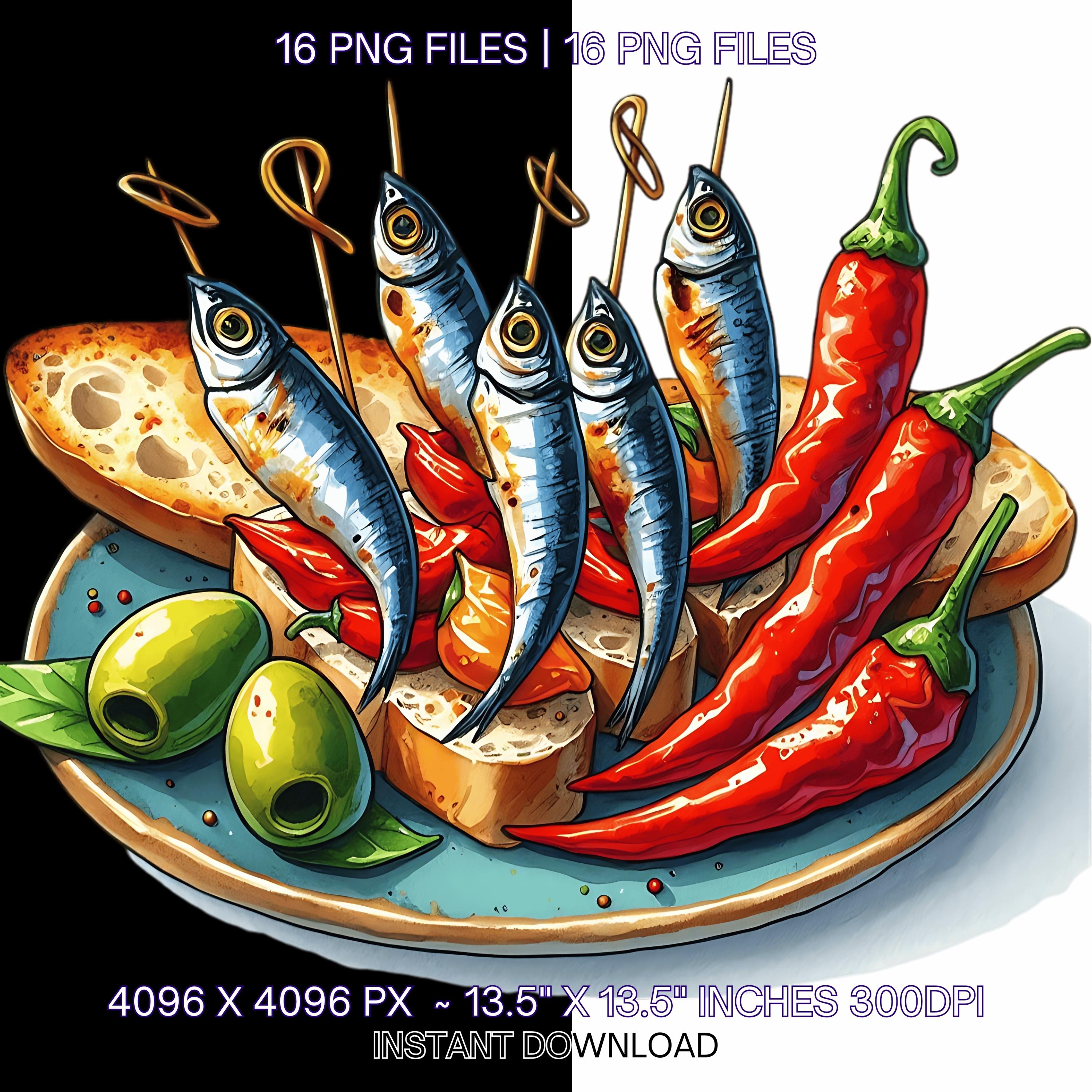 16 Spanish Food Clipart PNG | Watercolour Iberico Food Transparent Clipart | Food Stickers | Food Illustration JPGs PNGs Commercial Use is an eye-catching, high-resolution digital asset designed for creators, crafters, teachers, and small business owners looking to elevate their visuals.