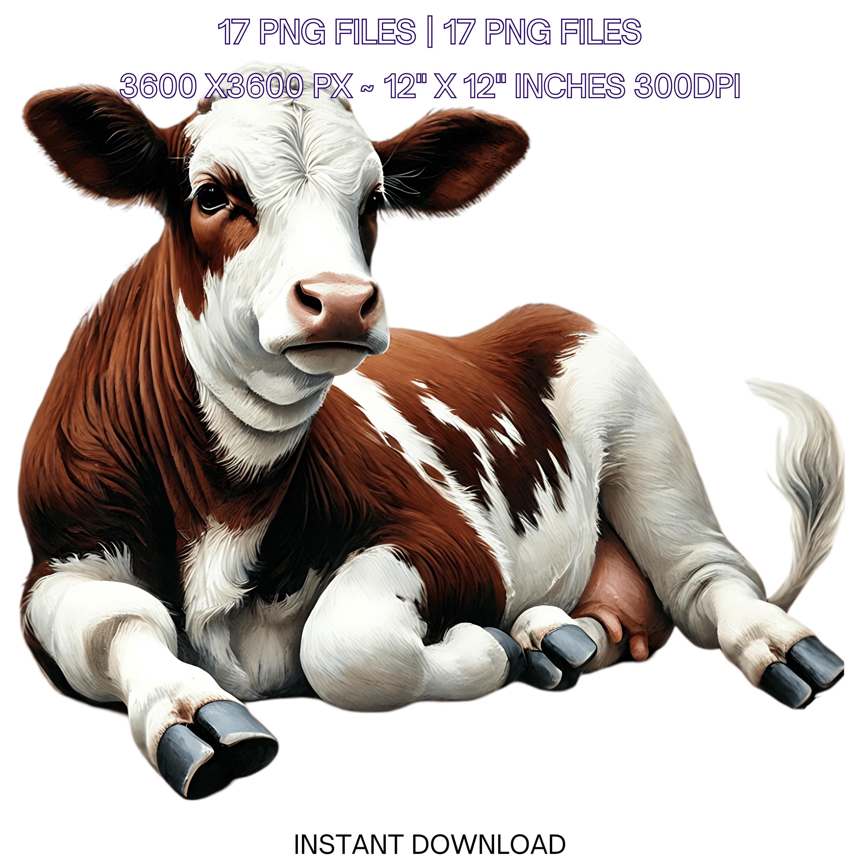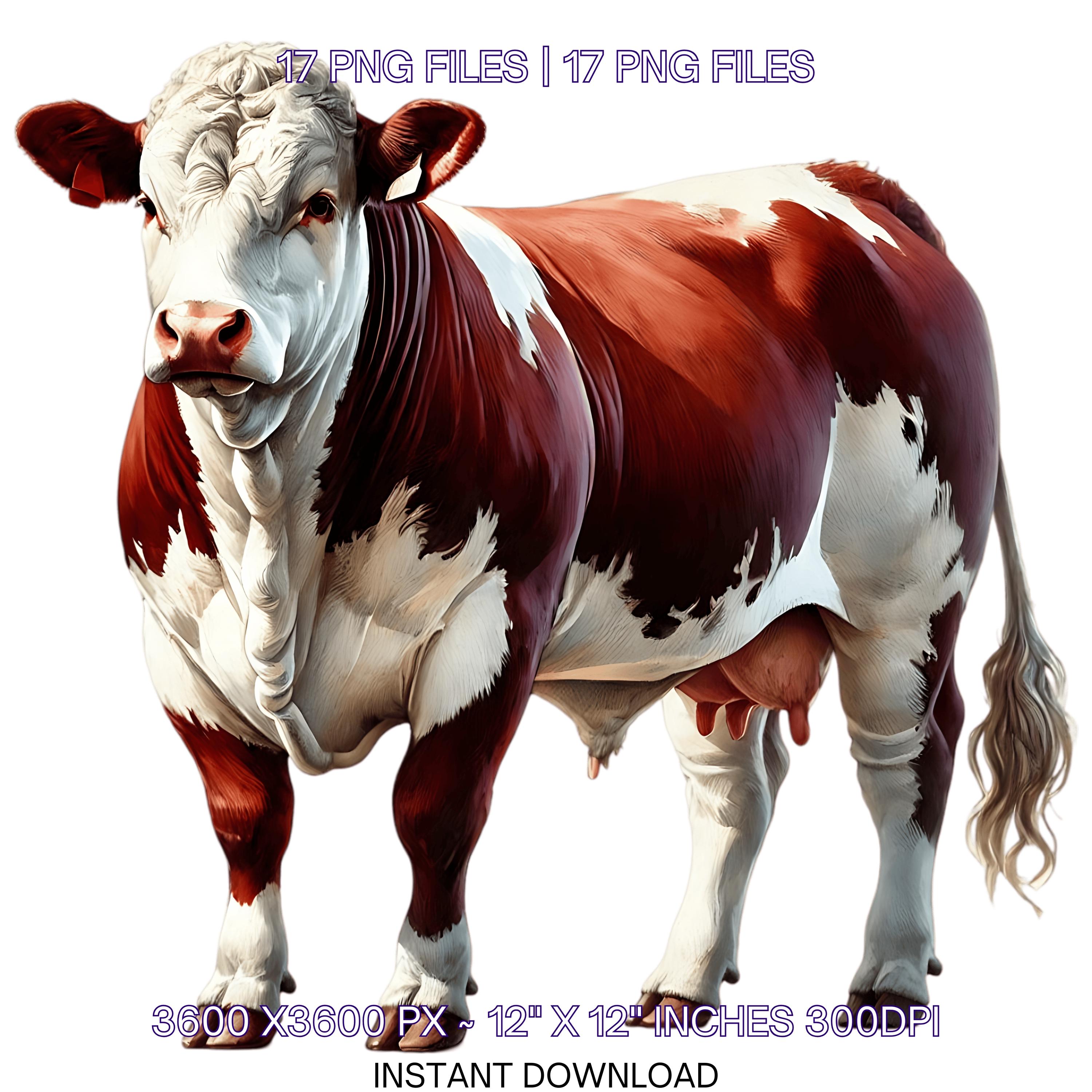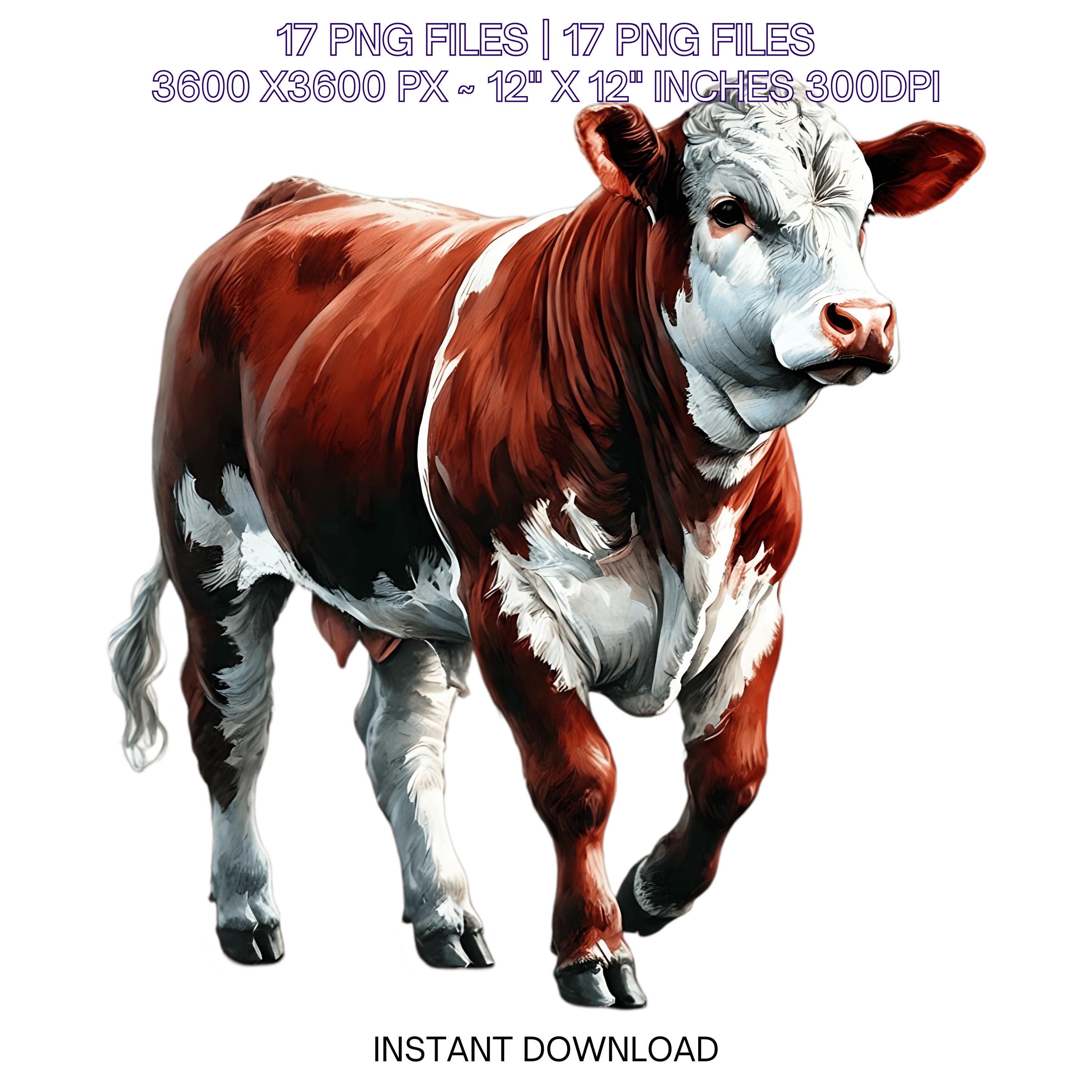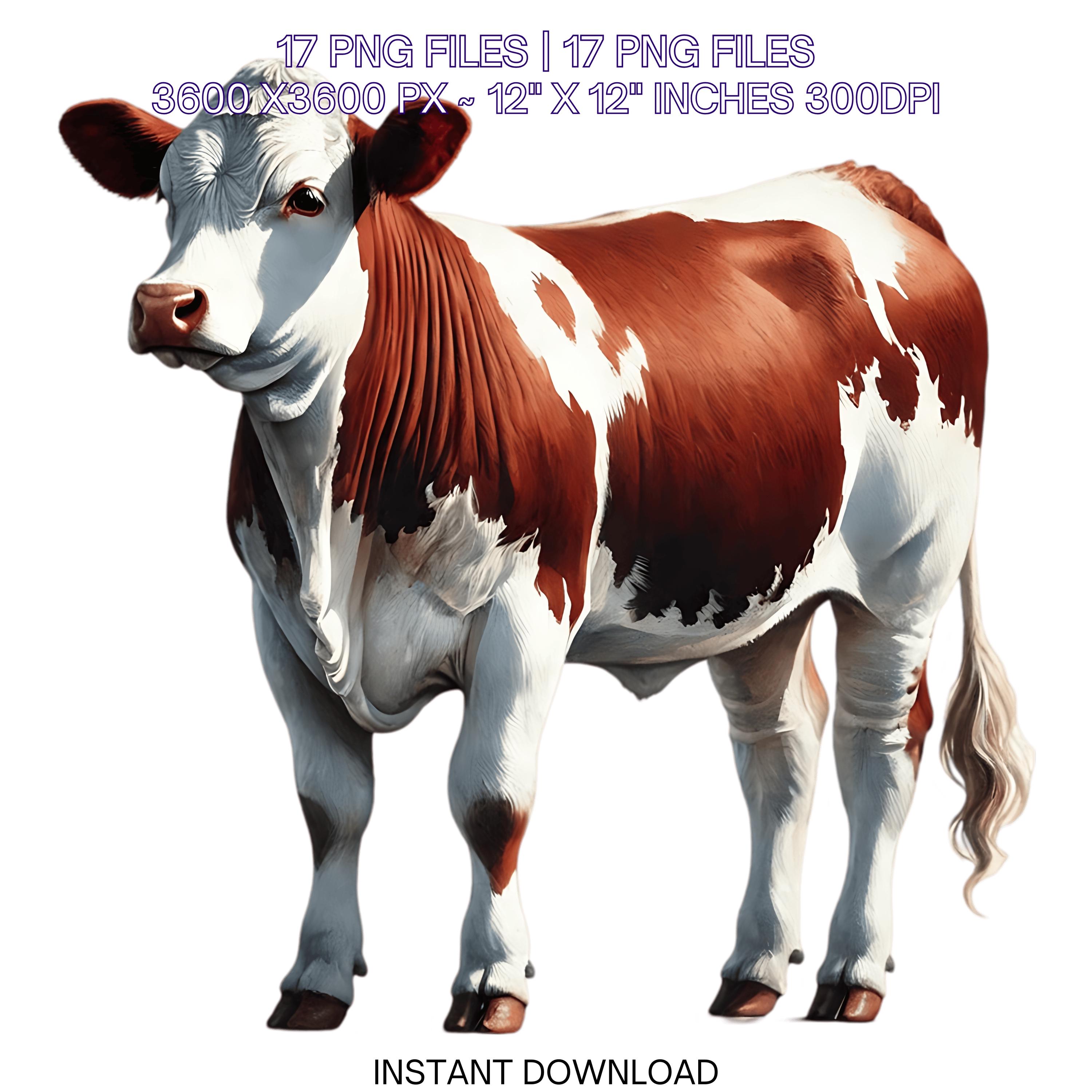 17 Simmental Cattle PNG Clipart, Watercolor Farm Animals Cows for Card Making, Scrapbooking Junk Journaling Sublimation Image Commercial Use is an eye-catching, high-resolution digital asset designed for creators, crafters, teachers, and small business owners looking to elevate their visuals.
