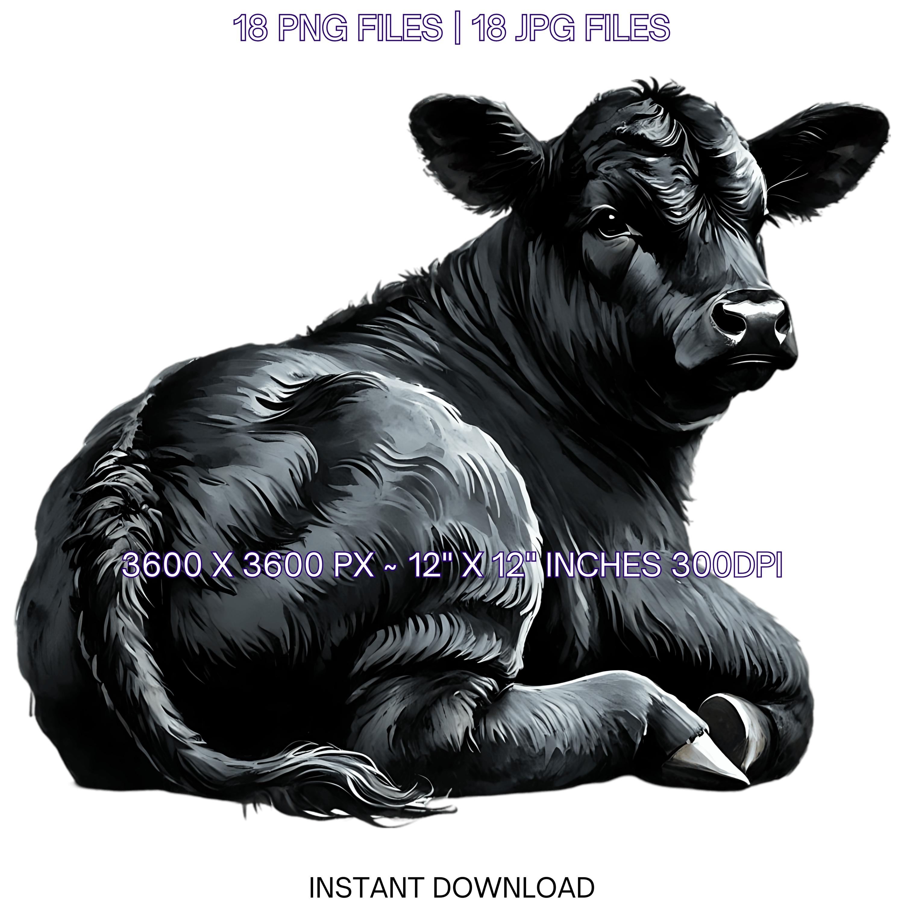 18 Black Angus Cattle PNG Clipart, Watercolor Farm Animals Cows Card Making, Scrapbooking, Junk Journaling, Sublimation Image Commercial Use is an eye-catching, high-resolution digital asset designed for creators, crafters, teachers, and small business owners looking to elevate their visuals.