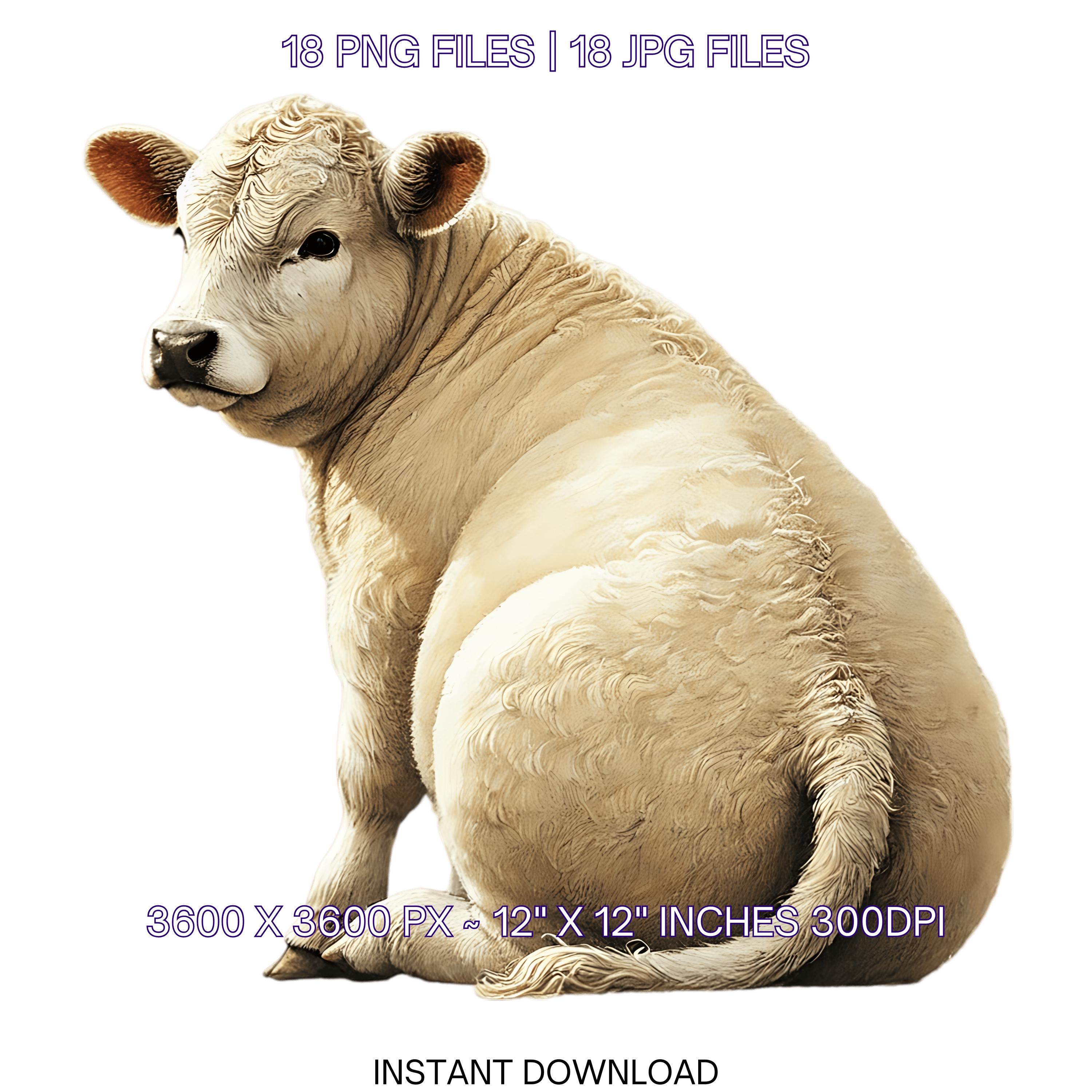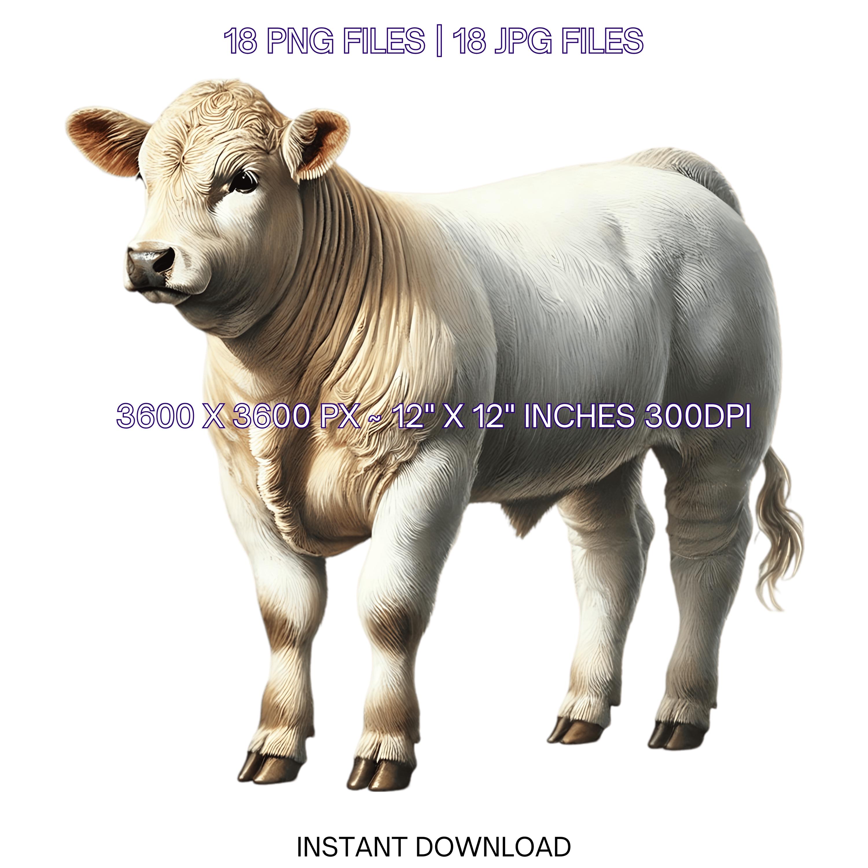18 Charolais Cattle PNG Clipart, Watercolor Farm Animals Cow for Card Making, Scrapbooking Junk Journaling, Sublimation Image Commercial Use is an eye-catching, high-resolution digital asset designed for creators, crafters, teachers, and small business owners looking to elevate their visuals.