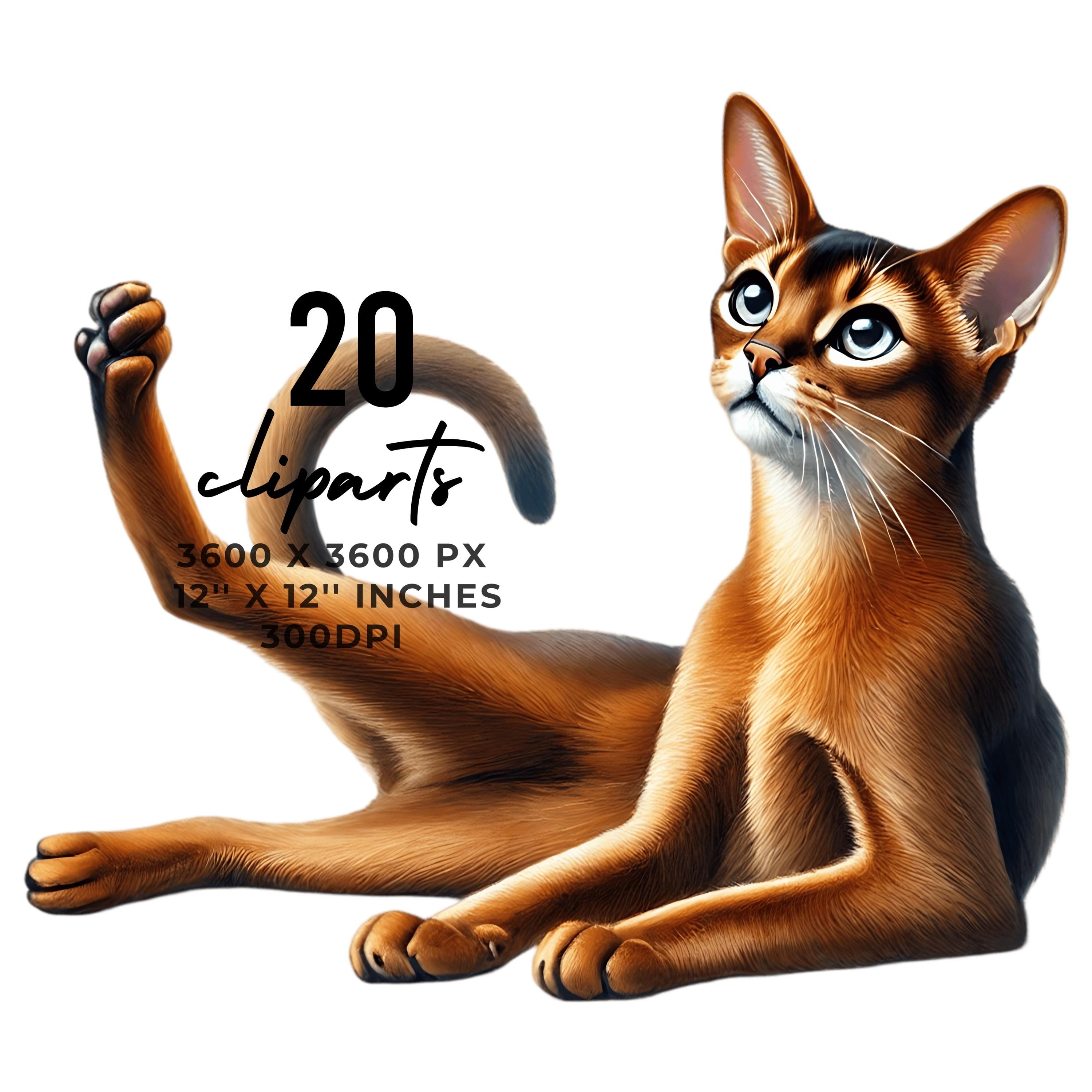 20 Abyssinian Cat PNG Clipart, Watercolor Cats as Pets for Card Making, Scrapbooking, Junk Journaling, Sublimation Illustrations, Pet Portrait, Commercial Use