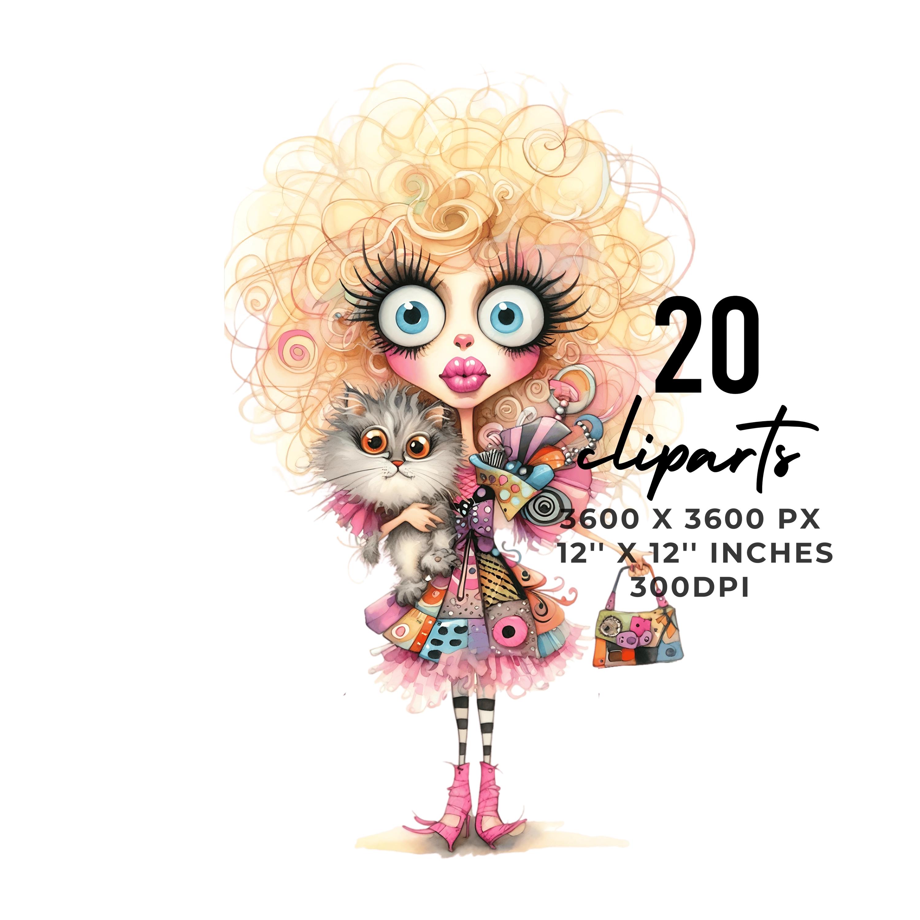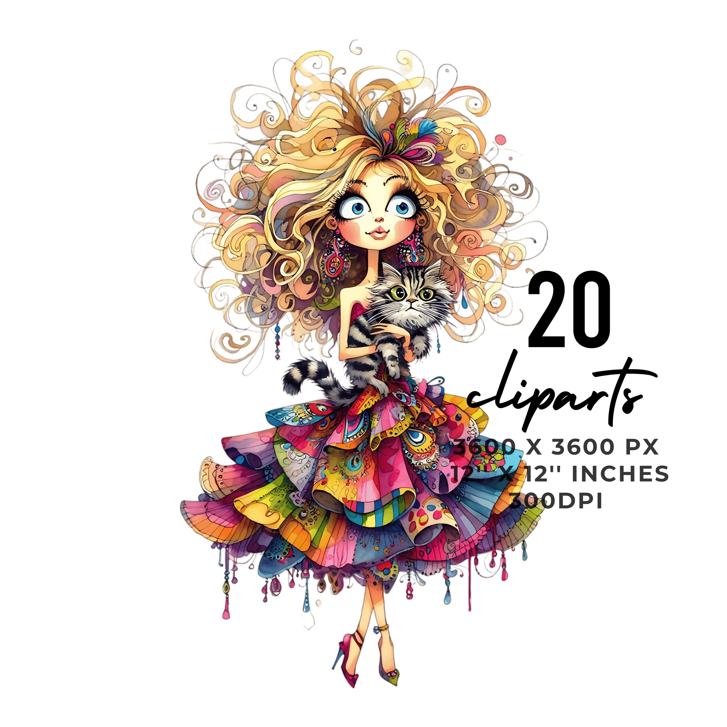 20 Crazy Cat Lady Clipart PNG | Quirky Haute Couture Cat Lady | Whimsical Scrapbooking Junk Journaling and Card Making Kit | Commercial Use is an eye-catching, high-resolution digital asset designed for creators, crafters, teachers, and small business owners looking to elevate their visuals.