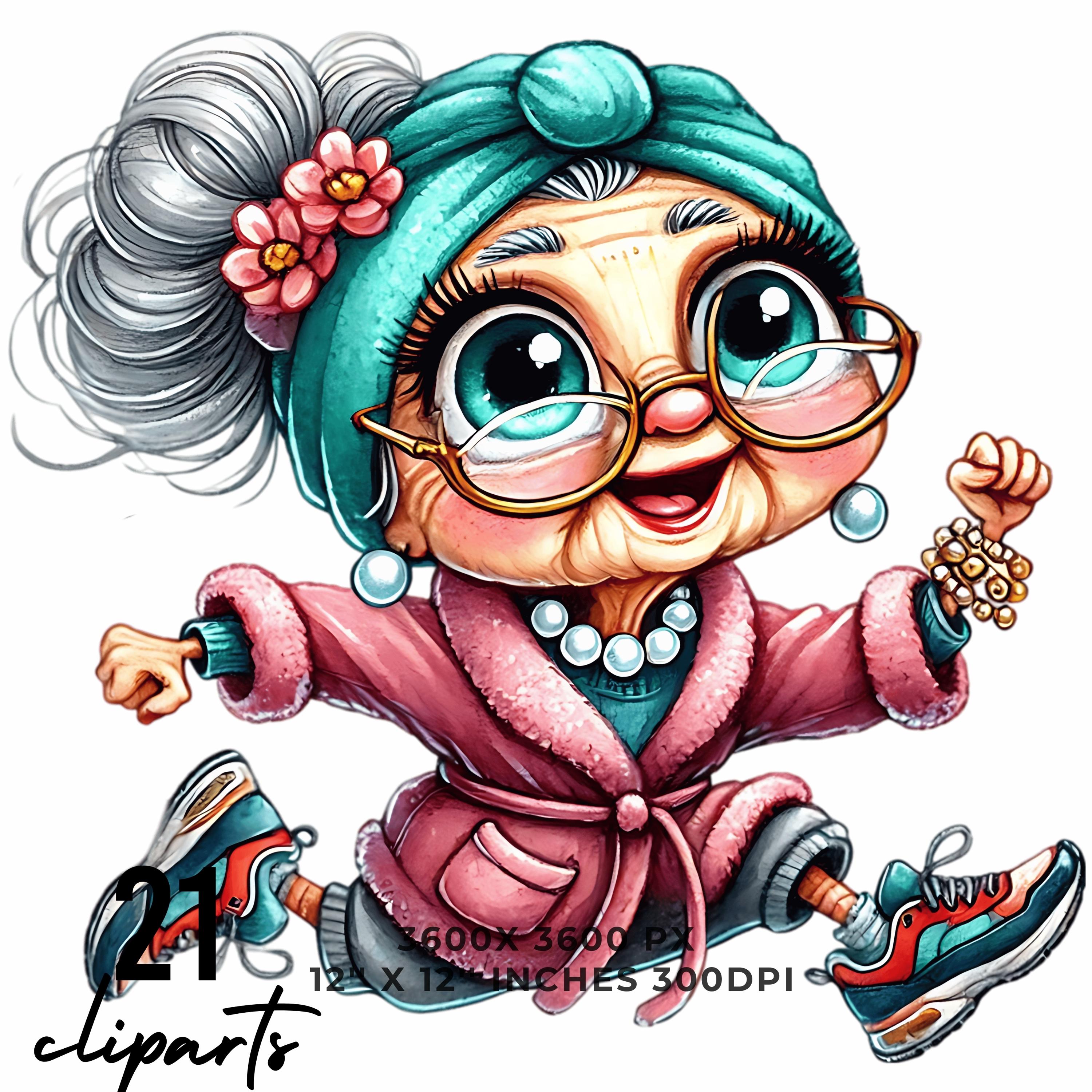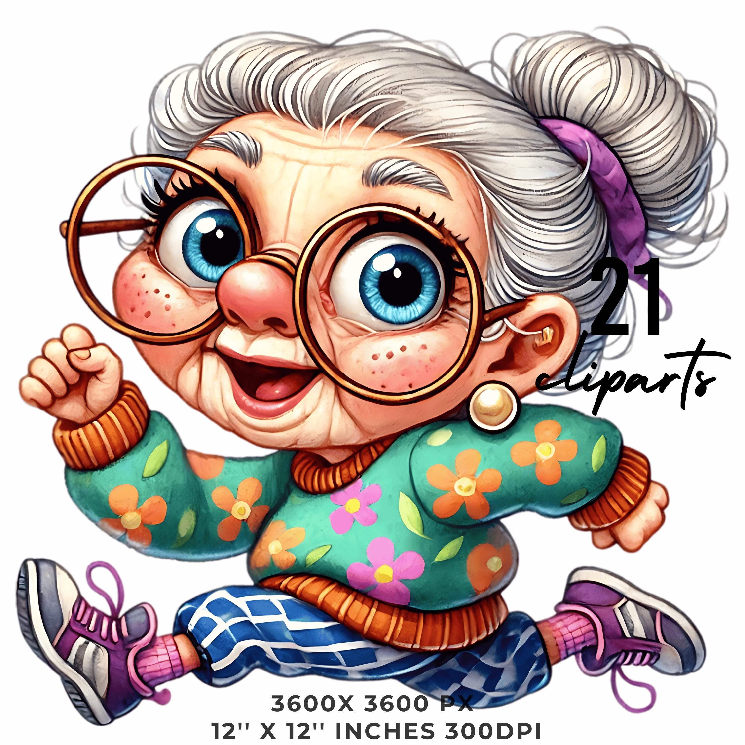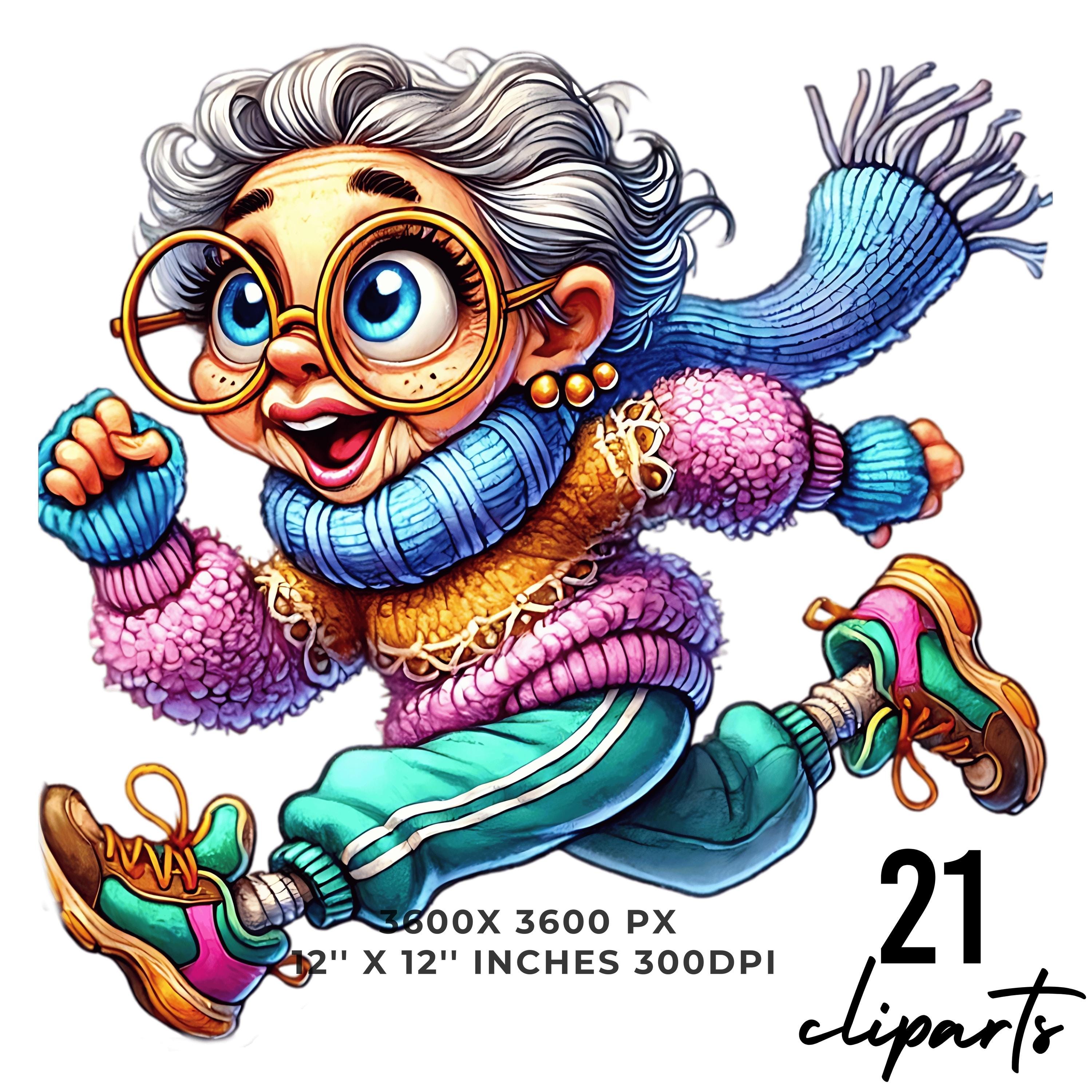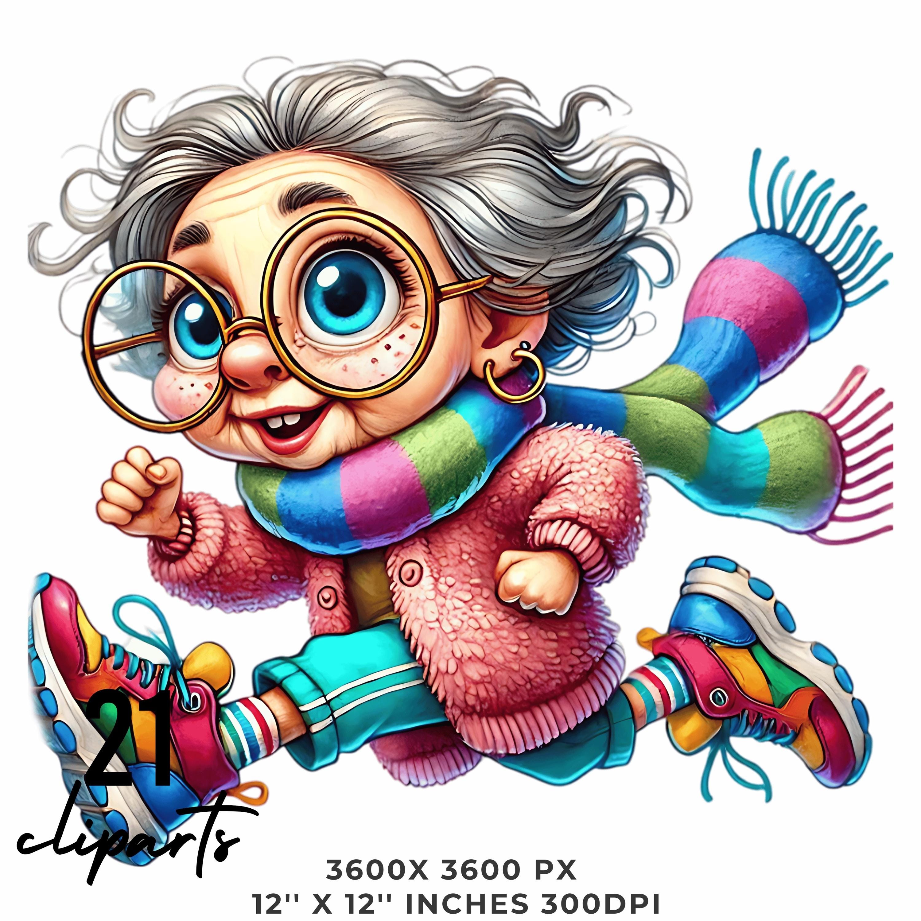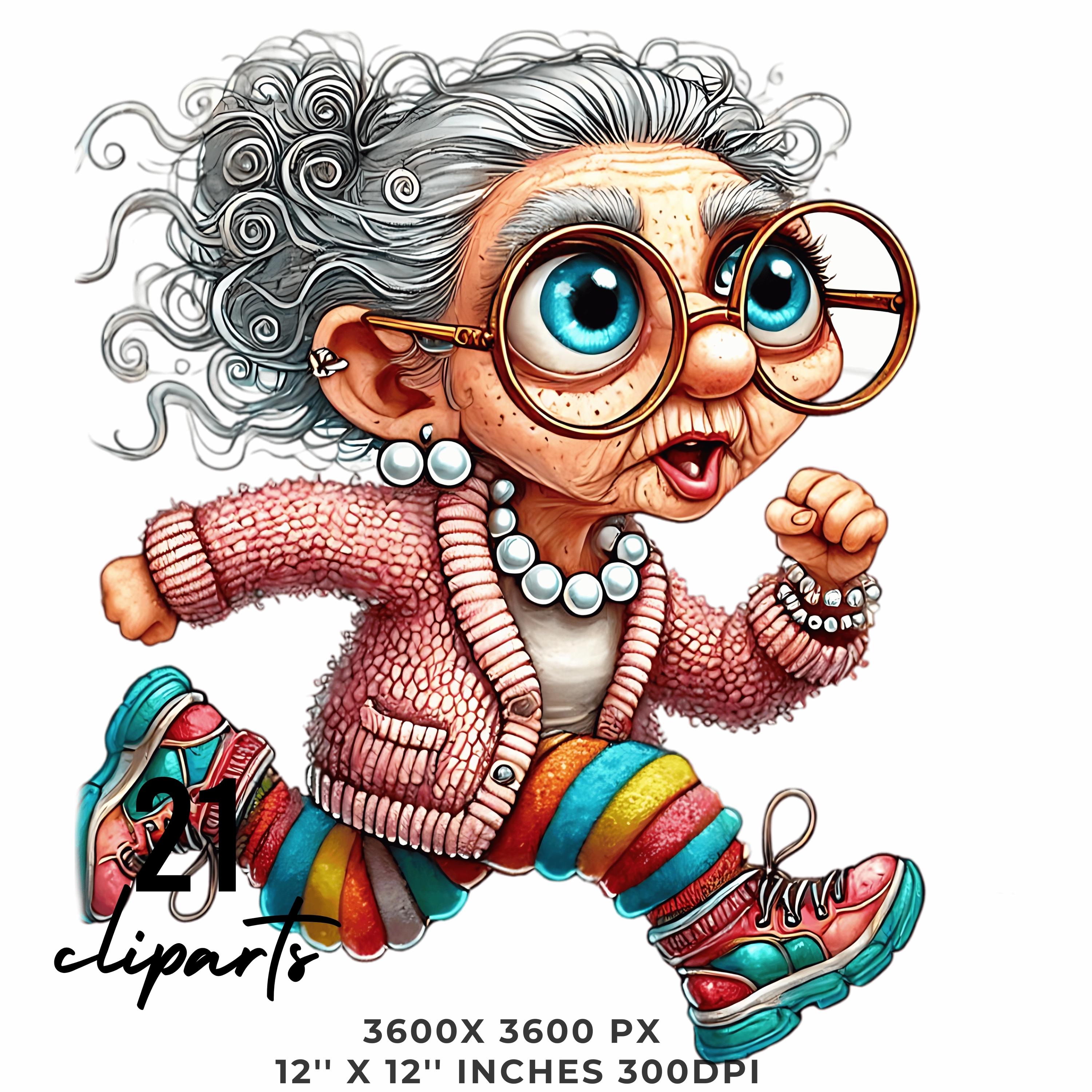 20 Crazy Quirky Grandma Running Day PNG Clipart | Funny Running Old Lady Cartoon | Running Happy Elder Woman Art Sublimation Commercial Use is an eye-catching, high-resolution digital asset designed for creators, crafters, teachers, and small business owners looking to elevate their visuals.