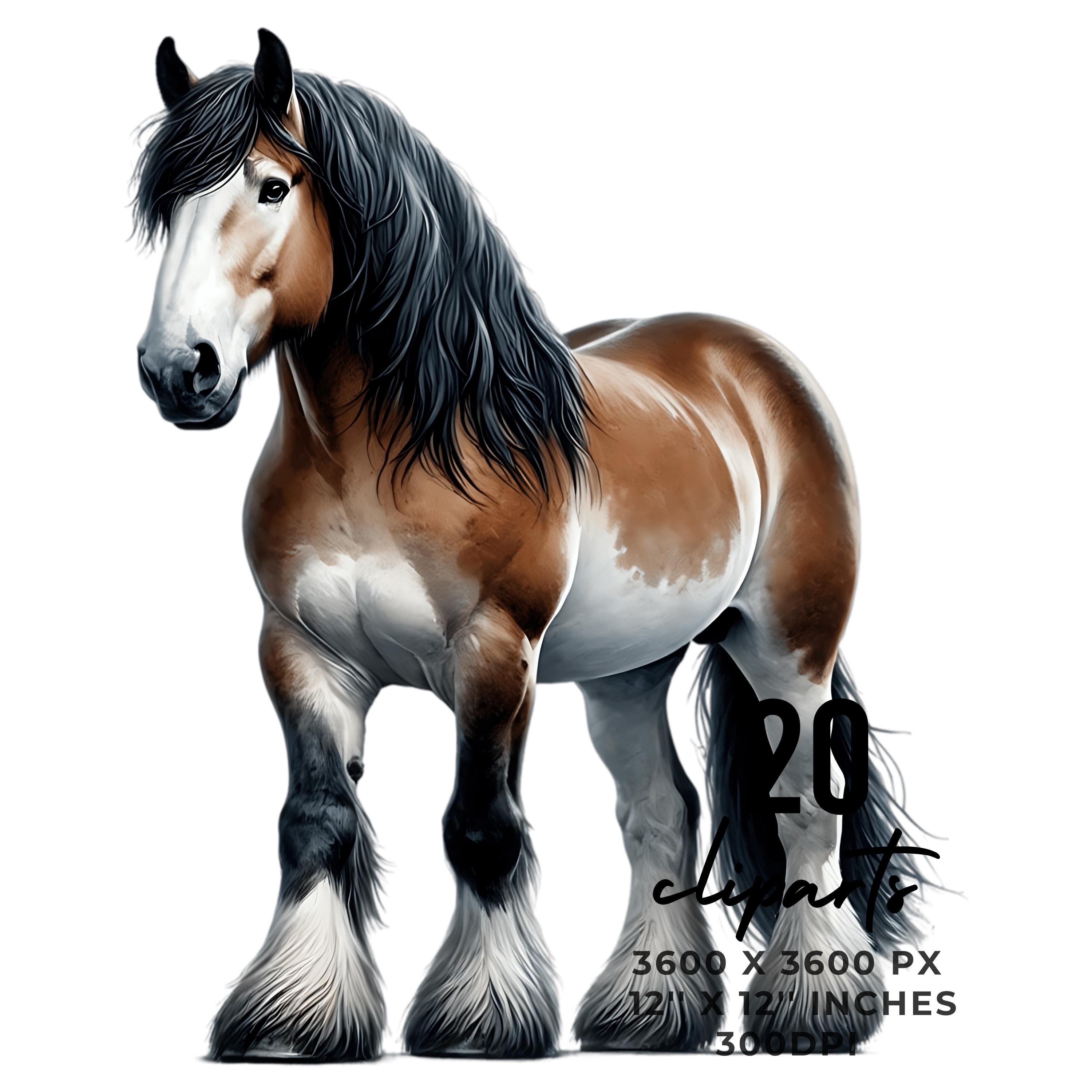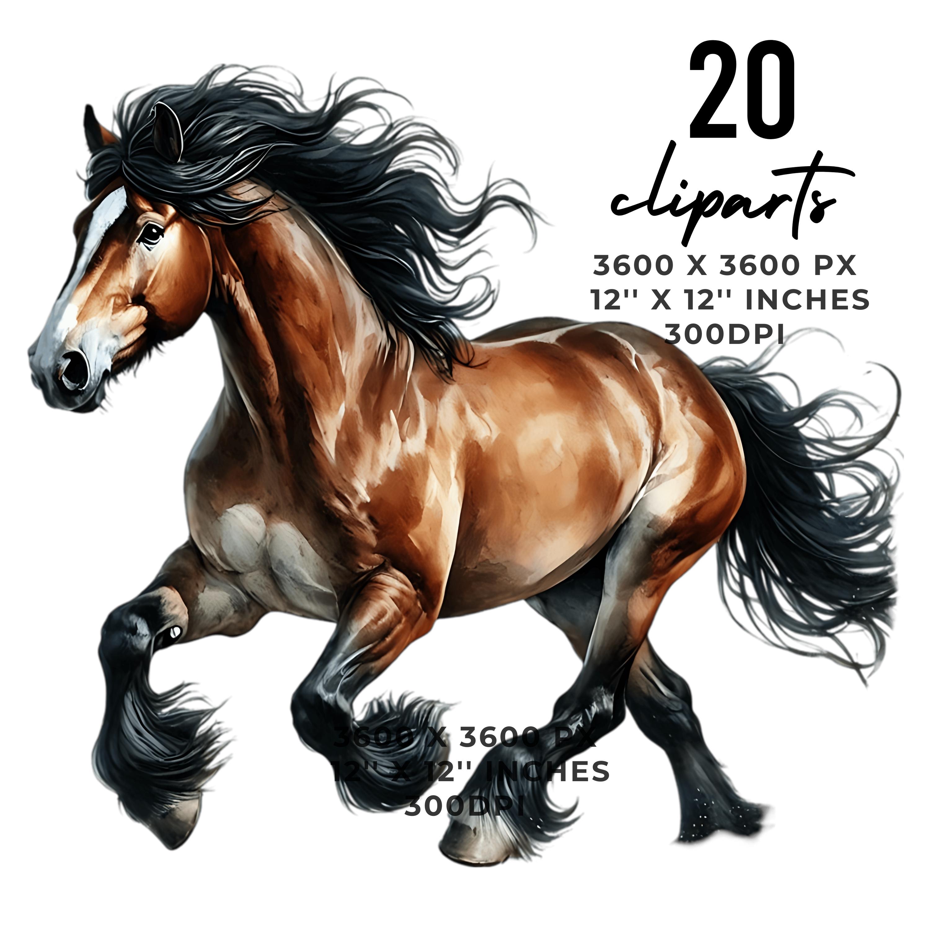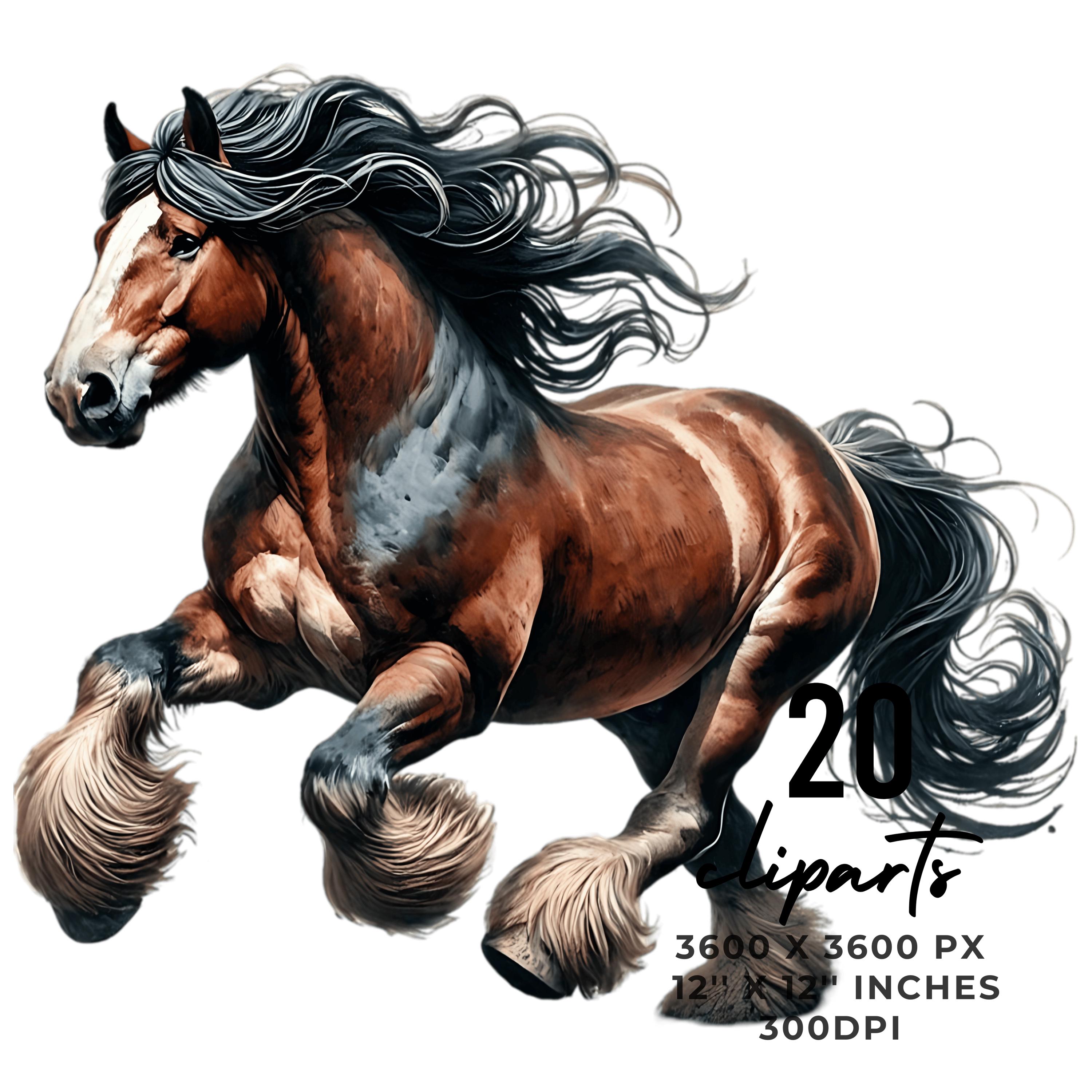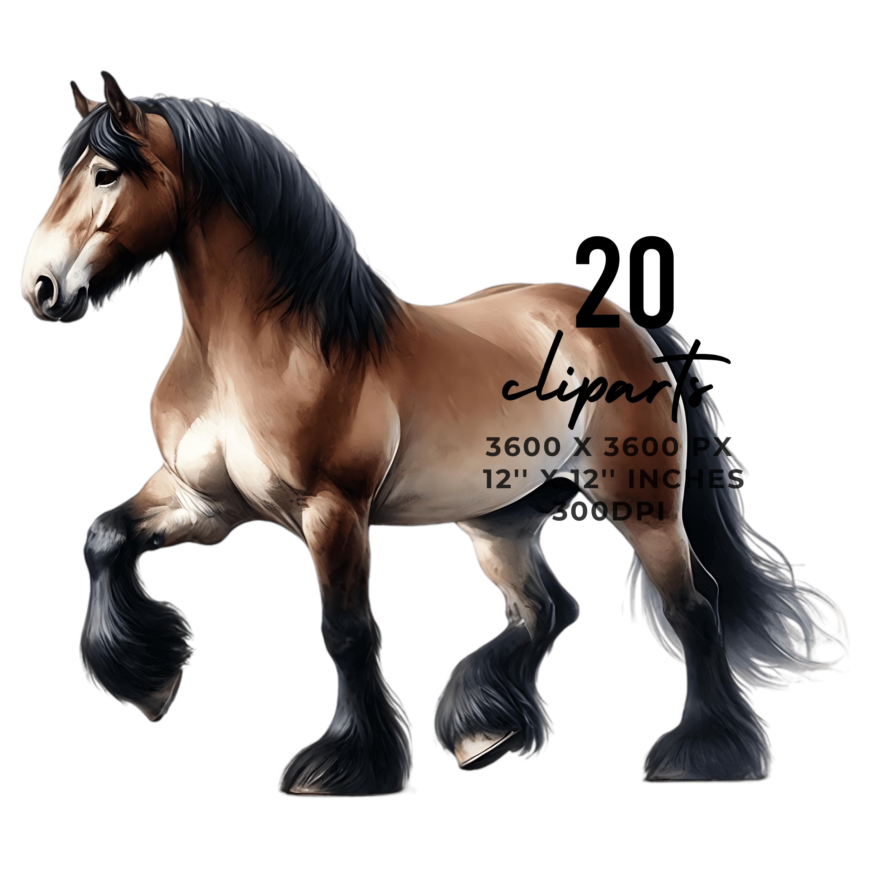 20 Draft Horses PNG Clipart, Watercolor Farm Animals for Card Making, Scrapbooking, Junk Journaling, Sublimation Image Commercial Use is an eye-catching, high-resolution digital asset designed for creators, crafters, teachers, and small business owners looking to elevate their visuals.