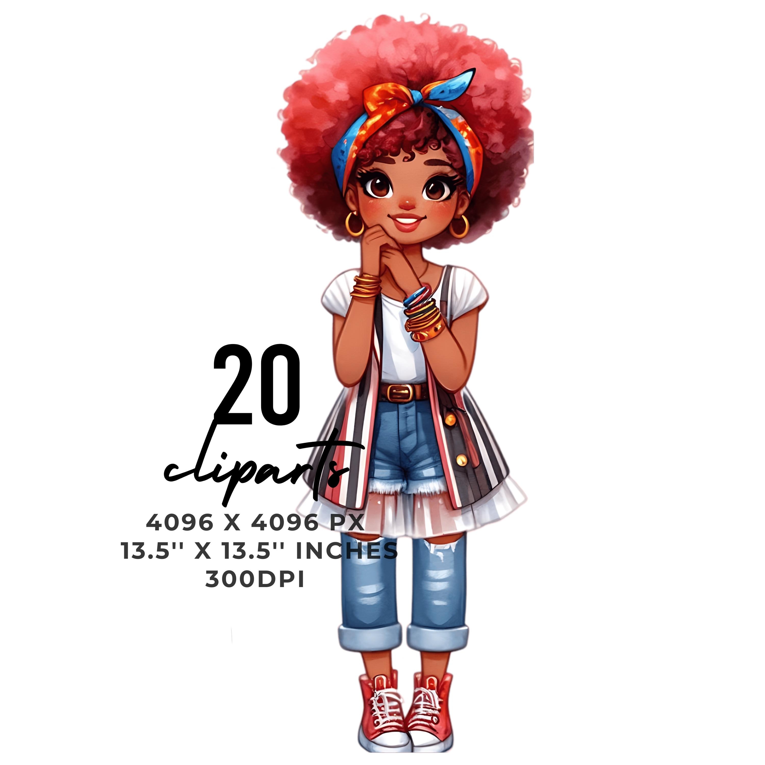 20 Quirky Girl Clipart | Quirky Black Girl PNG | Whimsical Ephemera Watercolor Instant Download | Junk Journal Paper Craft Commercial Use is an eye-catching, high-resolution digital asset designed for creators, crafters, teachers, and small business owners looking to elevate their visuals.
