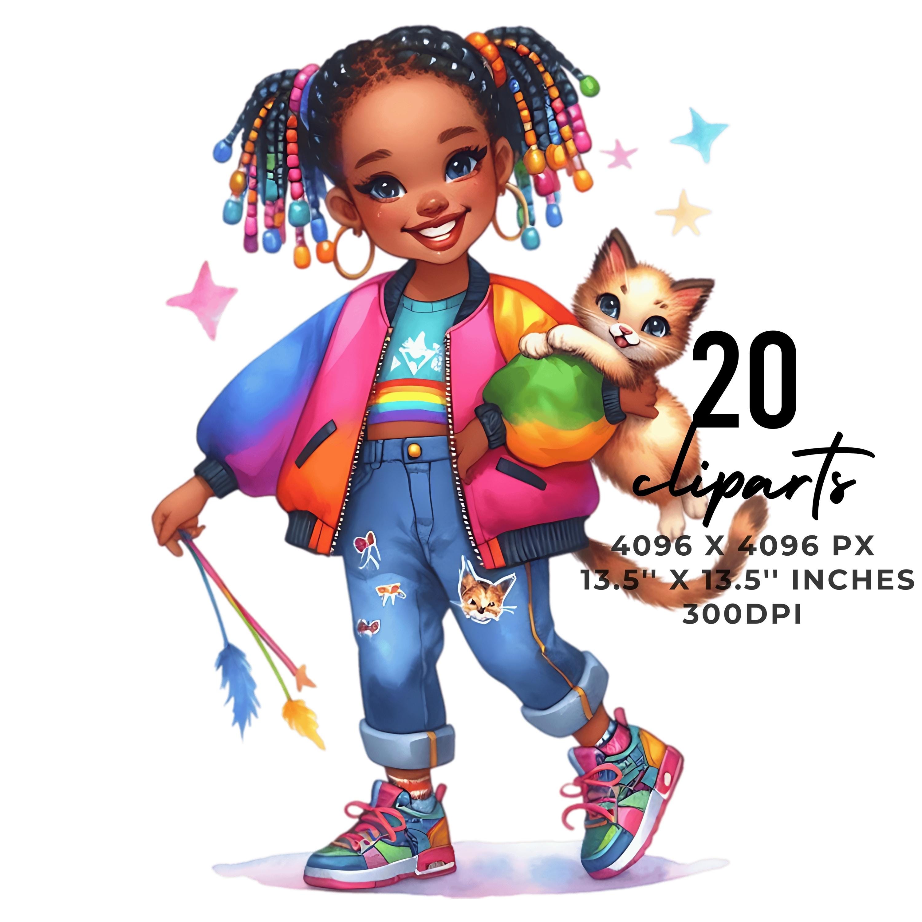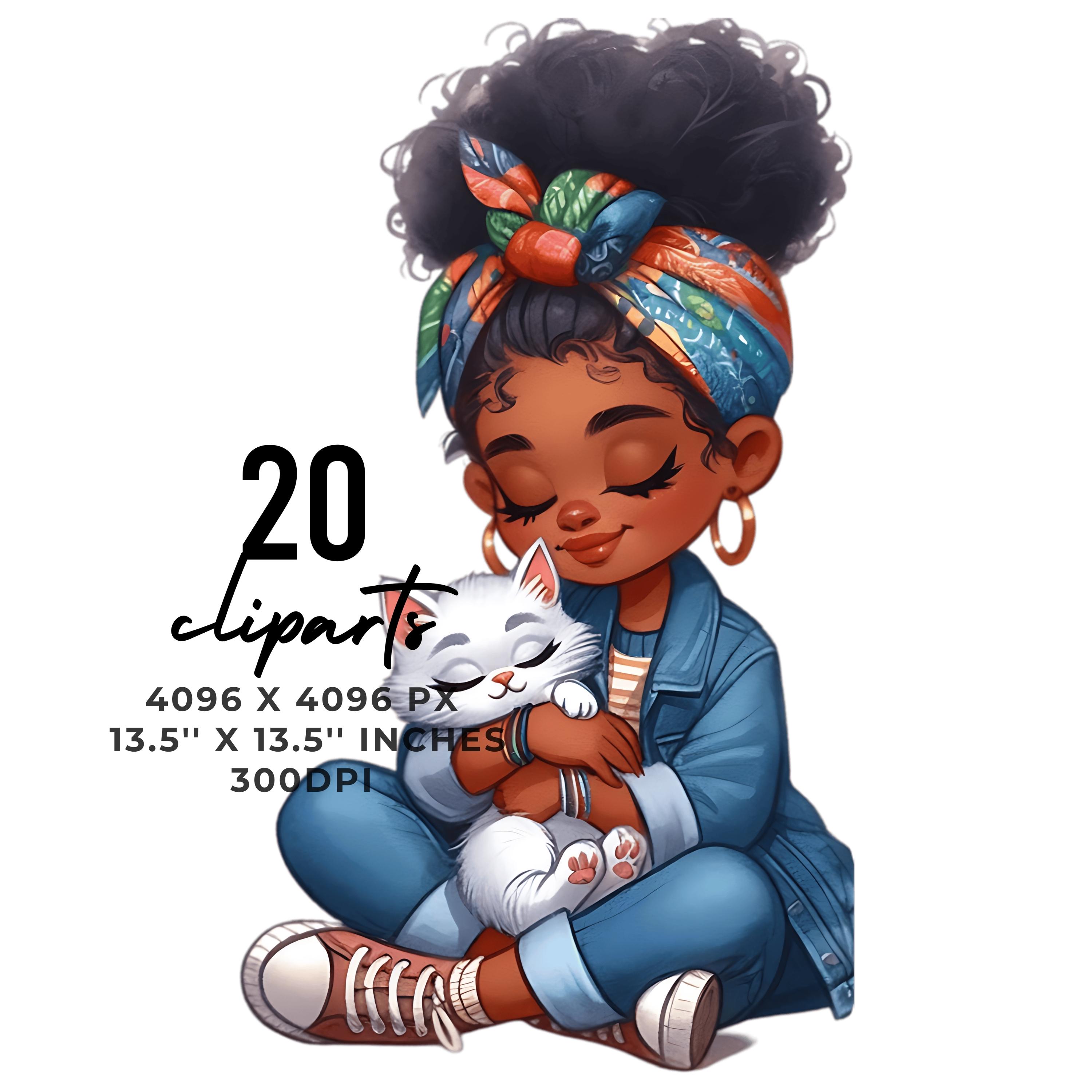 20 Quirky Girl Holding Cat Clipart PNG | Quirky Black Girl with Pet PNG | Whimsical Ephemera Watercolor | Junk Journal Paper Commercial Use is an eye-catching, high-resolution digital asset designed for creators, crafters, teachers, and small business owners looking to elevate their visuals.