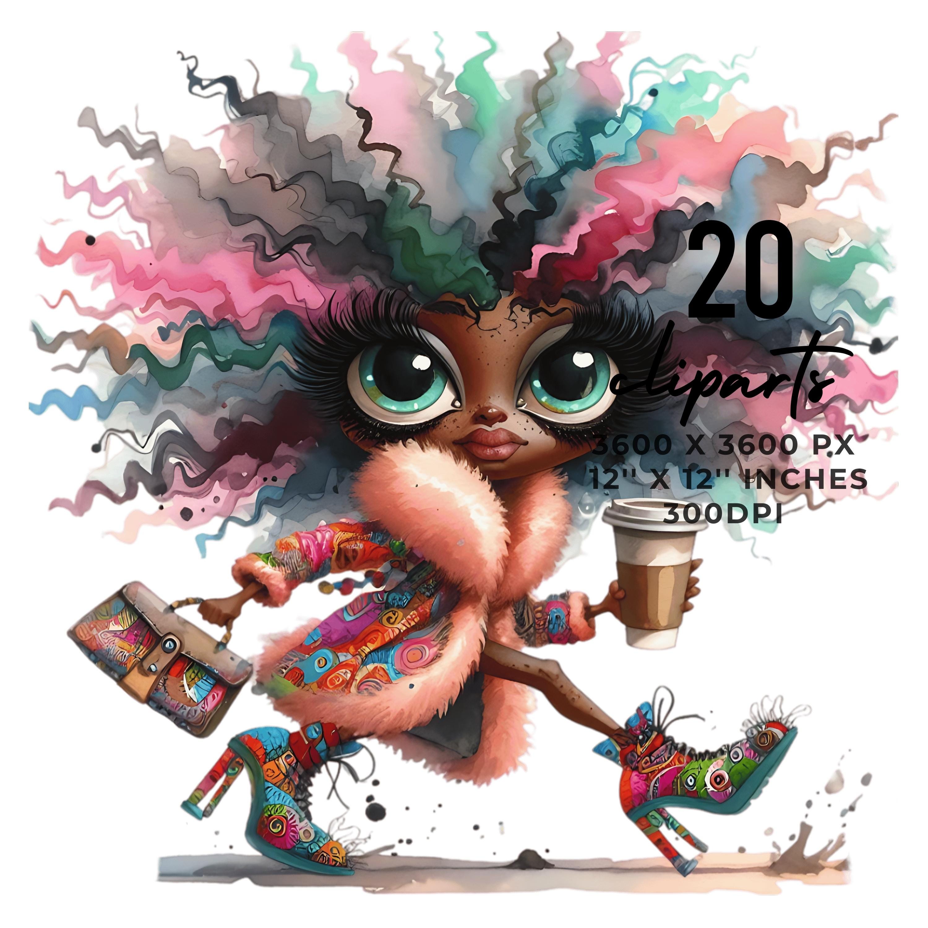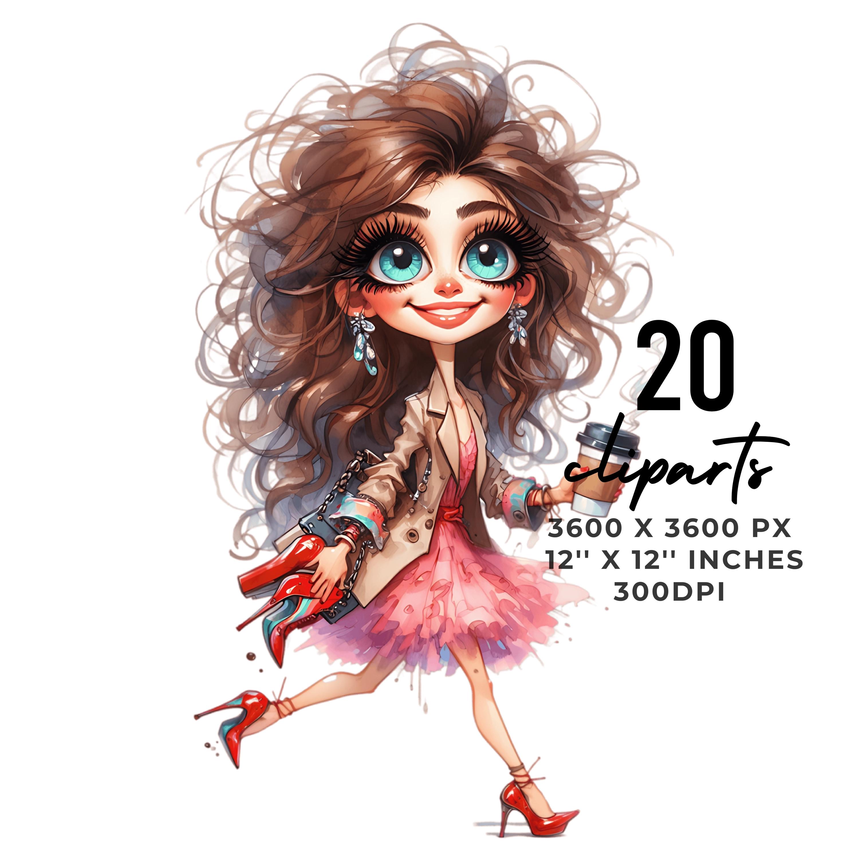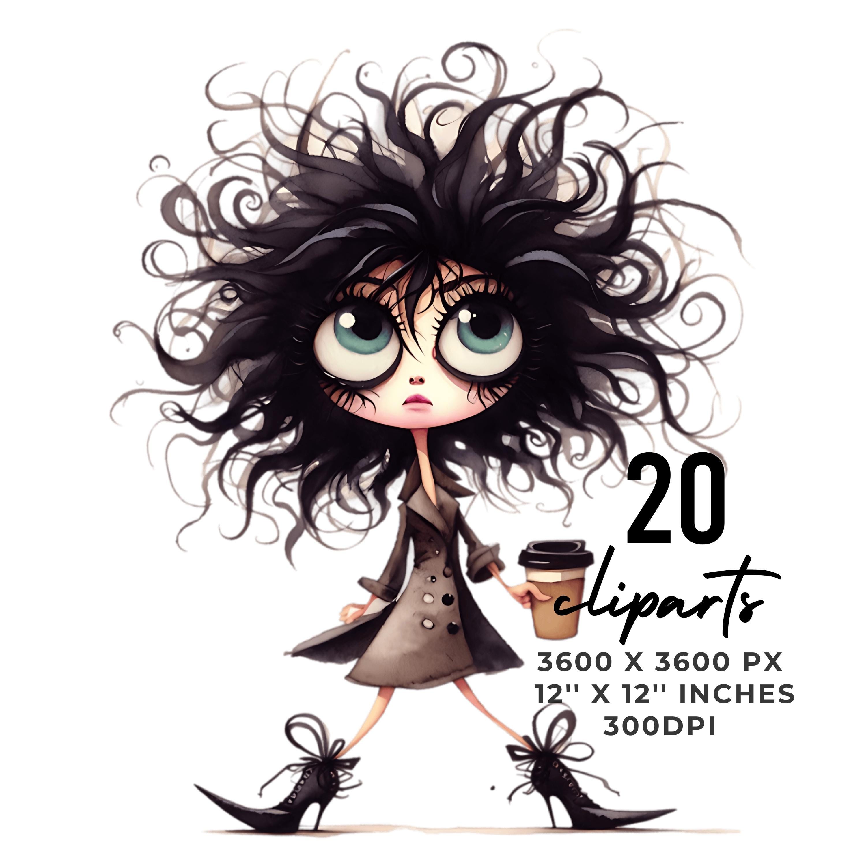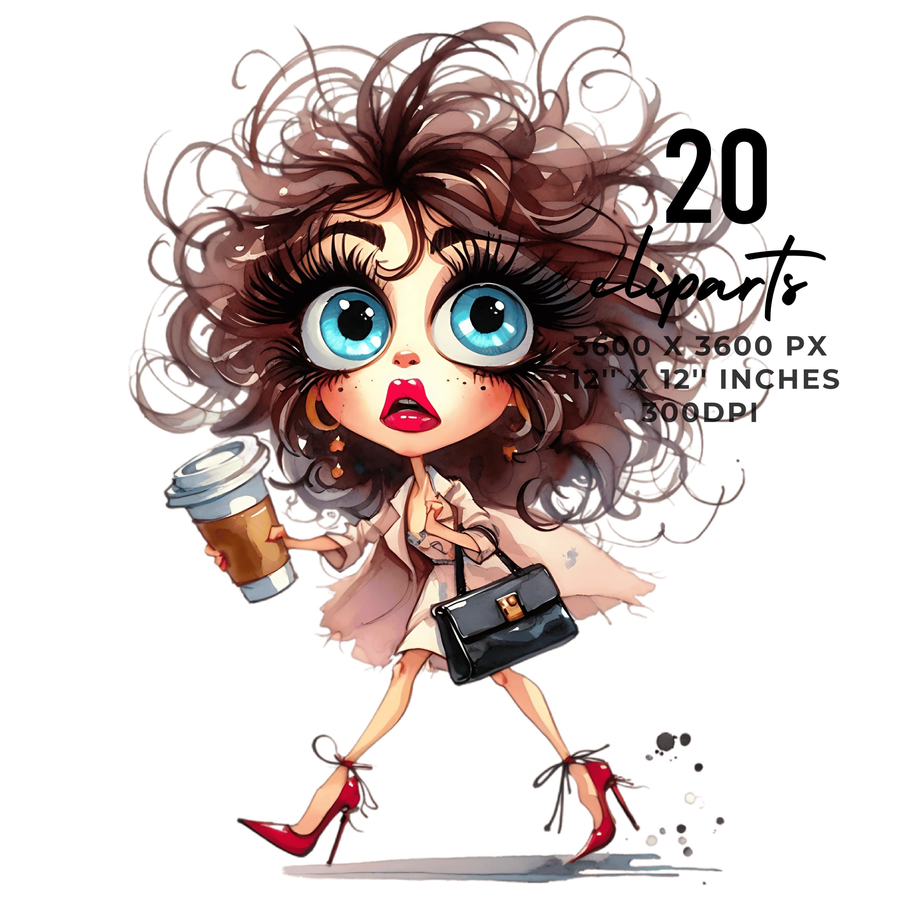 20 Quirky Haute Couture Coffee Girl Clipart PNG | Coffee Women PNG | Whimsical Scrapbooking Junk Journaling and Card Making | Commercial Use is an eye-catching, high-resolution digital asset designed for creators, crafters, teachers, and small business owners looking to elevate their visuals.