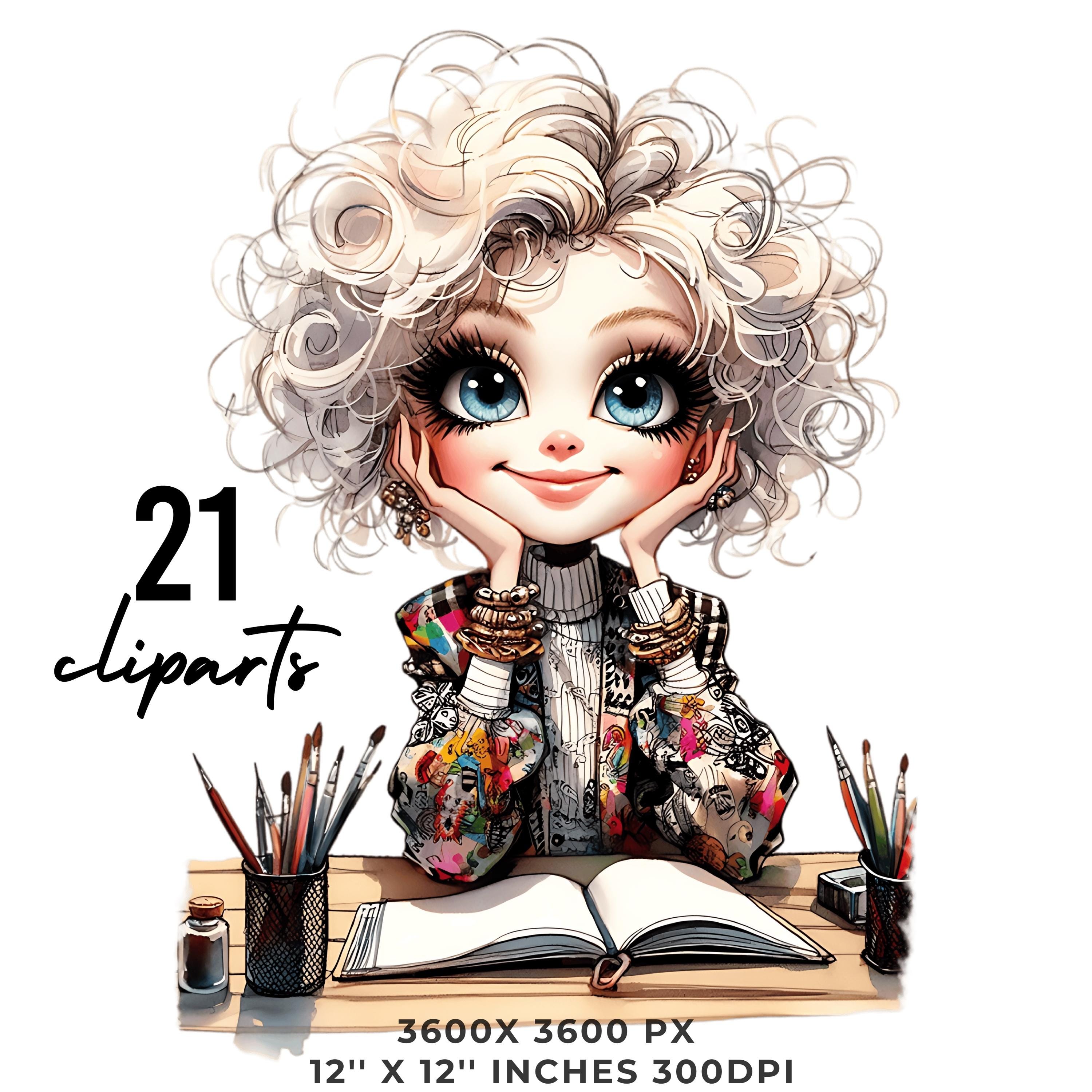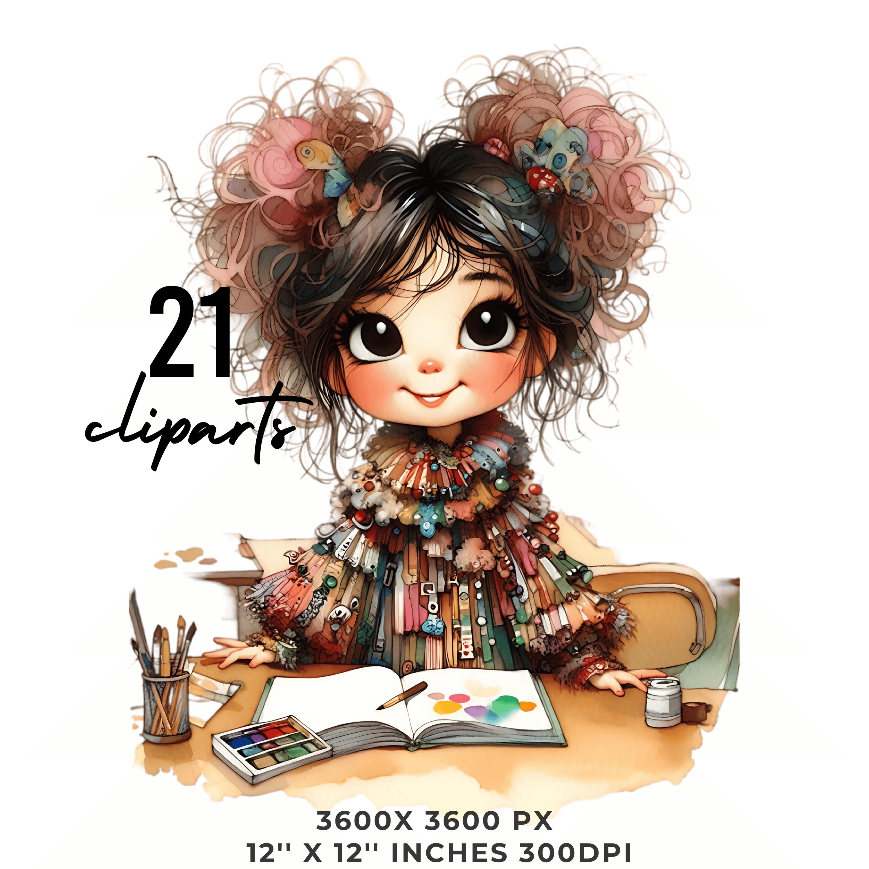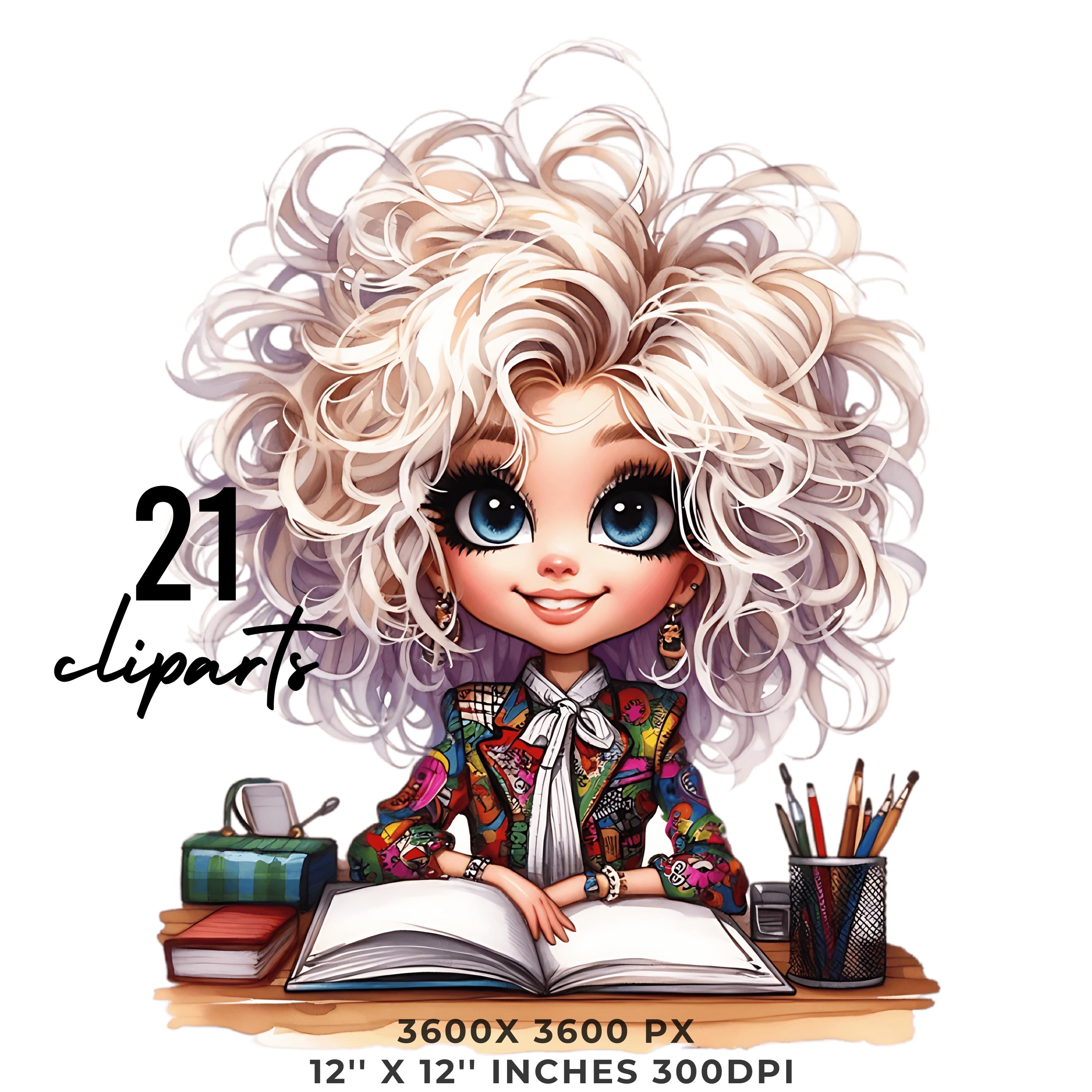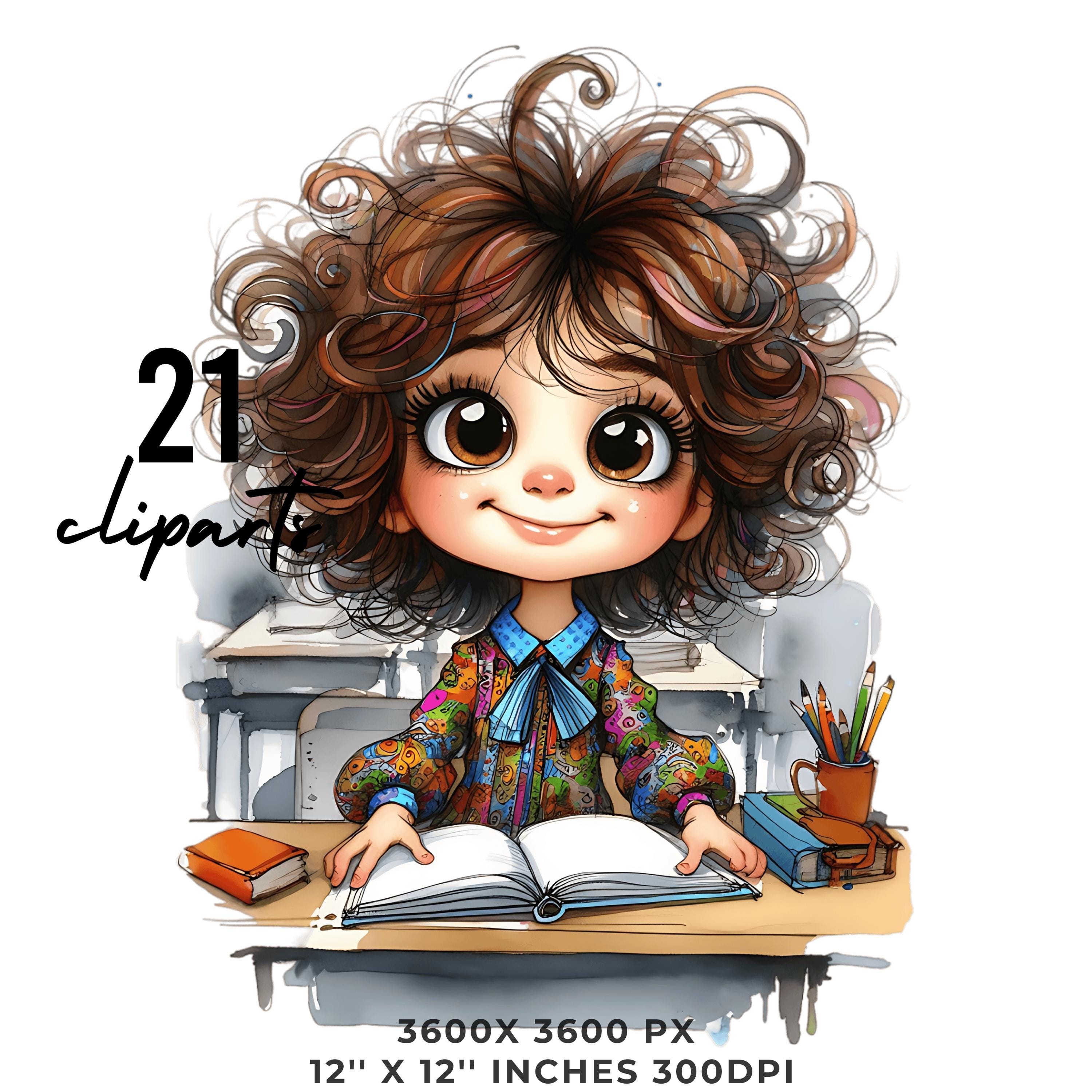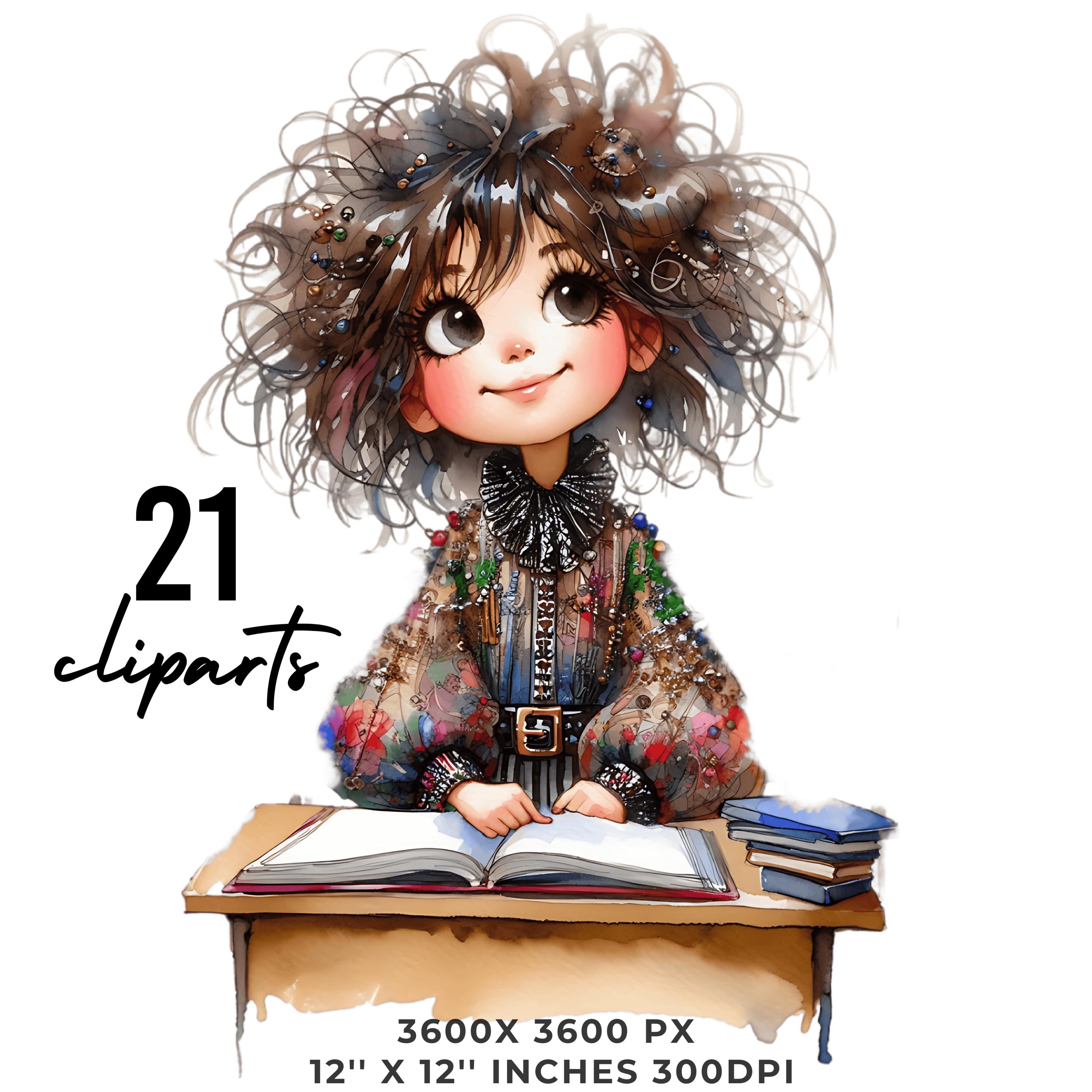 21 Quirky Teacher at Desk Clip Art PNG Watercolor Junk Journaling, Scrapbooking, Card Making, Fantasy, Whimsical, Sublimation Commercial Use