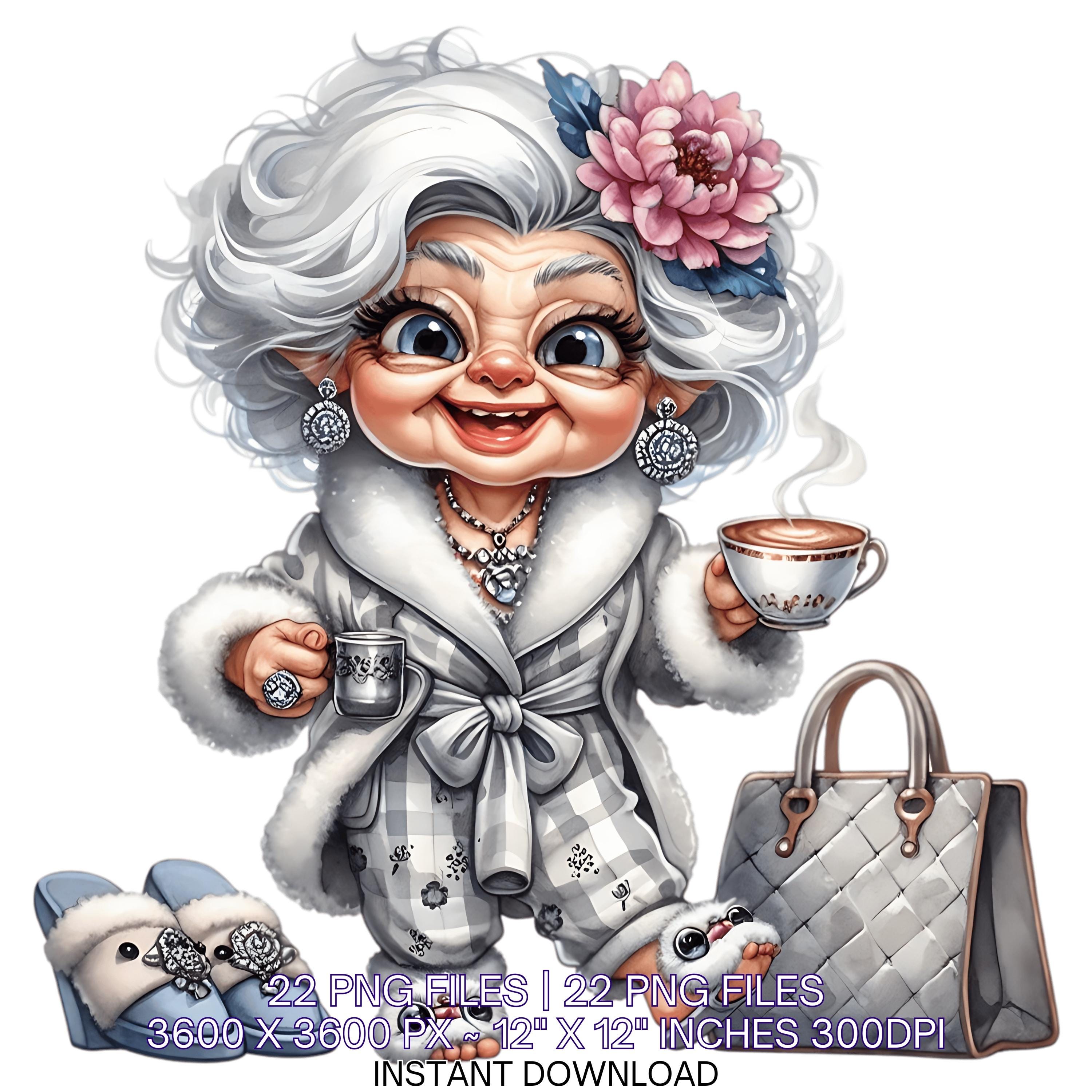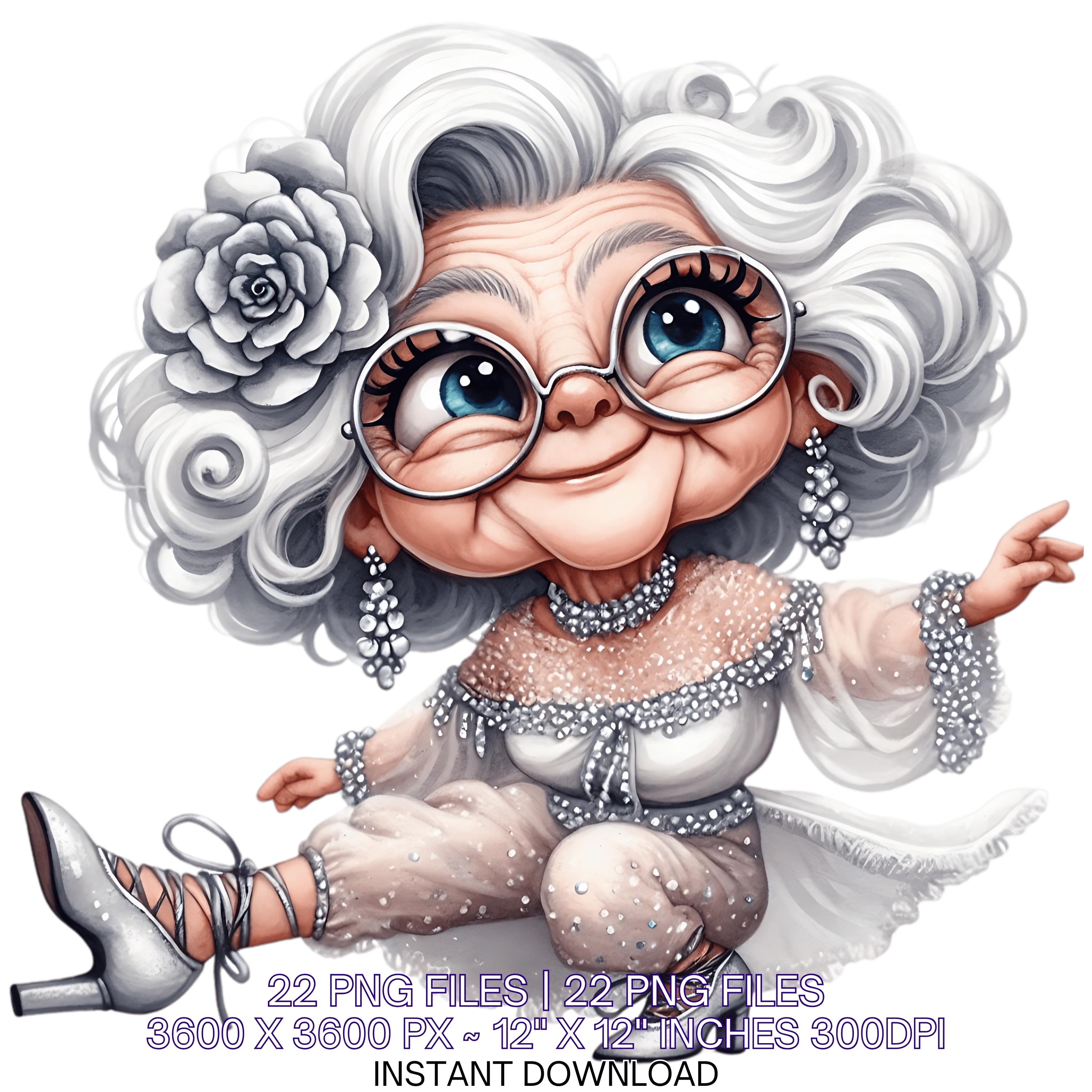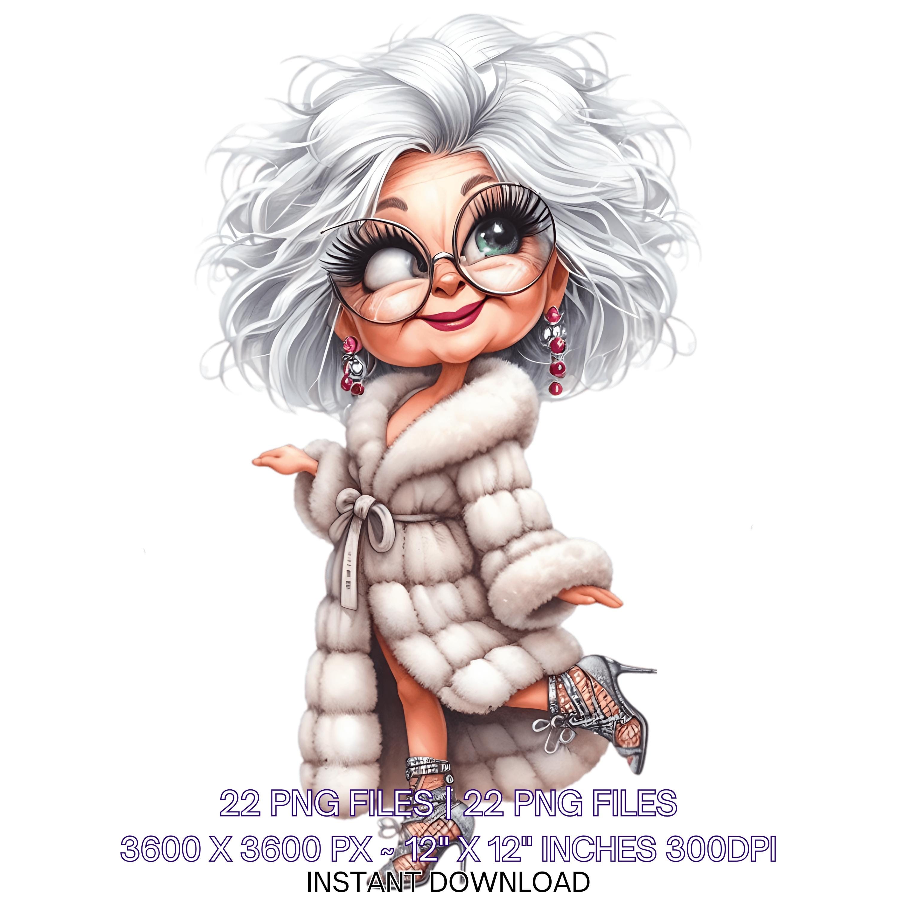 22 Elegant Crazy Grandma Day by Day PNG Clipart | Funny Old Elegant Lady Cute Cartoon White Grandma | Happy Woman Sublimation Commercial Use