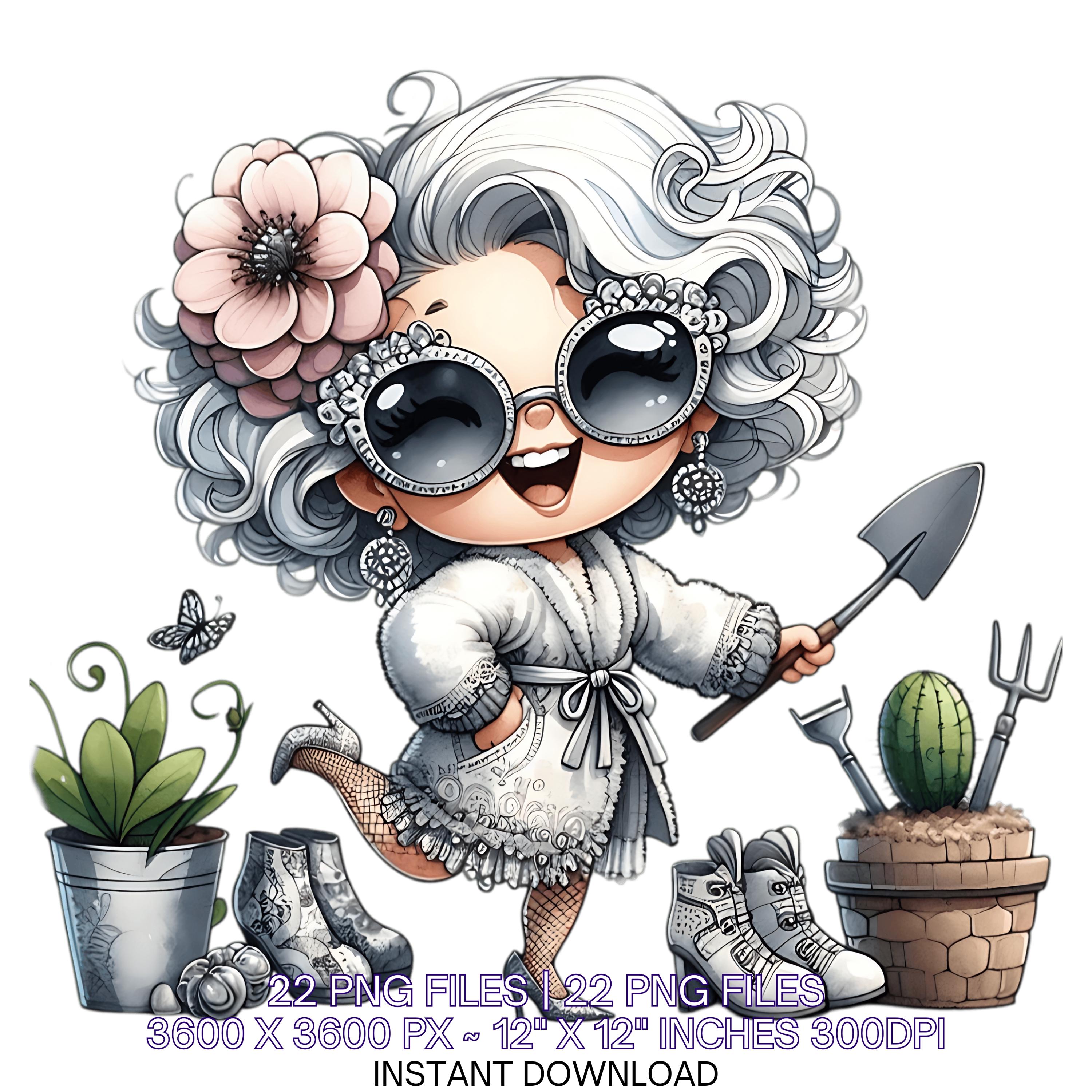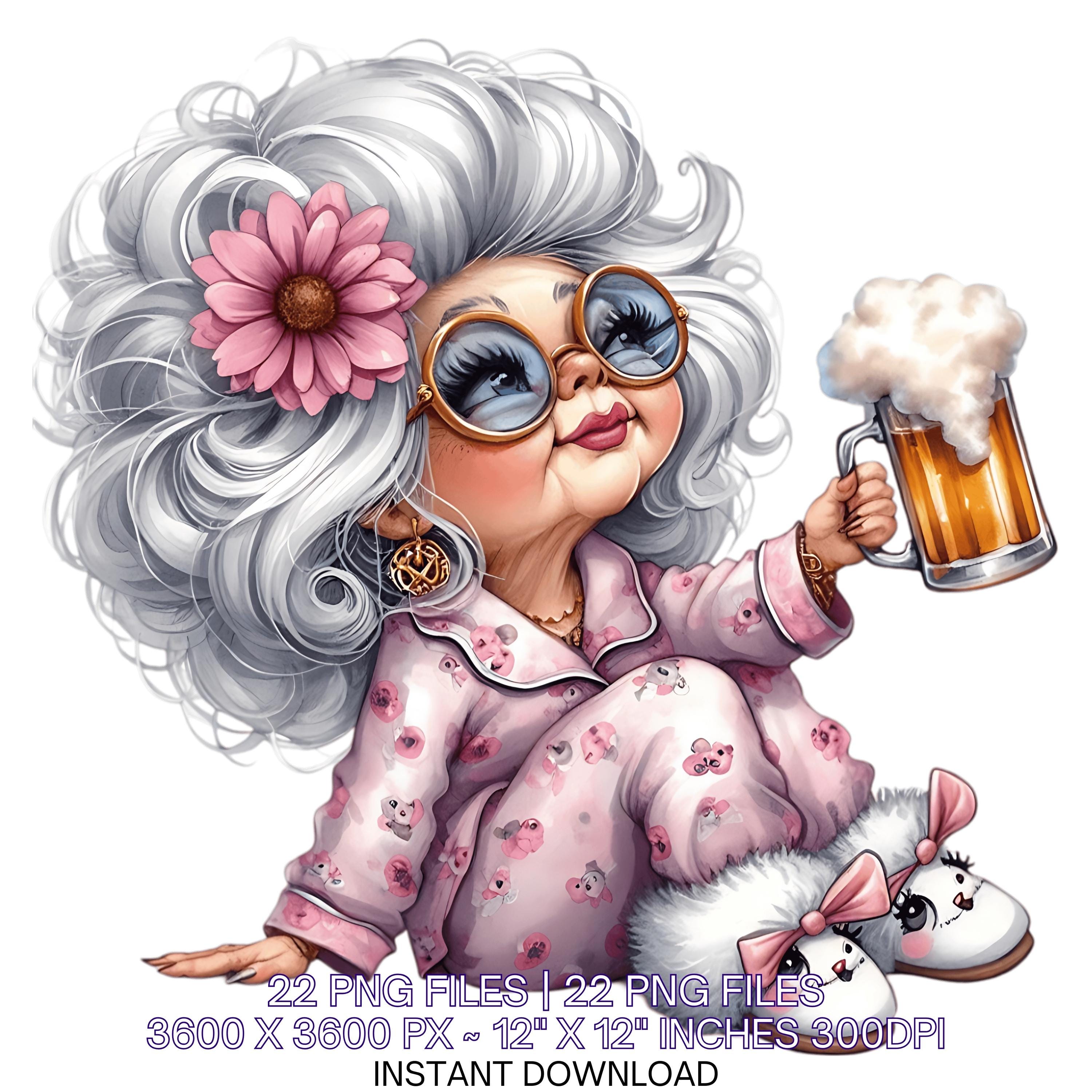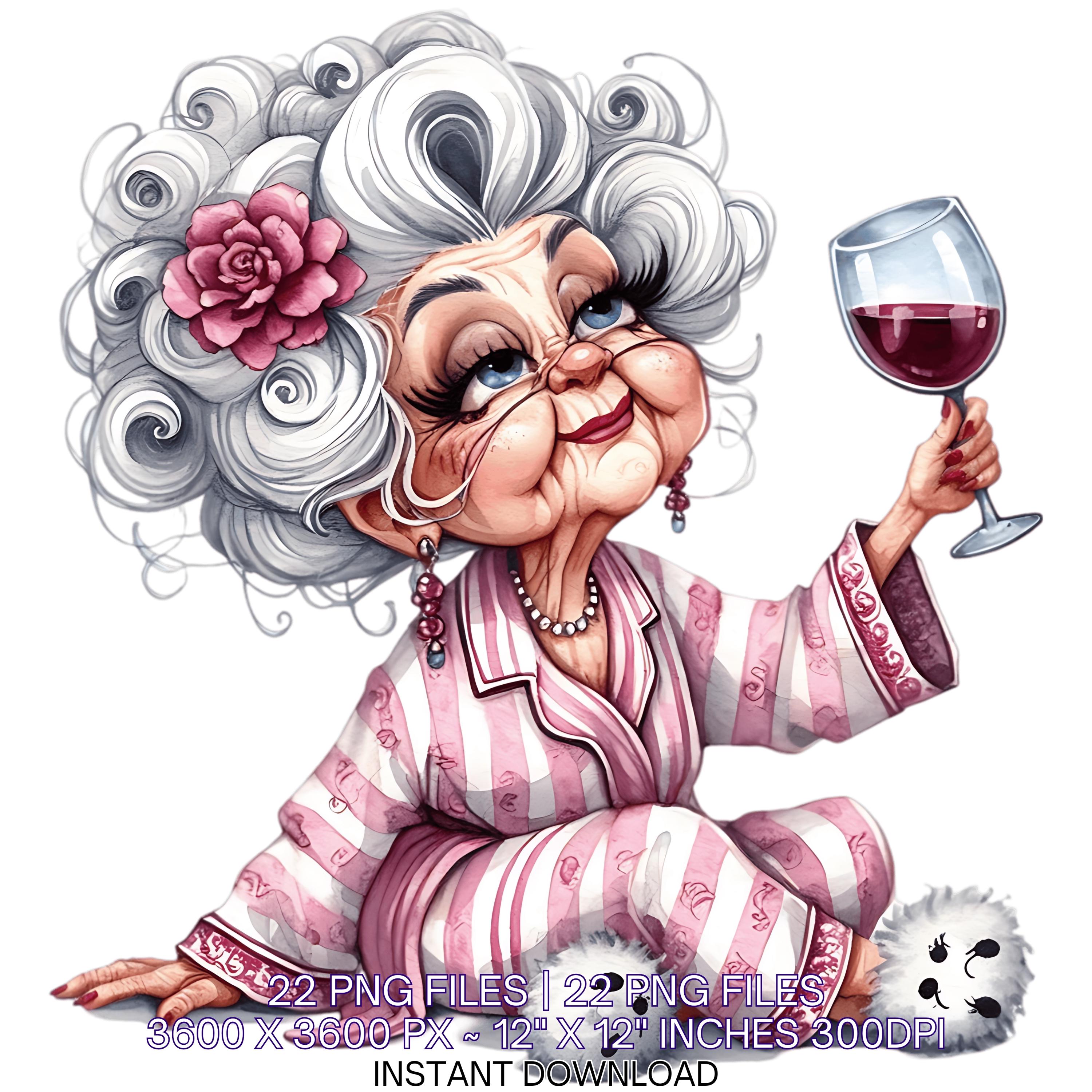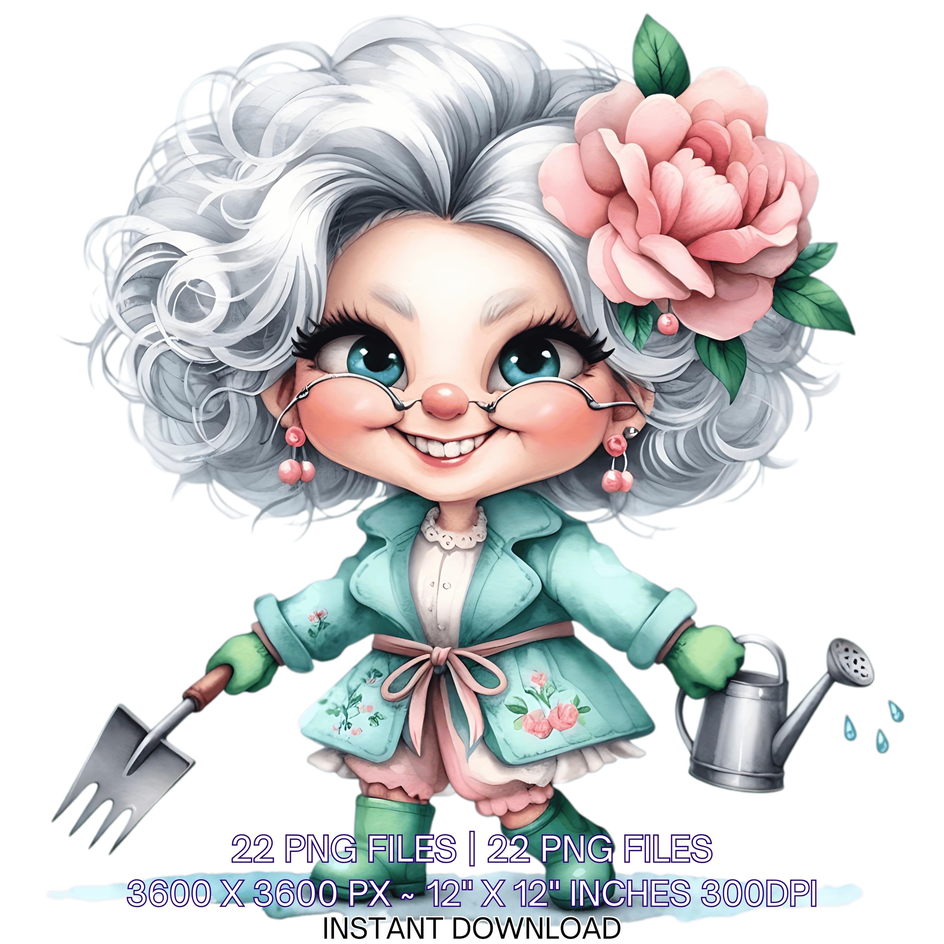 22 Elegant Crazy Grandma Day by Day PNG Clipart | Funny Old Elegant Lady Cute Cartoon White Grandma | Happy Woman Sublimation Commercial Use
