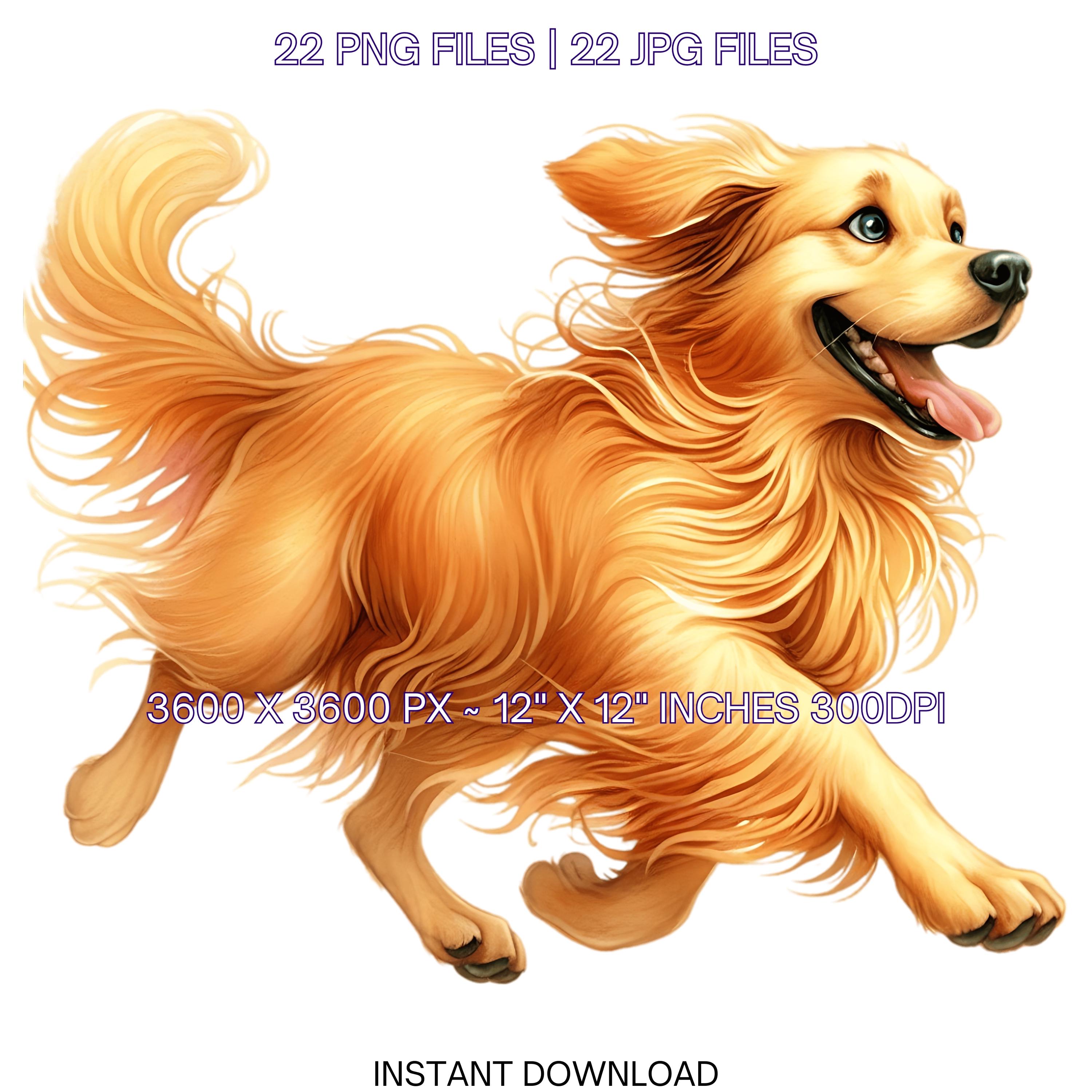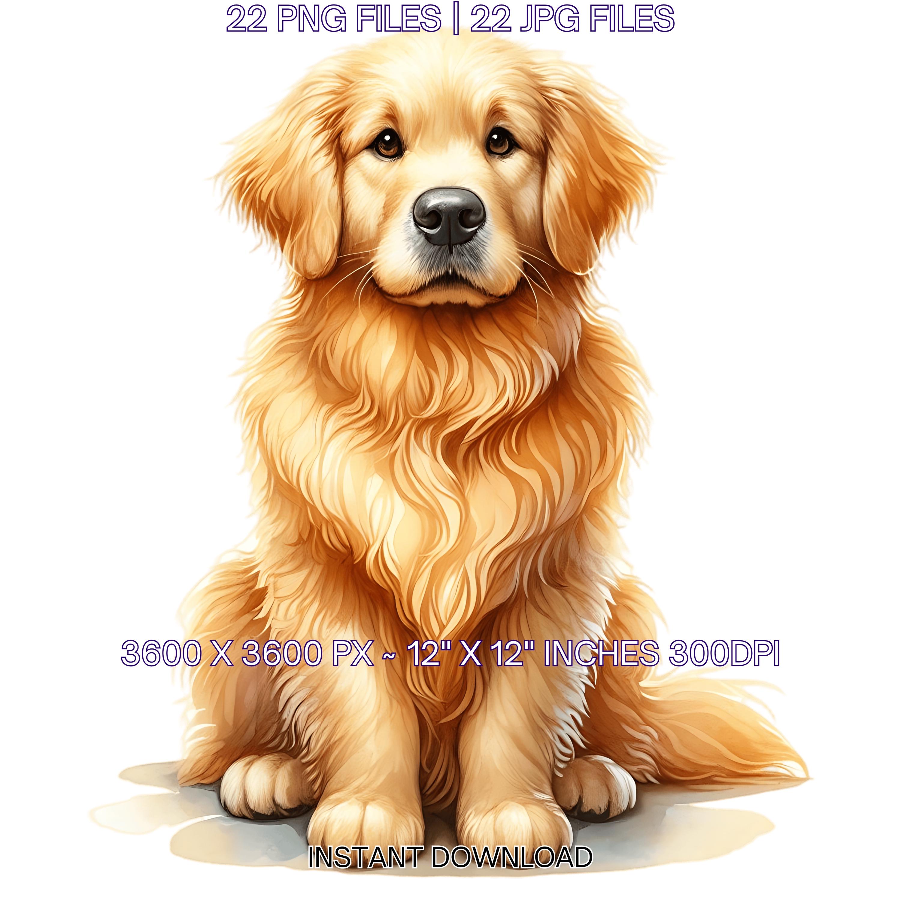 22 Golden Retriever Dog PNG Clipart Watercolor Golden Retriever for Card Making, Scrapbooking Junk Journaling, Sublimation Commercial Use is an eye-catching, high-resolution digital asset designed for creators, crafters, teachers, and small business owners looking to elevate their visuals.