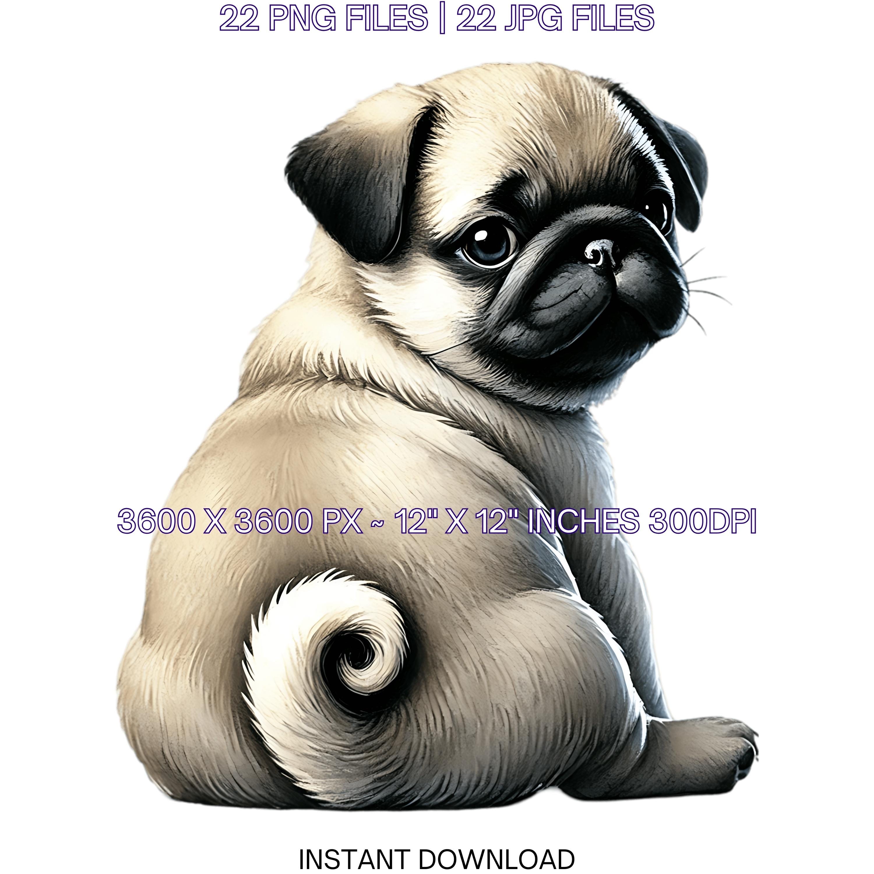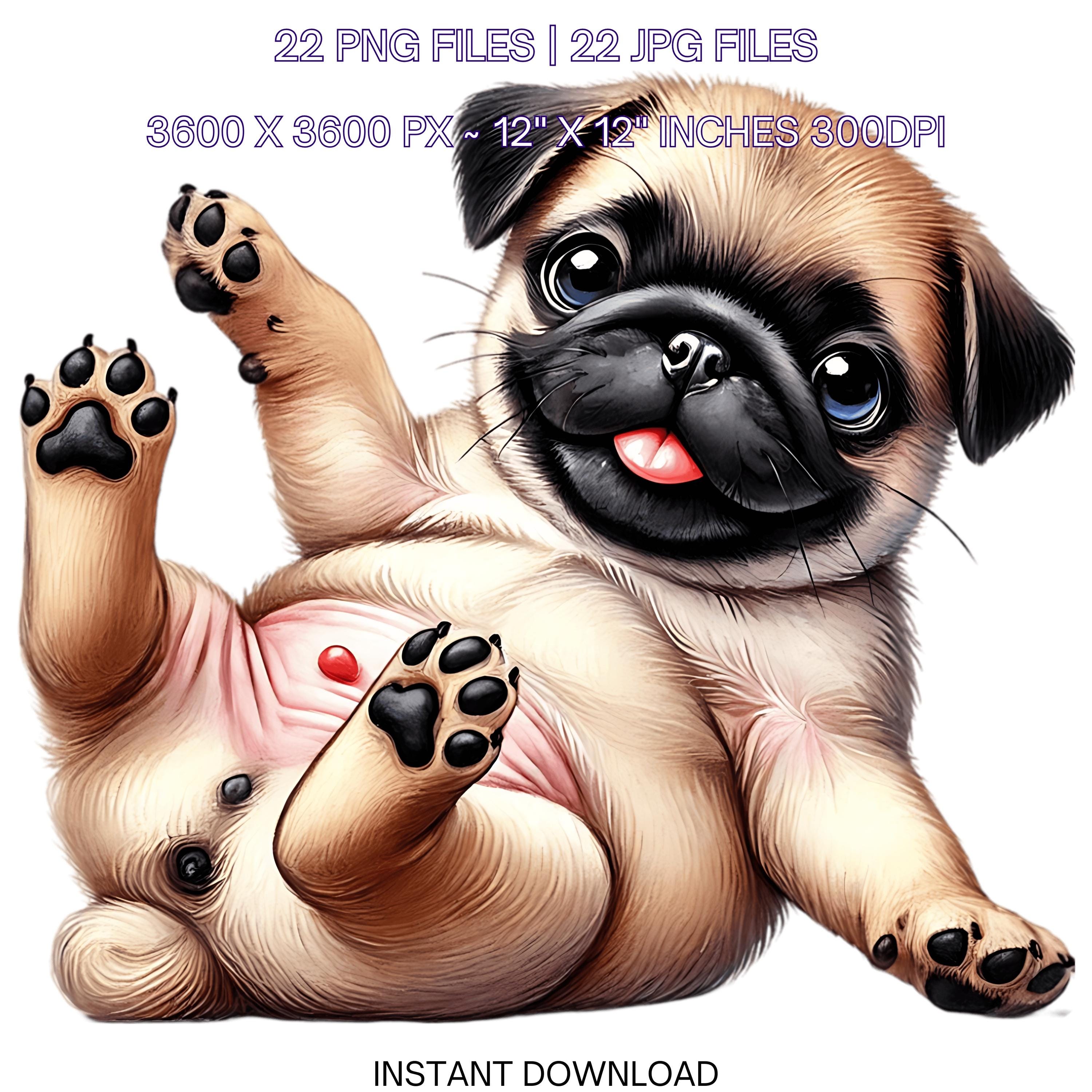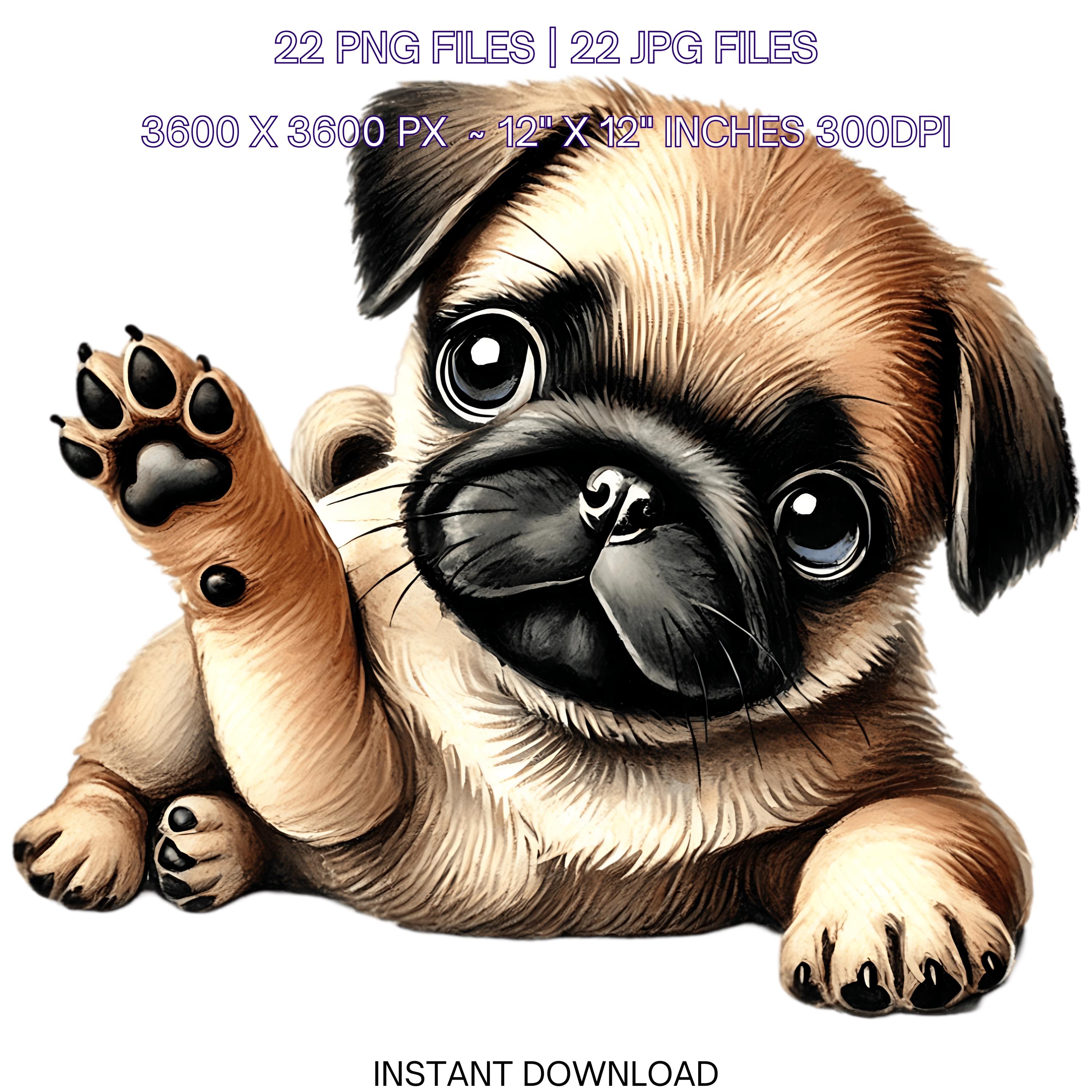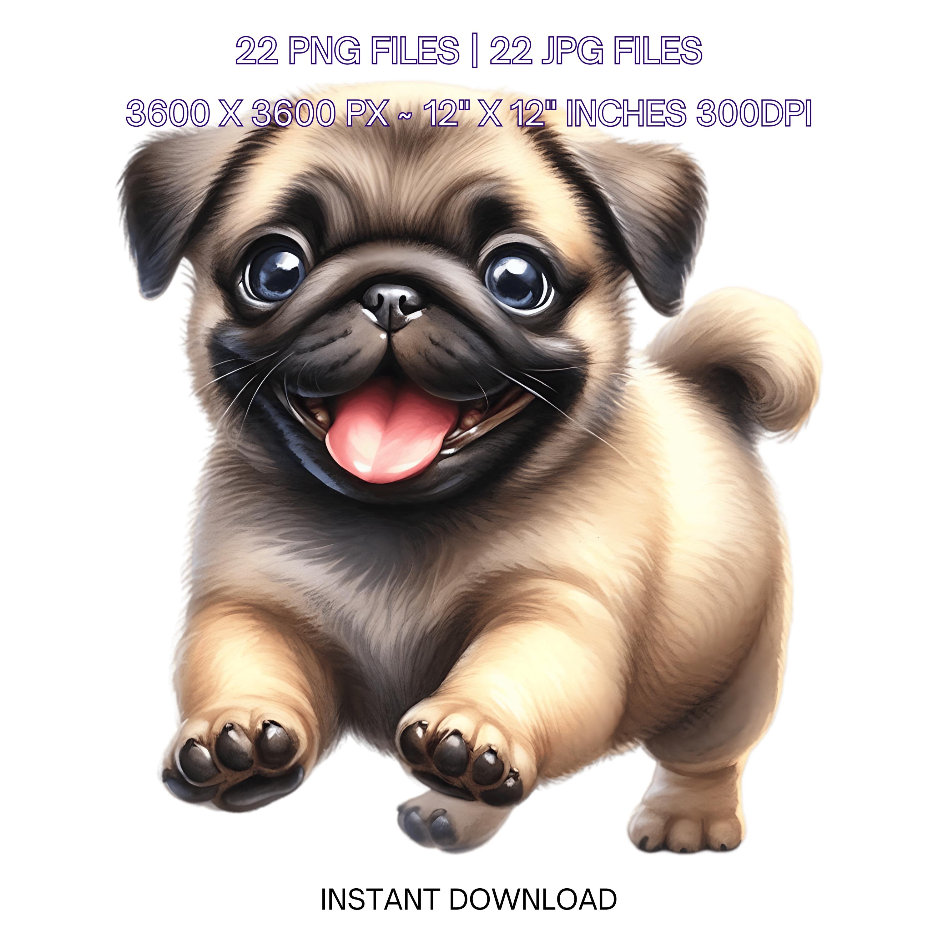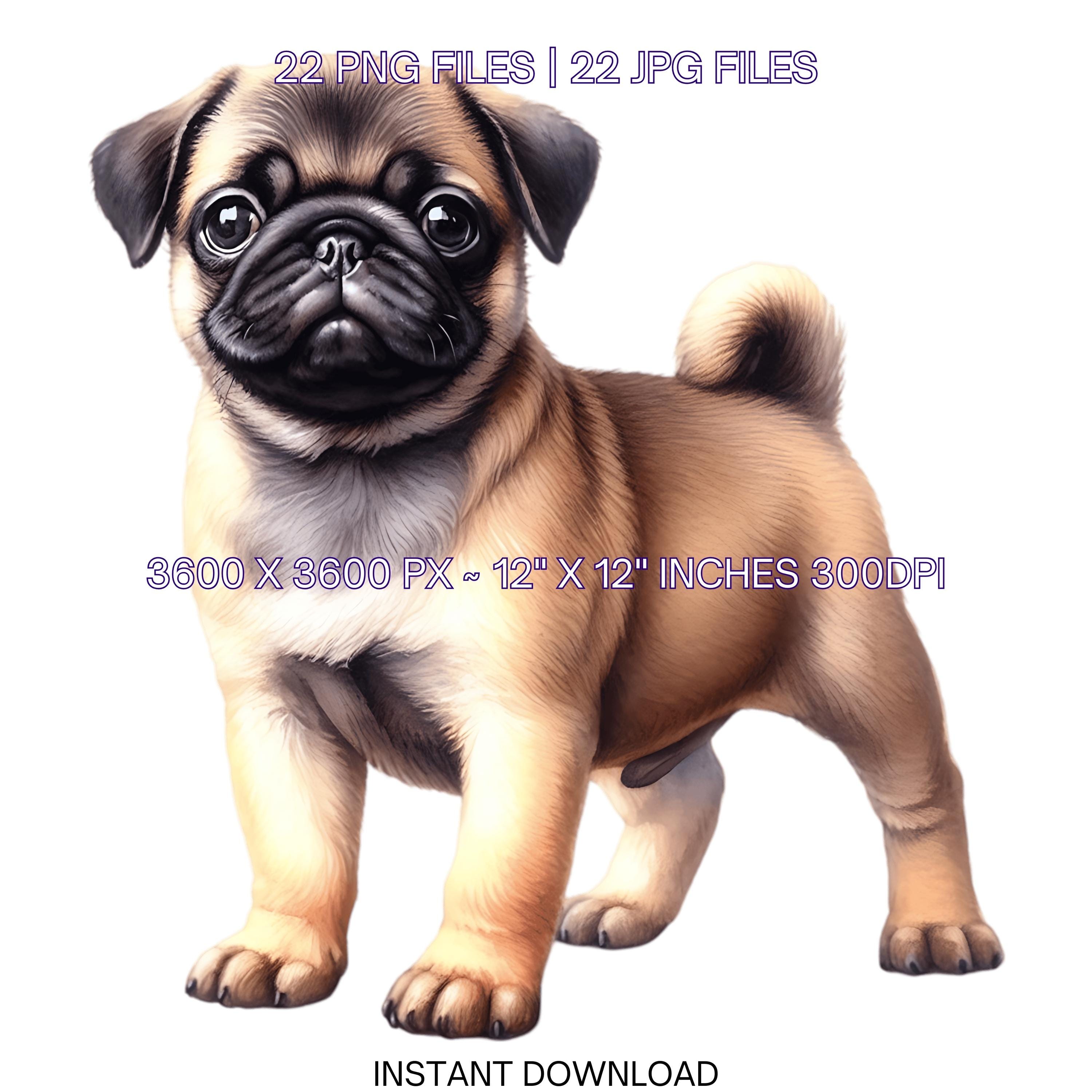 22 PUG Puppy Dog PNG Clipart | Watercolor PUG Baby Dog | Card Making, Scrapbooking, Junk Journaling, Sublimation Pet Portrait Commercial Use is an eye-catching, high-resolution digital asset designed for creators, crafters, teachers, and small business owners looking to elevate their visuals.