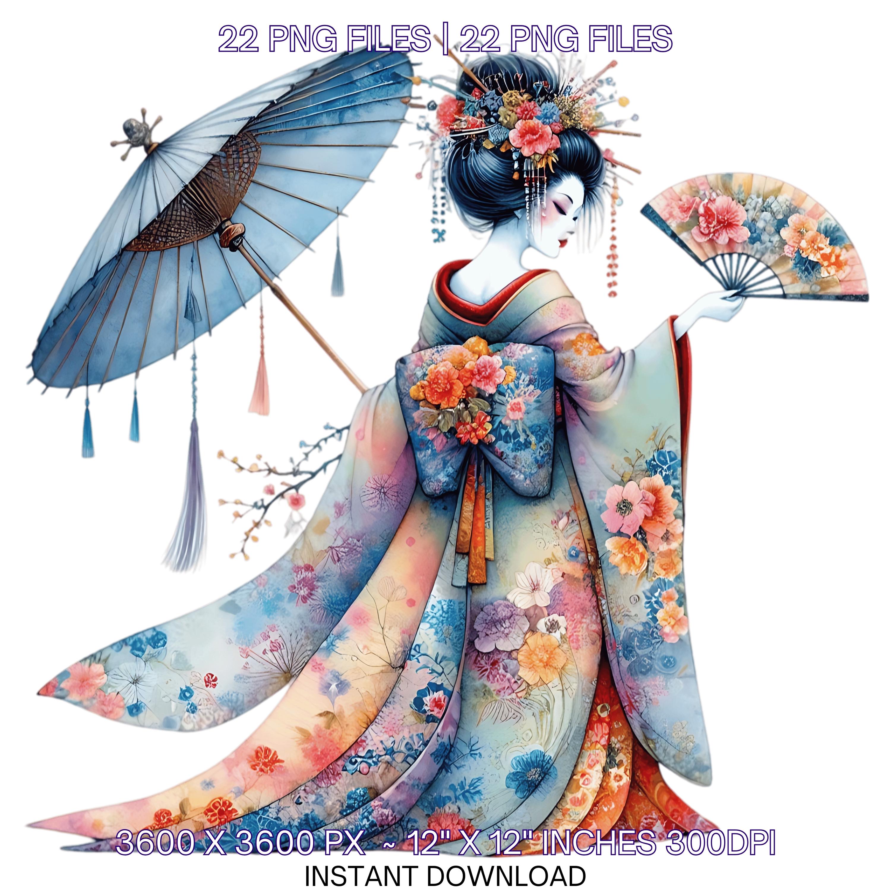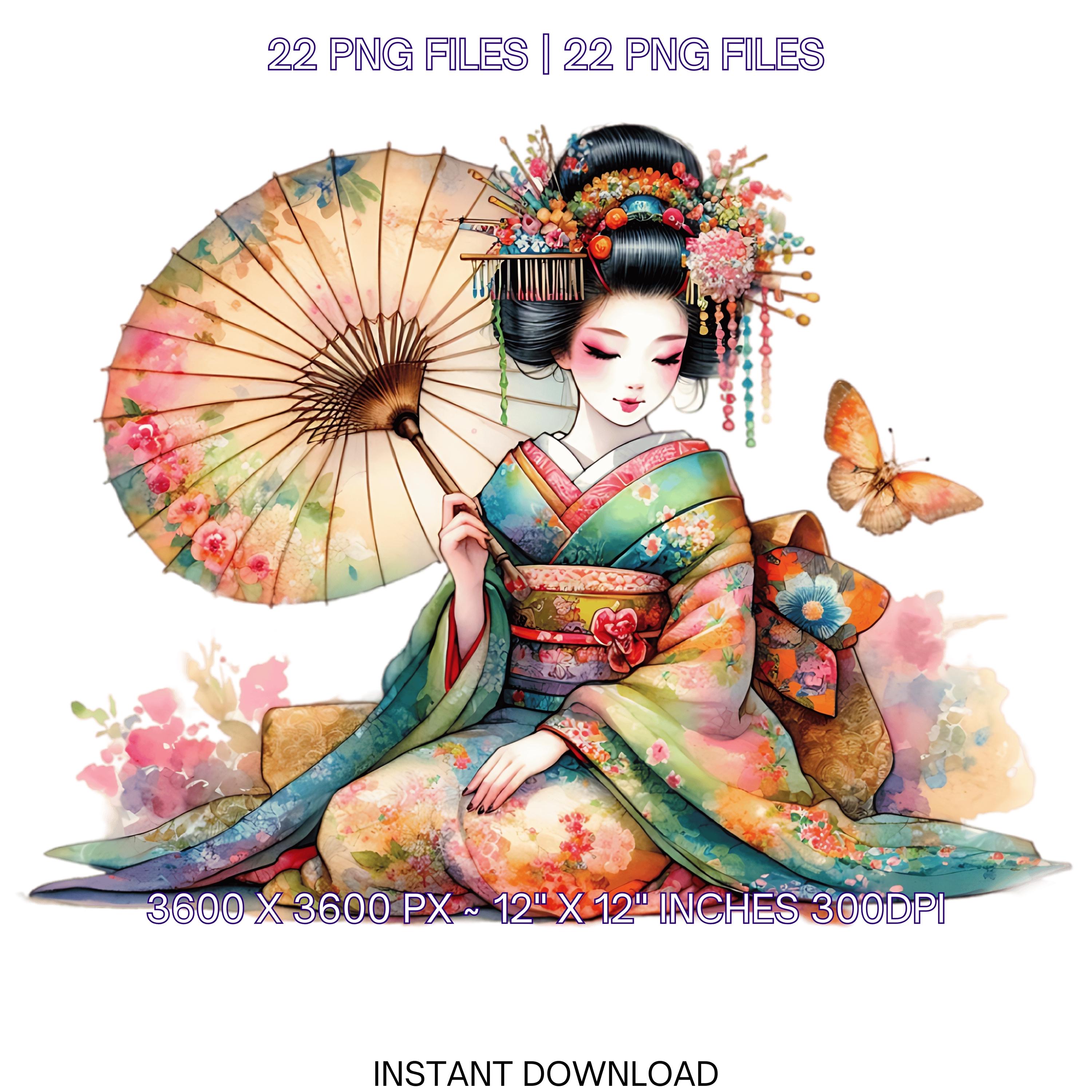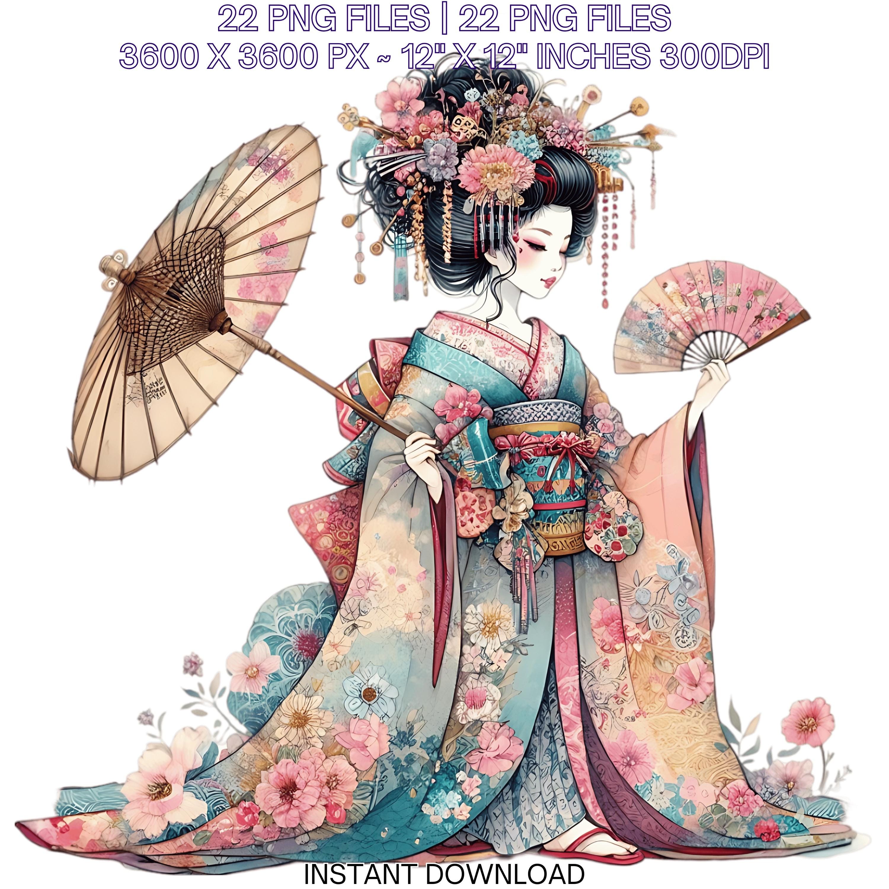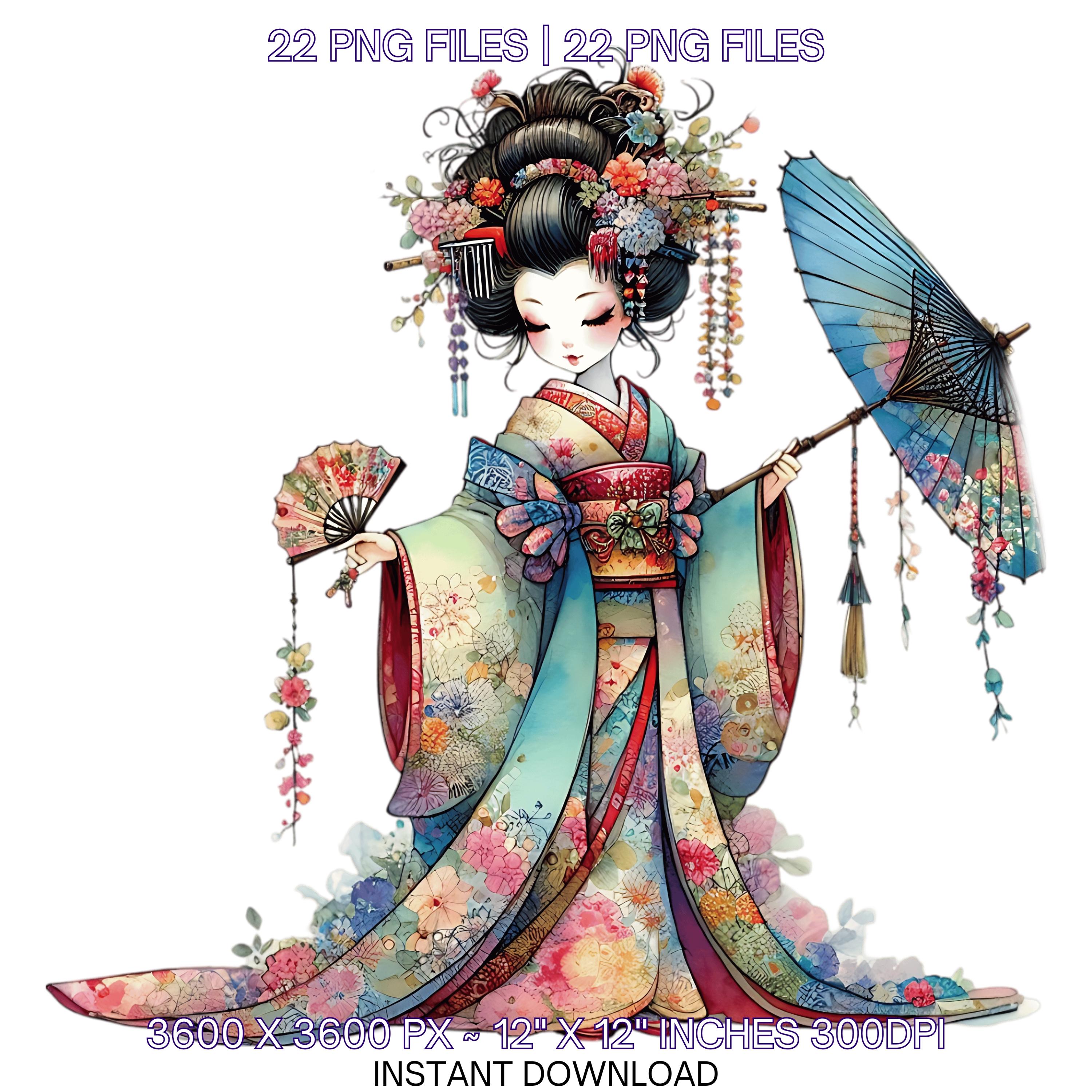 22 Quirky Geisha Clip Art PNG High Res Watercolor Fantasy, Whimsical for Sublimation, Junk Journaling, Scrapbooking, Card Making, Commercial – Instant Digital Download - TumblersGalaxy