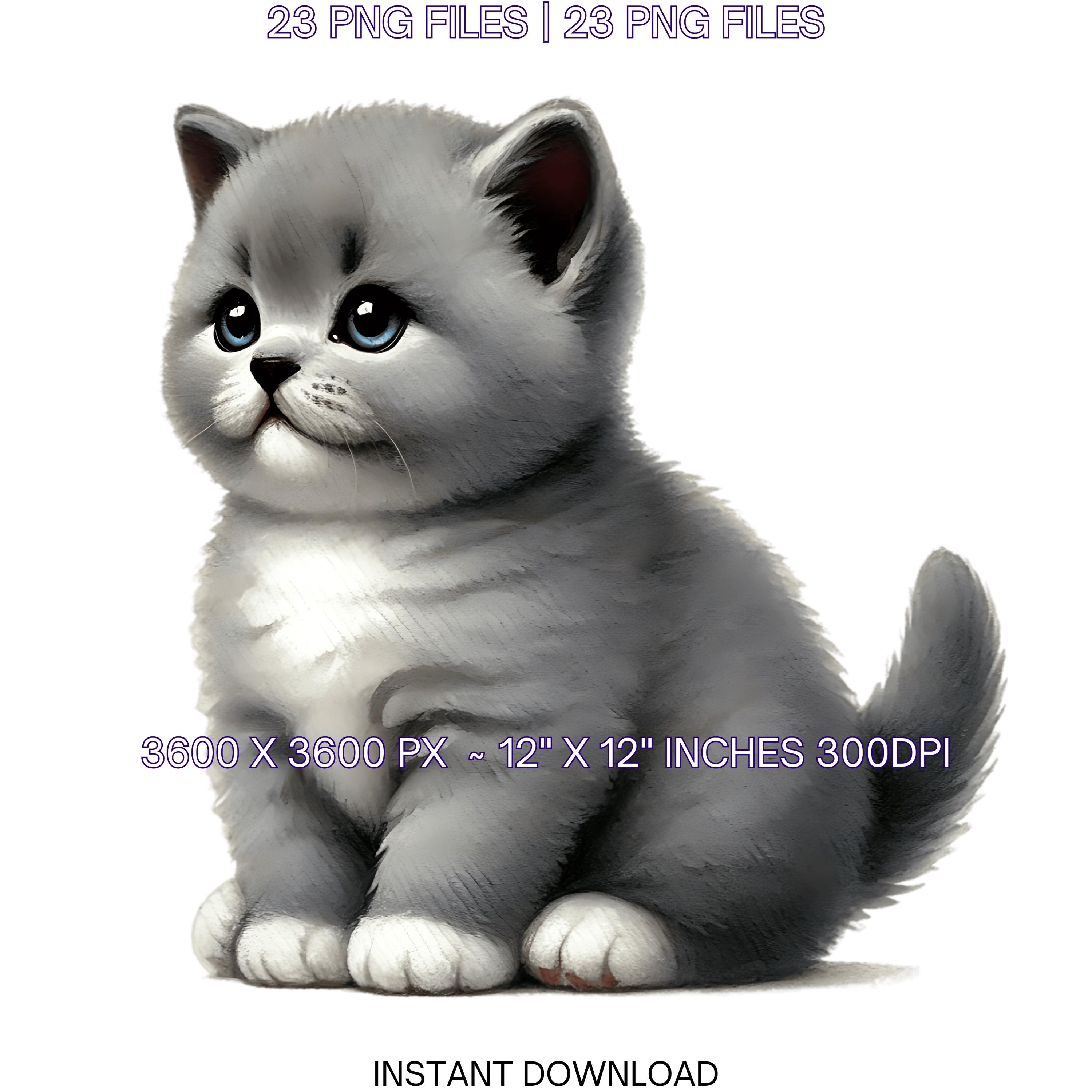 23 British Shorthair Kitten PNG Clipart | Pet Portrait | Watercolor Pet Card Making, Scrapbooking, Sublimation Illustrations, Commercial Use is an eye-catching, high-resolution digital asset designed for creators, crafters, teachers, and small business owners looking to elevate their visuals.