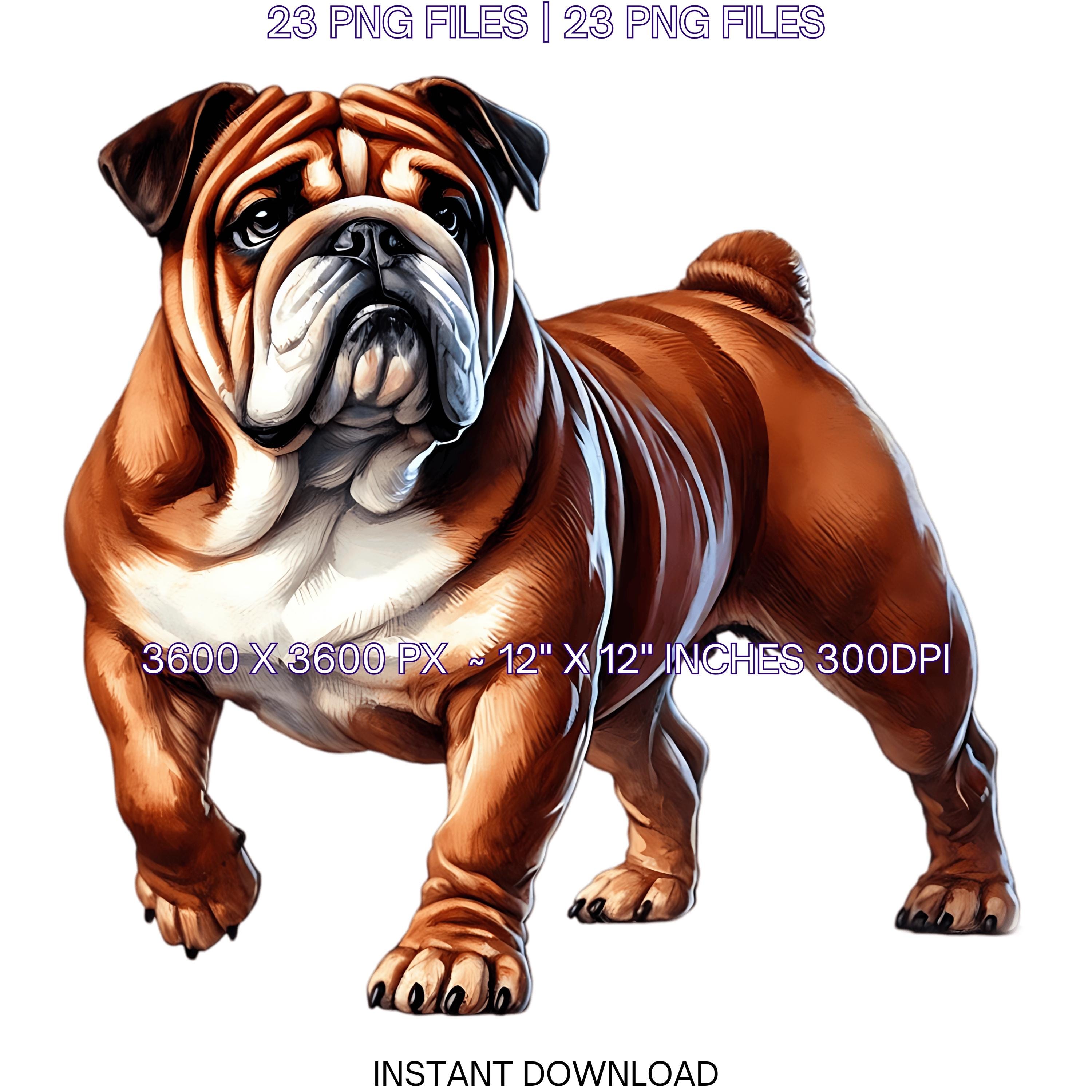23 Bulldog Dog PNG Clipart, Watercolor Bulldog Dog Card Making, Scrapbooking, Junk Journaling, Sublimation Pet Portrait Commercial Use is an eye-catching, high-resolution digital asset designed for creators, crafters, teachers, and small business owners looking to elevate their visuals.
