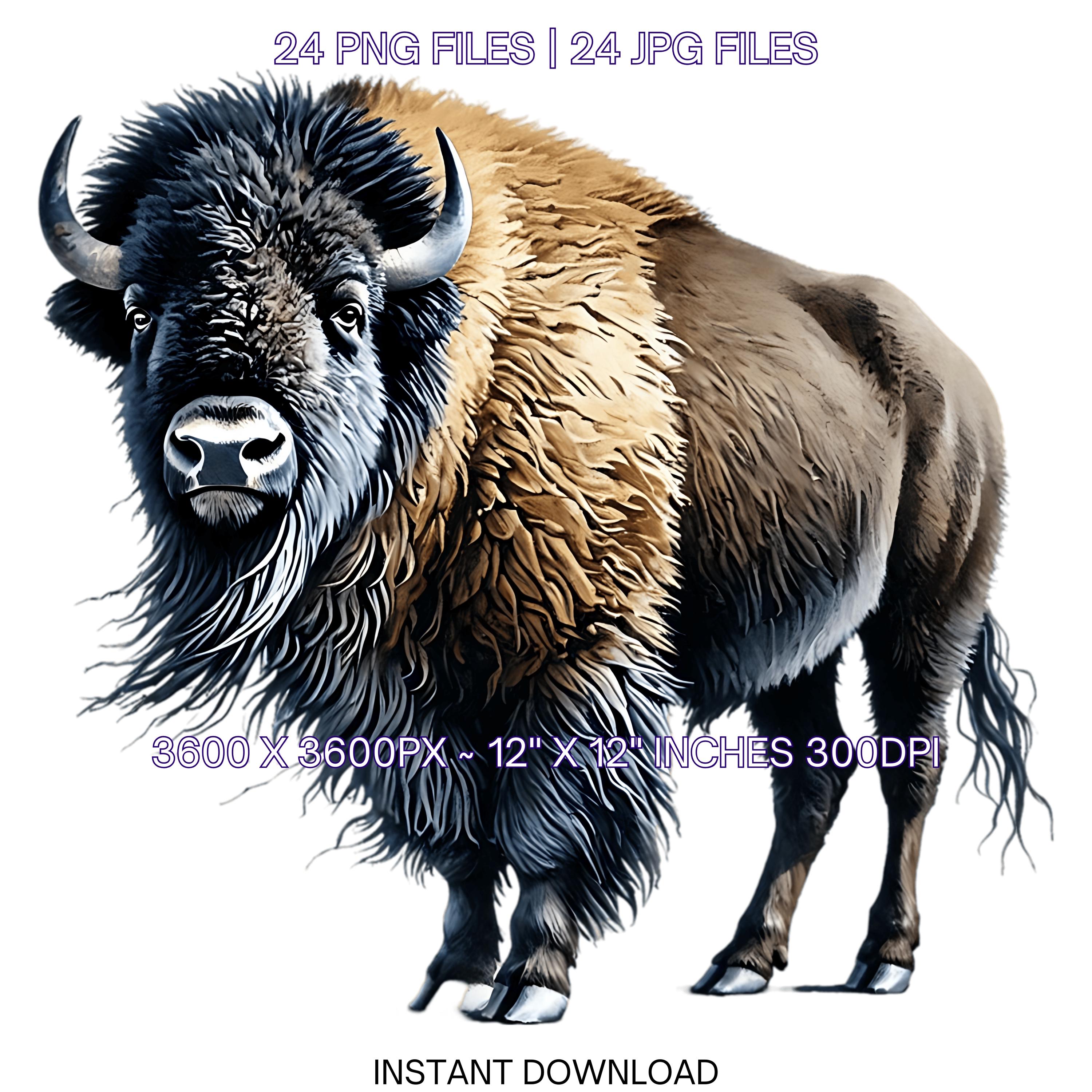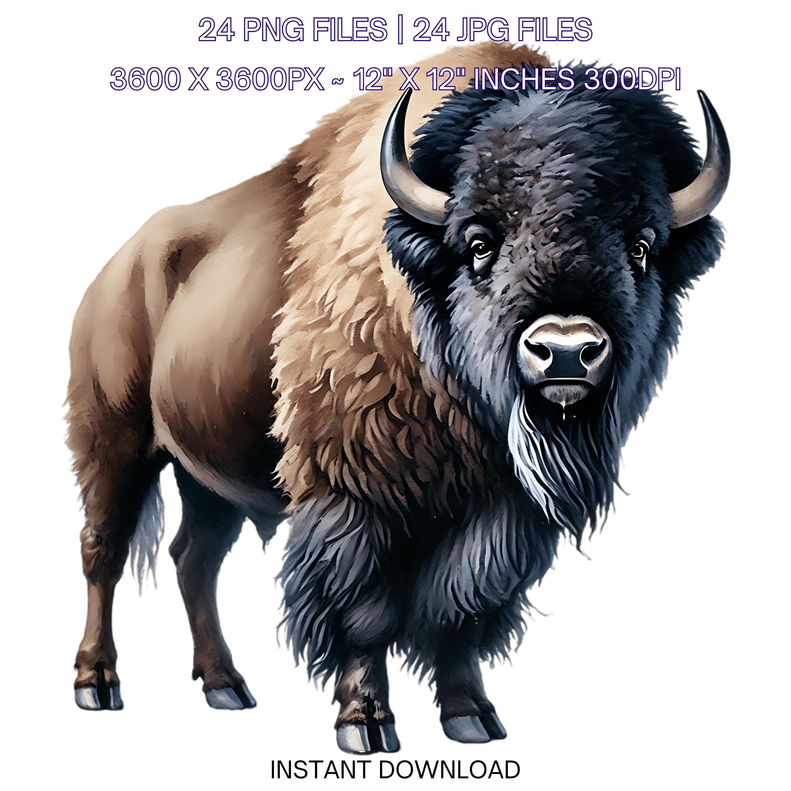 24 Bison PNG Clipart, Watercolor Wild Animals Bison for Card Making, Scrapbooking, Junk Journaling, Sublimation Image Commercial Use is an eye-catching, high-resolution digital asset designed for creators, crafters, teachers, and small business owners looking to elevate their visuals.