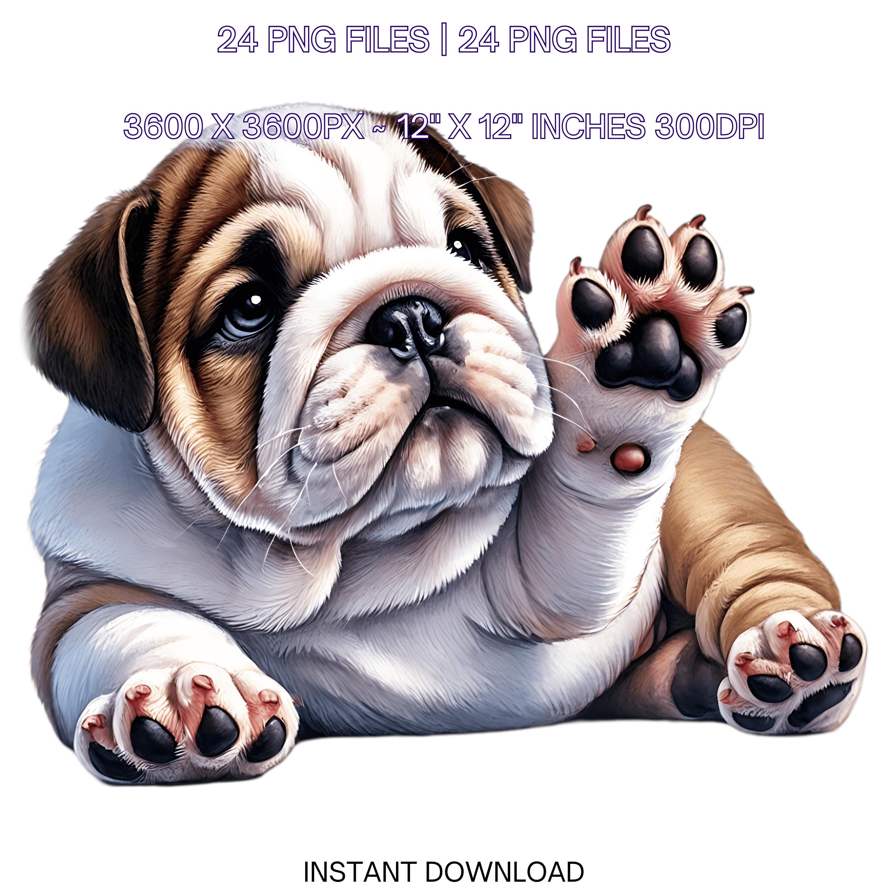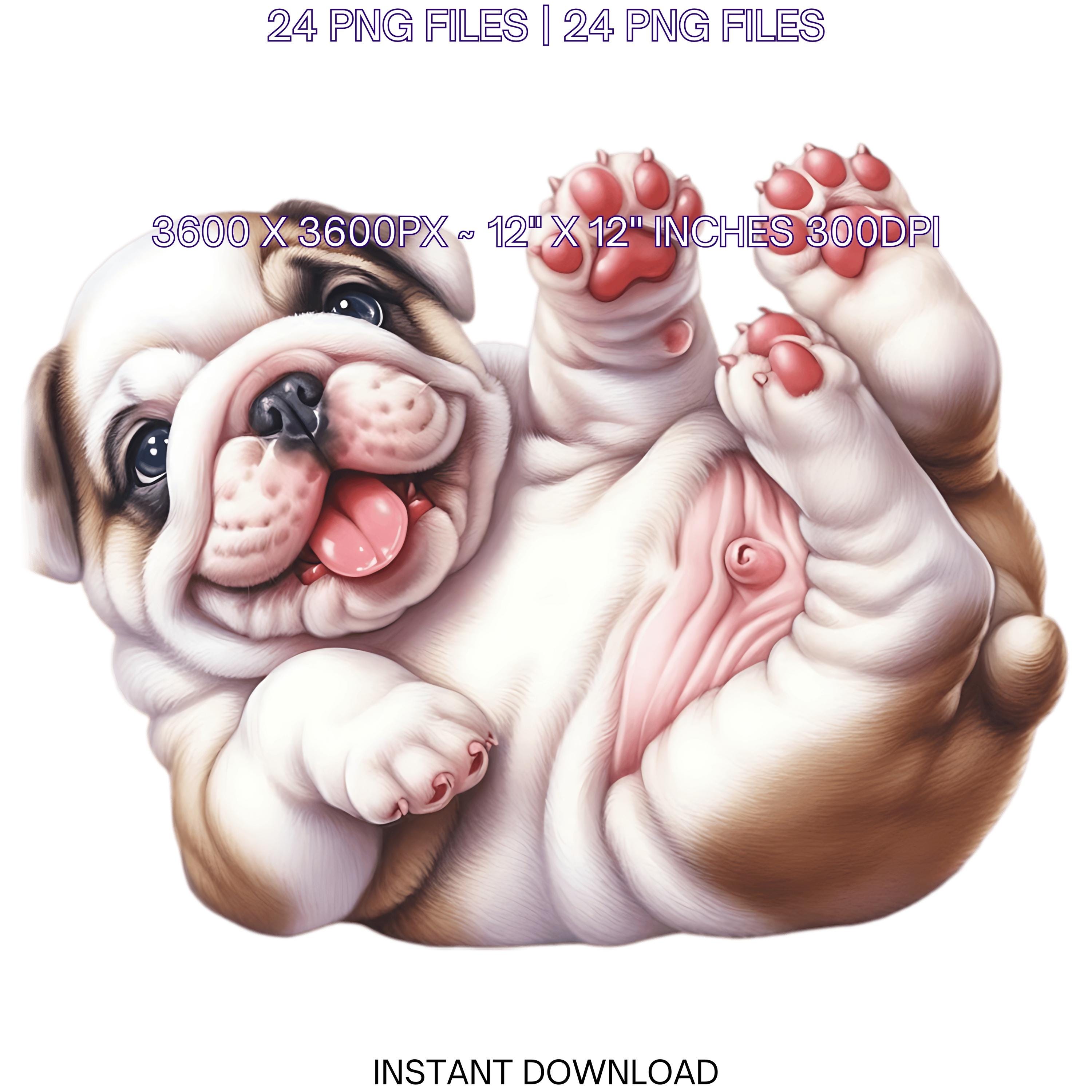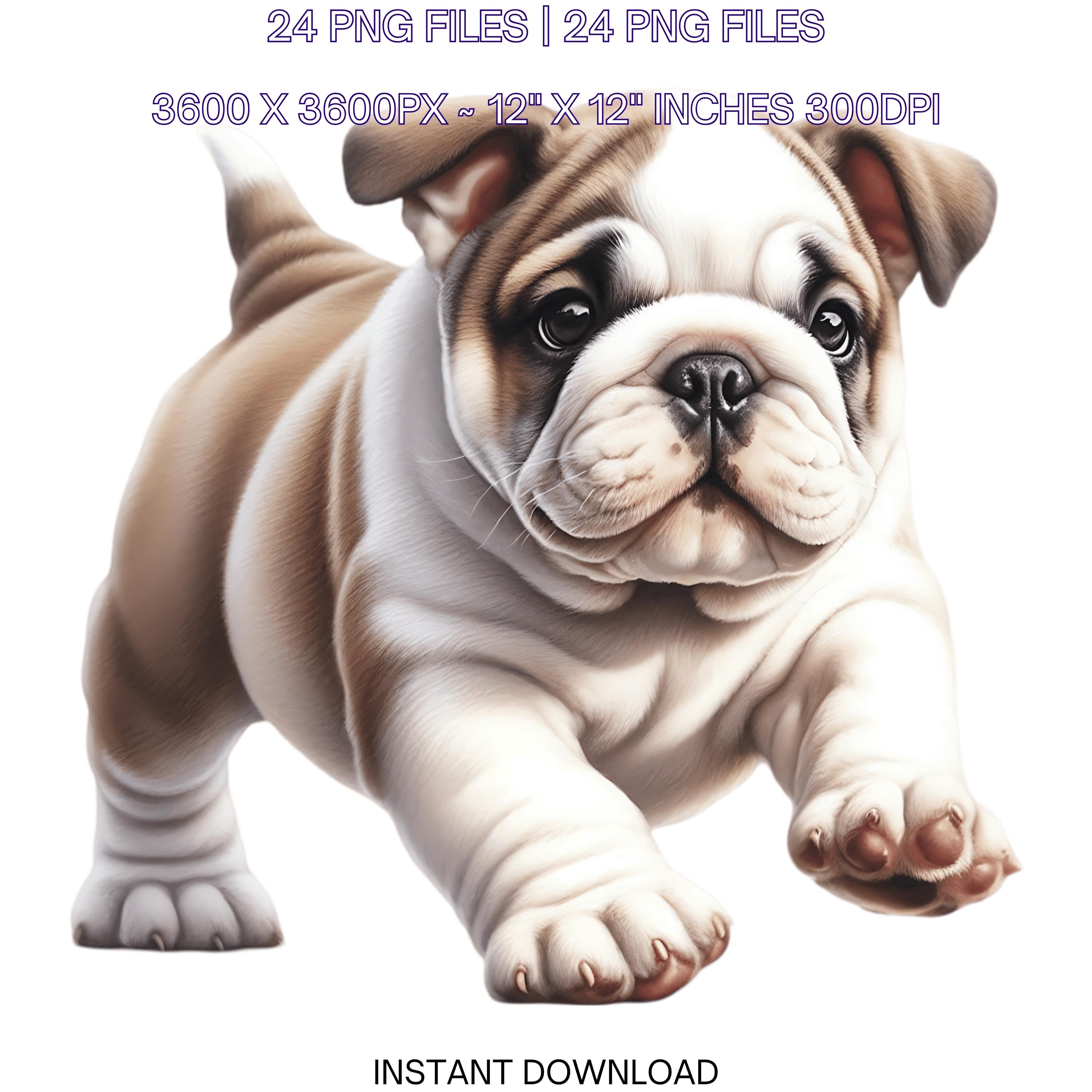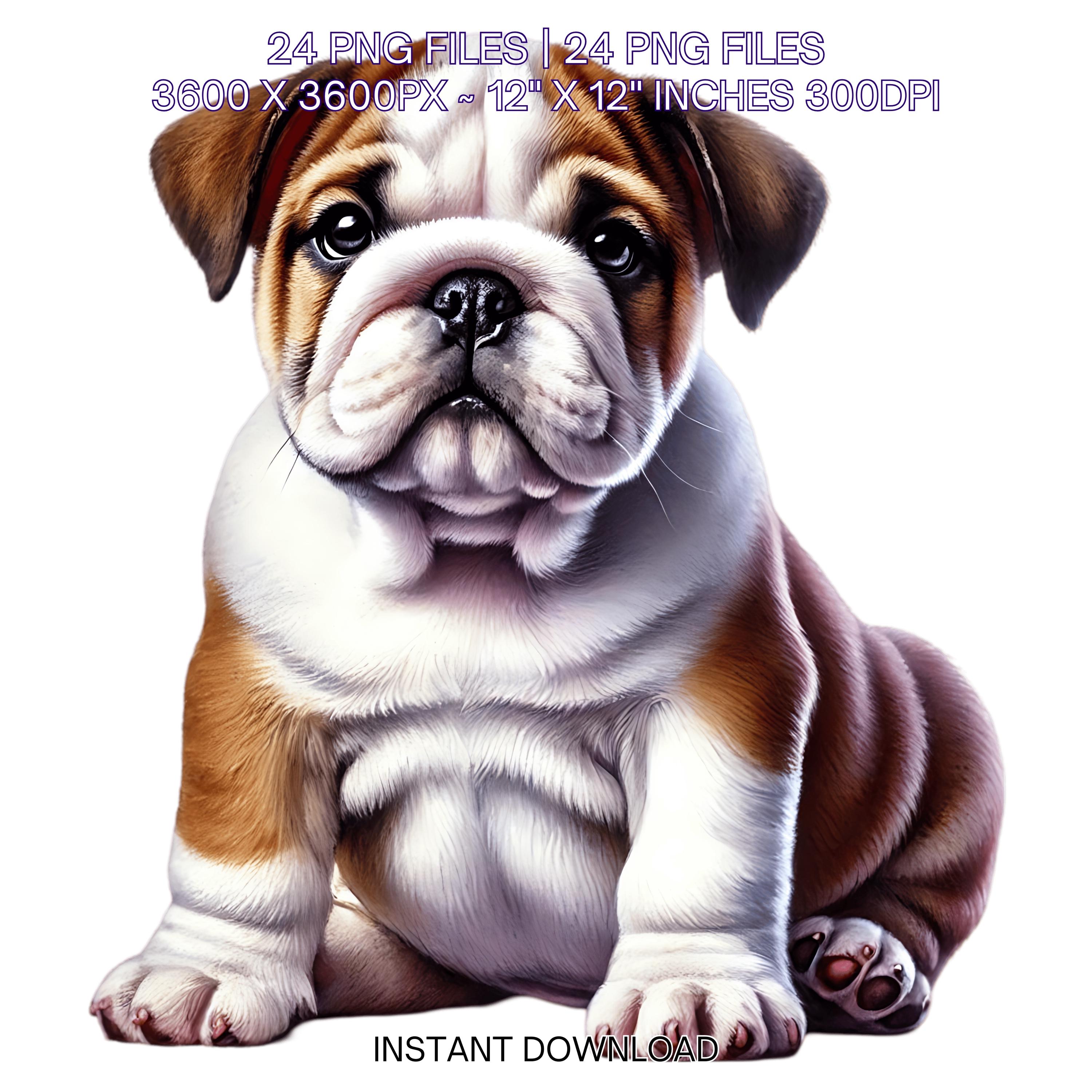24 Bulldog Puppy Dog PNG Clipart | Watercolor Bulldog Baby Dog for Card Making, Scrapbooking, Junk Journaling, Sublimation Commercial Use is an eye-catching, high-resolution digital asset designed for creators, crafters, teachers, and small business owners looking to elevate their visuals.