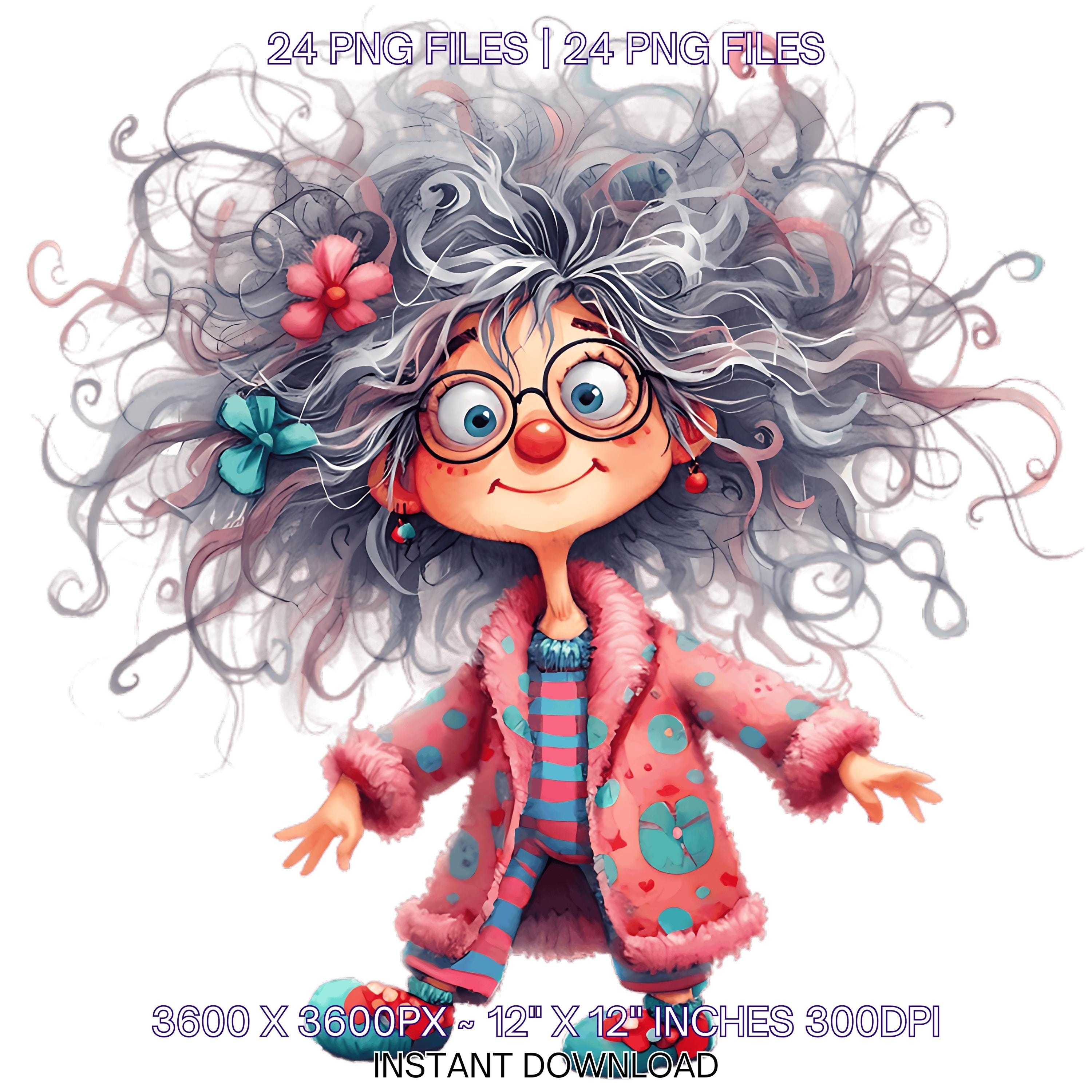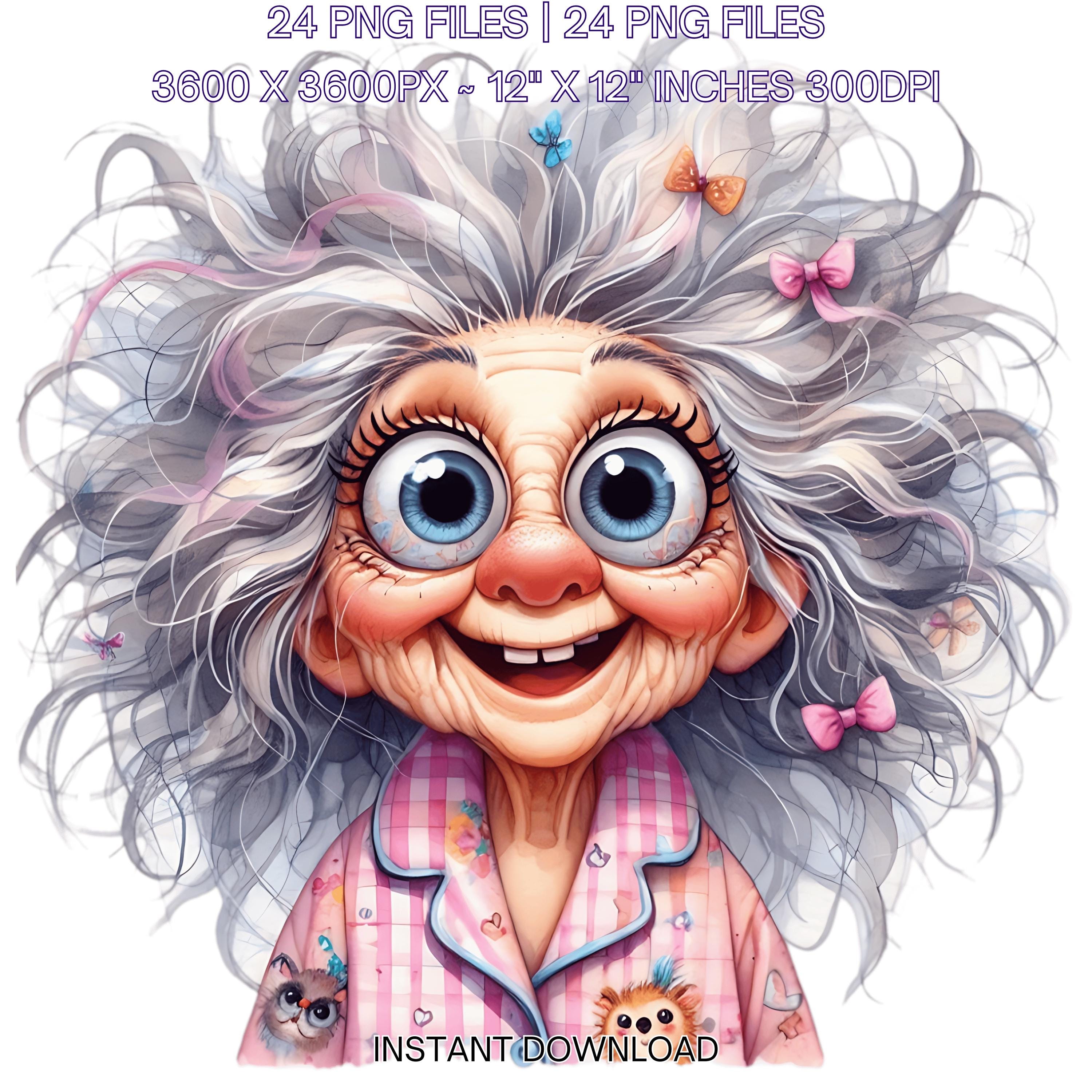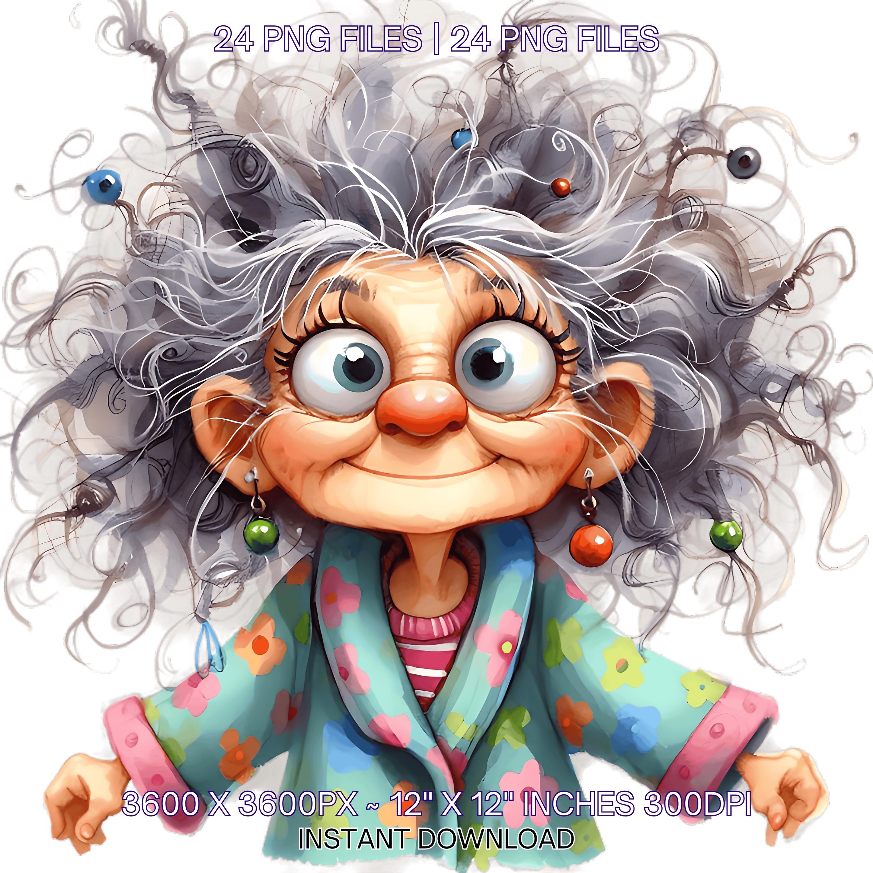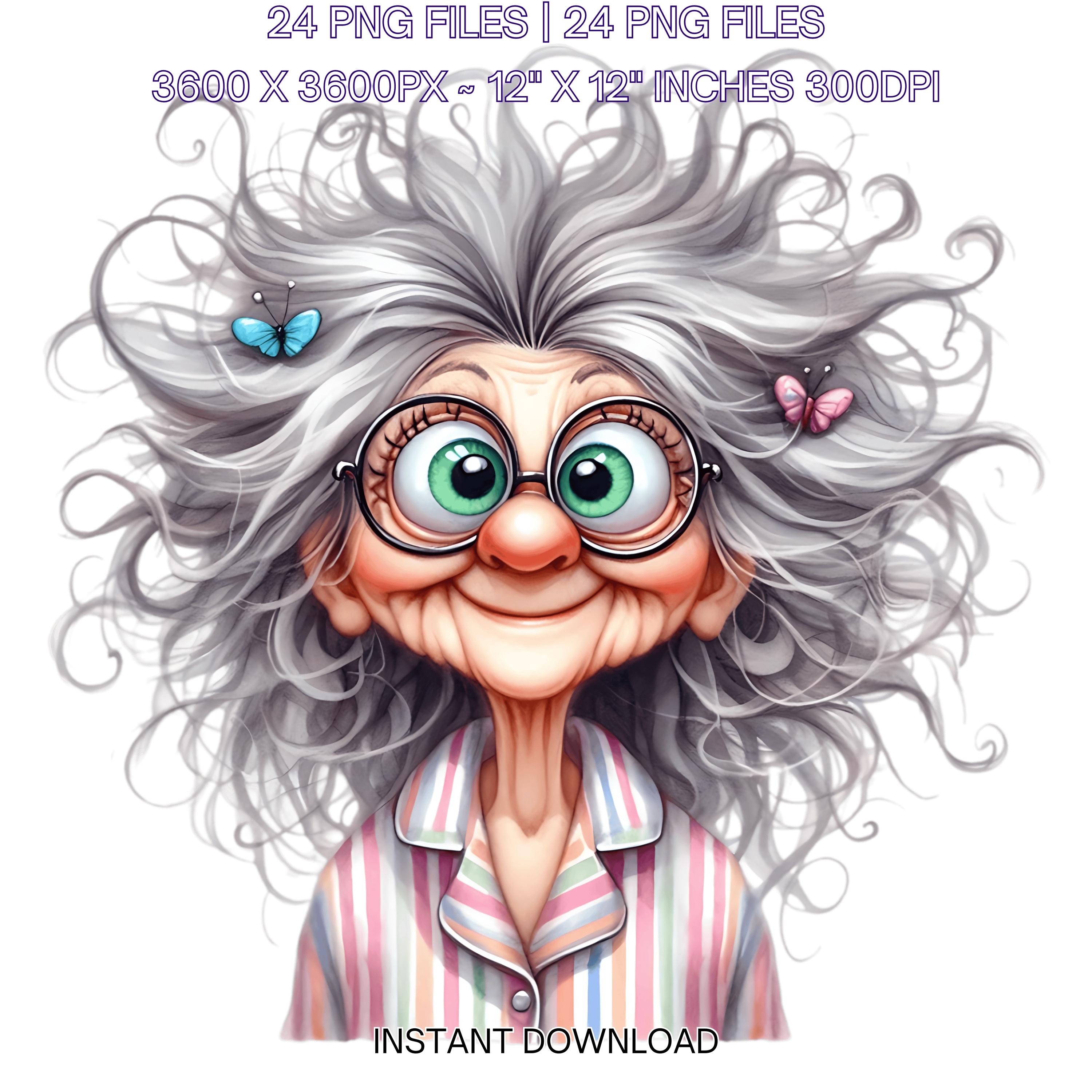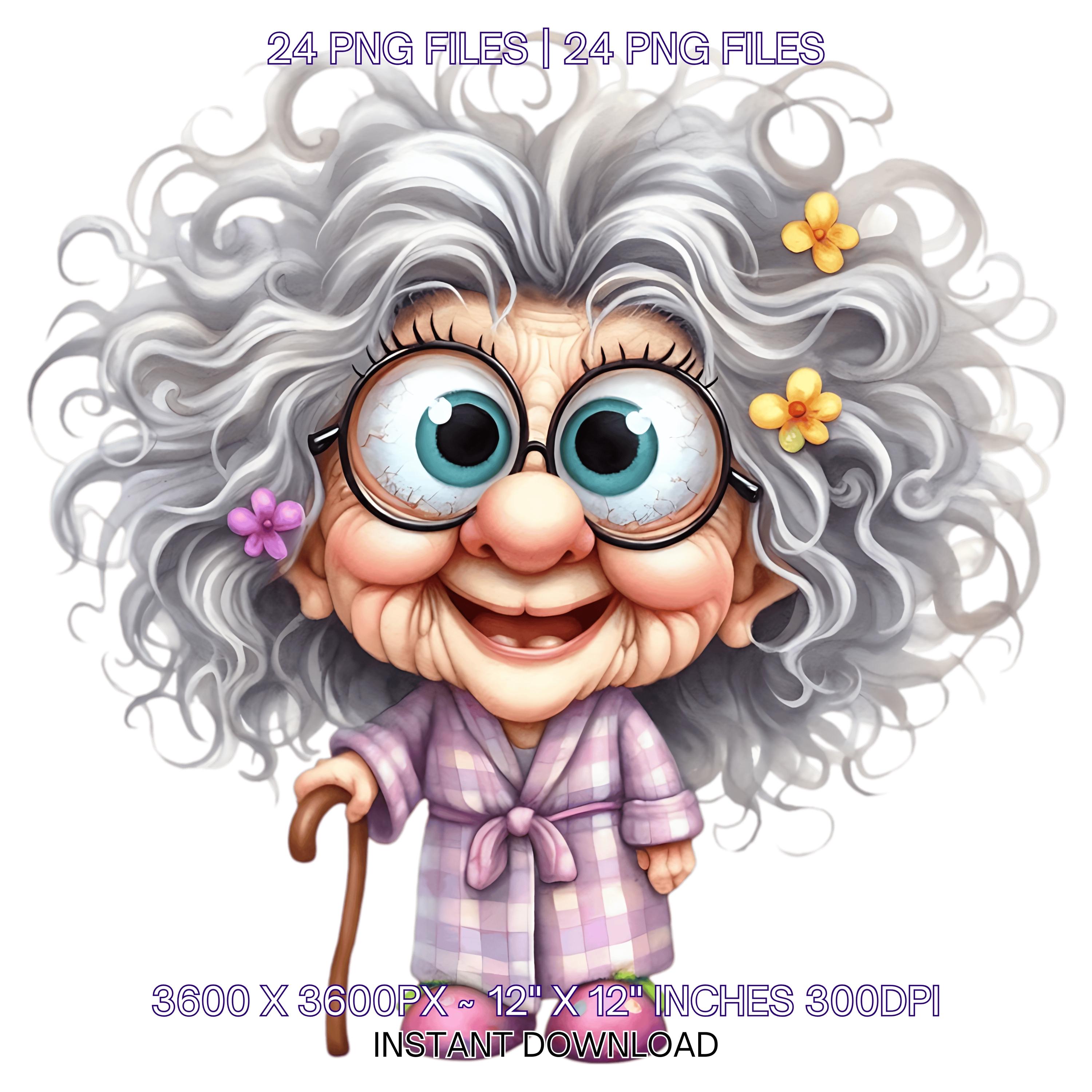 24 Funny Old Ladies Clipart | Cute Cartoon Grandma | Happy Woman Clipart | Crazy Old Lady Clipart | Funny White Grandma Sublimation Commercial Use