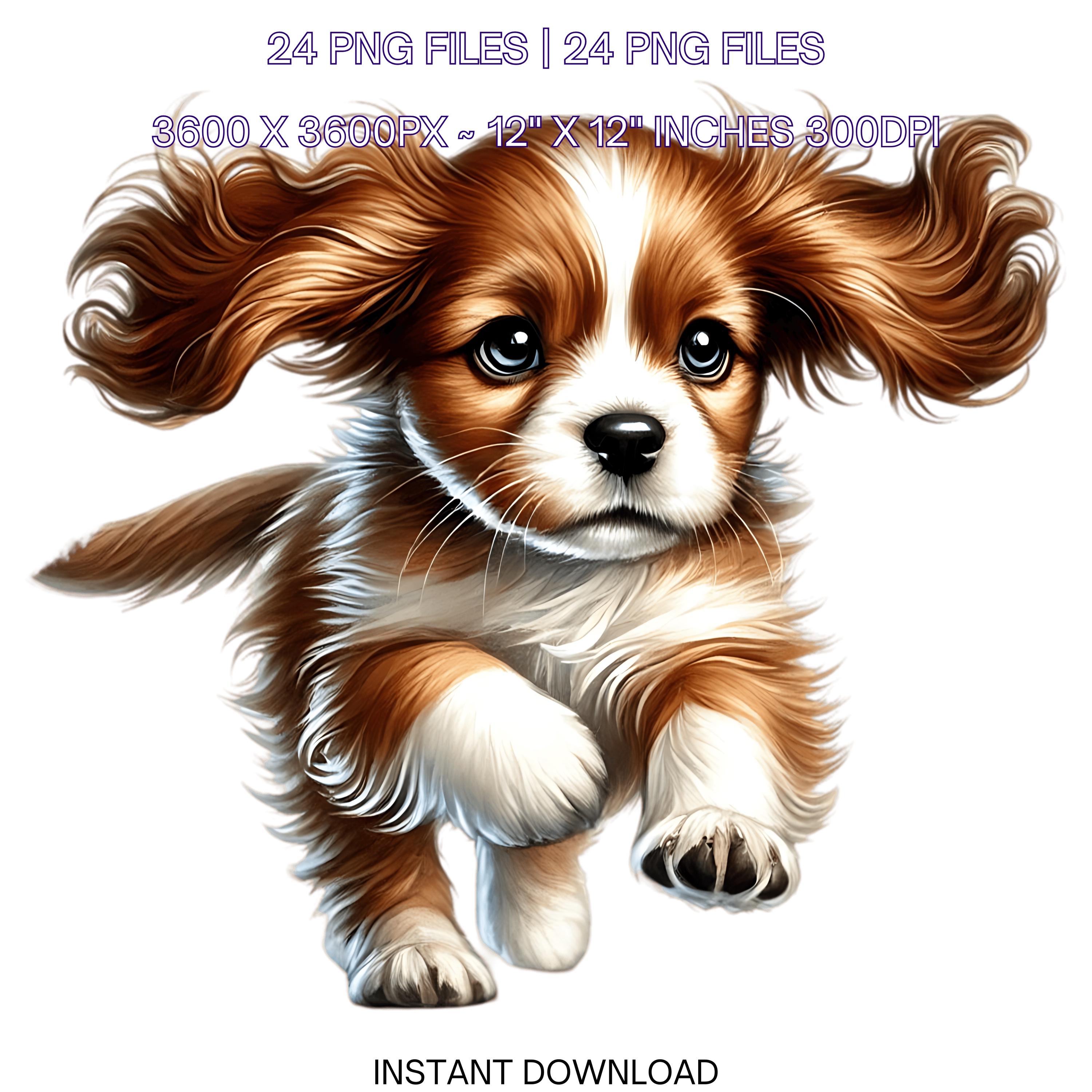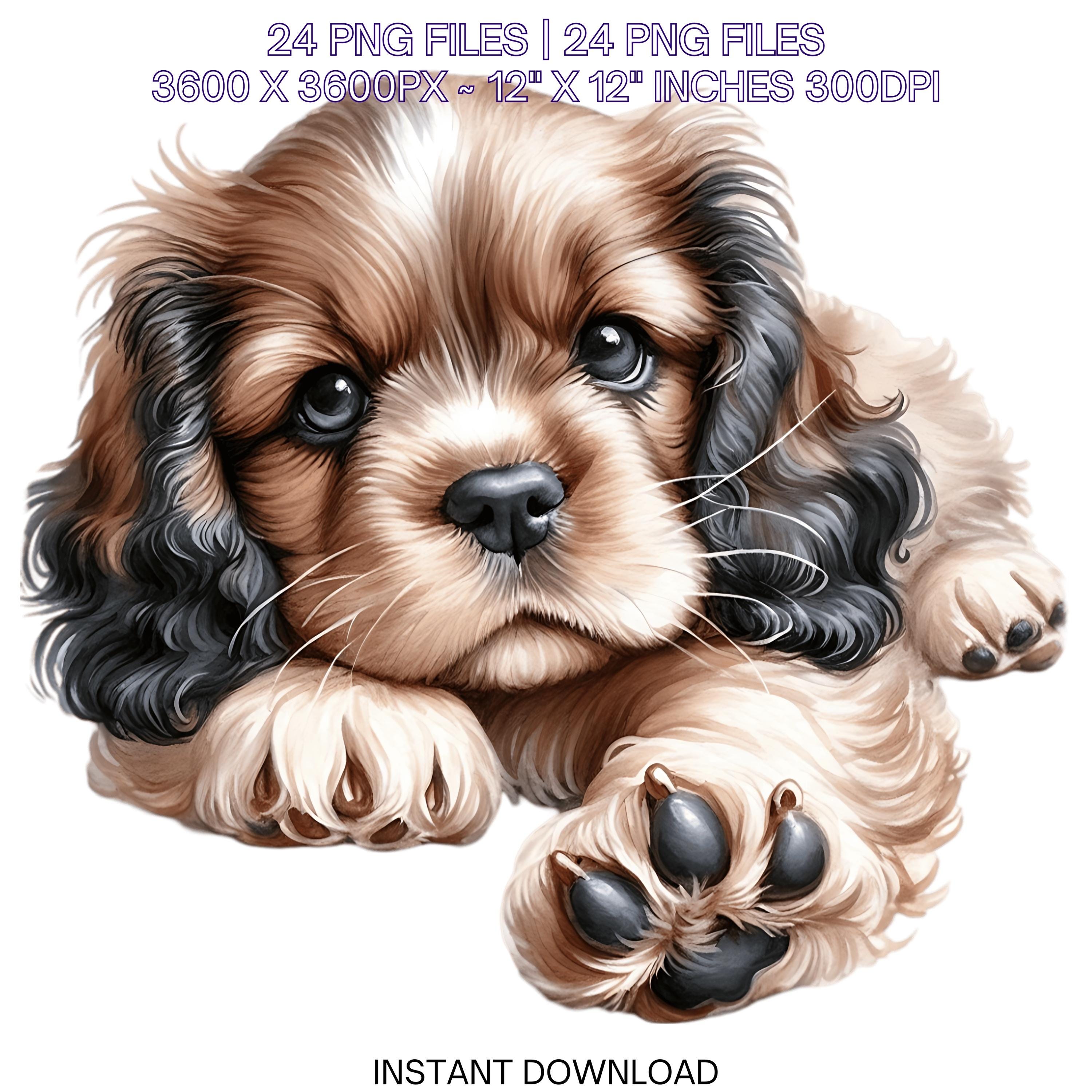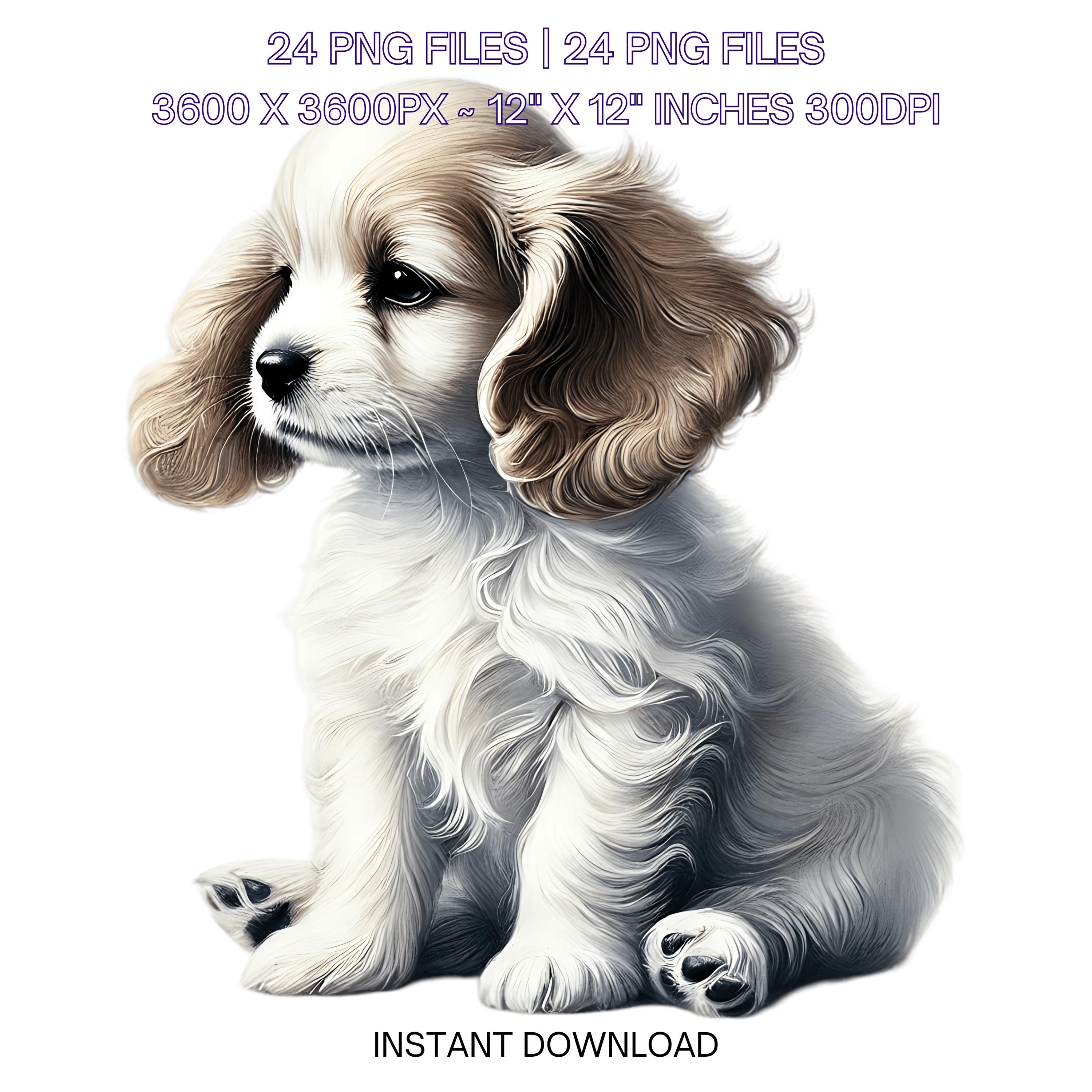 24 French Spaniel Puppy Dog PNG Clipart | Watercolor Baby Dog for Card Making, Scrapbooking, Junk Journaling, Sublimation Commercial Use is an eye-catching, high-resolution digital asset designed for creators, crafters, teachers, and small business owners looking to elevate their visuals.