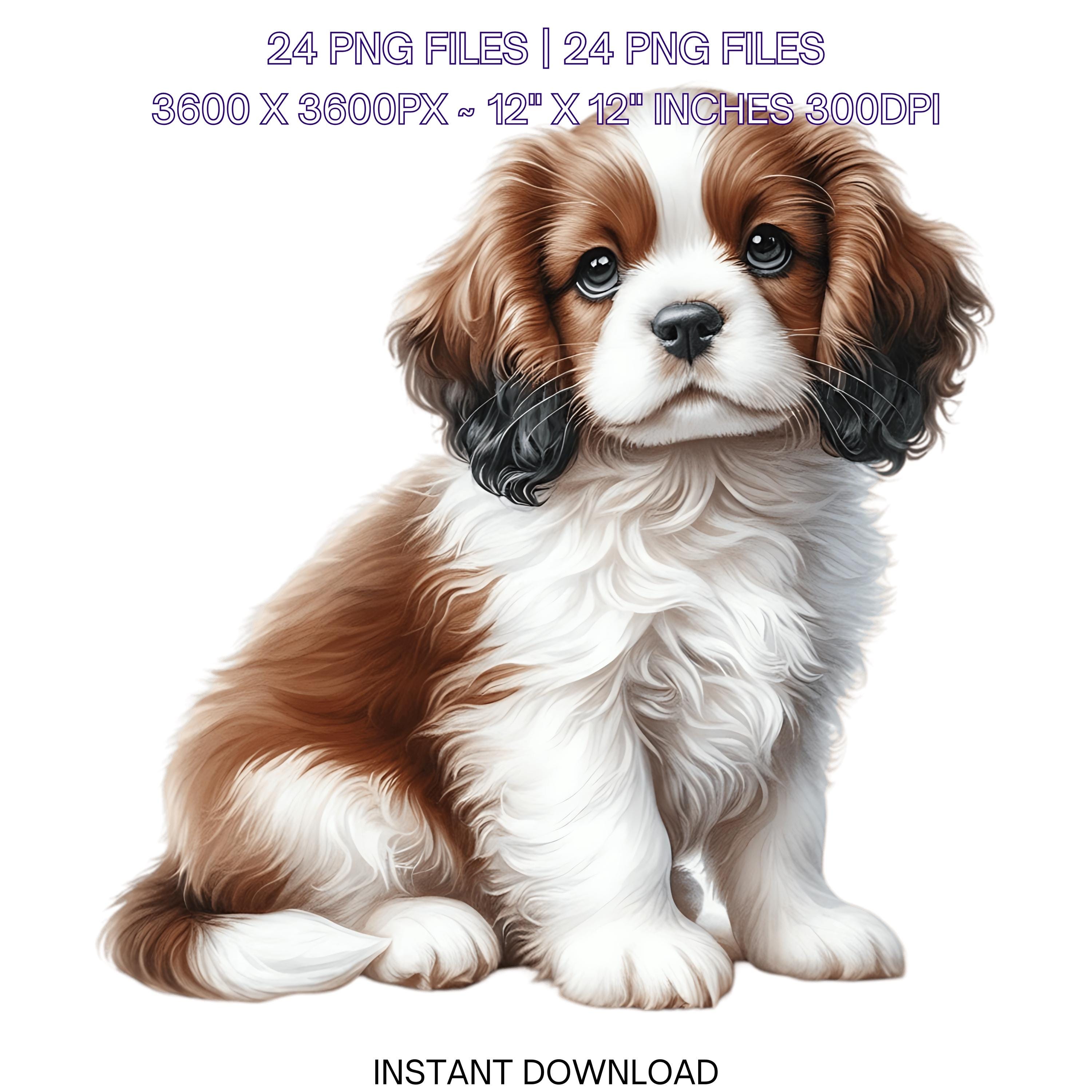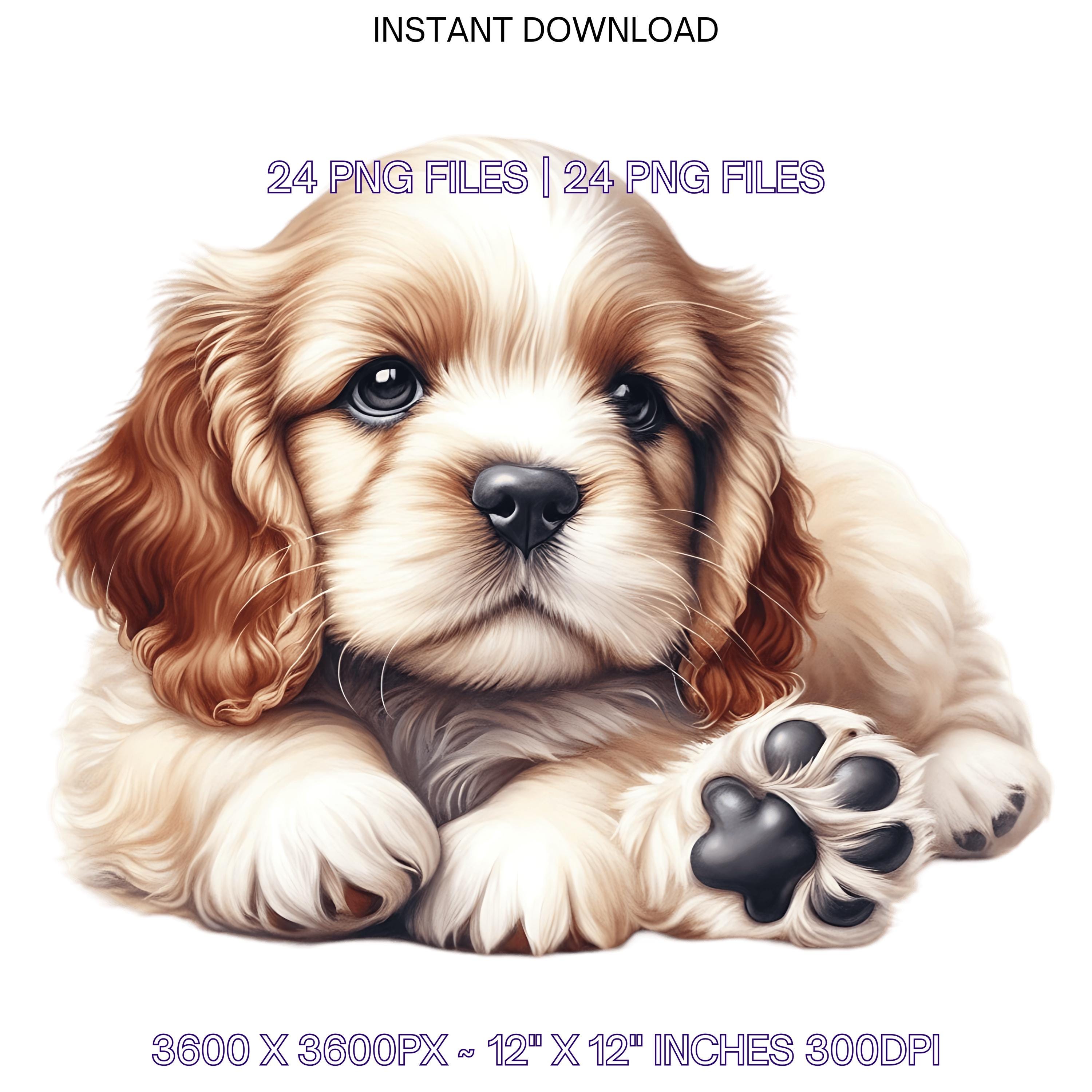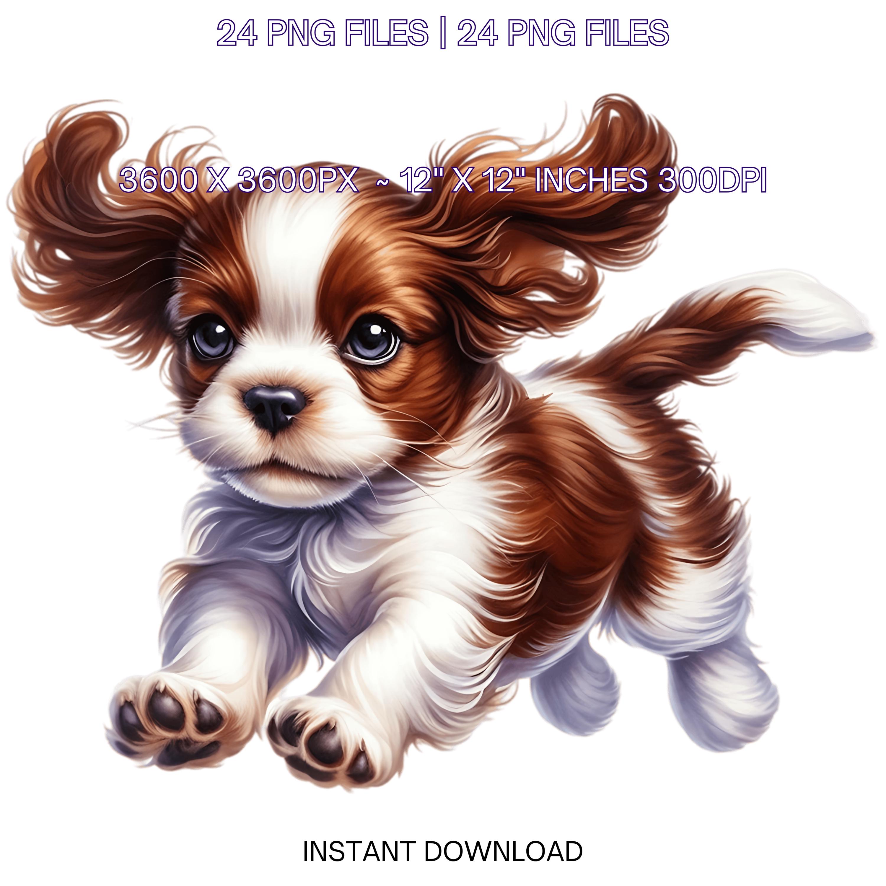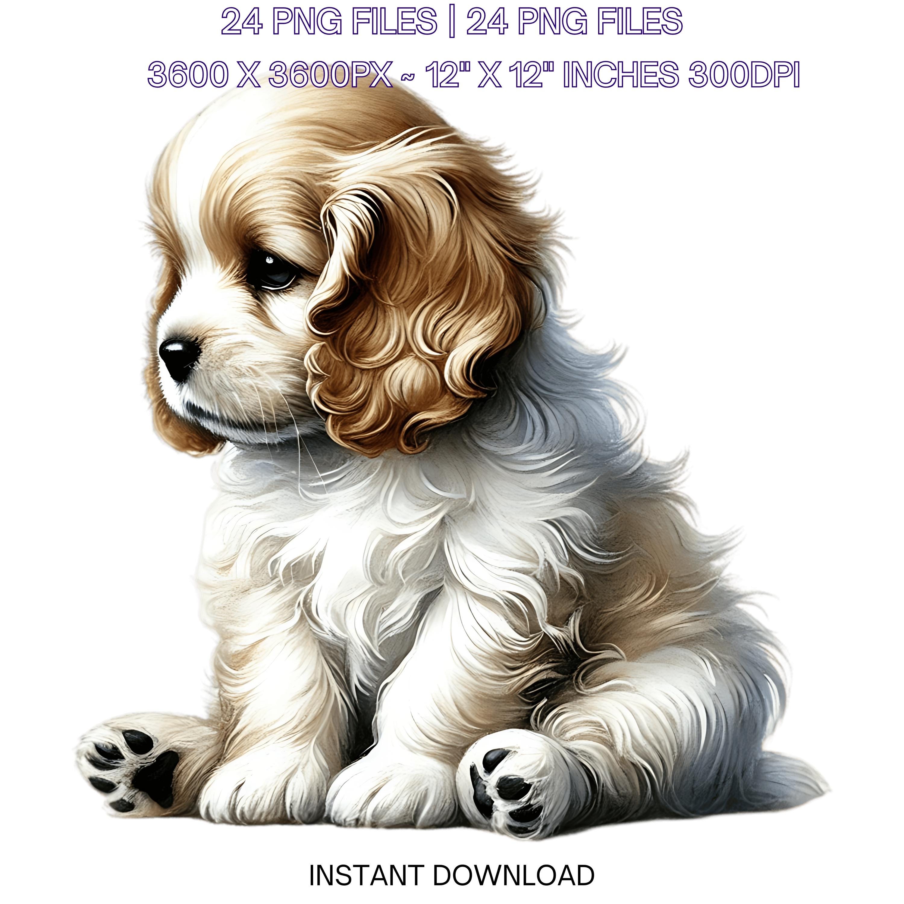 24 French Spaniel Puppy Dog PNG Clipart | Watercolor Baby Dog for Card Making, Scrapbooking, Junk Journaling, Sublimation Commercial Use is an eye-catching, high-resolution digital asset designed for creators, crafters, teachers, and small business owners looking to elevate their visuals.