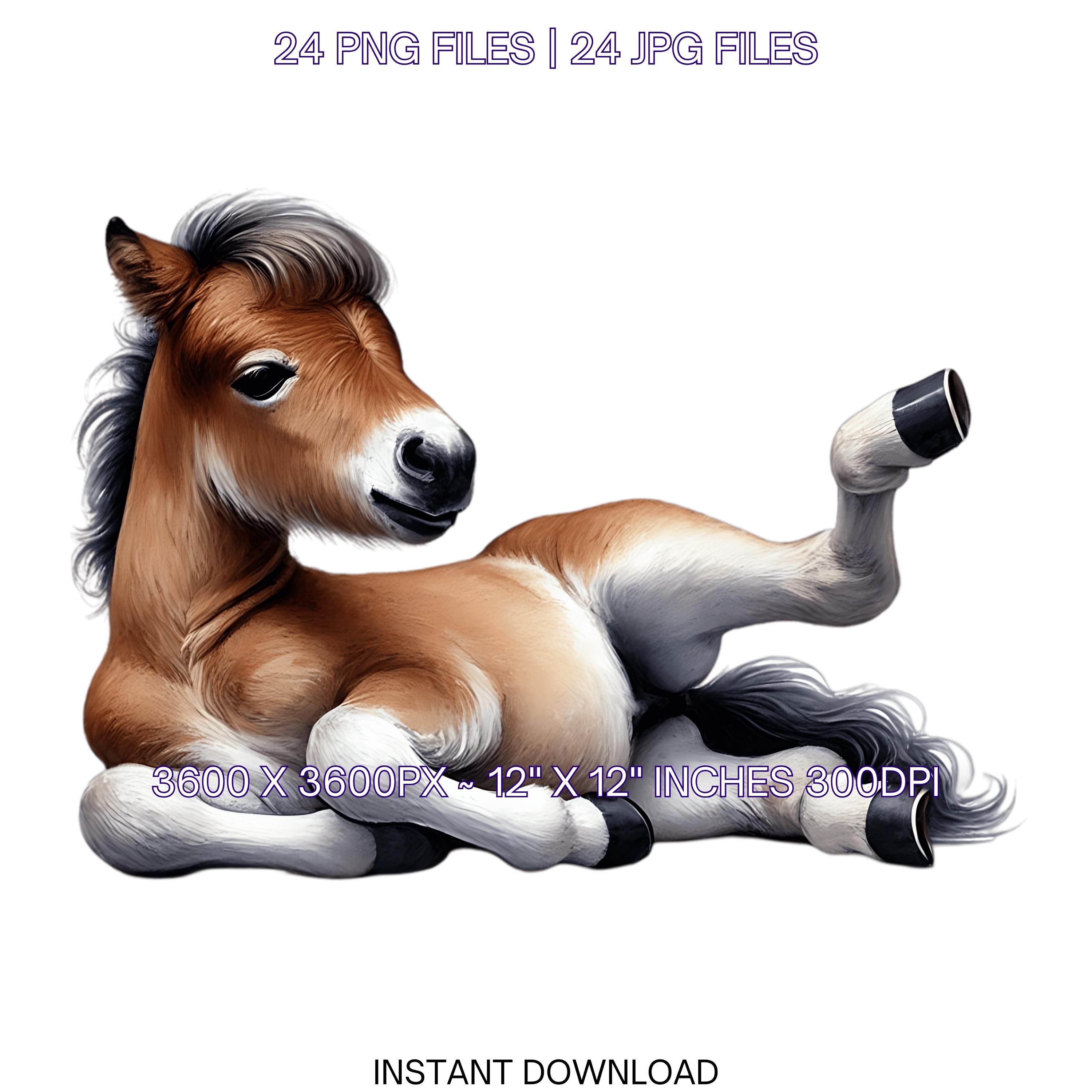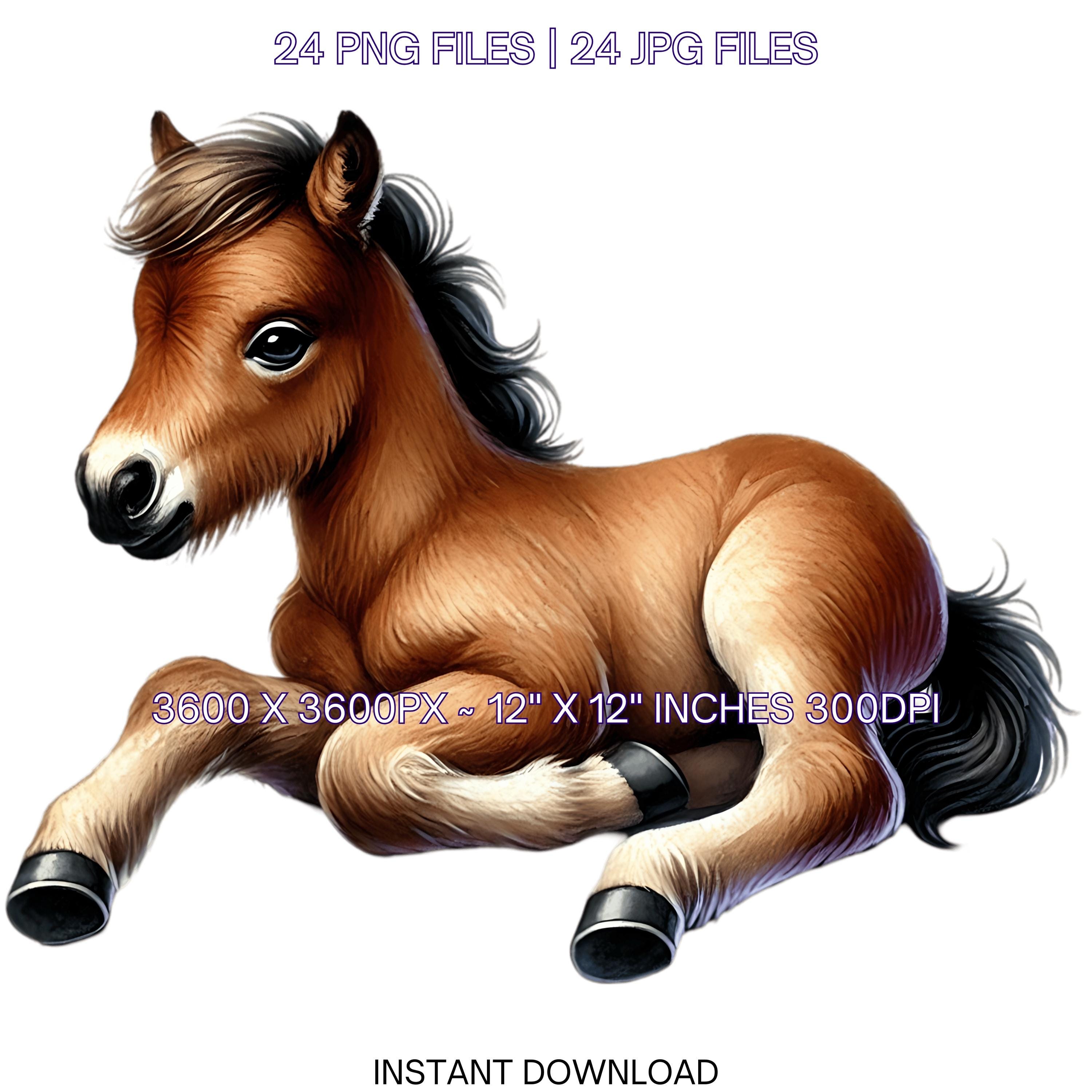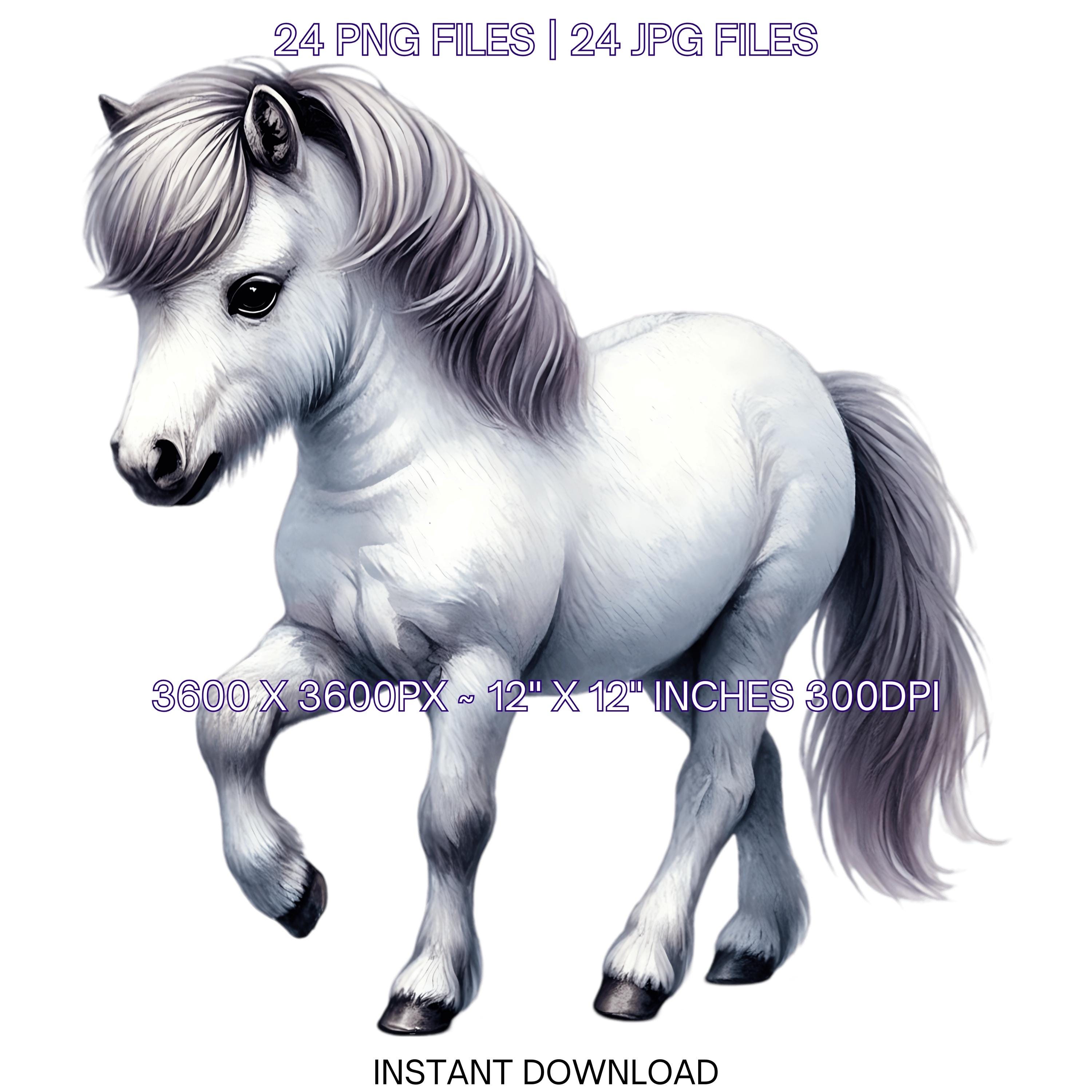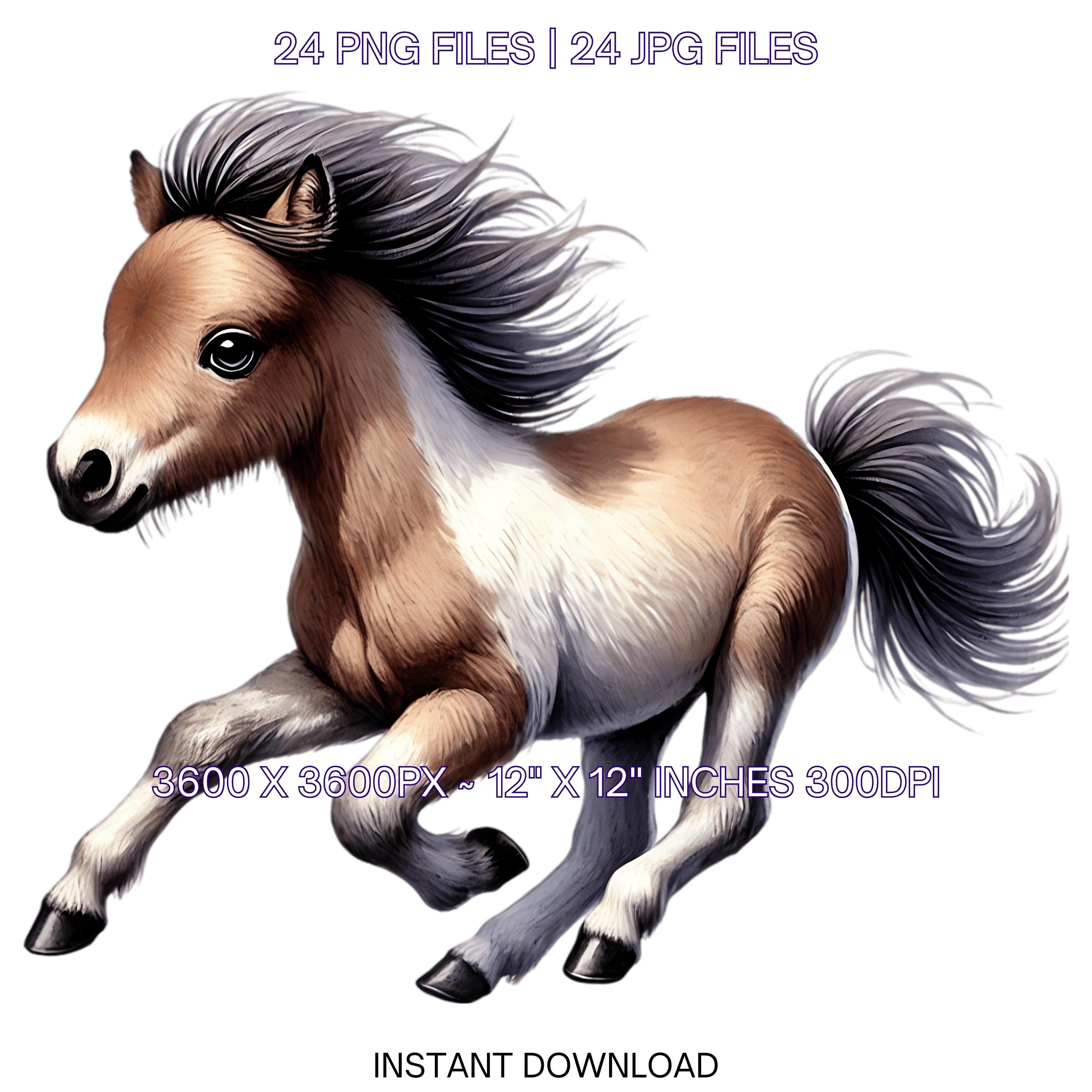 24 Miniature Horse PNG Clipart, Watercolor Pony Farm Animals for Card Making, Scrapbooking Junk Journaling, Sublimation Image Commercial Use is an eye-catching, high-resolution digital asset designed for creators, crafters, teachers, and small business owners looking to elevate their visuals.