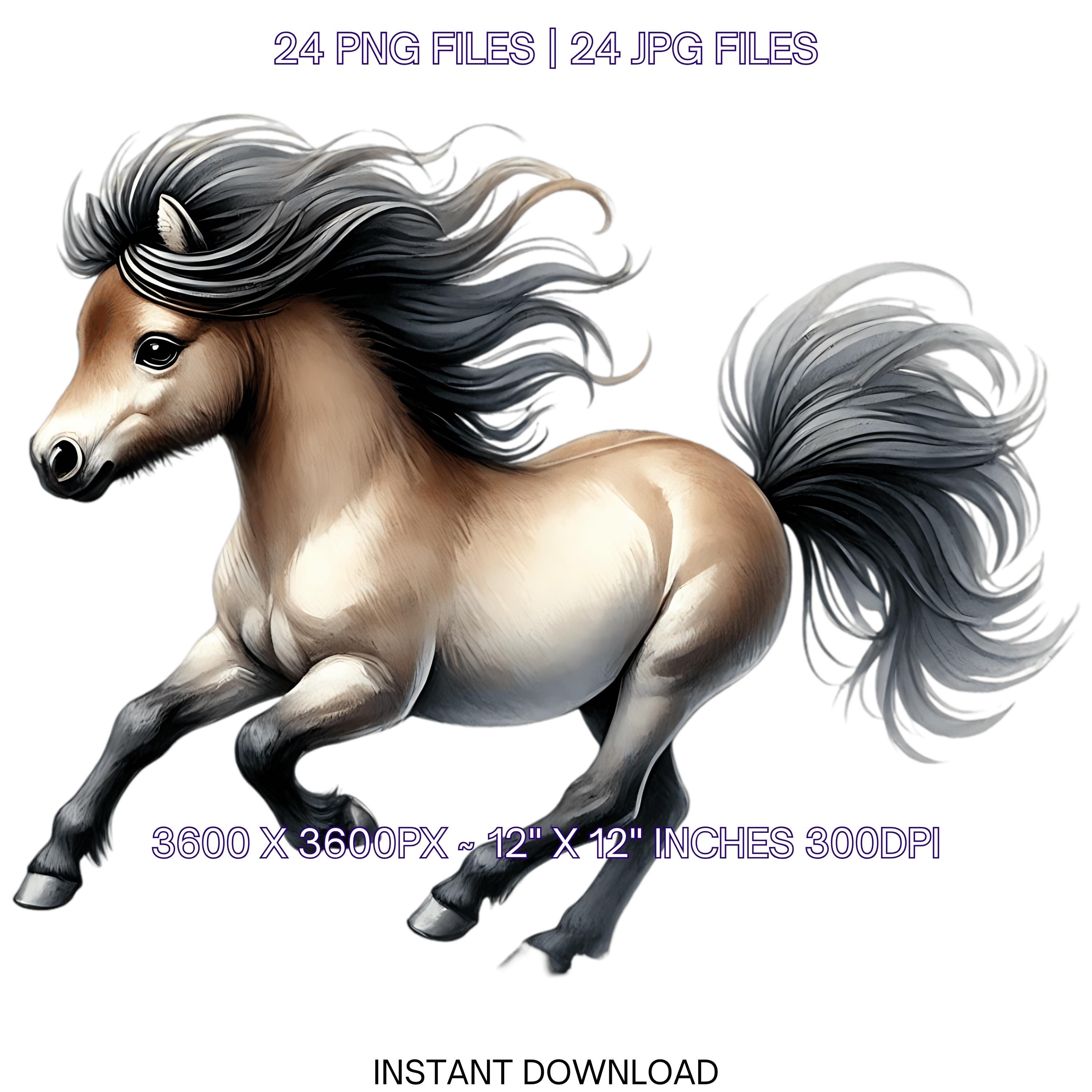 24 Miniature Horse PNG Clipart, Watercolor Pony Farm Animals for Card Making, Scrapbooking, Junk Journaling, Sublimation Illustrations Commercial Use