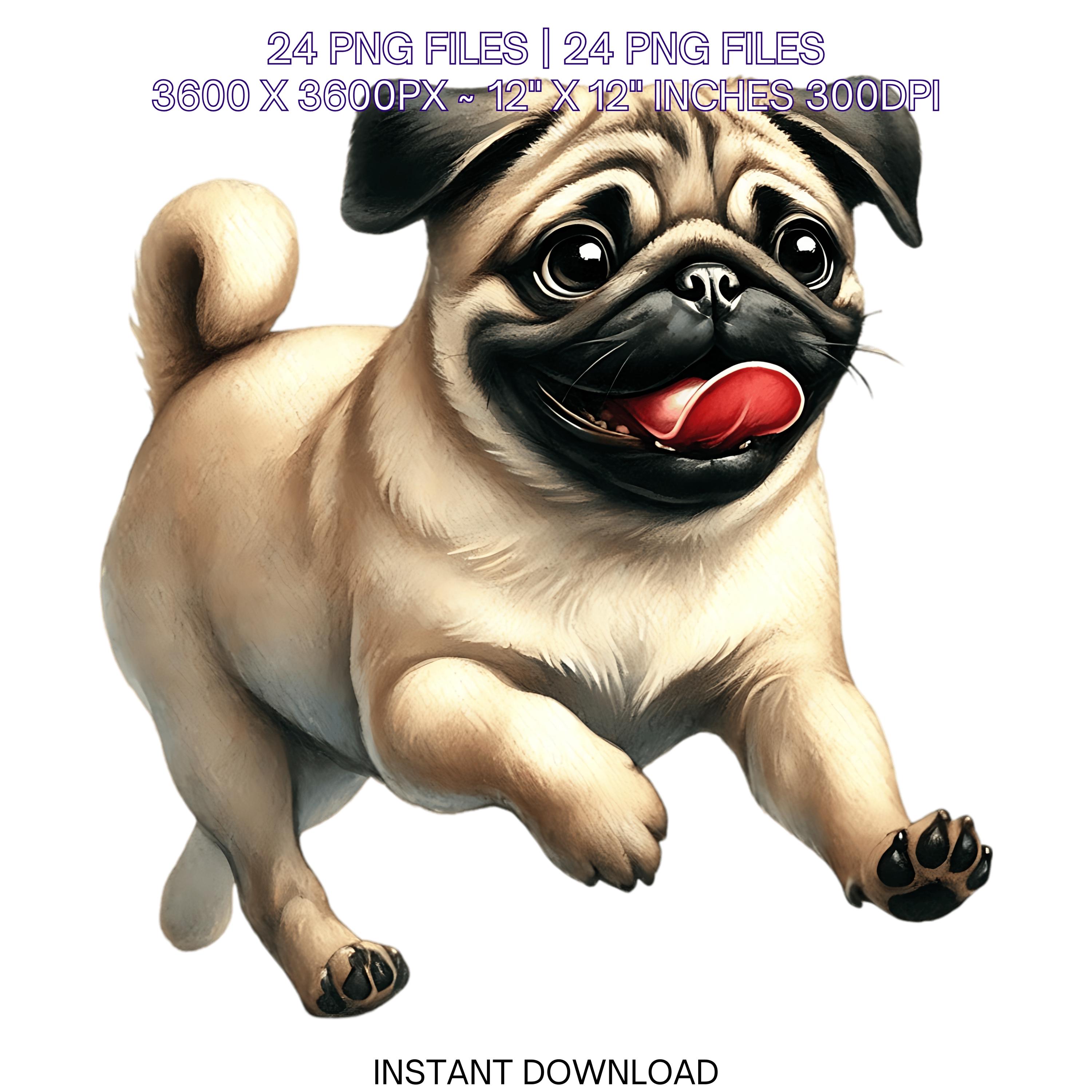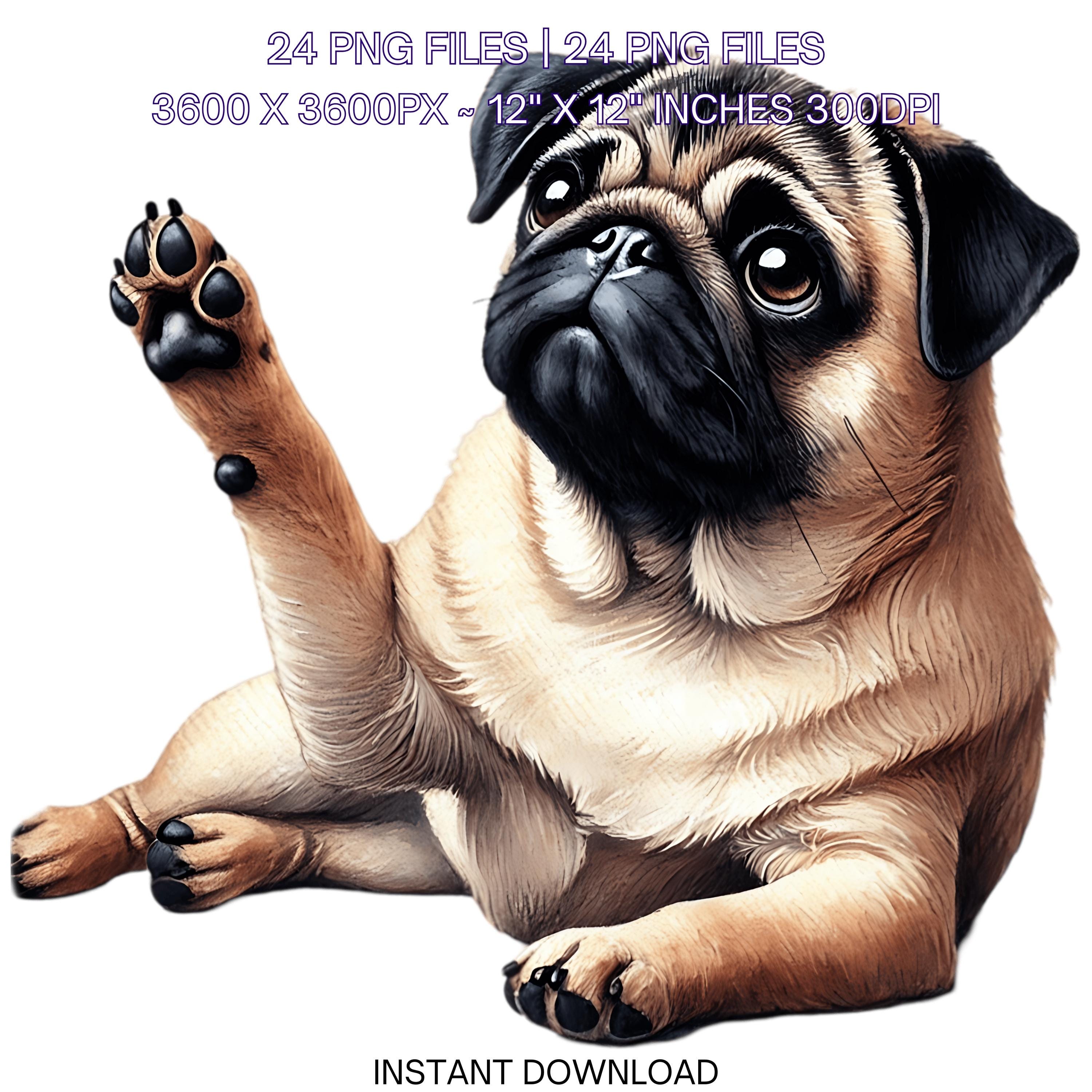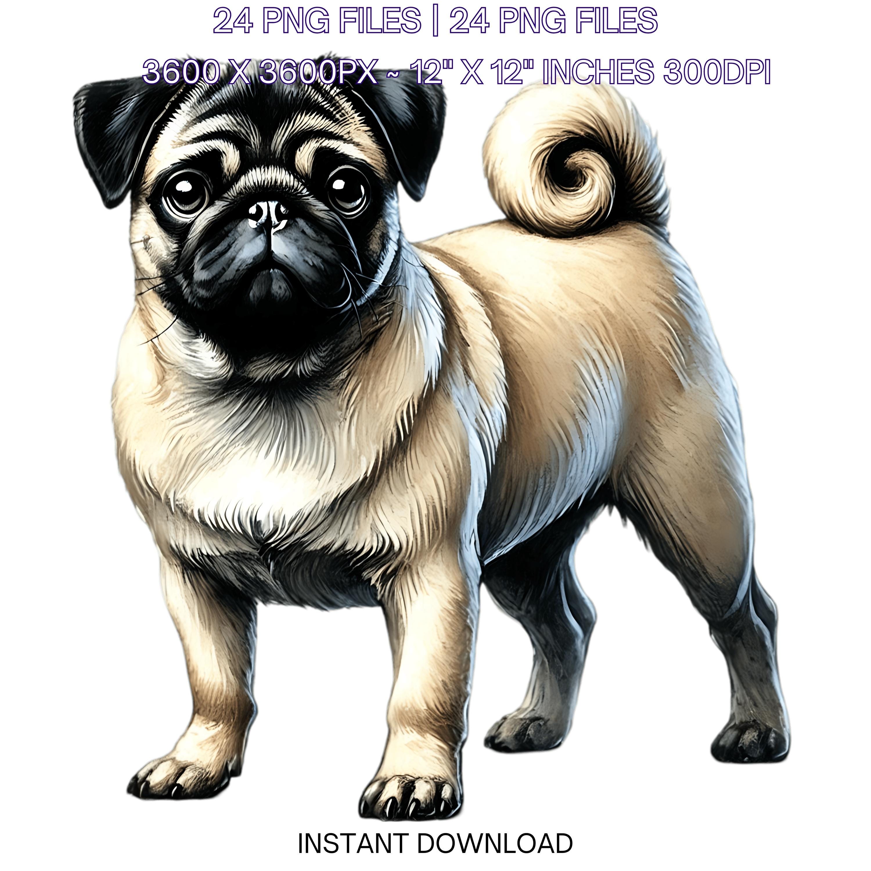 24 PUG Dog PNG Clipart, Watercolor PUG Dog for Card Making, Scrapbooking, Junk Journaling, Sublimation Illustrations Pet Portrait Commercial is an eye-catching, high-resolution digital asset designed for creators, crafters, teachers, and small business owners looking to elevate their visuals.