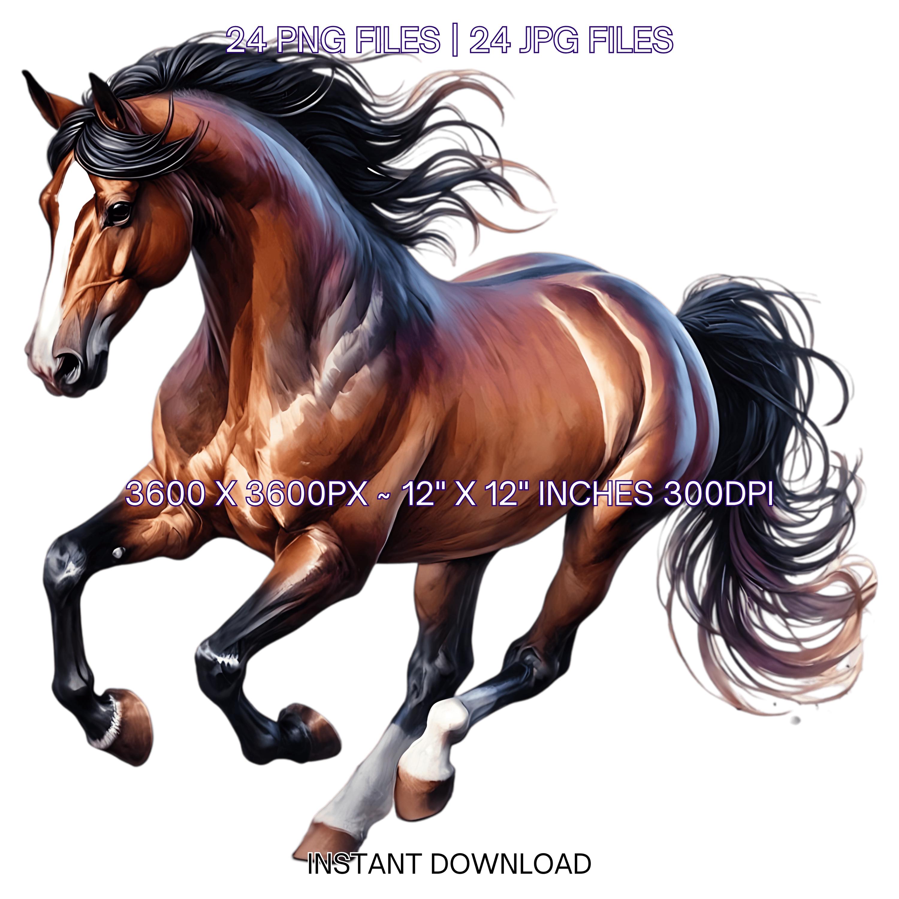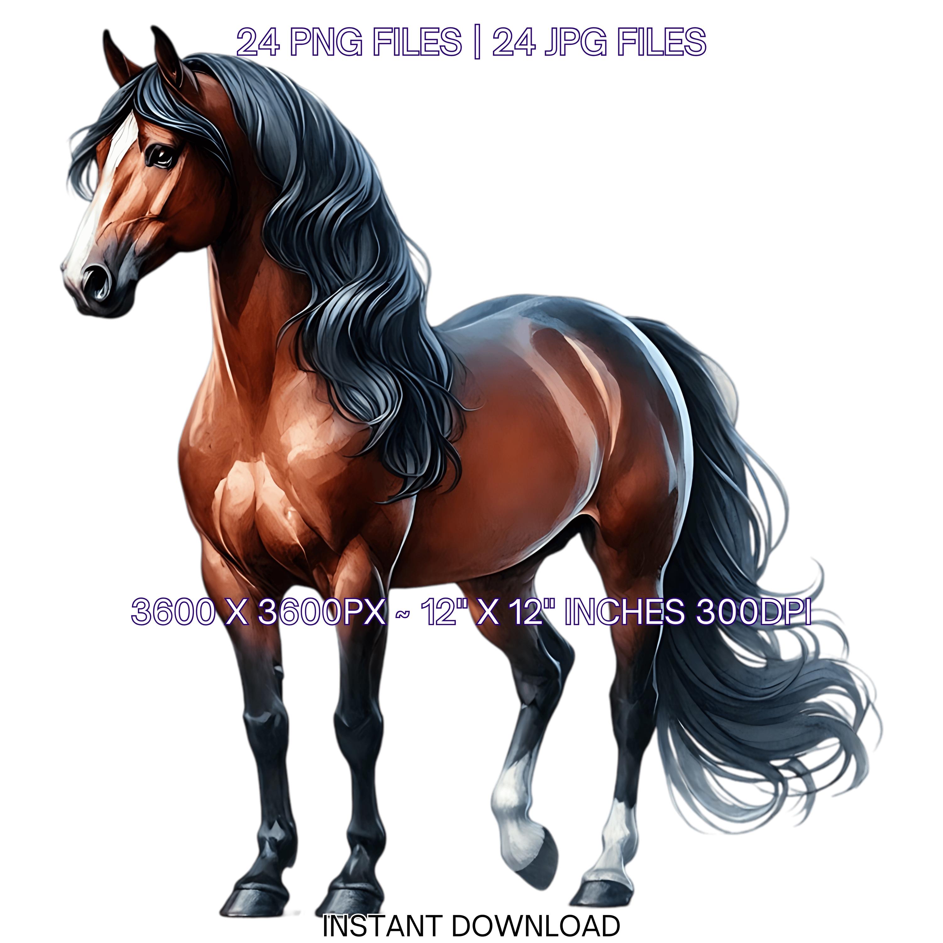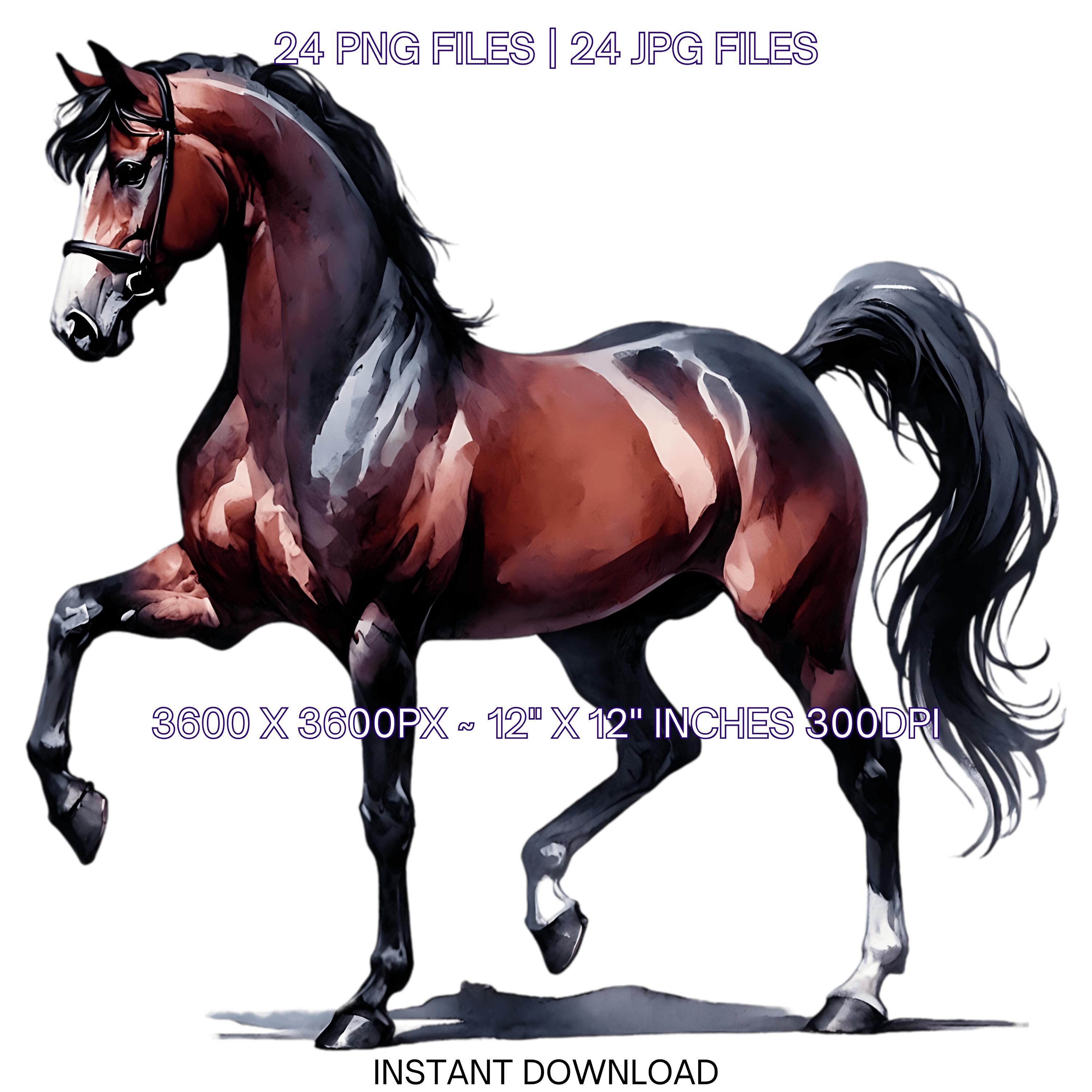 24 Saddlebred Horse PNG Clipart, Watercolor Farm Animals for Card Making, Scrapbooking, Junk Journaling, Sublimation Illustrations Commercial Use