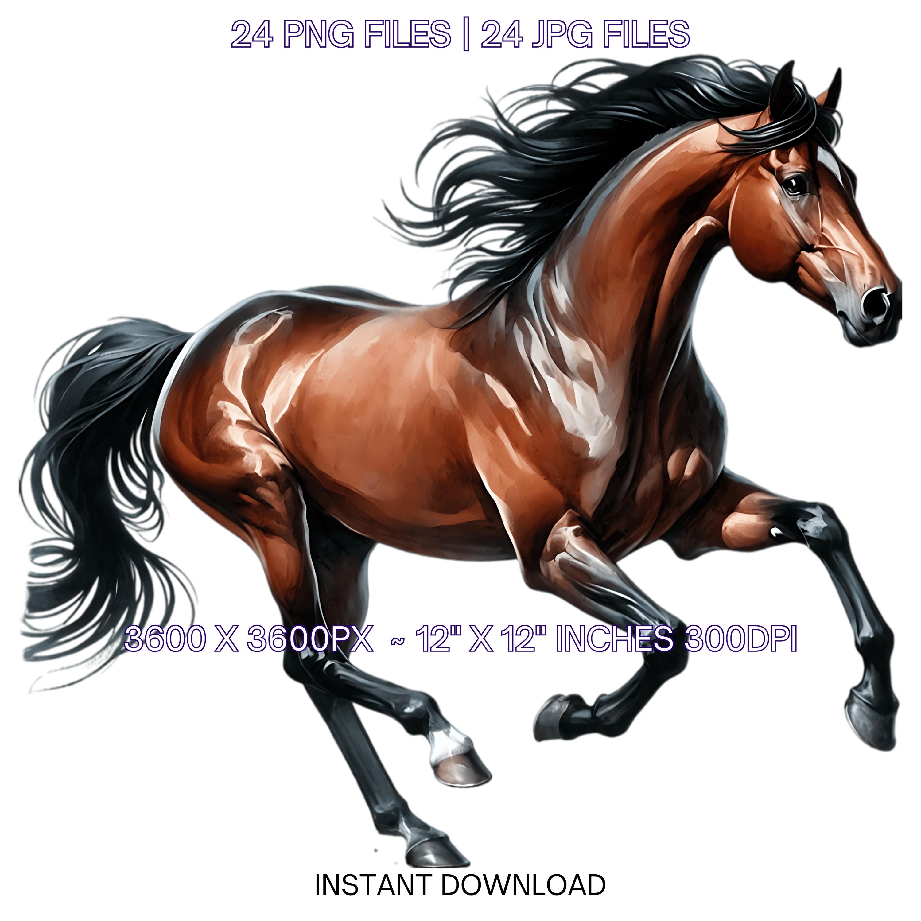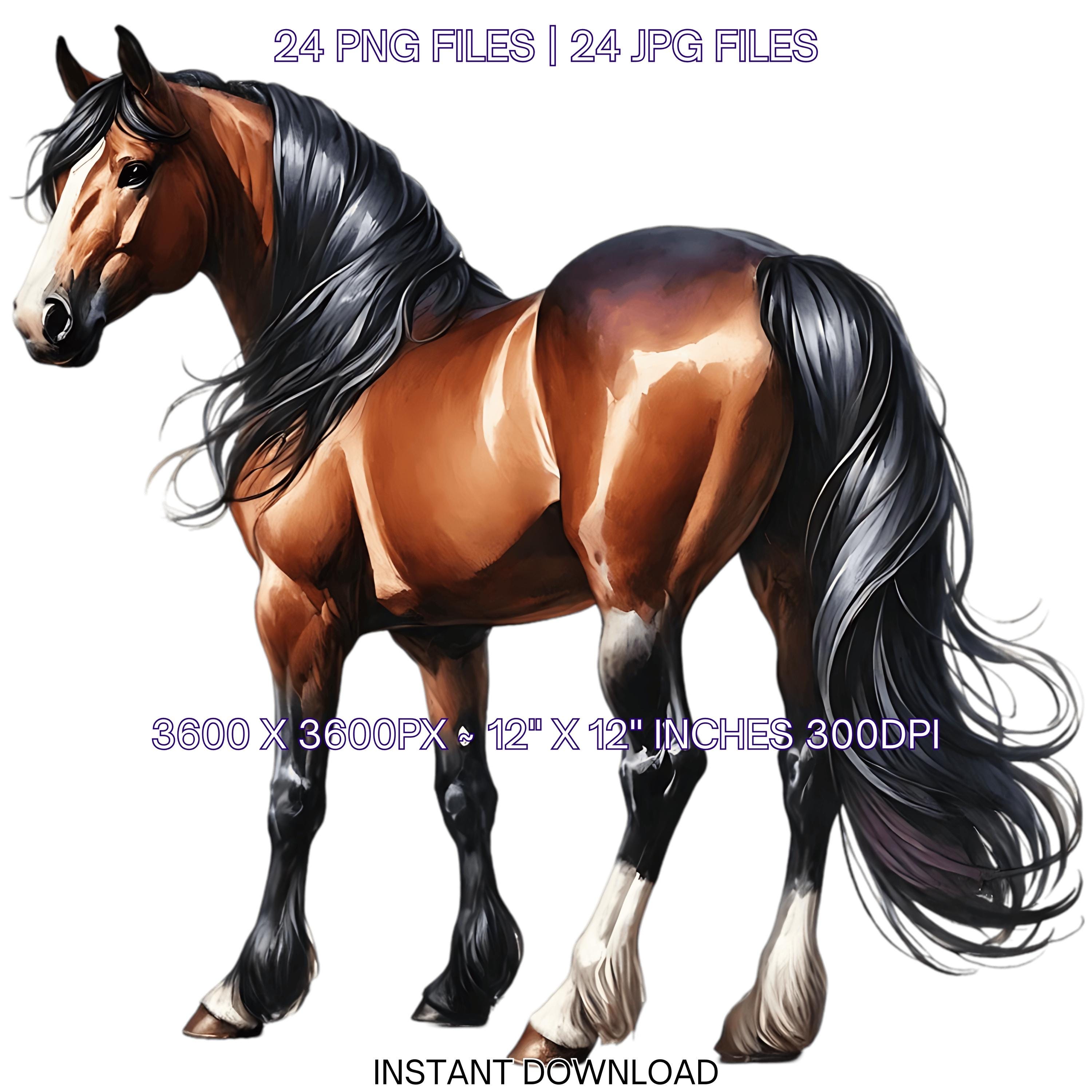 24 Standardbred Horse PNG Clipart, Watercolor Farm Animals for Card Making, Scrapbooking, Junk Journaling, Sublimation Image Commercial Use is an eye-catching, high-resolution digital asset designed for creators, crafters, teachers, and small business owners looking to elevate their visuals.
