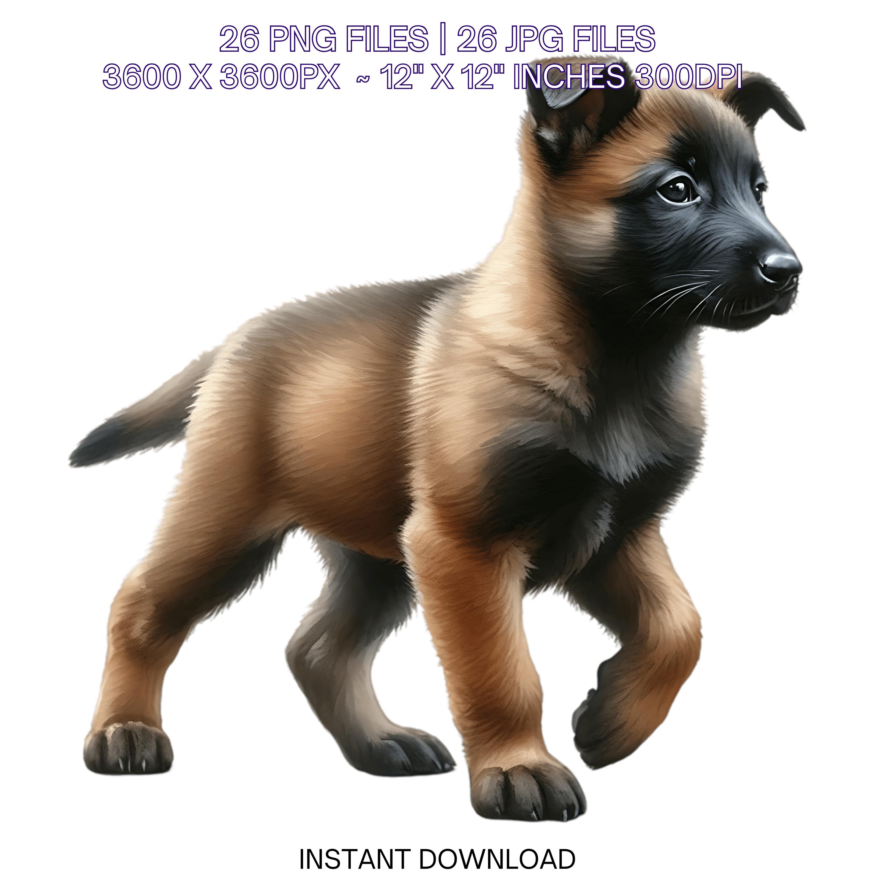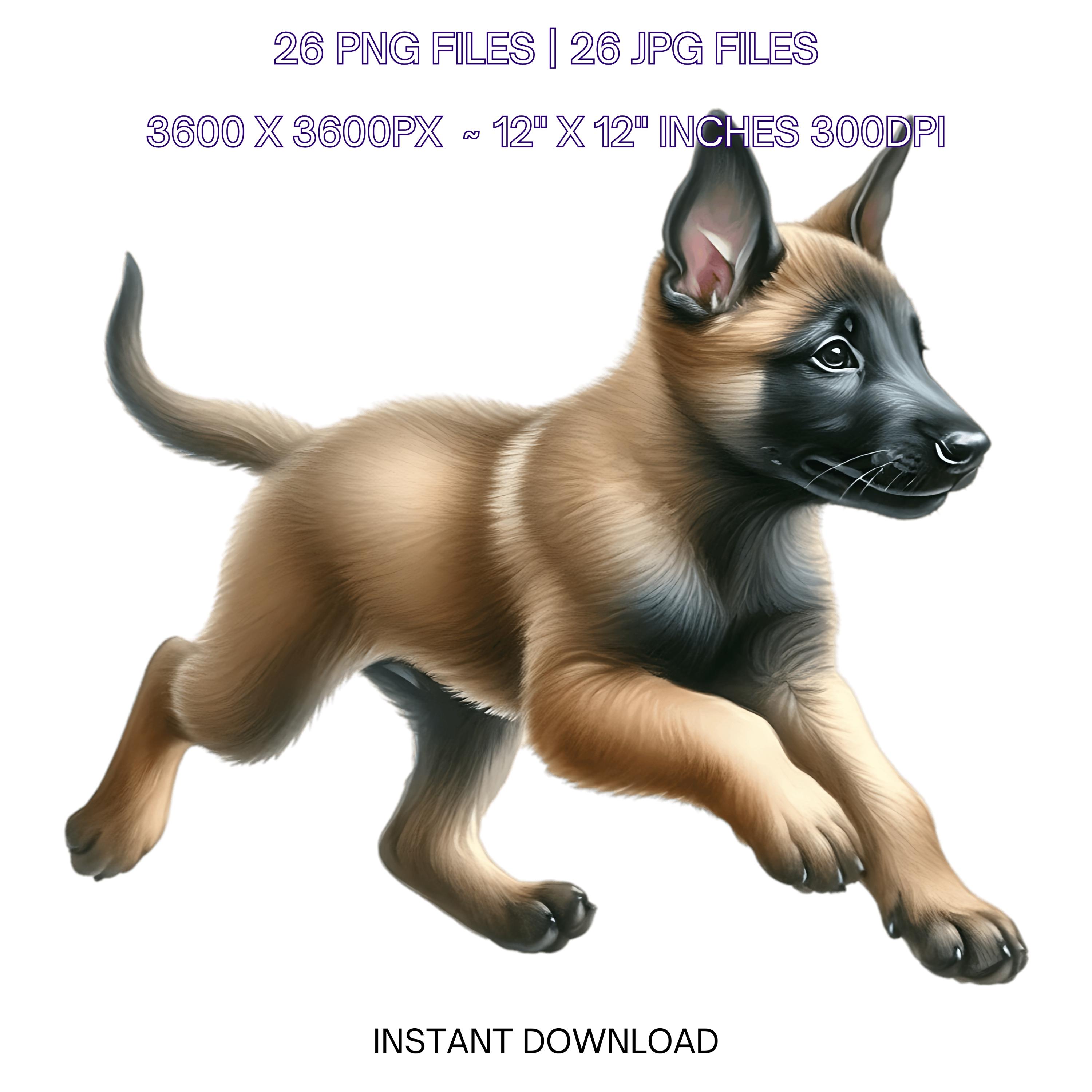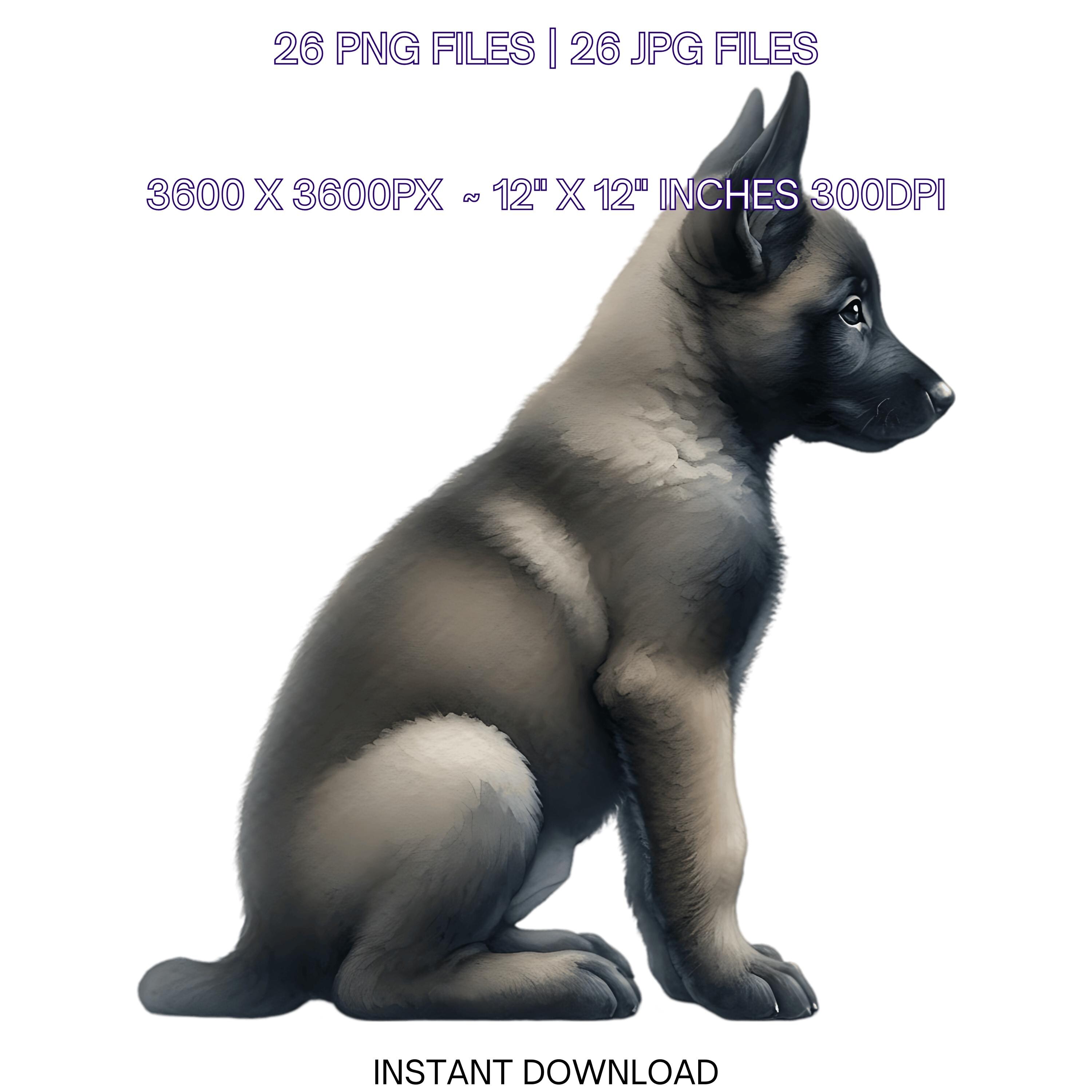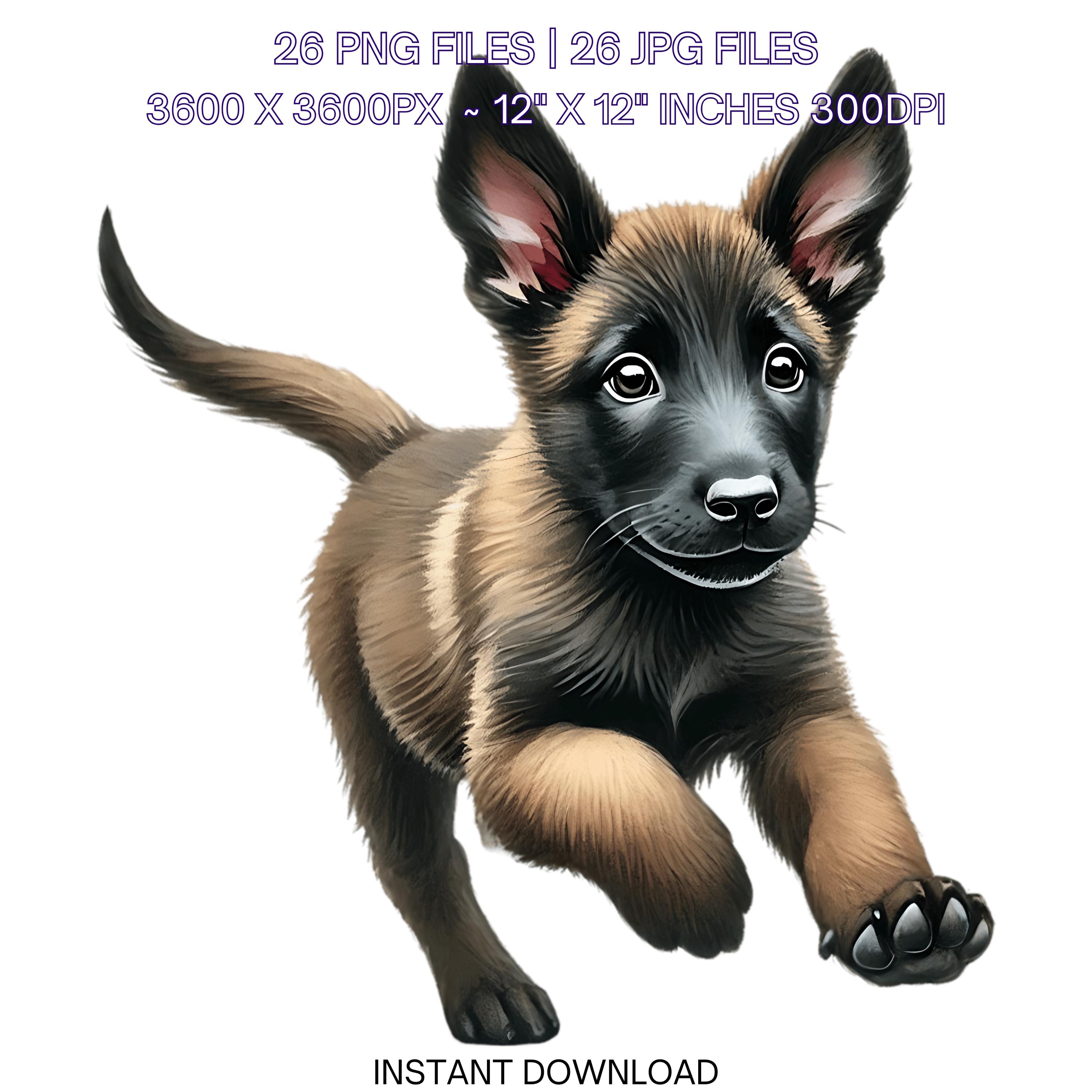 25 Belgian Malinois Puppy Dog PNG Clipart | Watercolor Baby Dog for Card Making, Scrapbooking Pet Portrait, Sublimation Commercial Use is an eye-catching, high-resolution digital asset designed for creators, crafters, teachers, and small business owners looking to elevate their visuals.