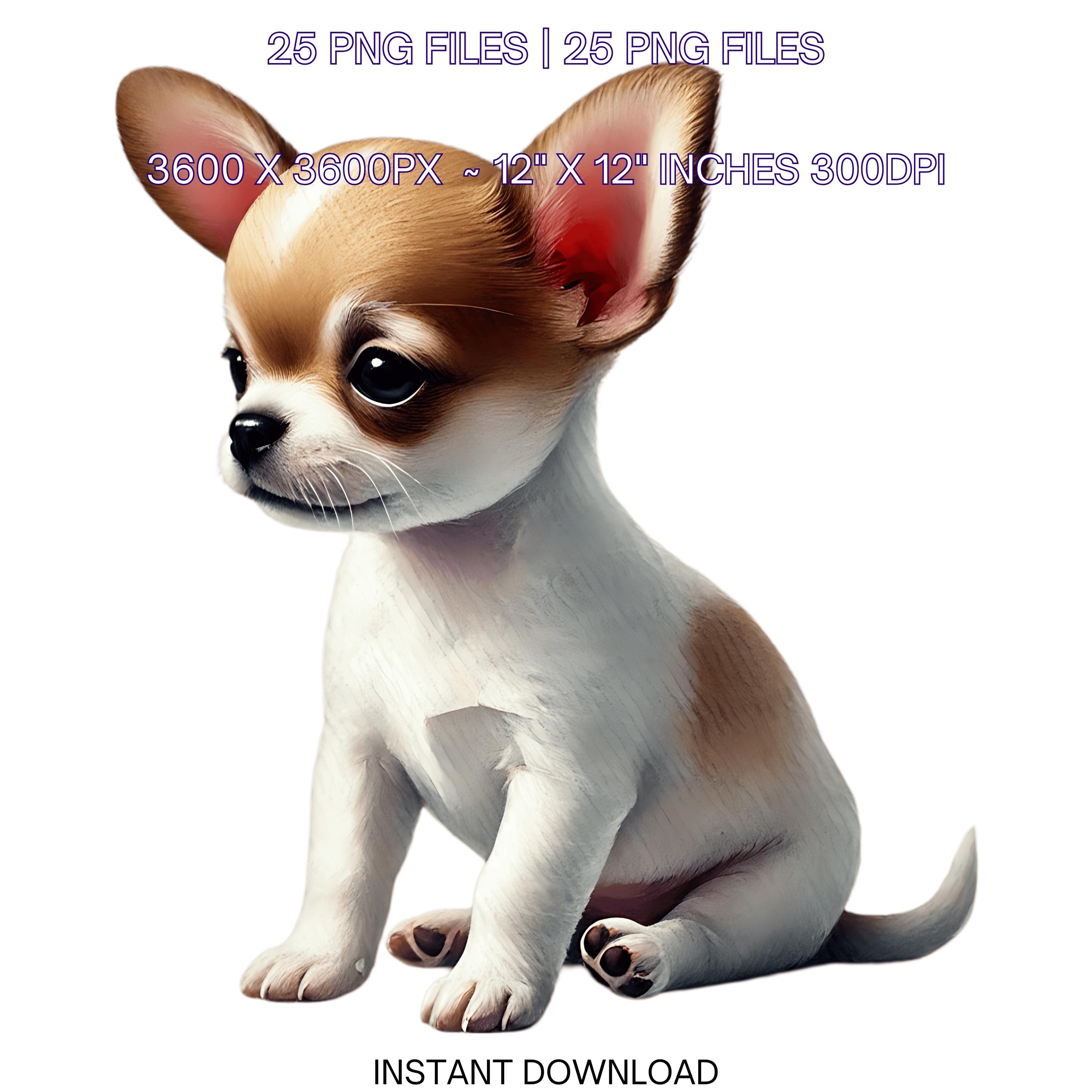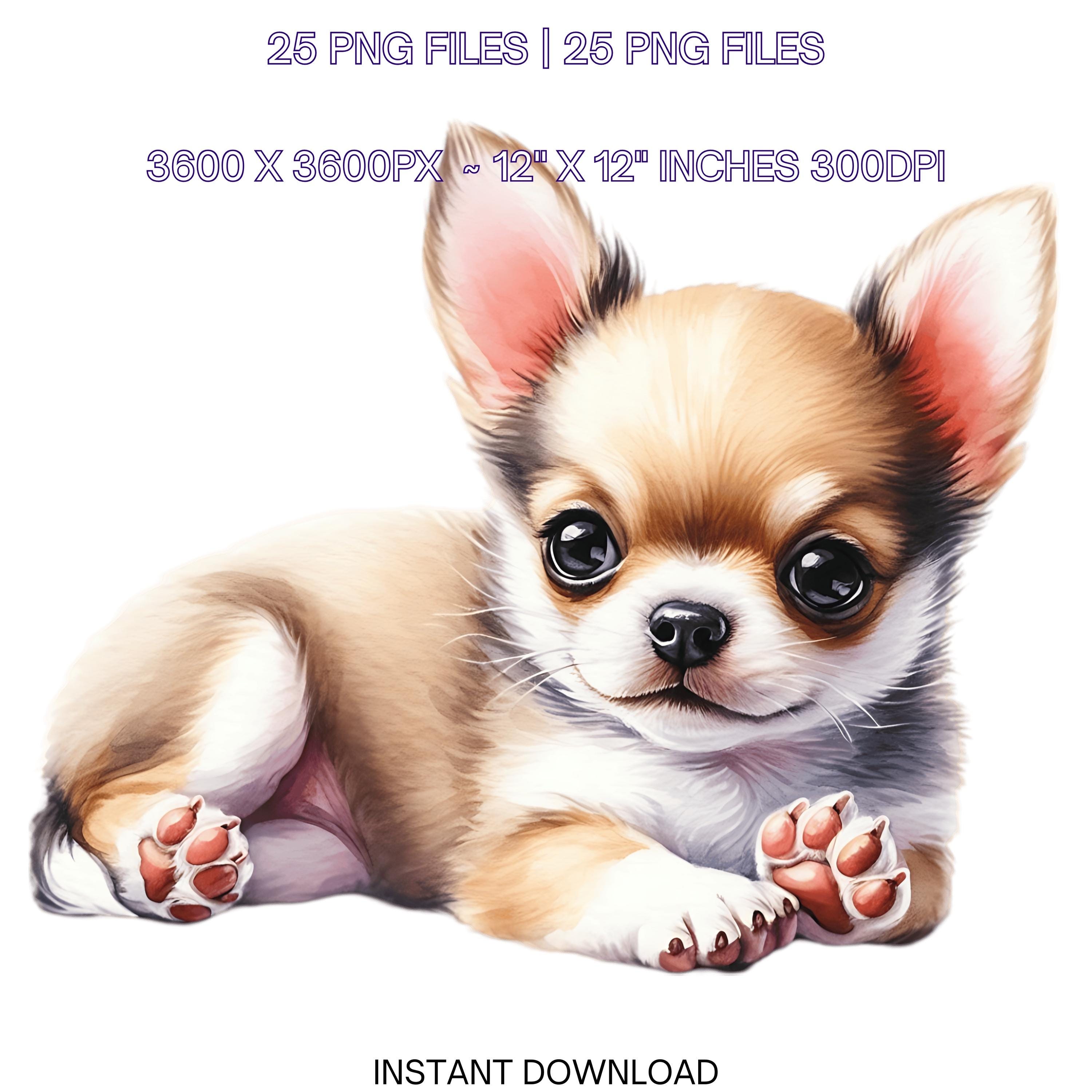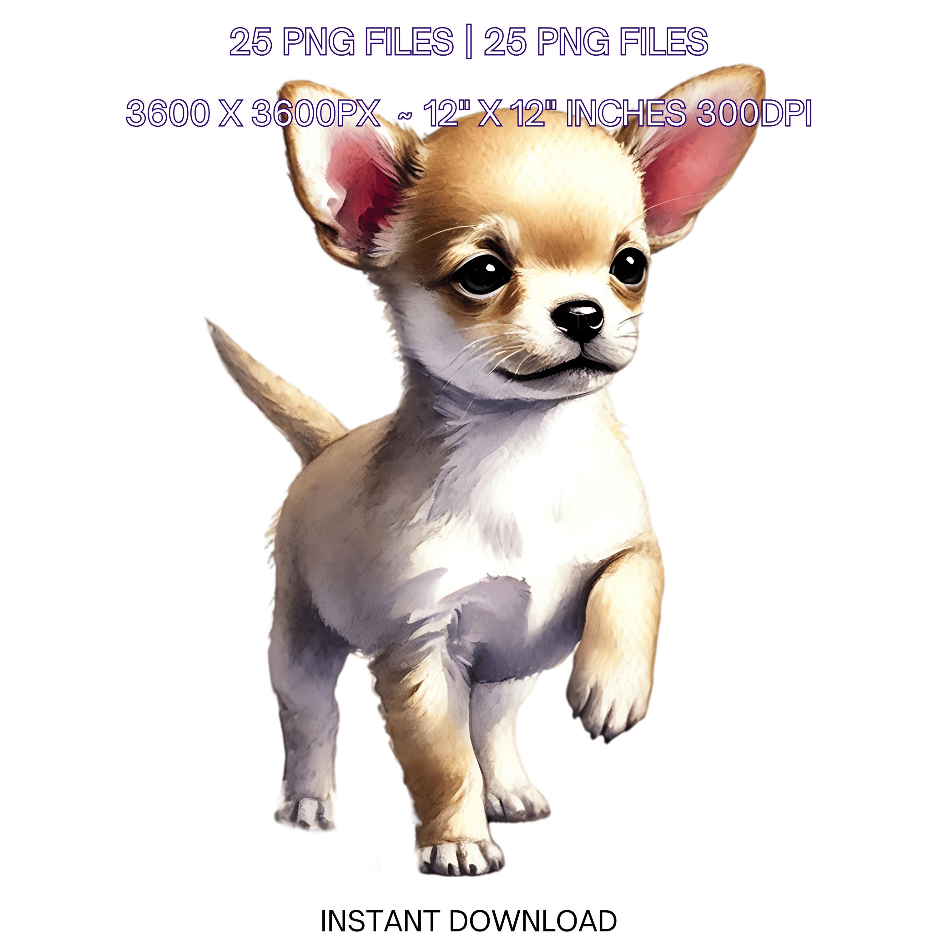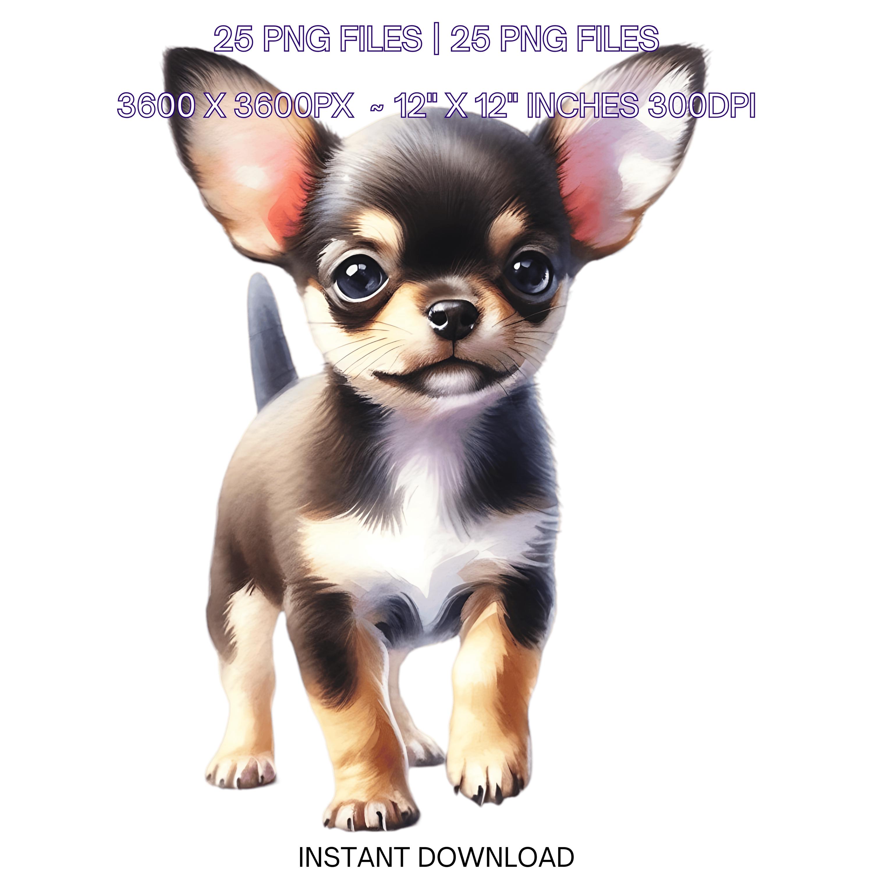25 Chihuahua Puppy Dog PNG Clipart | Watercolor Chihuahua Baby Dog for Card Making, Scrapbooking Junk Journaling, Sublimation Commercial Use is an eye-catching, high-resolution digital asset designed for creators, crafters, teachers, and small business owners looking to elevate their visuals.
