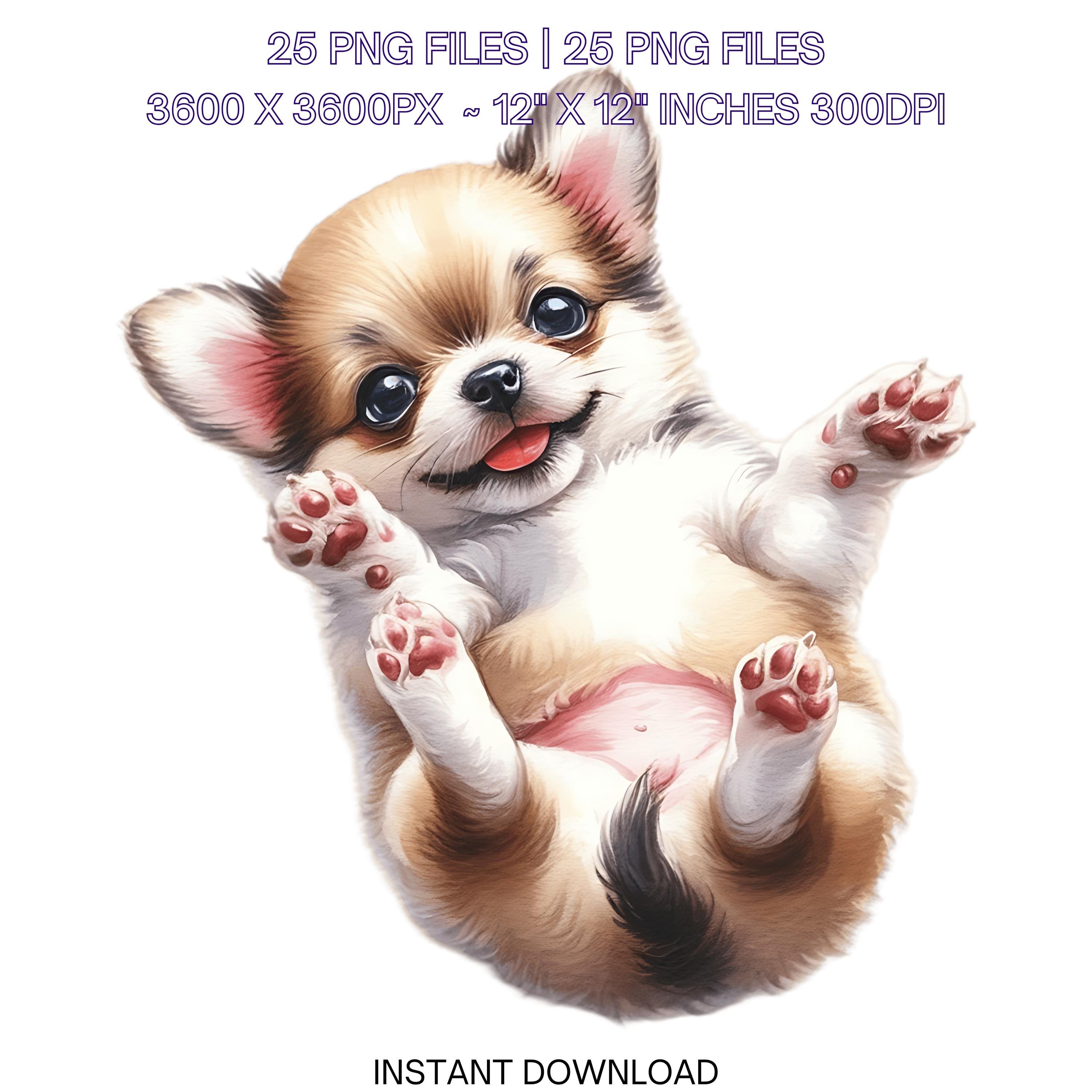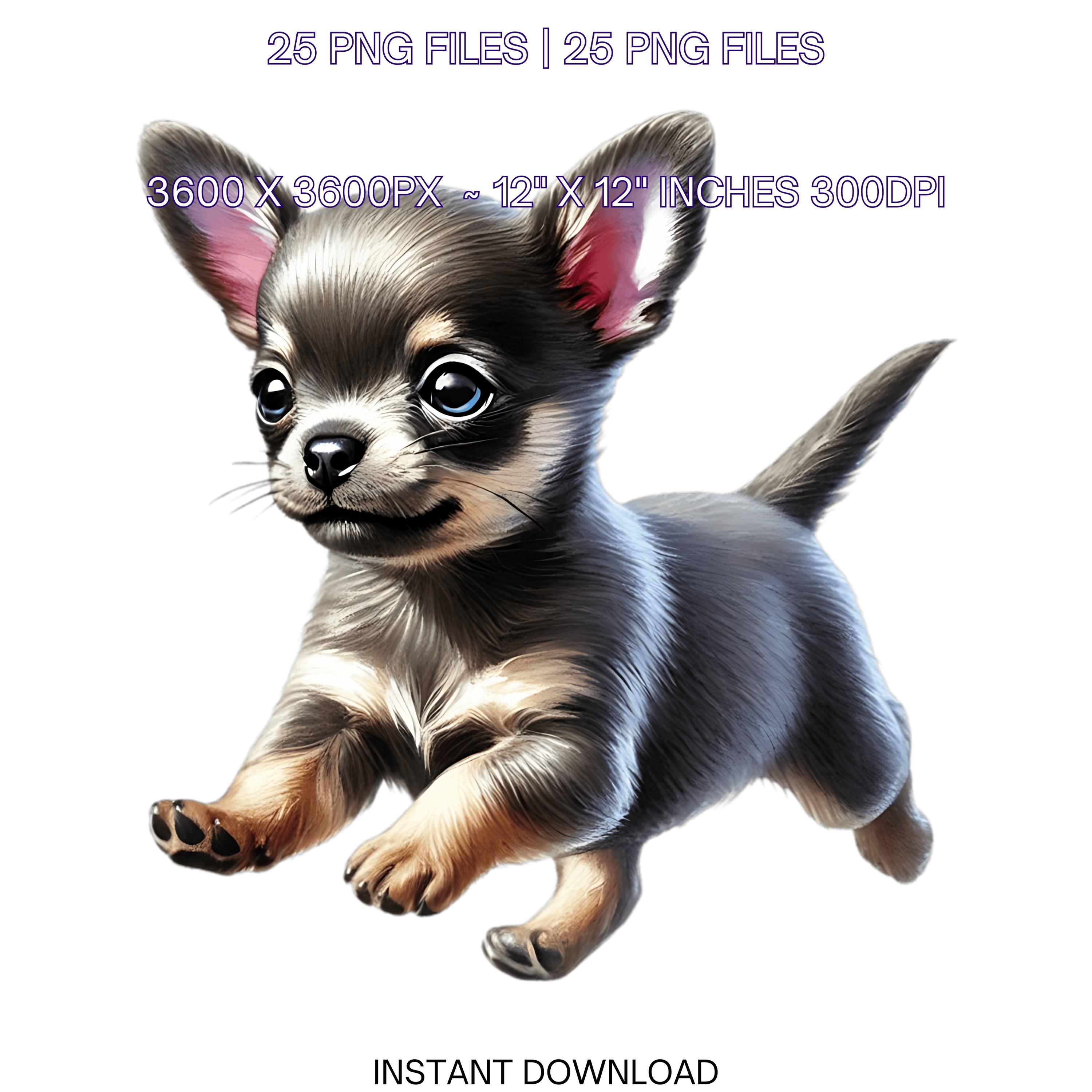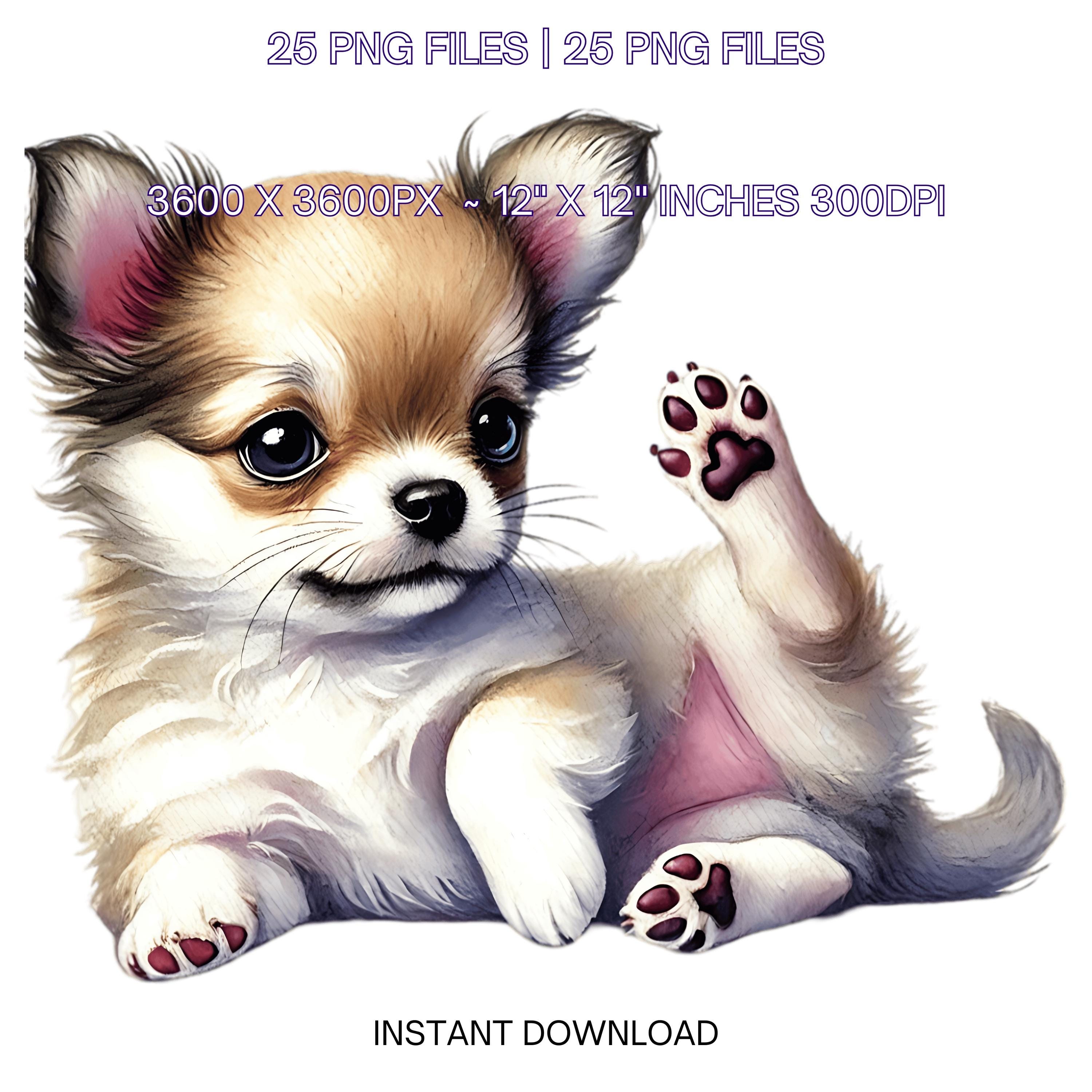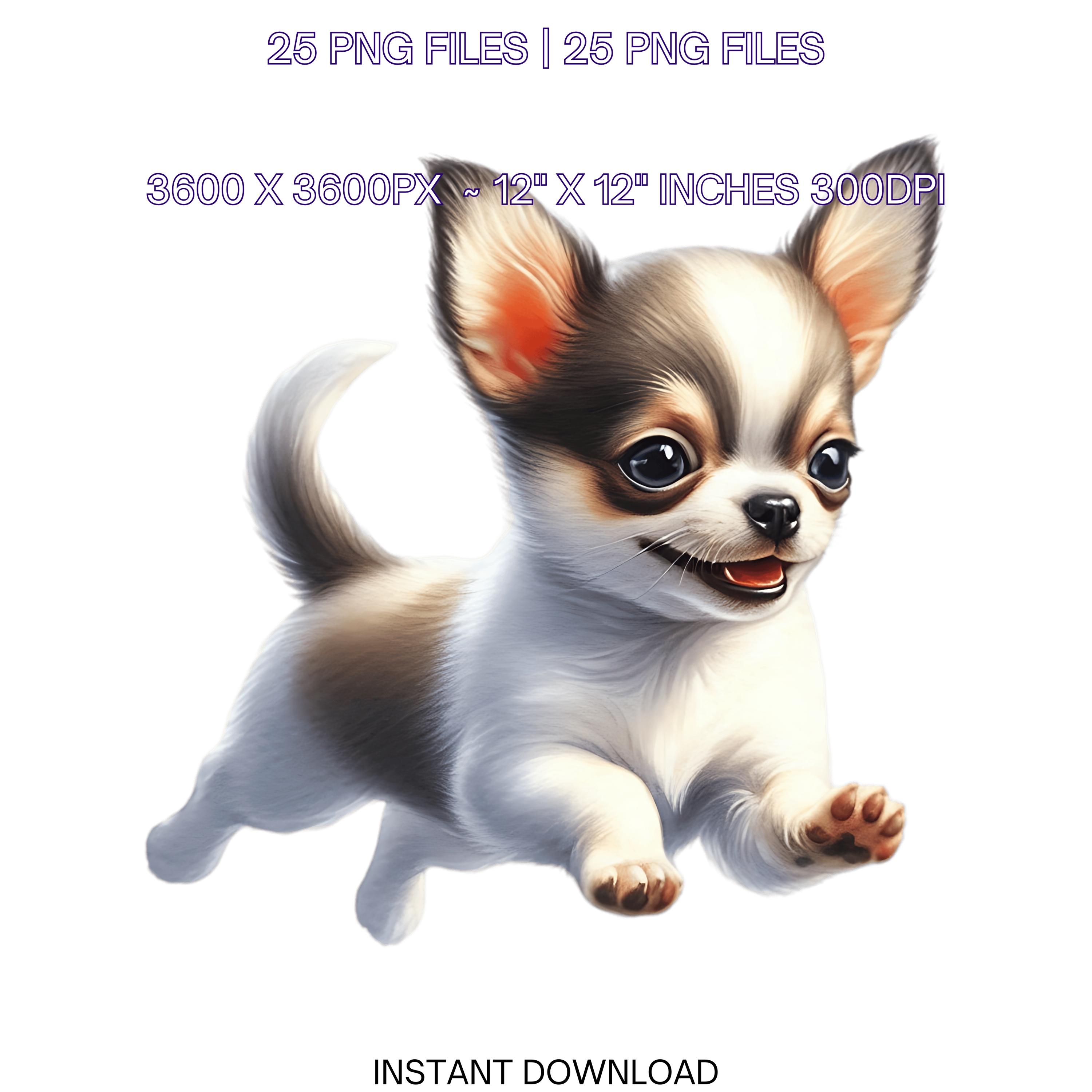 25 Chihuahua Puppy Dog PNG Clipart | Watercolor Chihuahua Baby Dog for Card Making, Scrapbooking Junk Journaling, Sublimation Commercial Use is an eye-catching, high-resolution digital asset designed for creators, crafters, teachers, and small business owners looking to elevate their visuals.