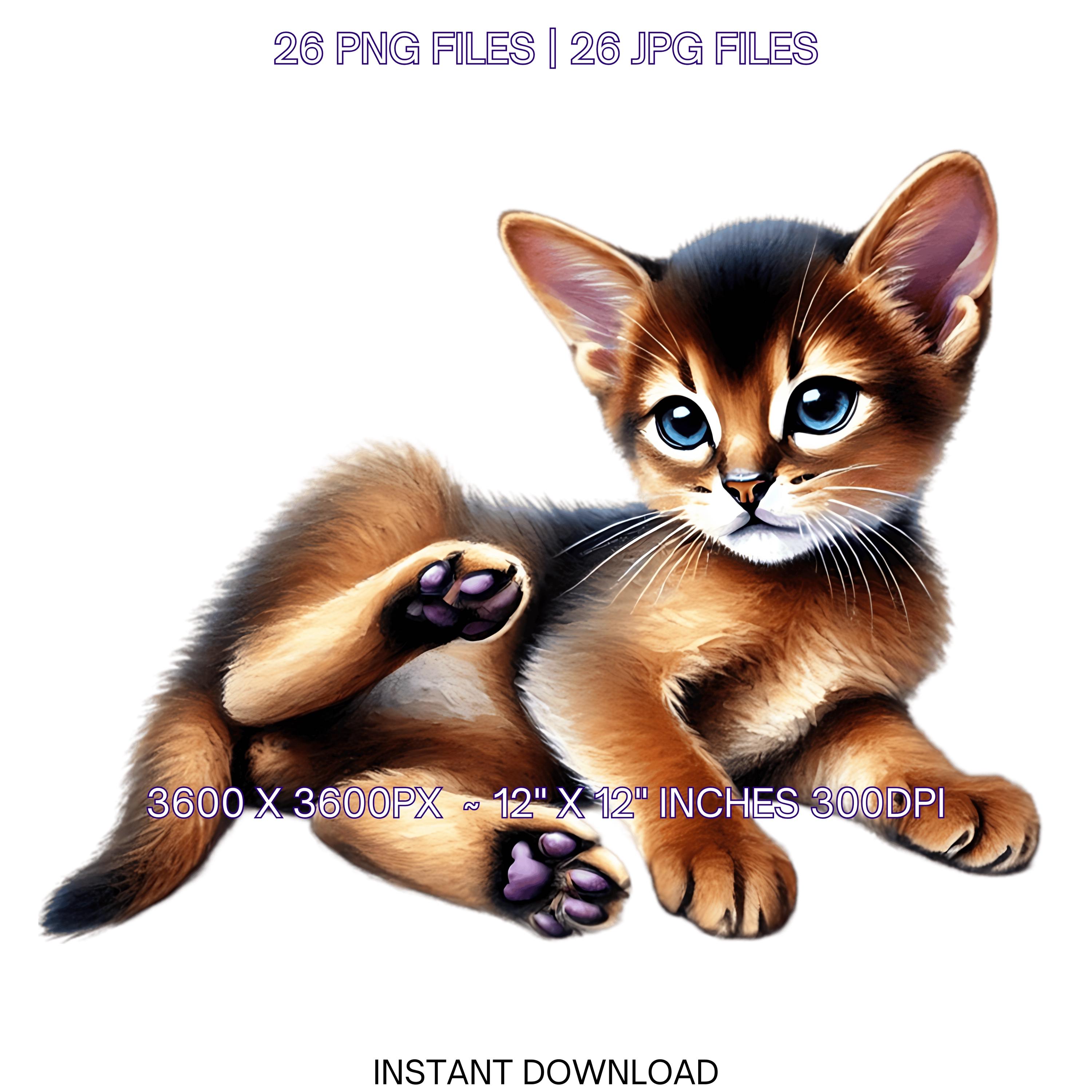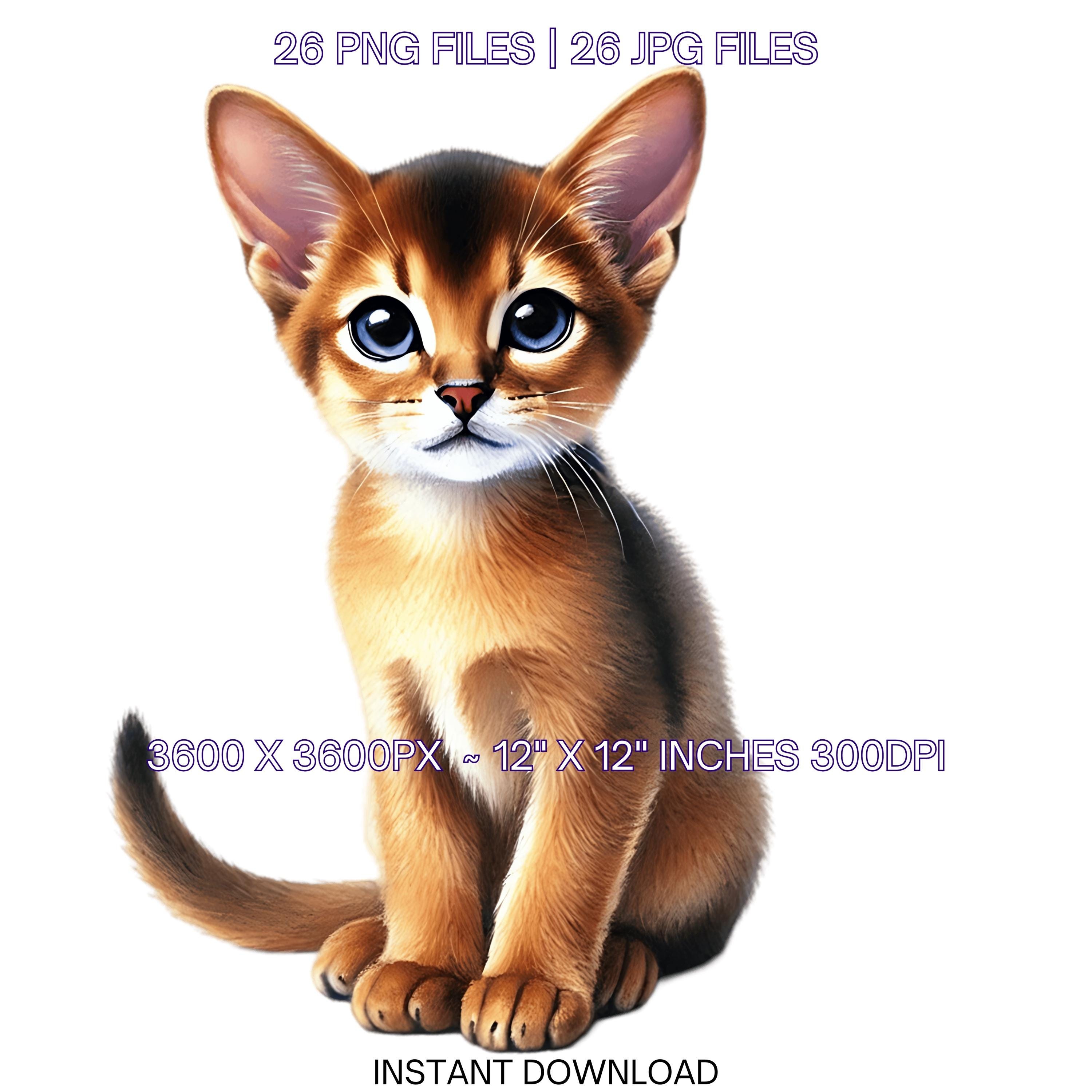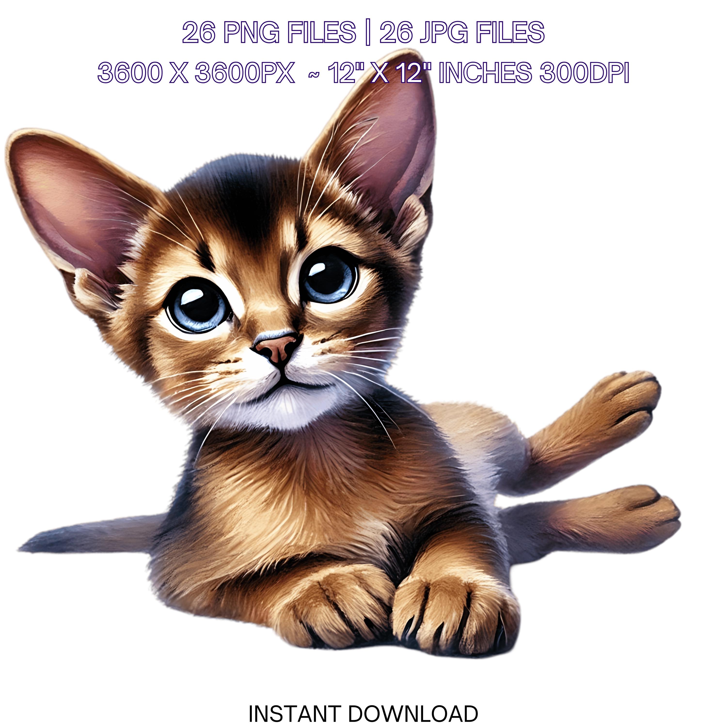 26 Abyssinian Kitten PNG Clipart, Watercolor Cats as Pets for Card Making, Scrapbooking, Junk Journaling, Sublimation Illustrations, Pet Portrait, Commercial Use