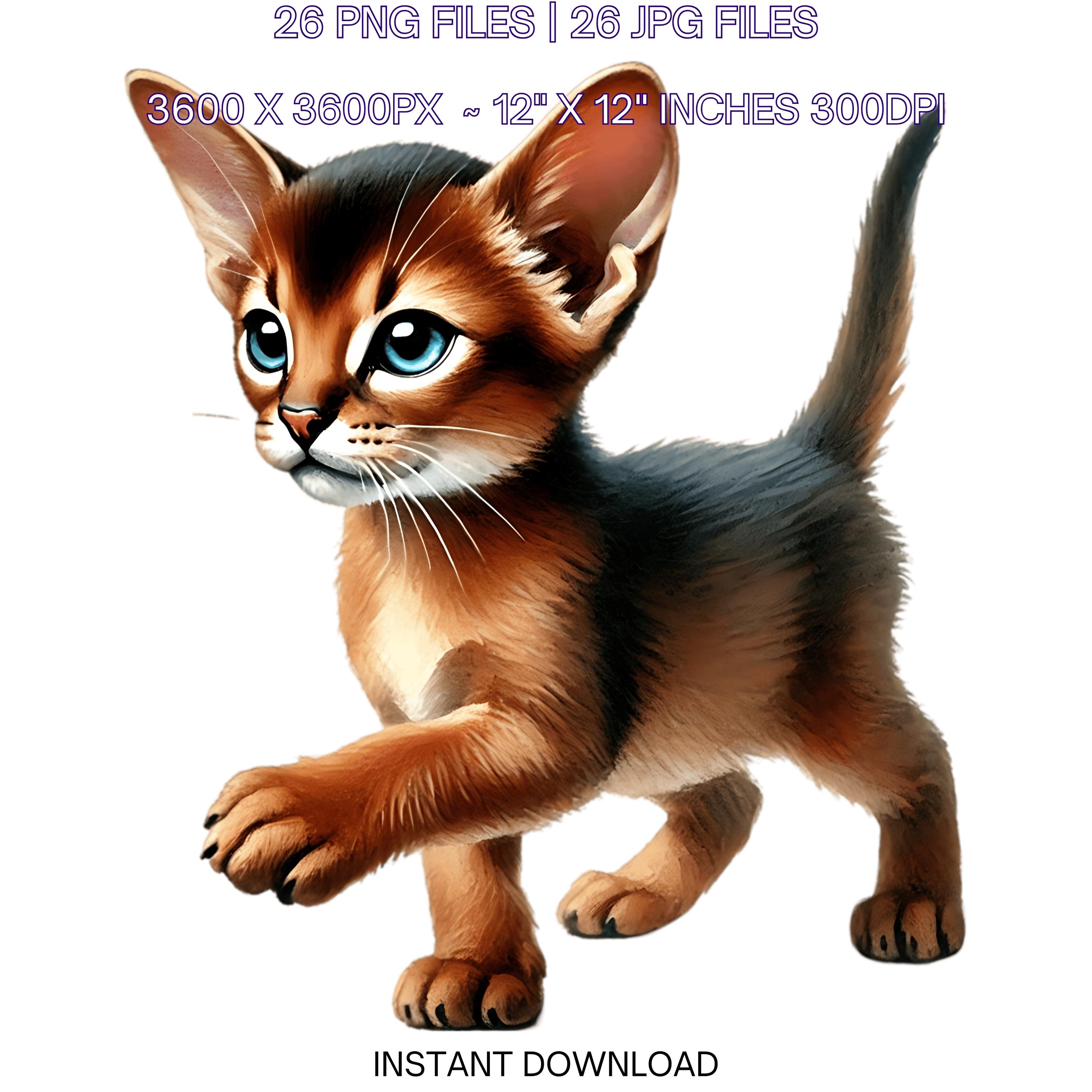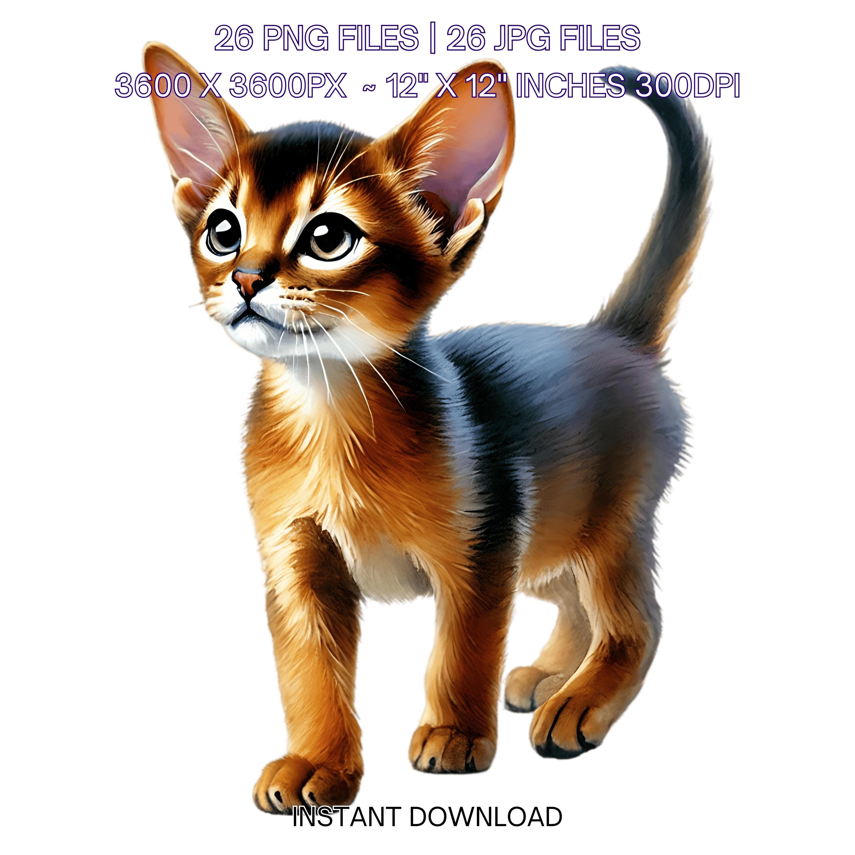 26 Abyssinian Kitten for Pet Portrait PNG Clipart, Watercolor Cat as Pet Card Making Junk Journaling Sublimation Commercial Use is an eye-catching, high-resolution digital asset designed for creators, crafters, teachers, and small business owners looking to elevate their visuals.