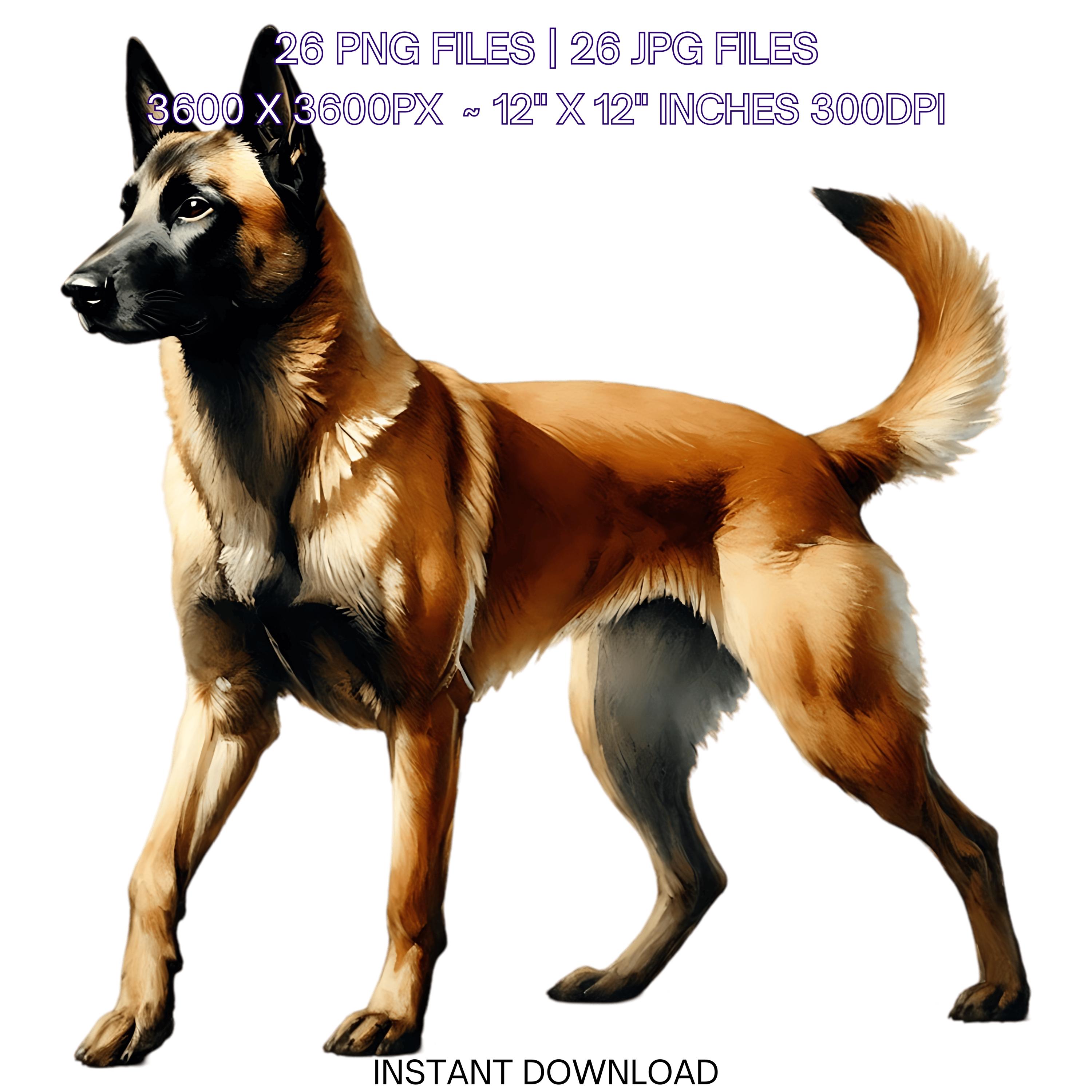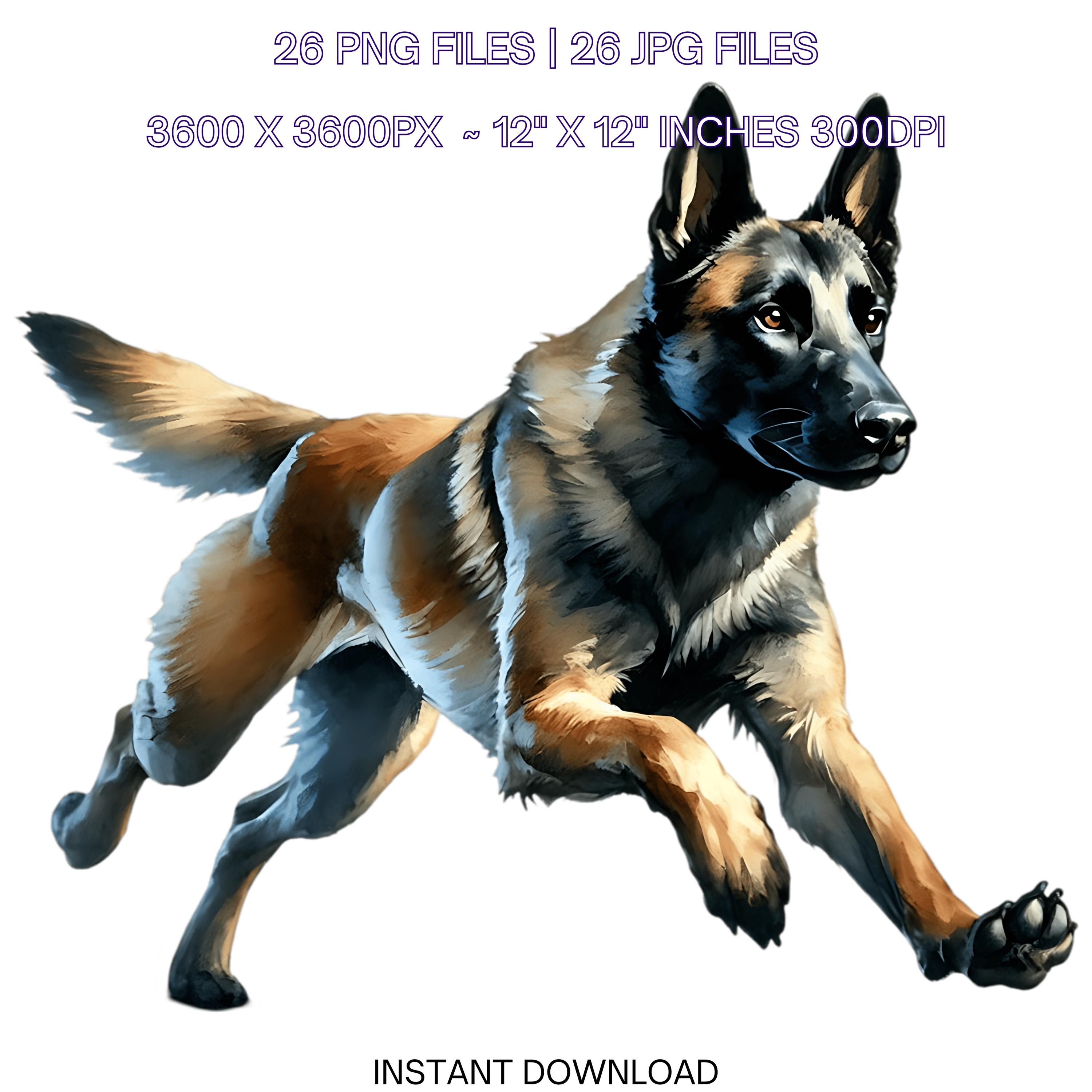 26 Belgian Malinois Dog PNG Clipart, Watercolor Belgian Malinois Dog for Card Making, Scrapbooking, Junk Journaling, Sublimation Illustrations Commercial Use