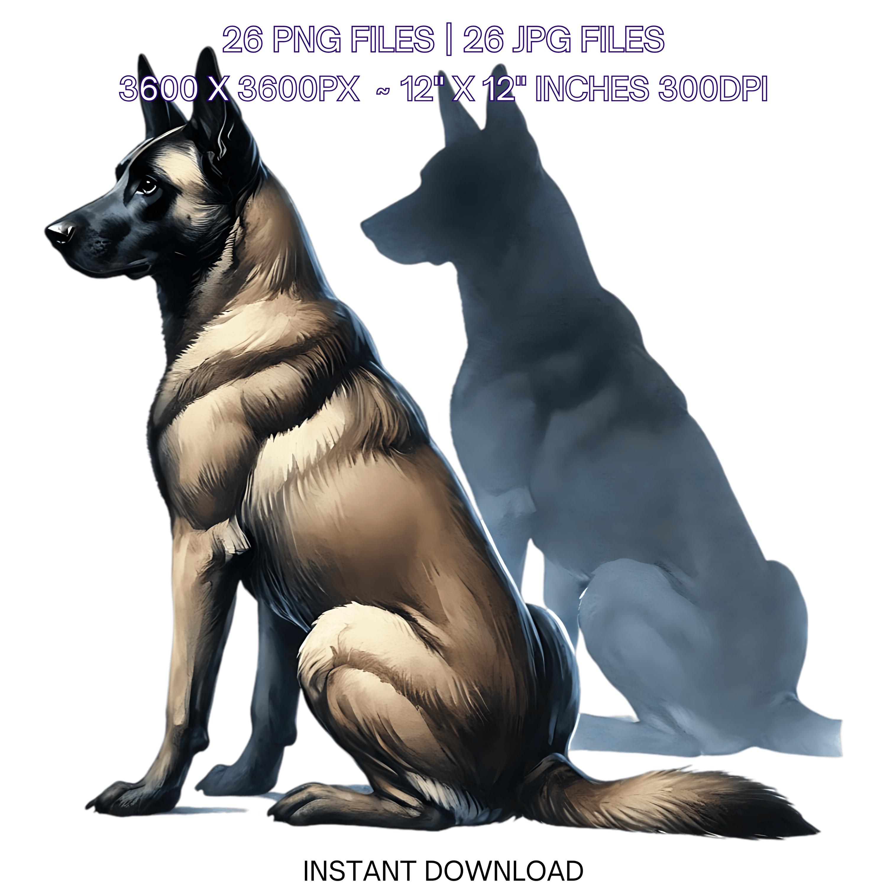26 Belgian Malinois Dog PNG Clipart, Watercolor Dog Card Making, Scrapbooking, Junk Journaling, Sublimation Illustrations Commercial Use is an eye-catching, high-resolution digital asset designed for creators, crafters, teachers, and small business owners looking to elevate their visuals.