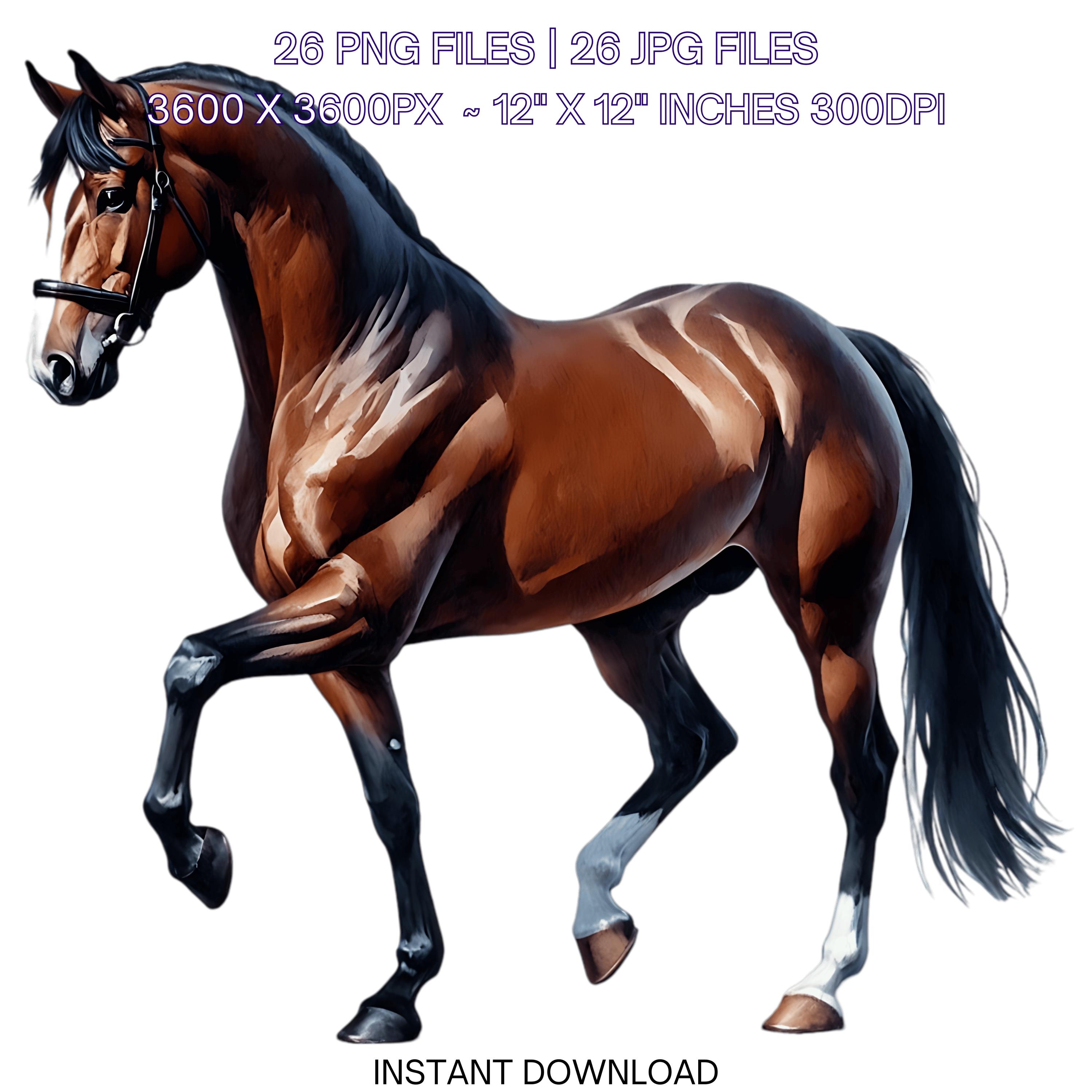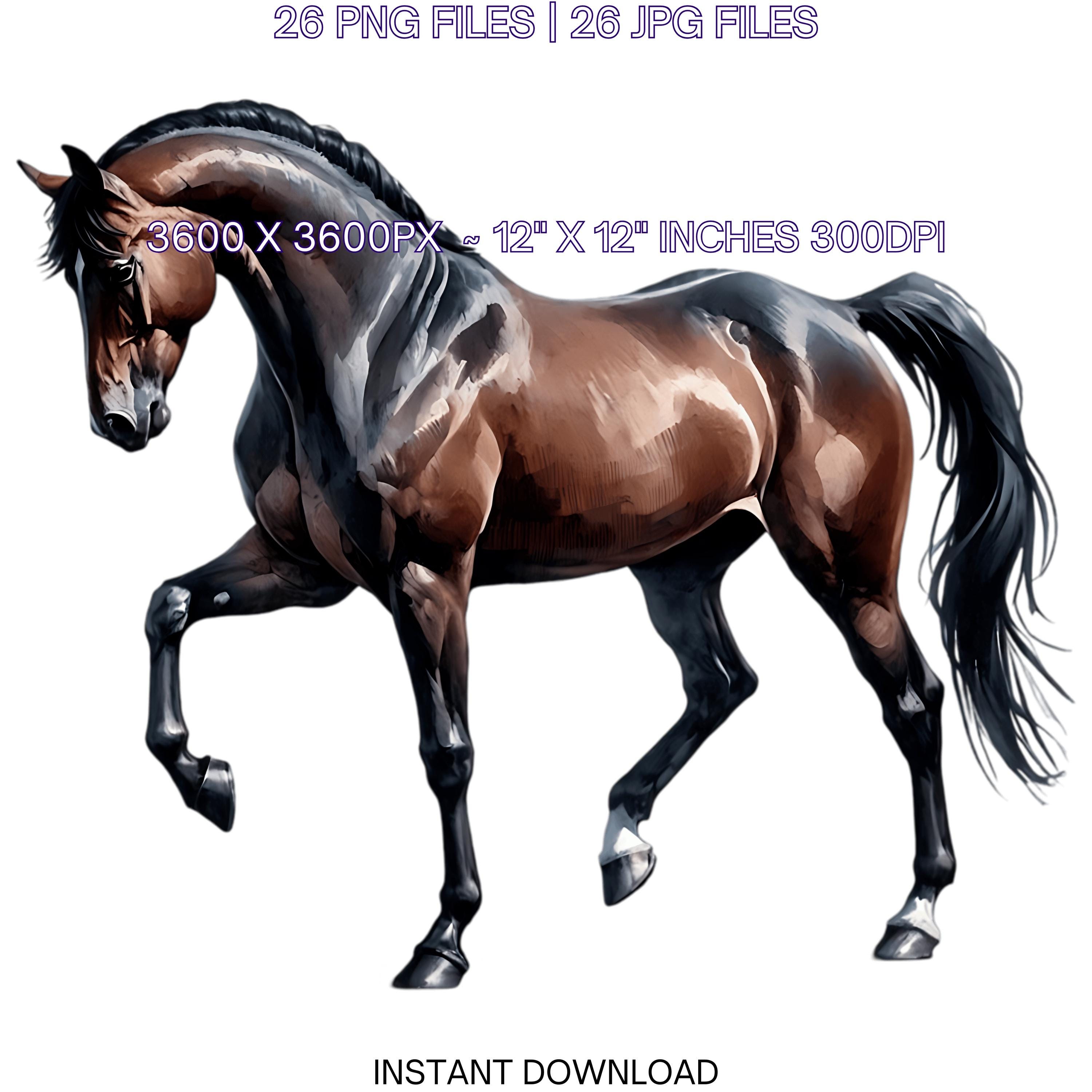 26 Thoroughbred Horse PNG Clipart, Watercolor Farm Animals for Card Making, Scrapbooking, Junk Journaling, Sublimation Image Commercial Use is an eye-catching, high-resolution digital asset designed for creators, crafters, teachers, and small business owners looking to elevate their visuals.